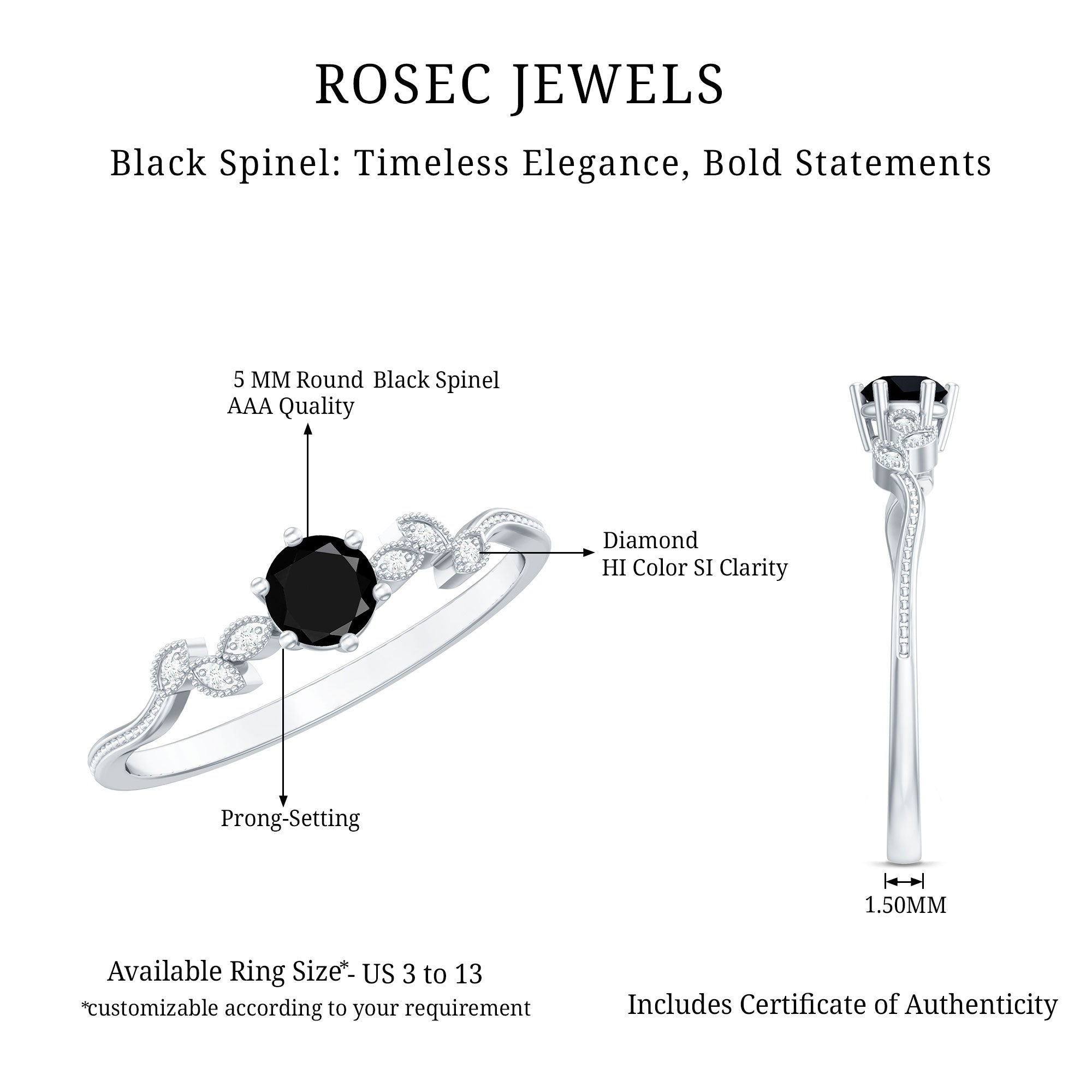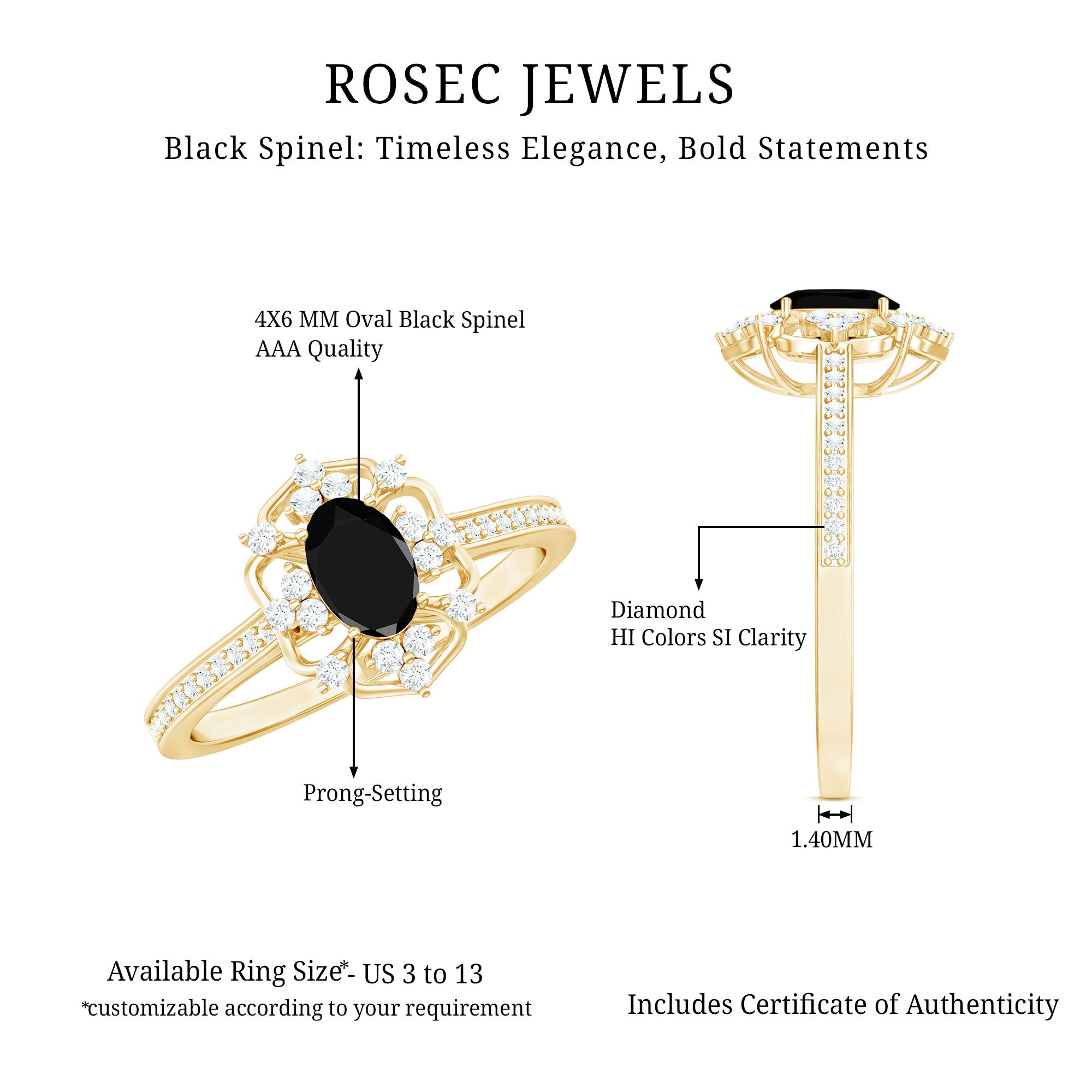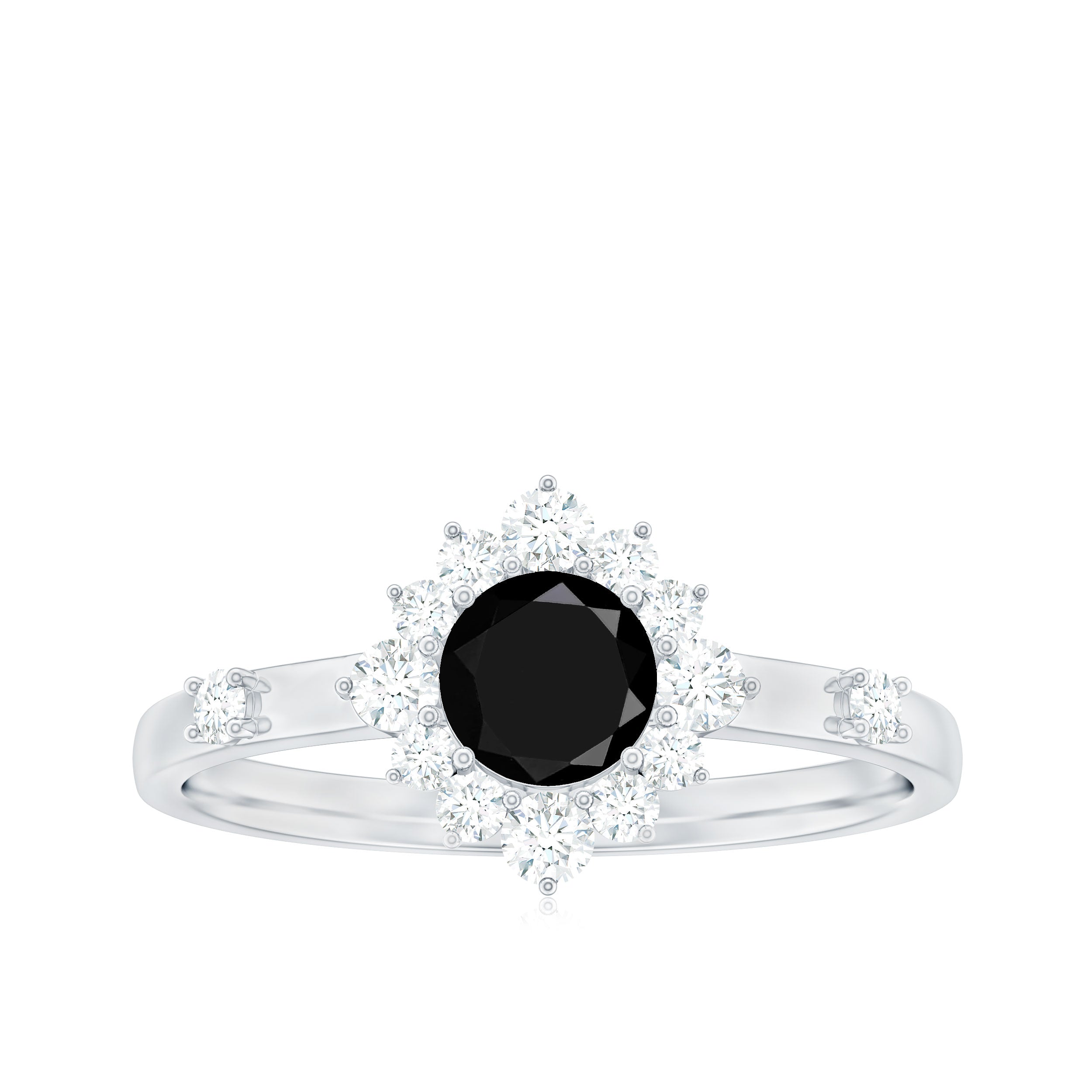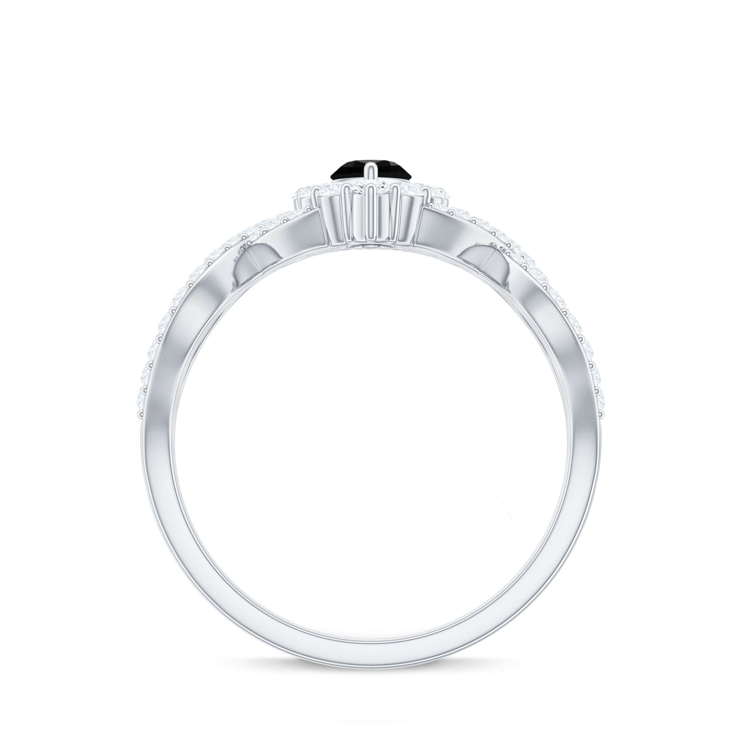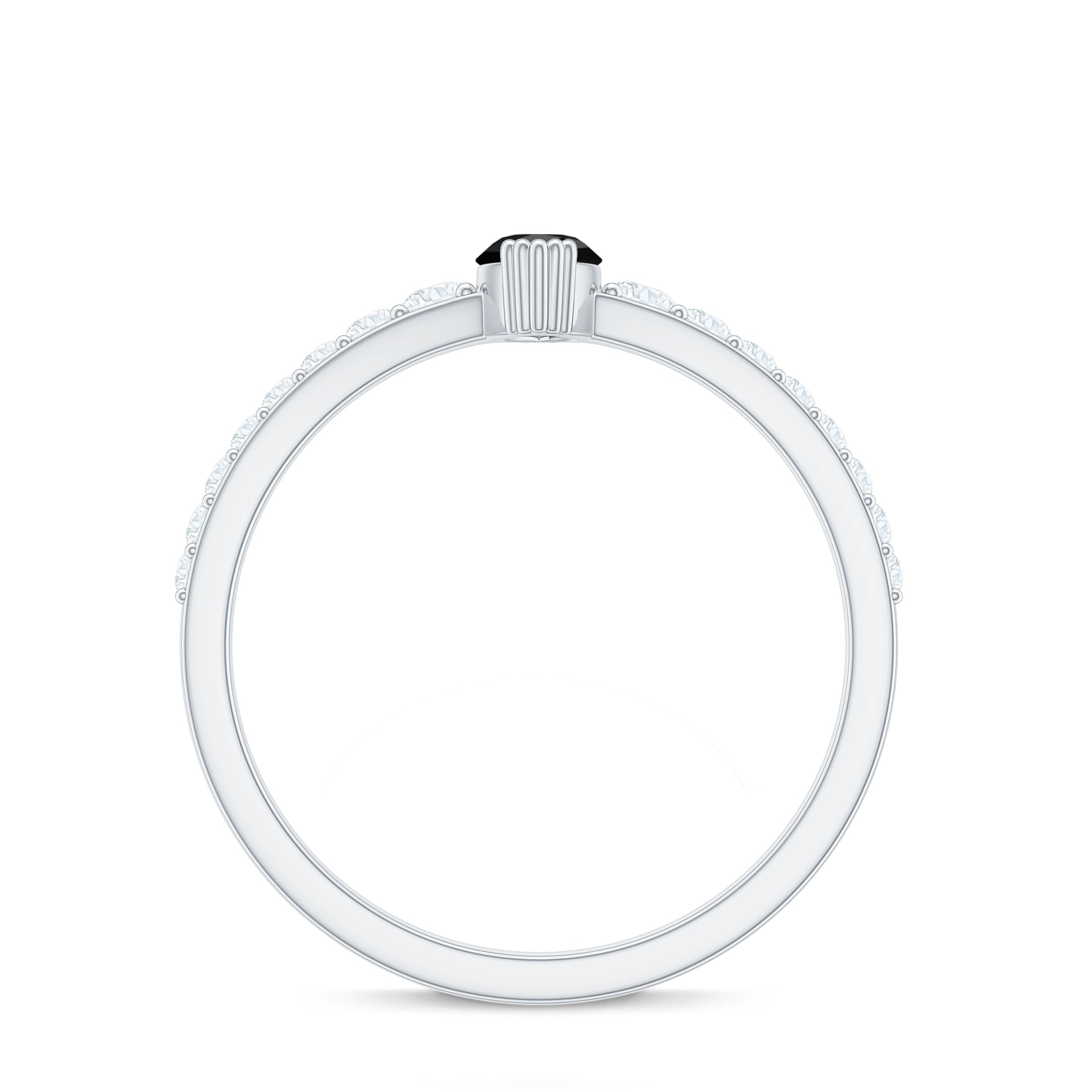 Lending an interesting visual appeal to the Black Spinel Solitaire Ring, a Halo encircles the Black Spinel with a parade of diamond/moissanite. The best part about a Halo is that it rewards more personality as well as an illusion of a larger-looking size to your Black Spinel. So, it is a unique blend of classic and flashy. That makes it another popular choice of the Black Spinel Engagement Ring.