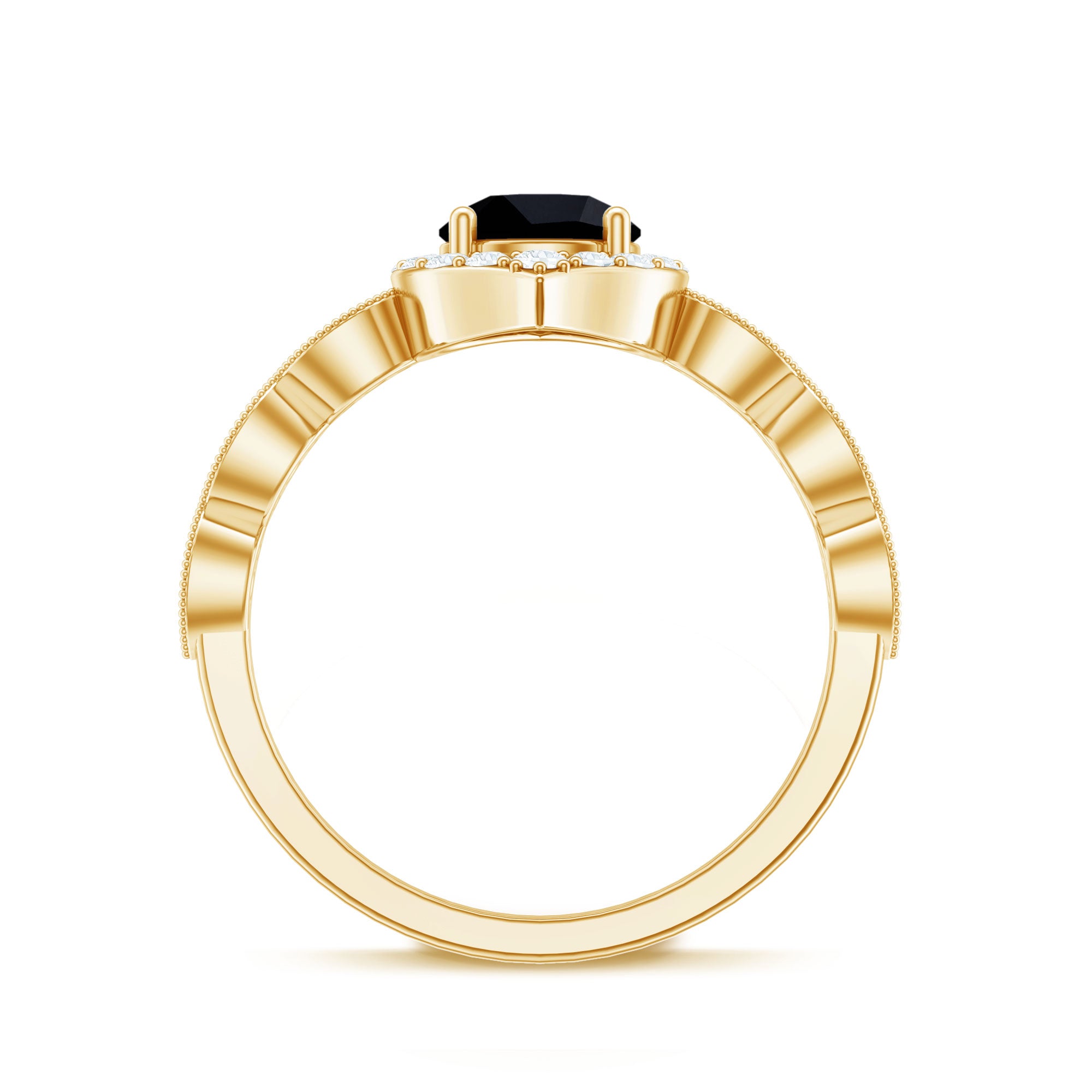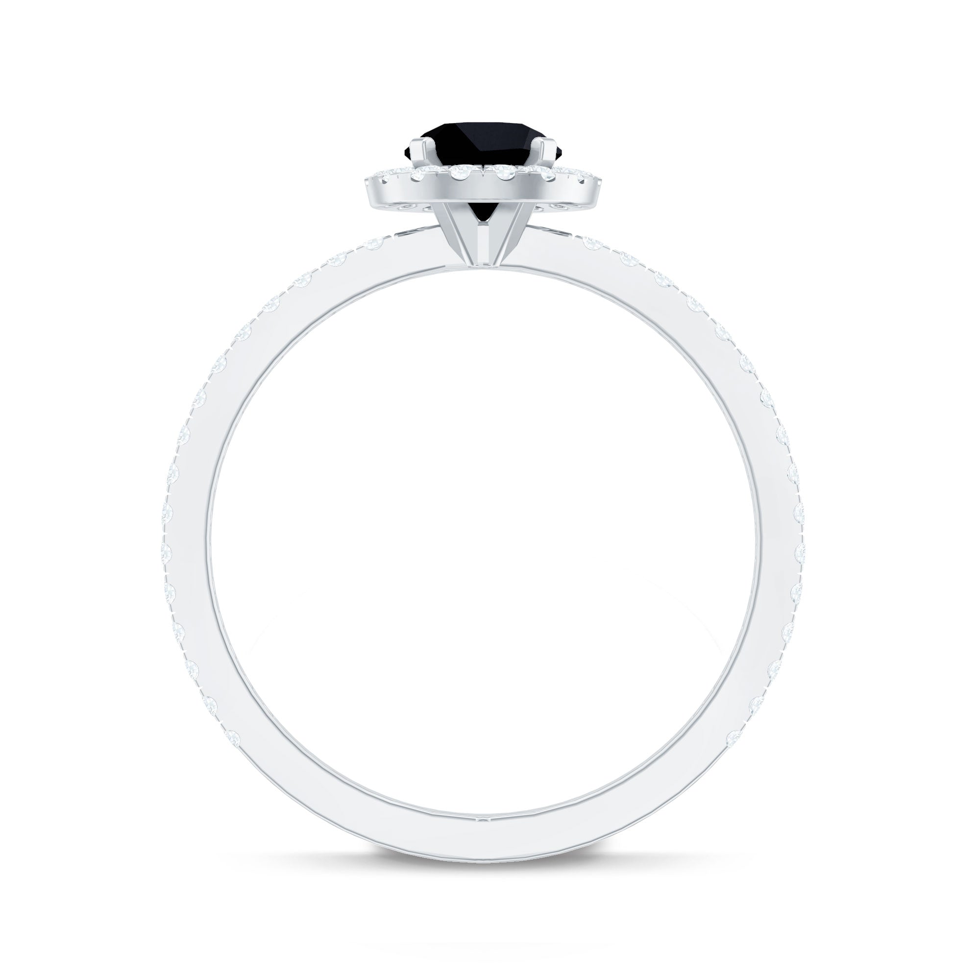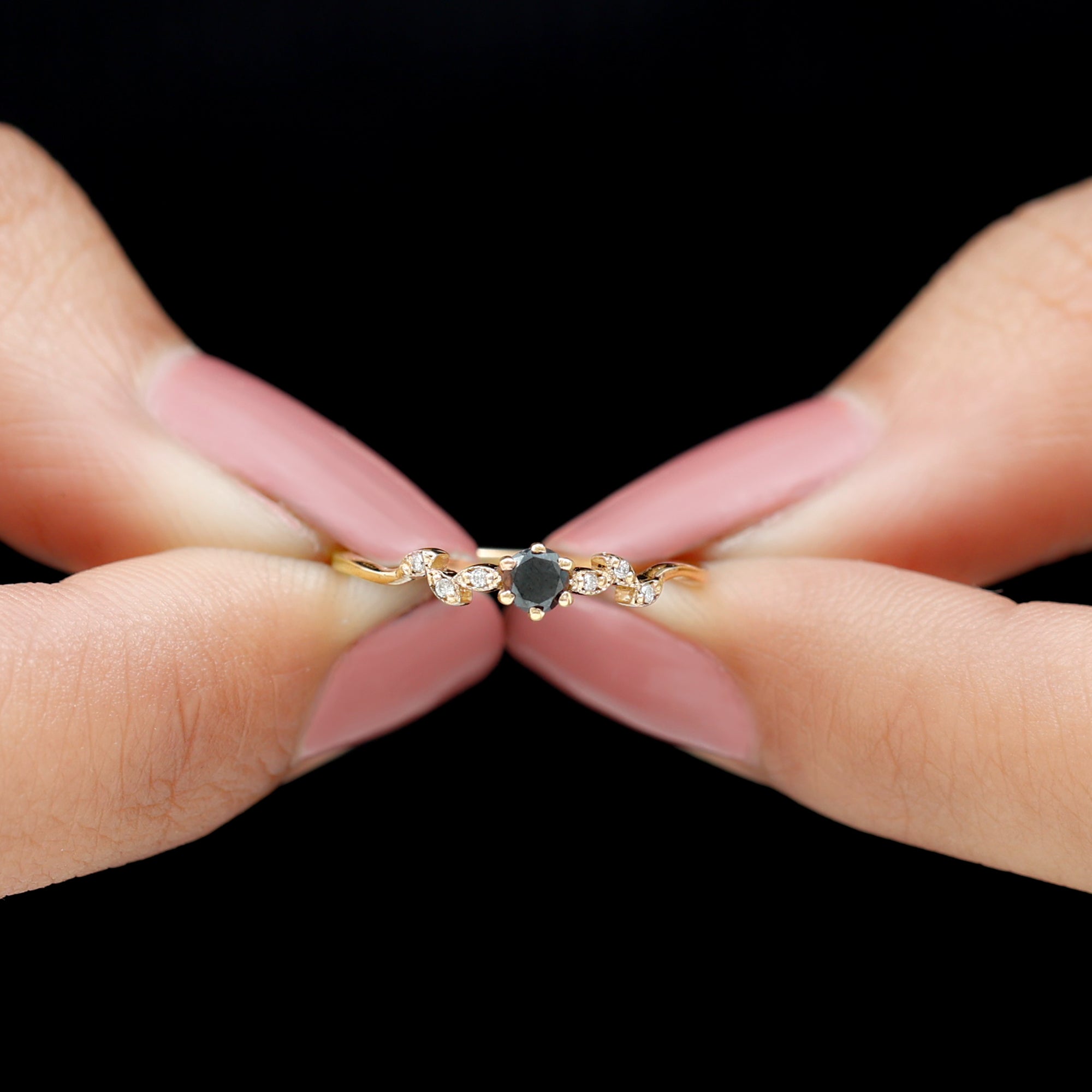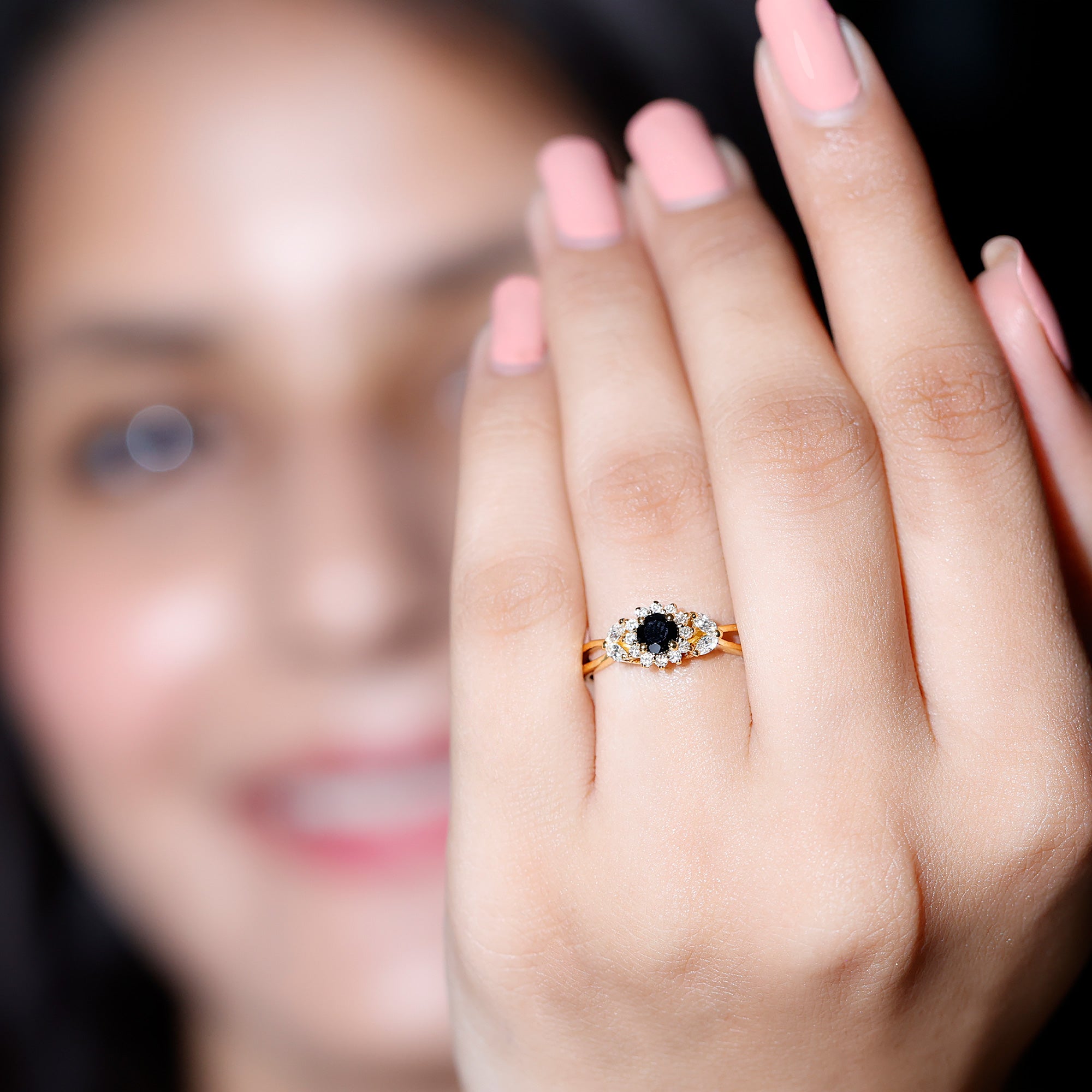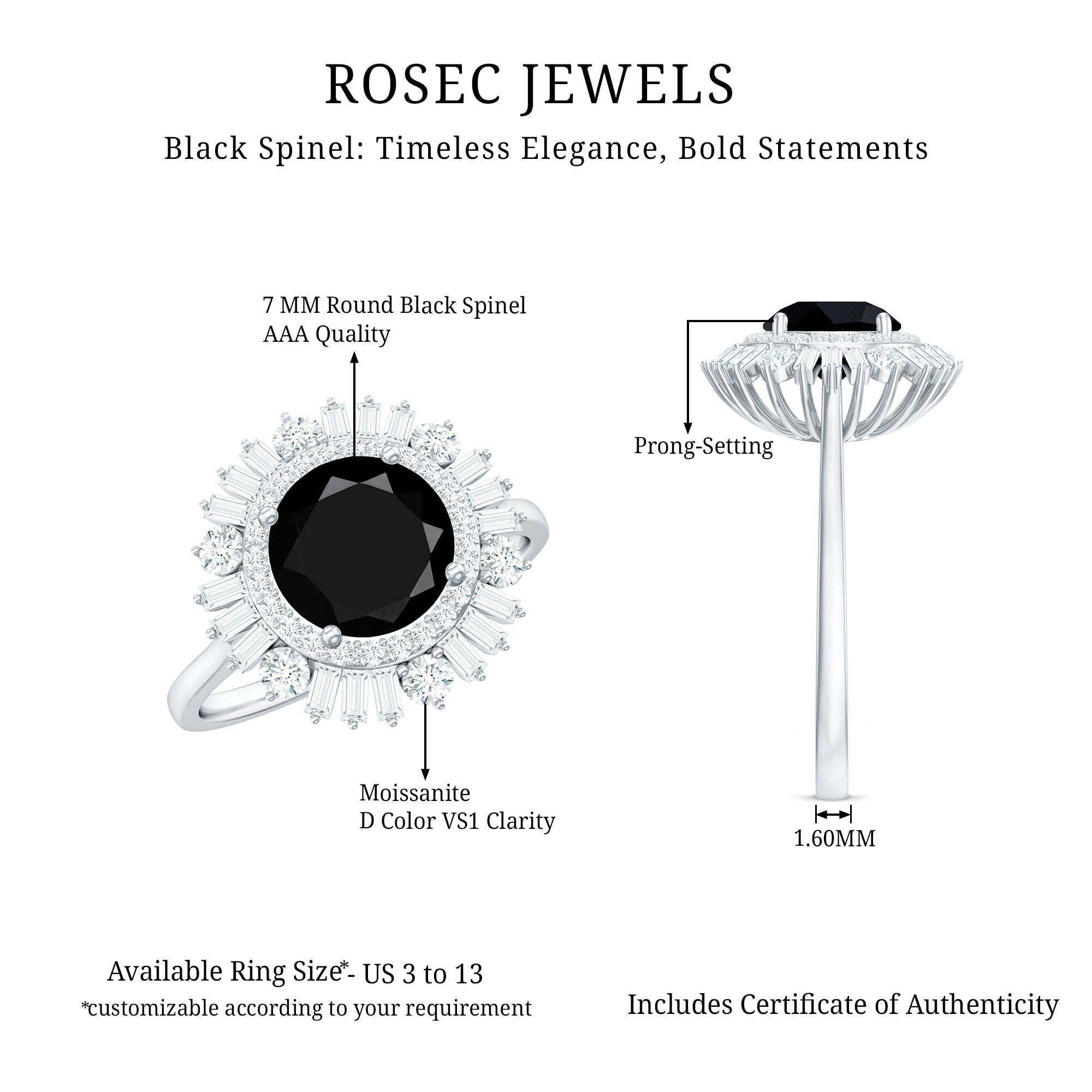 Lending an interesting visual appeal to the Black Spinel Solitaire Ring, a Halo encircles the Black Spinel with a parade of diamond/moissanite. The best part about a Halo is that it rewards more personality as well as an illusion of a larger-looking size to your Black Spinel. So, it is a unique blend of classic and flashy. That makes it another popular choice of the Black Spinel Engagement Ring.