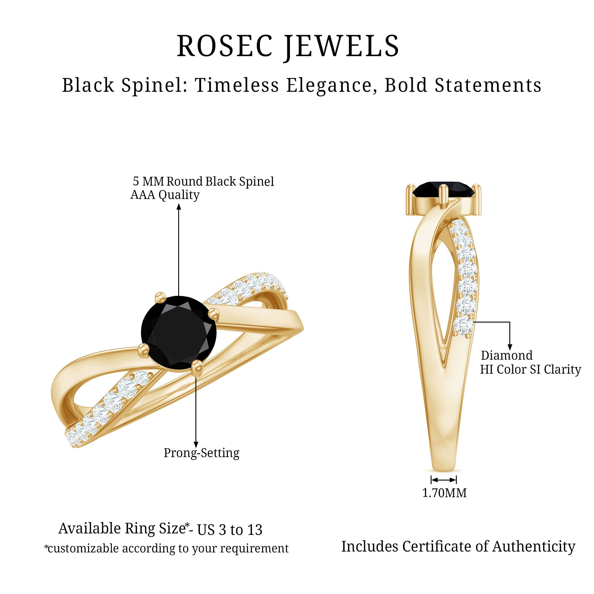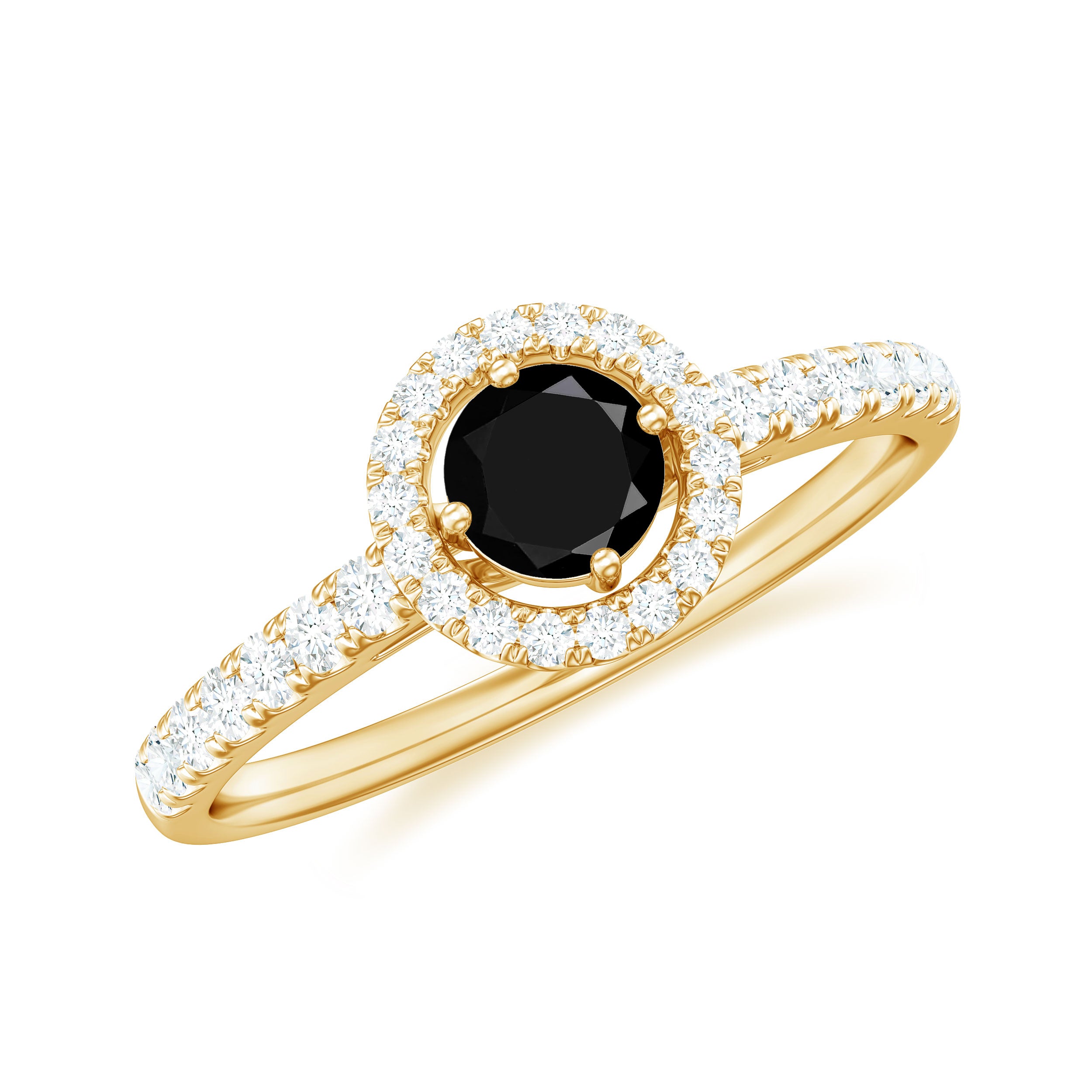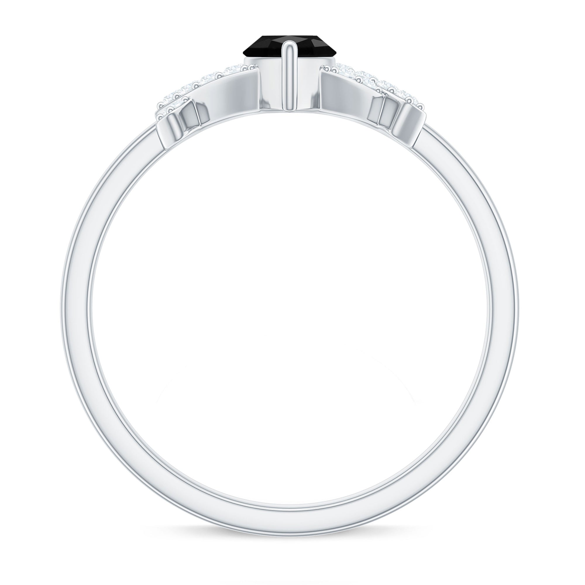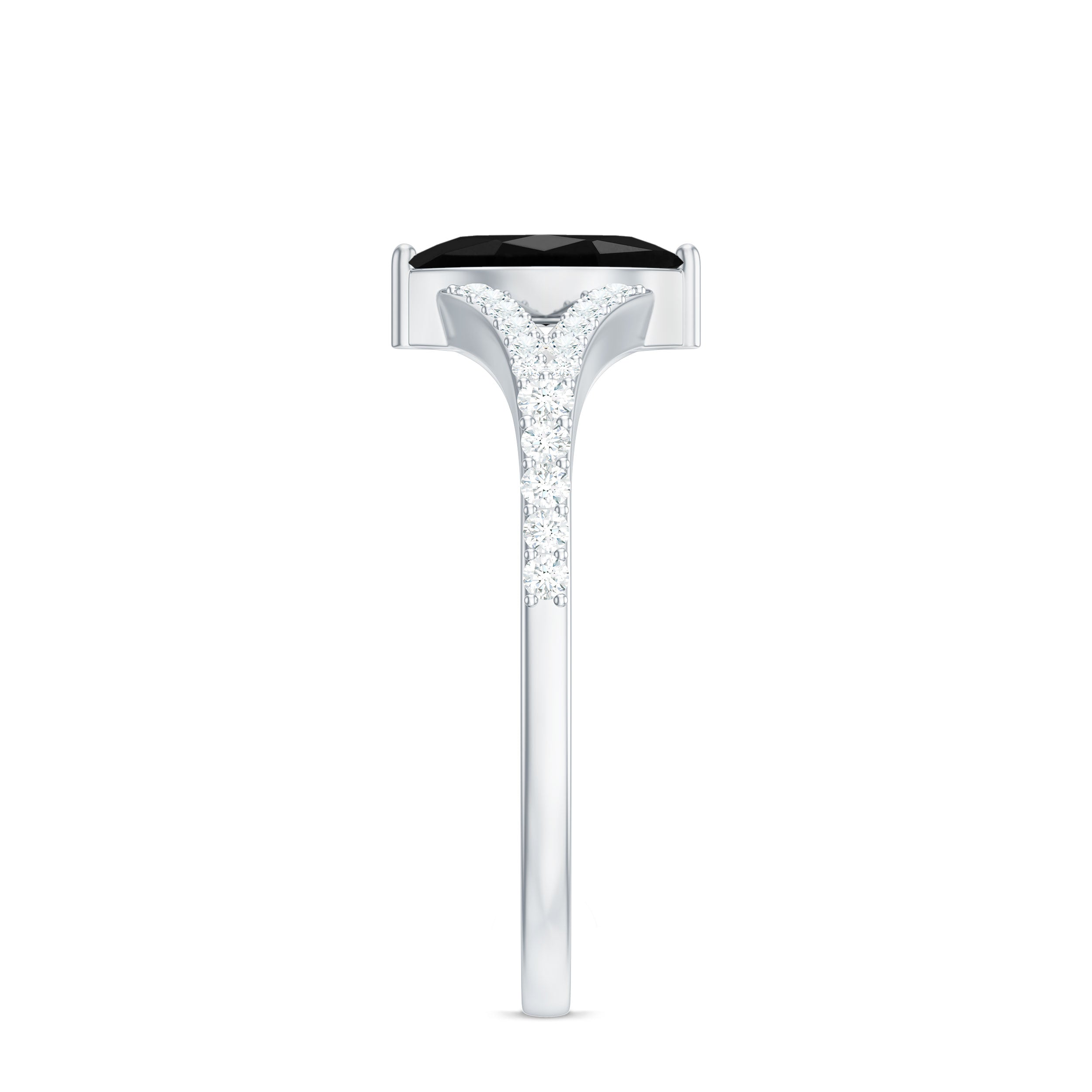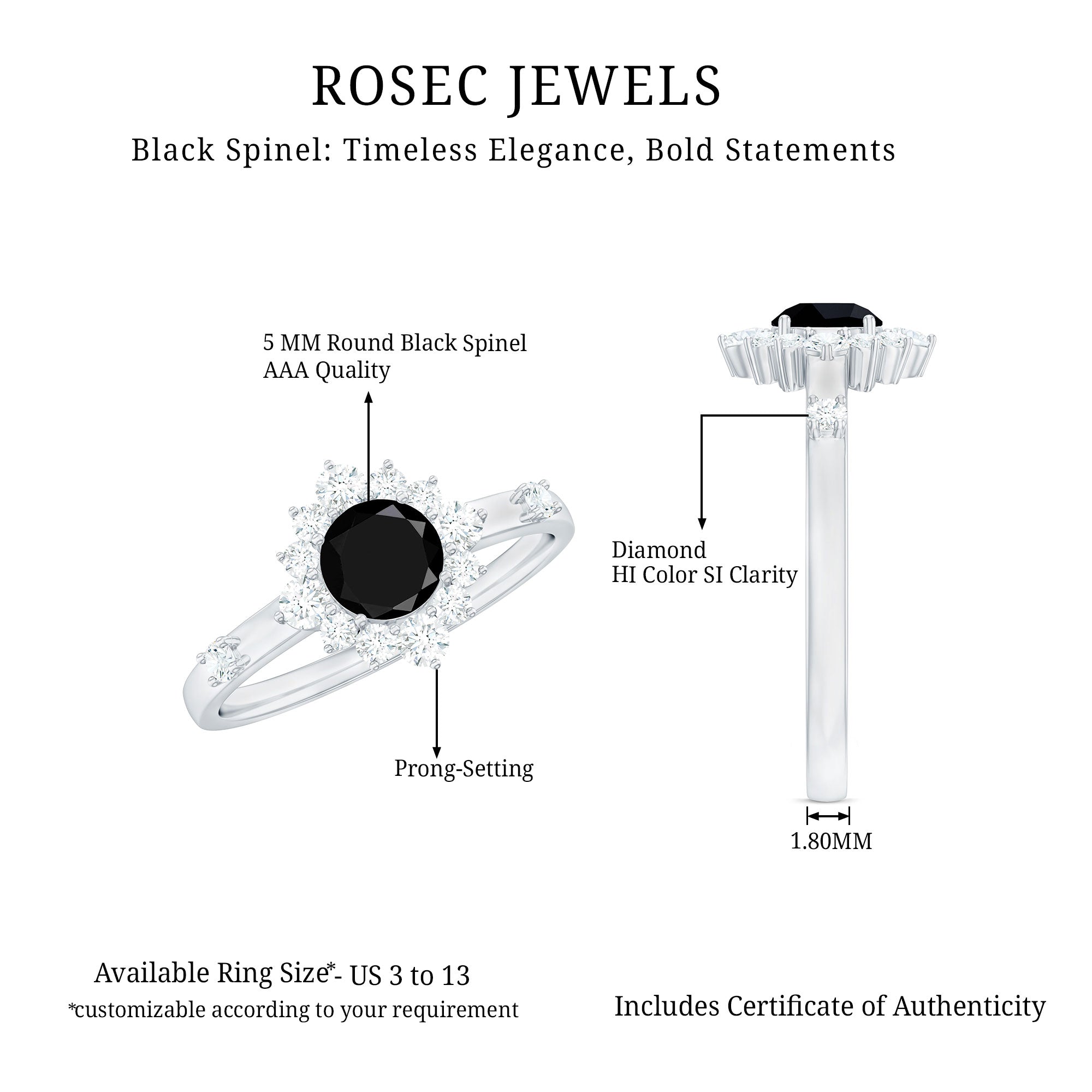 Lending an interesting visual appeal to the Black Spinel Solitaire Ring, a Halo encircles the Black Spinel with a parade of diamond/moissanite. The best part about a Halo is that it rewards more personality as well as an illusion of a larger-looking size to your Black Spinel. So, it is a unique blend of classic and flashy. That makes it another popular choice of the Black Spinel Engagement Ring.