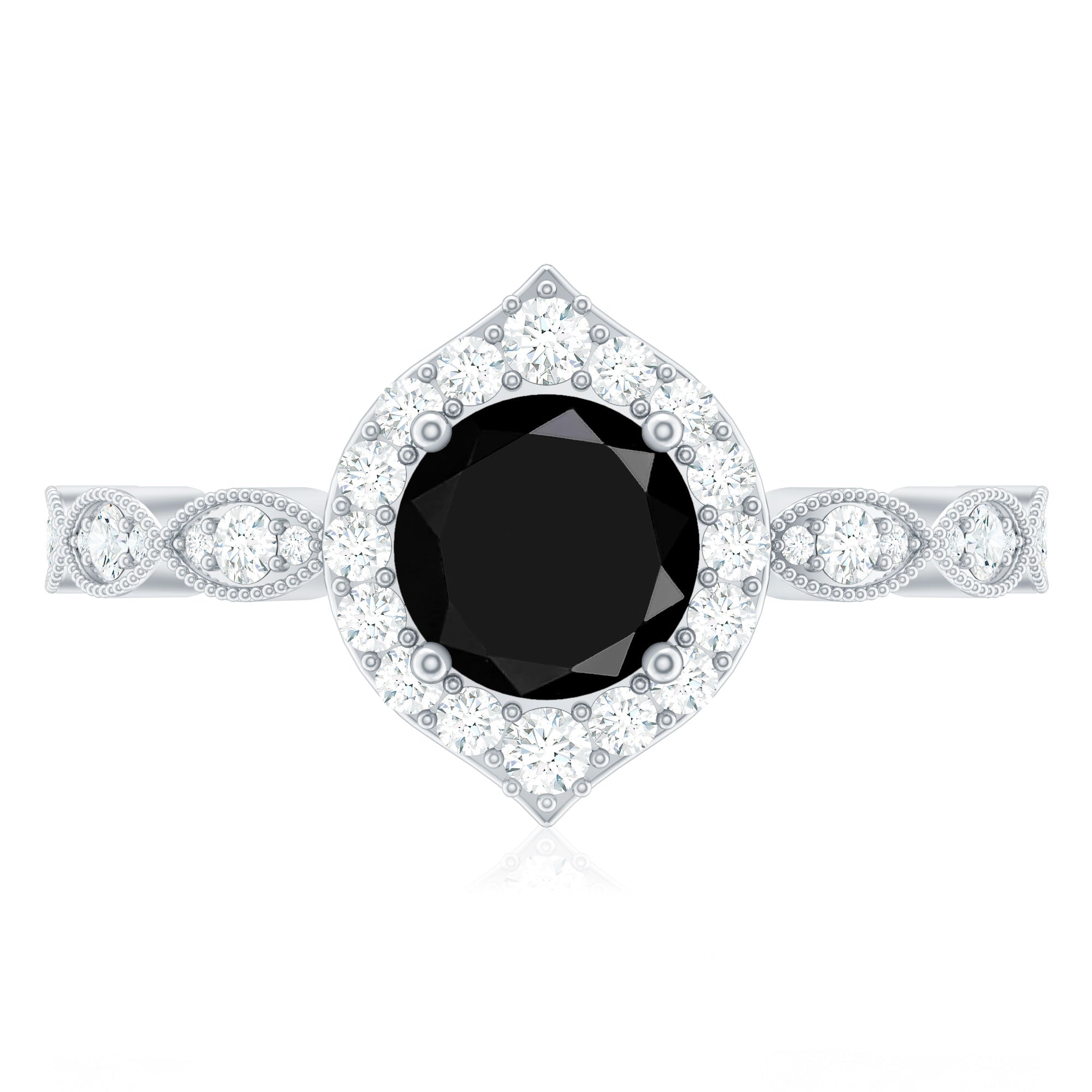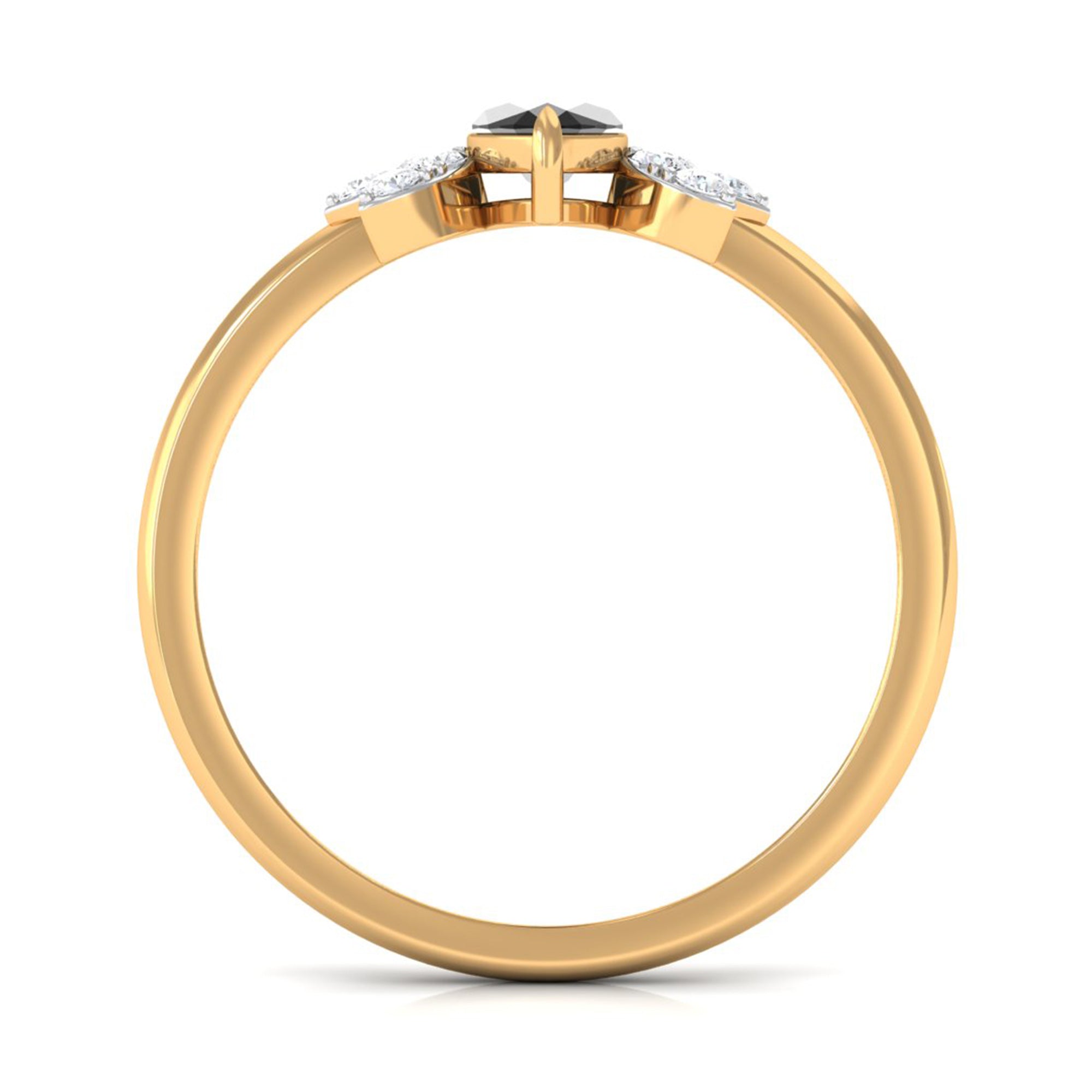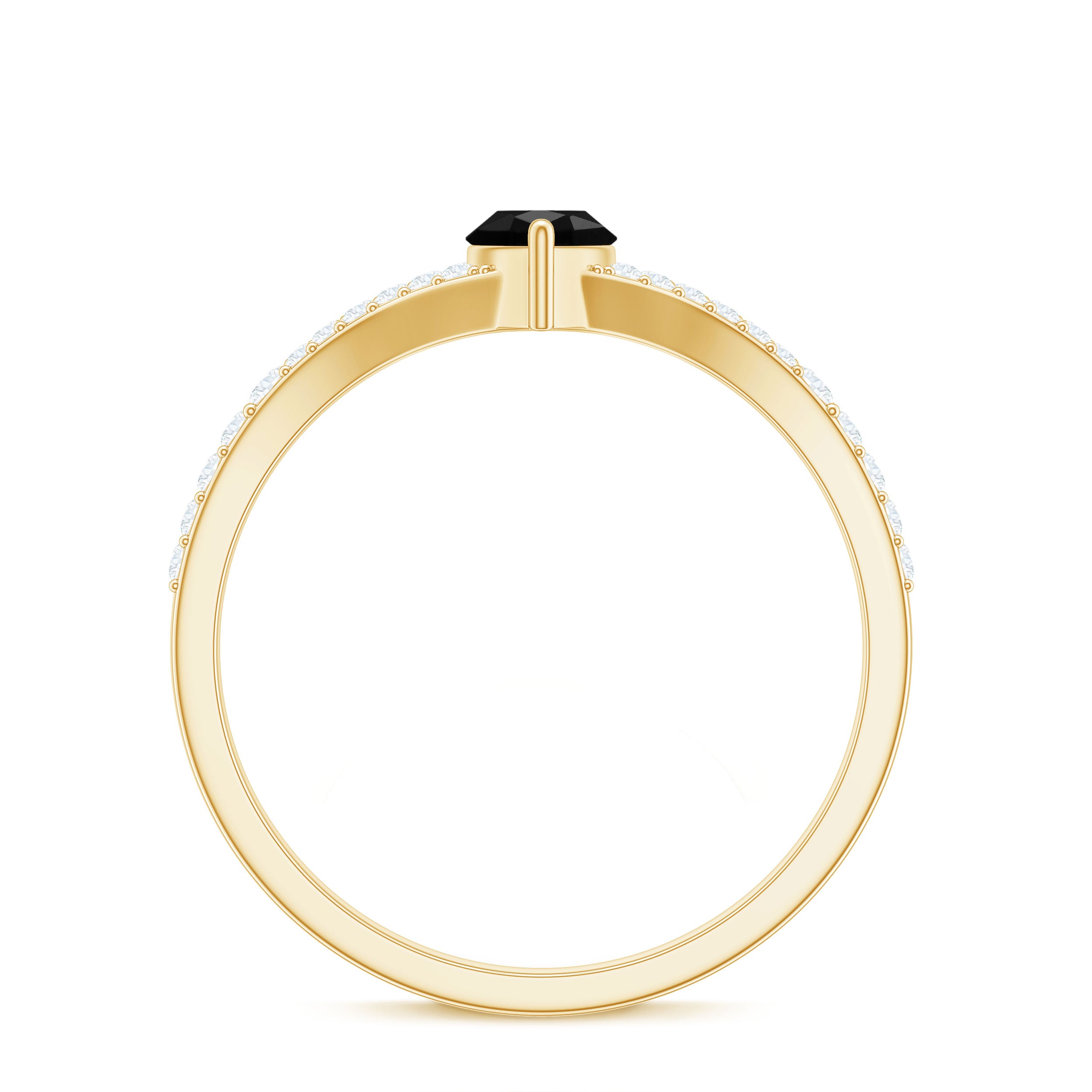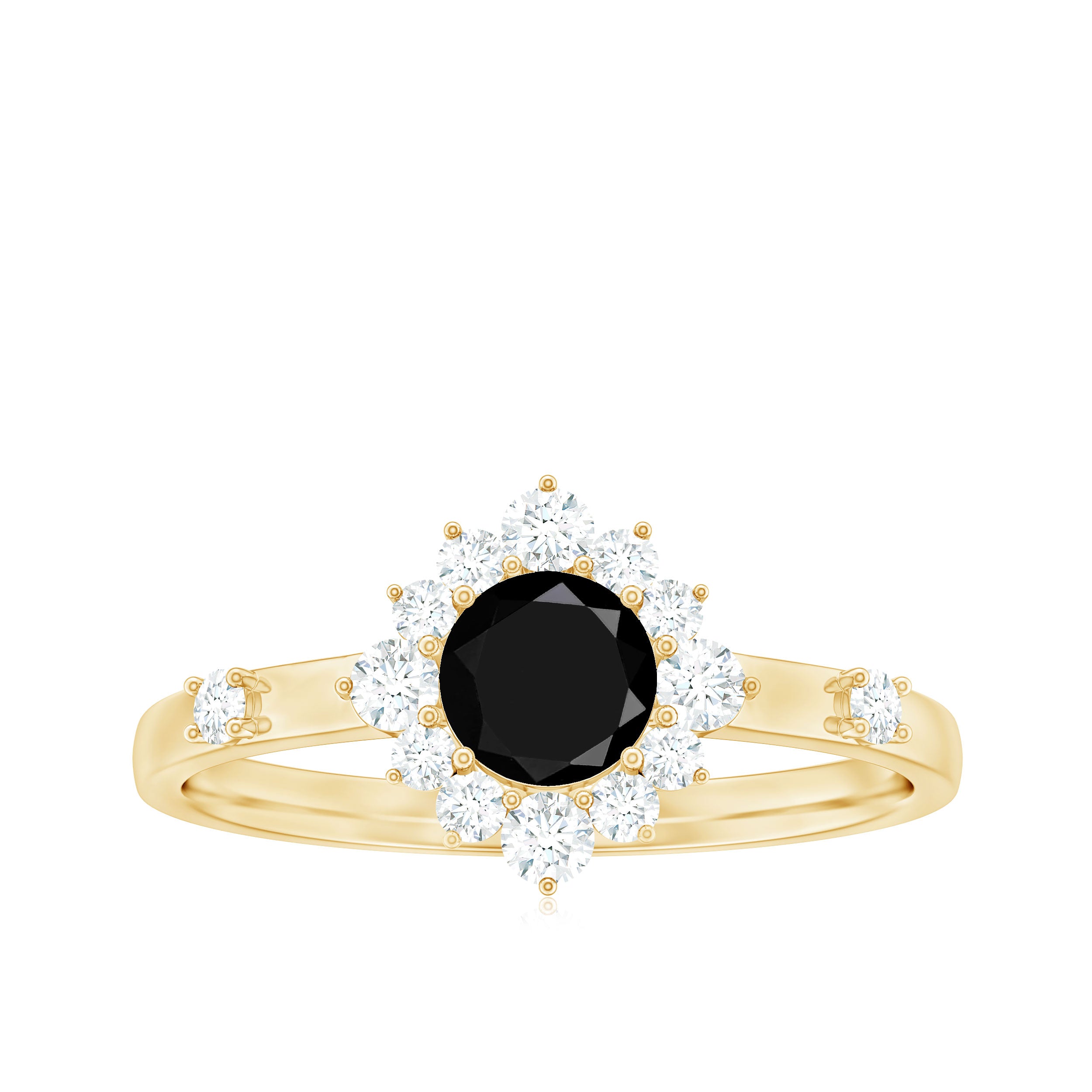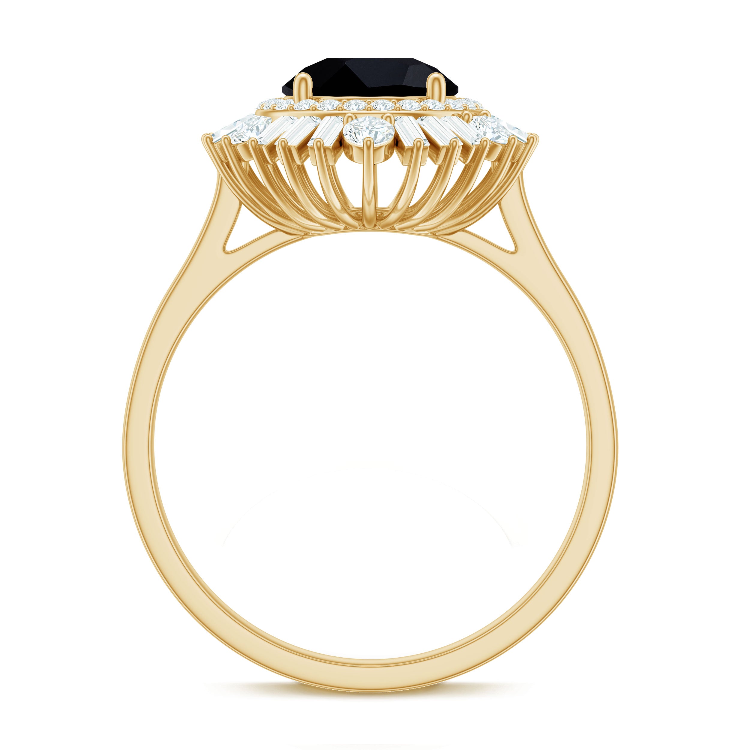 Lending an interesting visual appeal to the Black Spinel Solitaire Ring, a Halo encircles the Black Spinel with a parade of diamond/moissanite. The best part about a Halo is that it rewards more personality as well as an illusion of a larger-looking size to your Black Spinel. So, it is a unique blend of classic and flashy. That makes it another popular choice of the Black Spinel Engagement Ring.