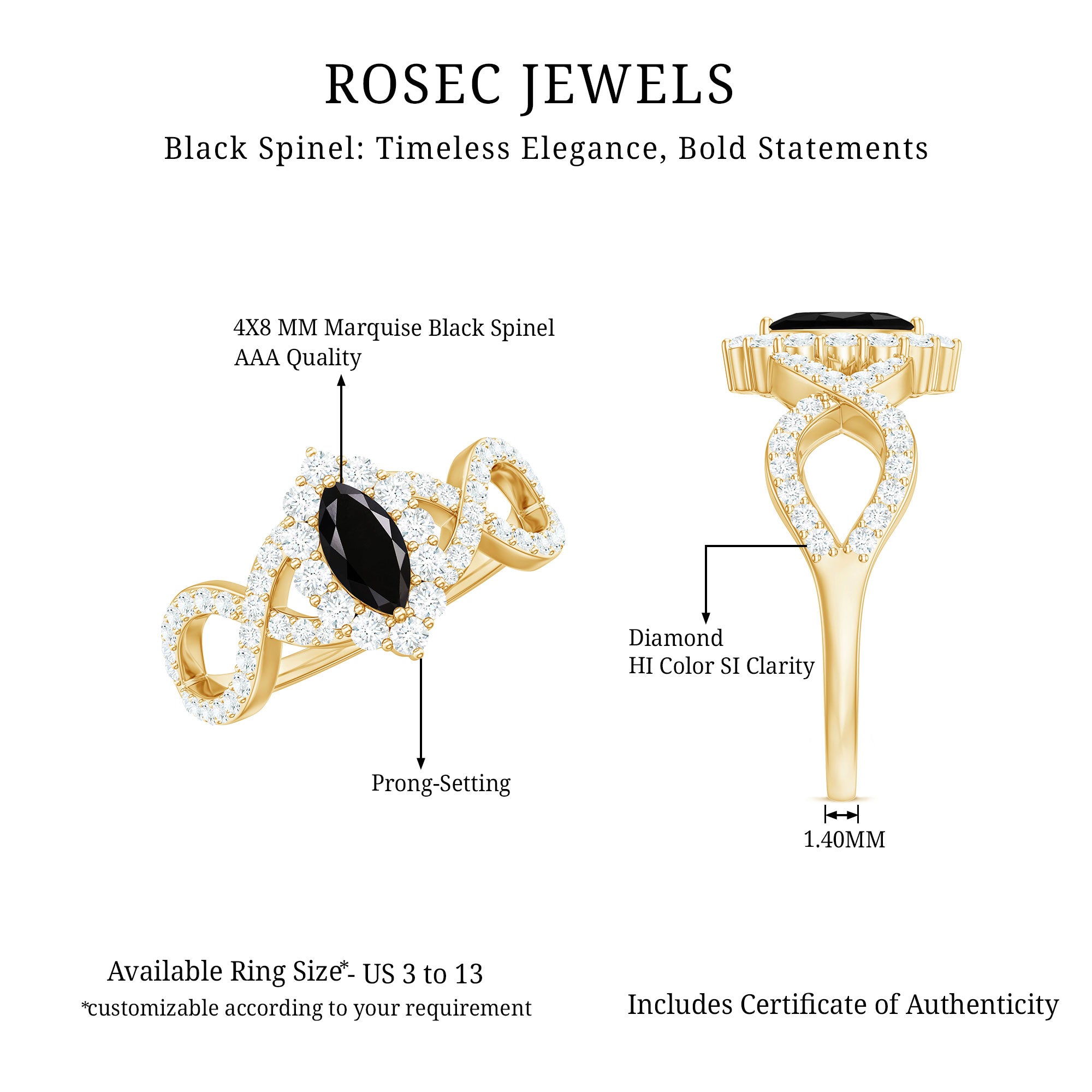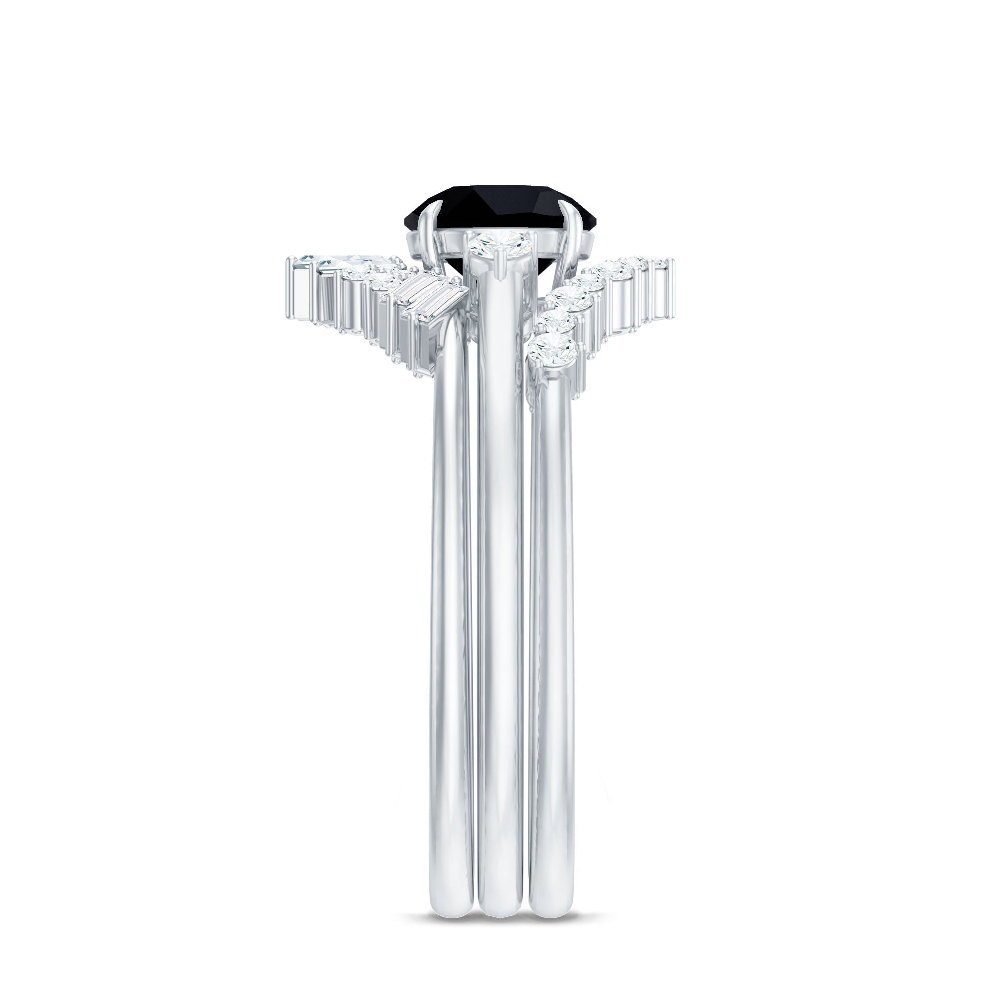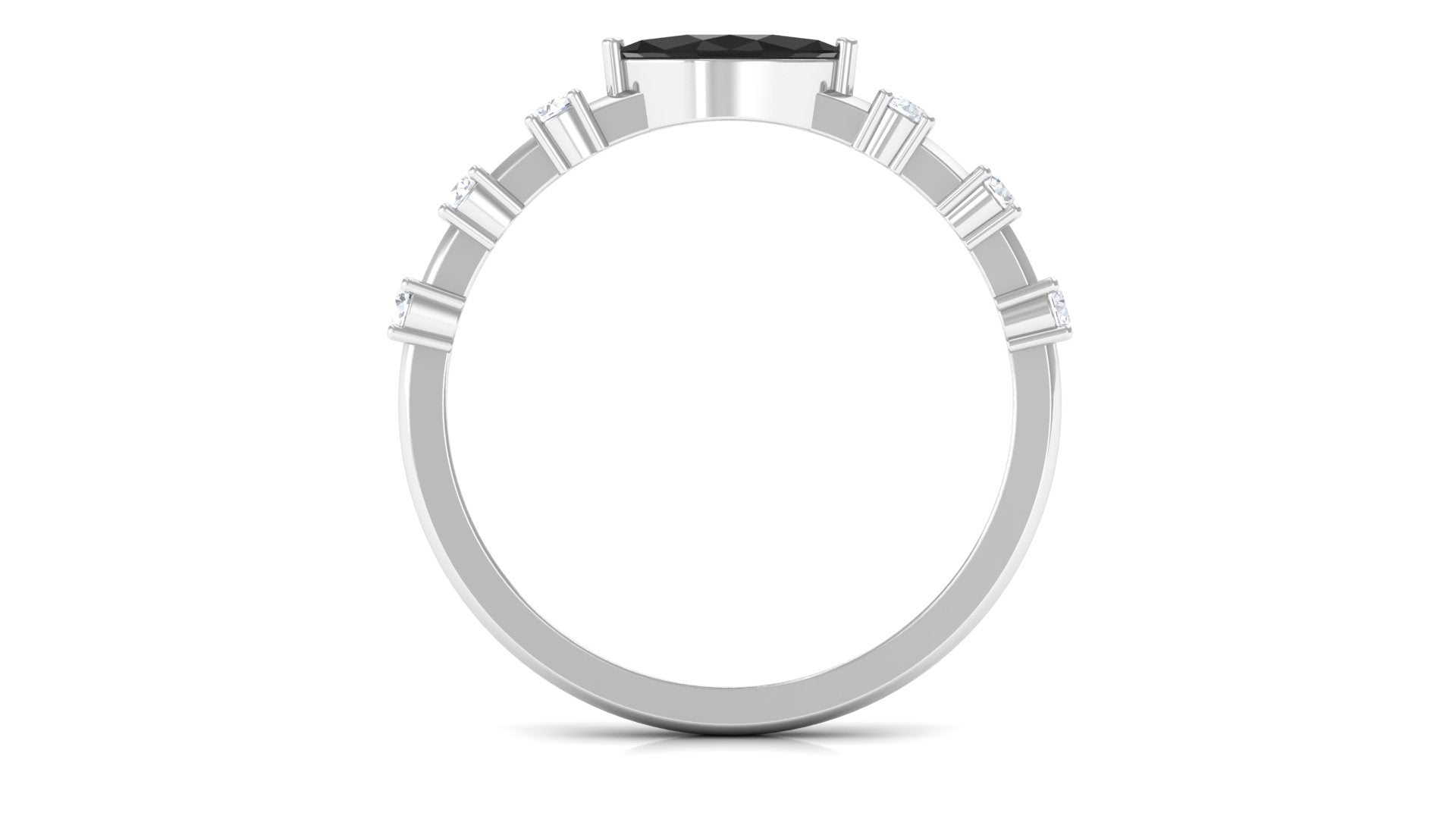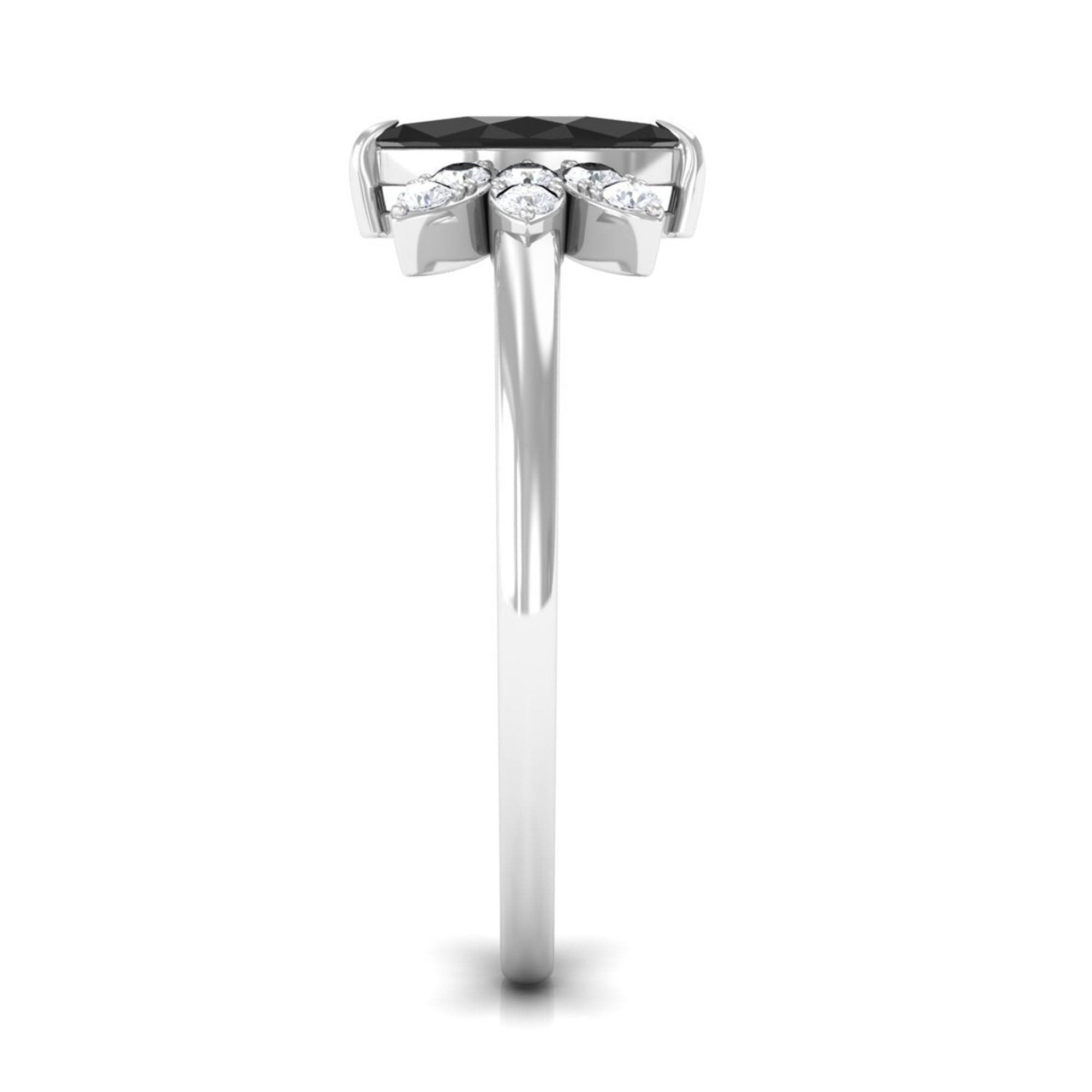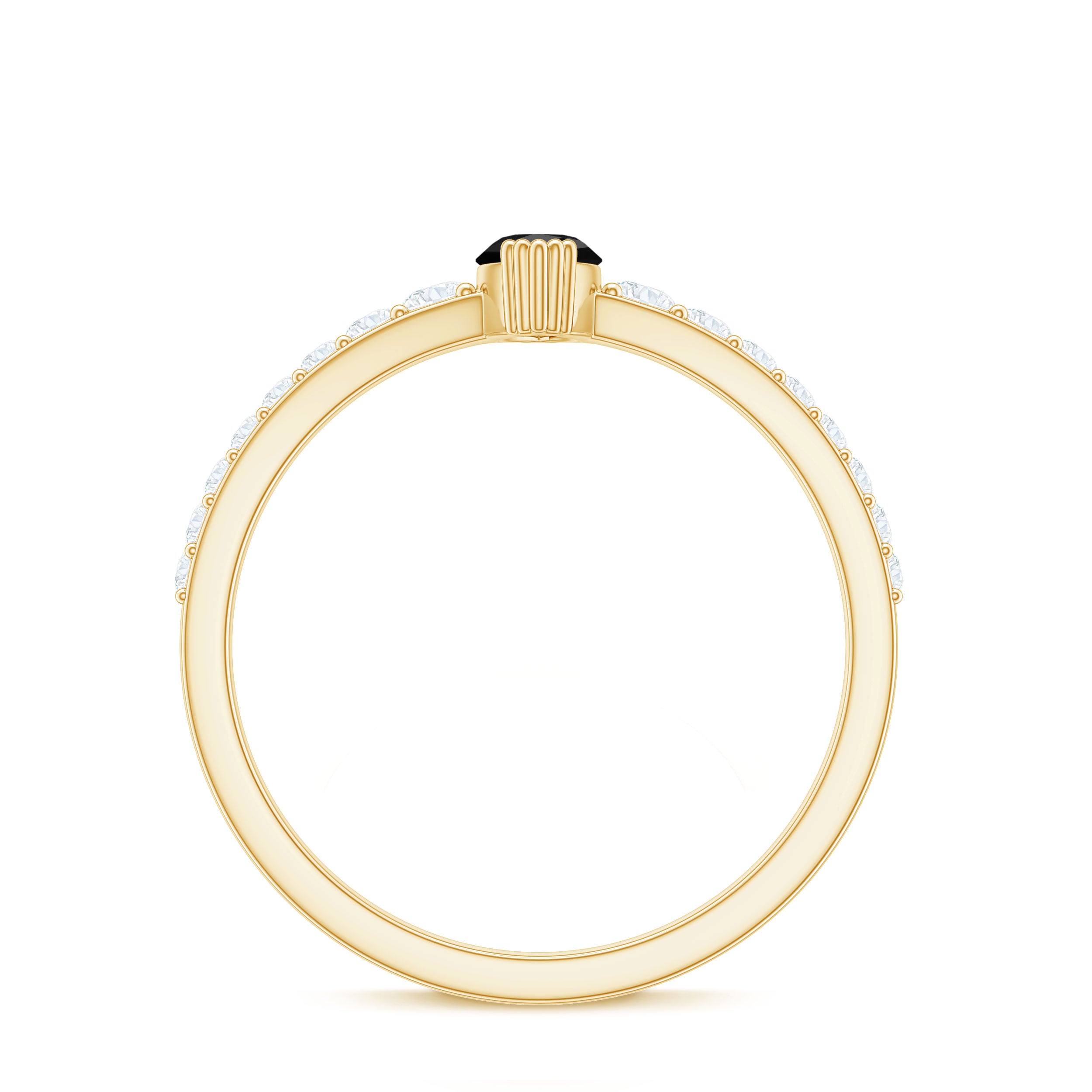 Lending an interesting visual appeal to the Black Spinel Solitaire Ring, a Halo encircles the Black Spinel with a parade of diamond/moissanite. The best part about a Halo is that it rewards more personality as well as an illusion of a larger-looking size to your Black Spinel. So, it is a unique blend of classic and flashy. That makes it another popular choice of the Black Spinel Engagement Ring.