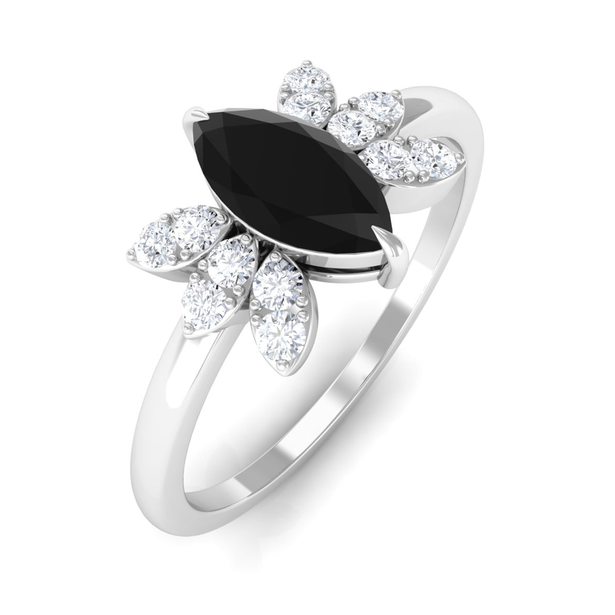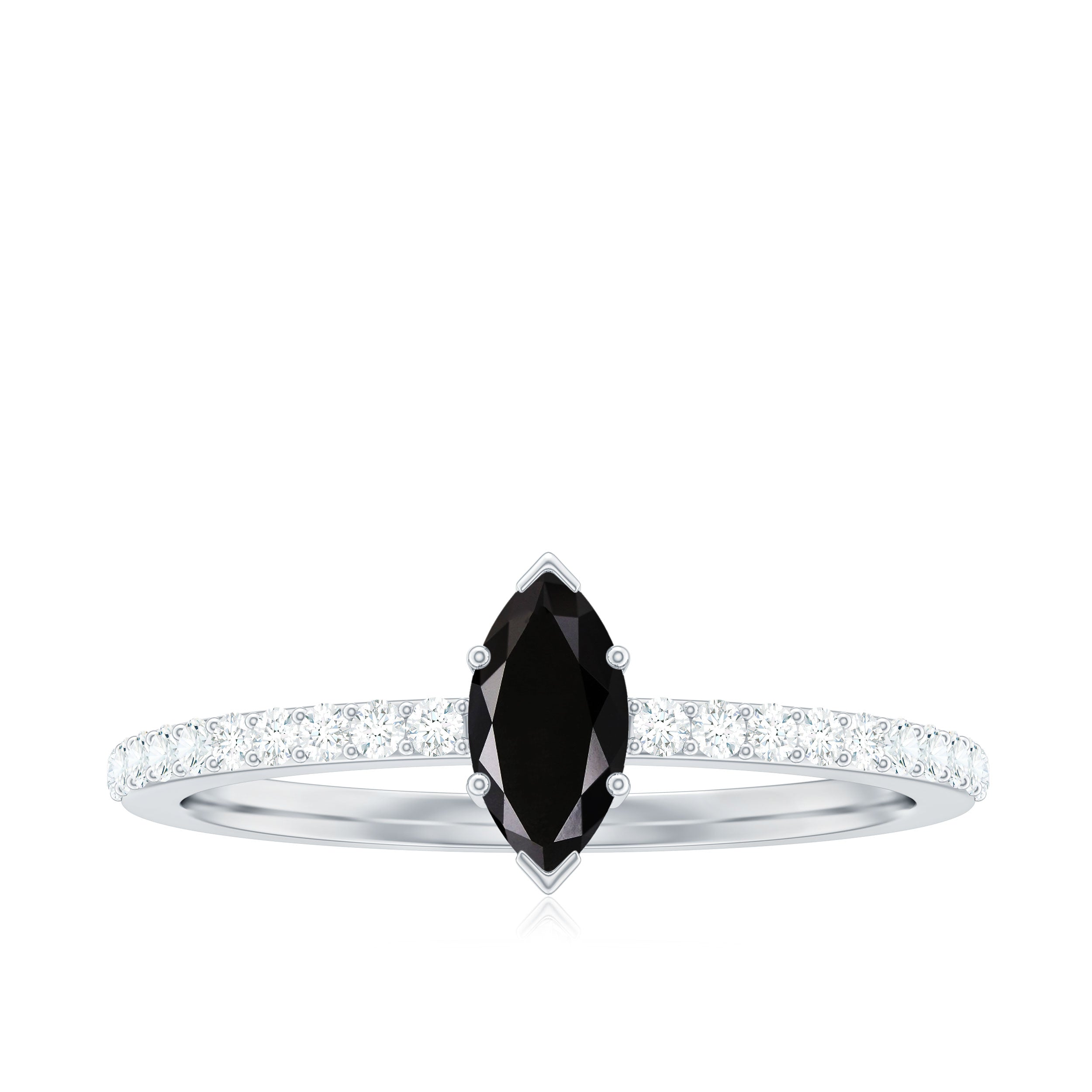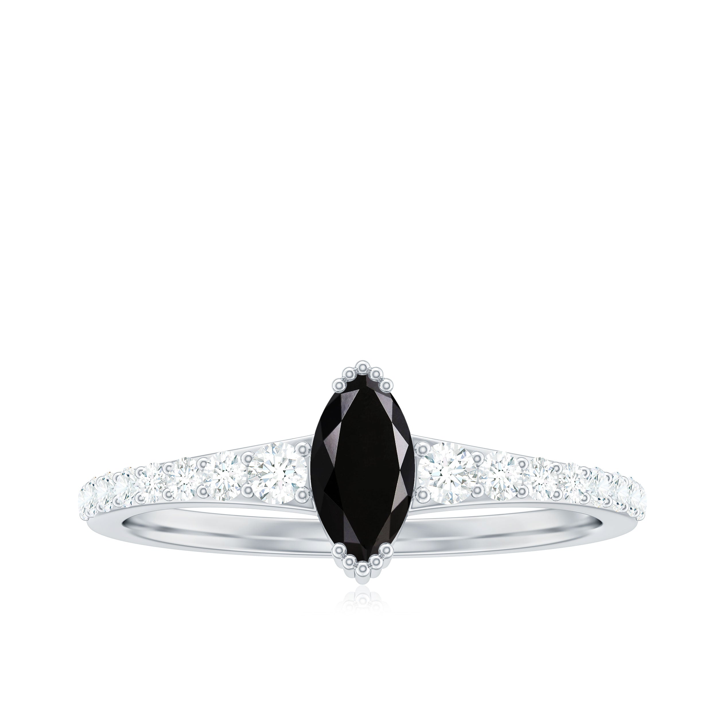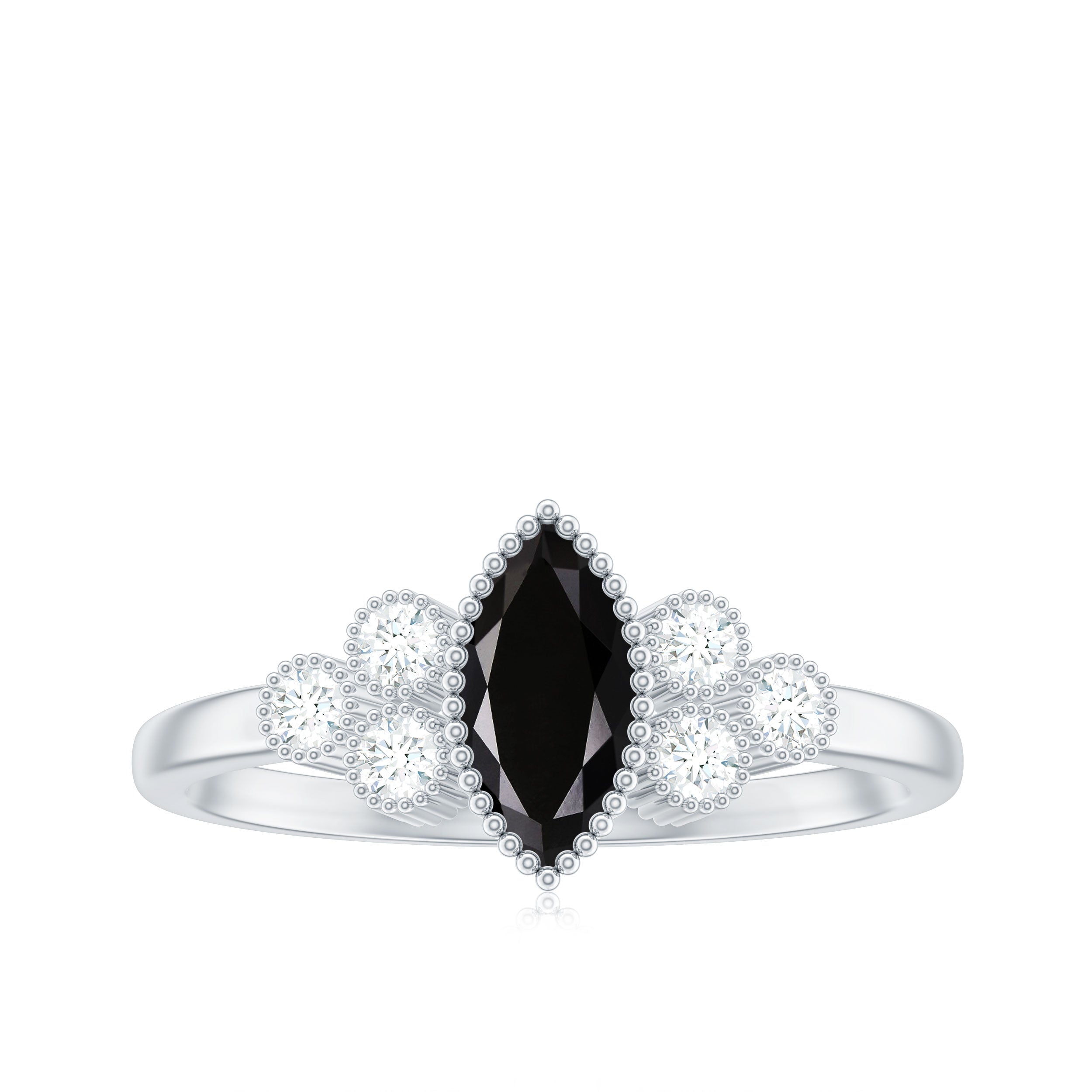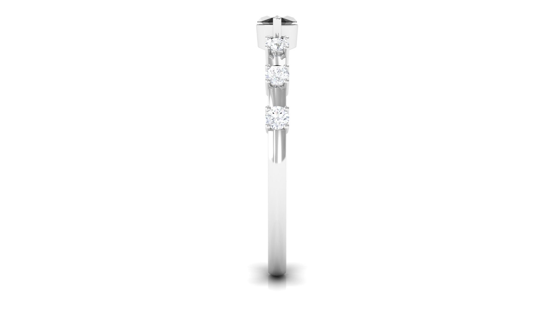 Lending an interesting visual appeal to the Black Spinel Solitaire Ring, a Halo encircles the Black Spinel with a parade of diamond/moissanite. The best part about a Halo is that it rewards more personality as well as an illusion of a larger-looking size to your Black Spinel. So, it is a unique blend of classic and flashy. That makes it another popular choice of the Black Spinel Engagement Ring.