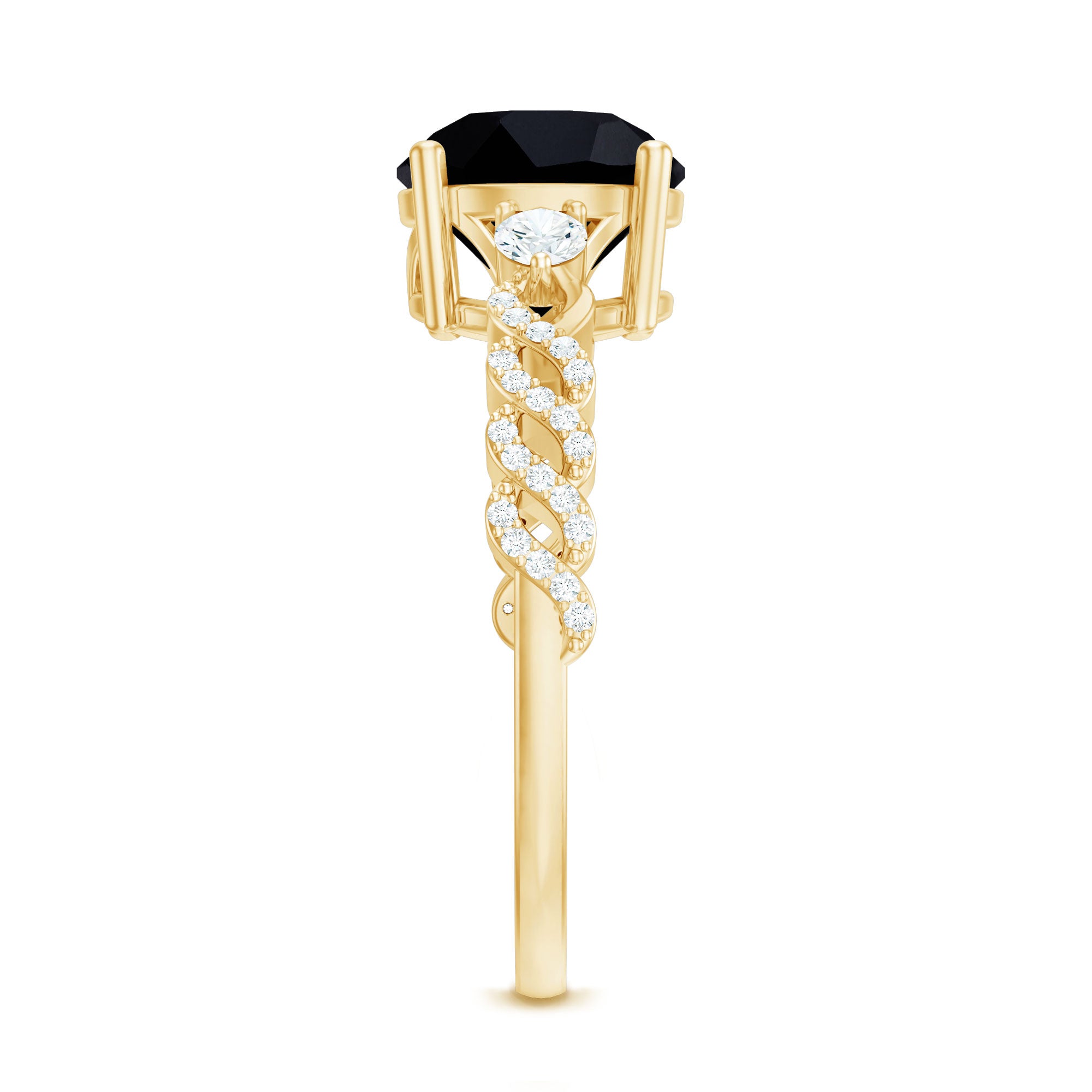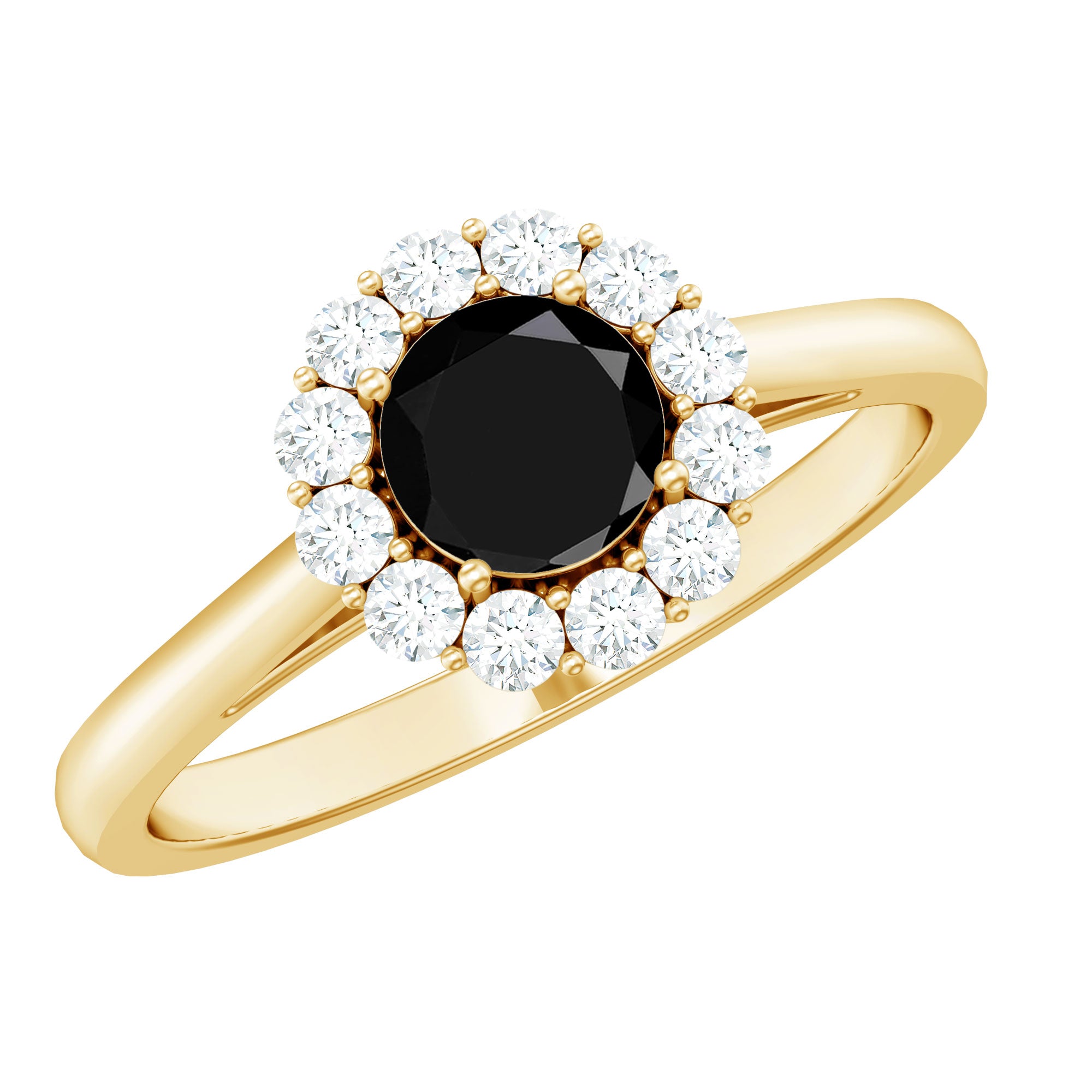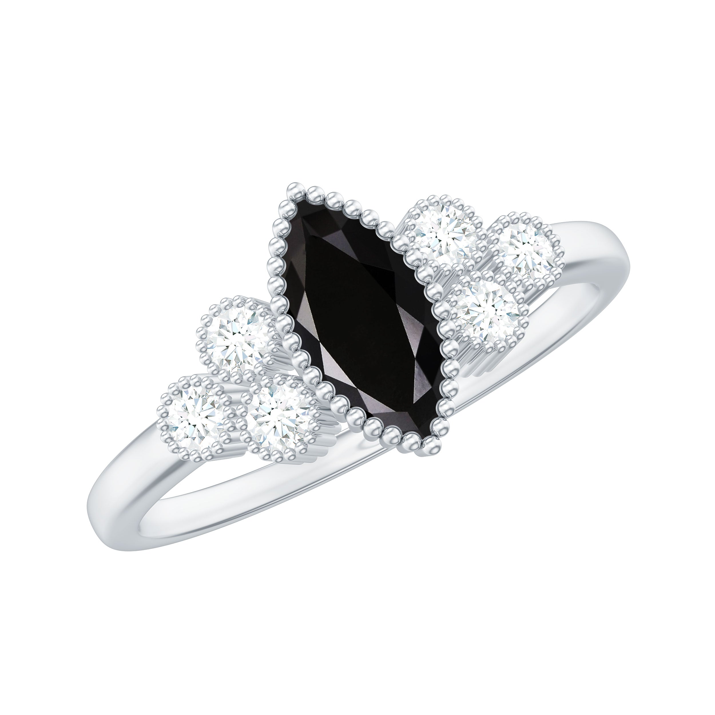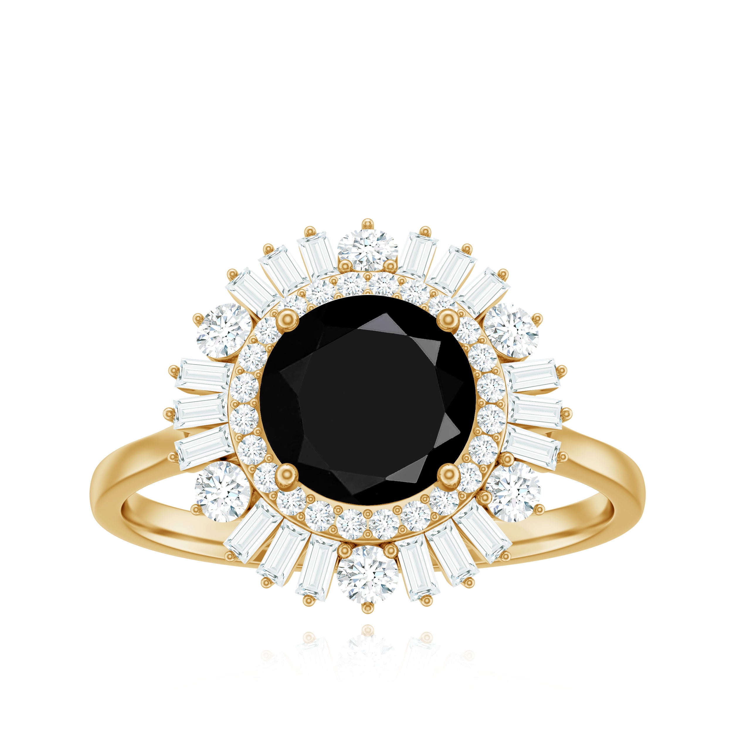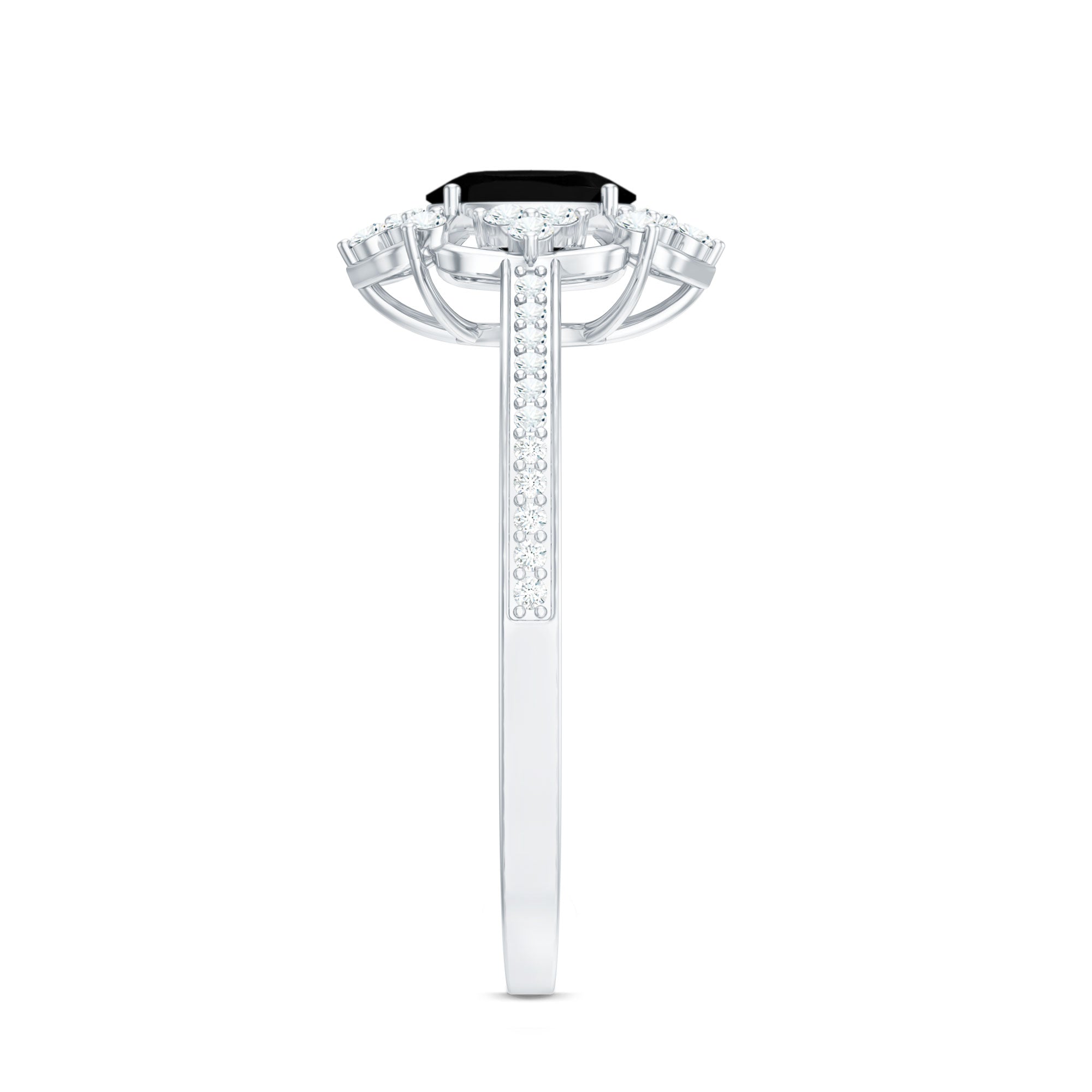 Lending an interesting visual appeal to the Black Spinel Solitaire Ring, a Halo encircles the Black Spinel with a parade of diamond/moissanite. The best part about a Halo is that it rewards more personality as well as an illusion of a larger-looking size to your Black Spinel. So, it is a unique blend of classic and flashy. That makes it another popular choice of the Black Spinel Engagement Ring.