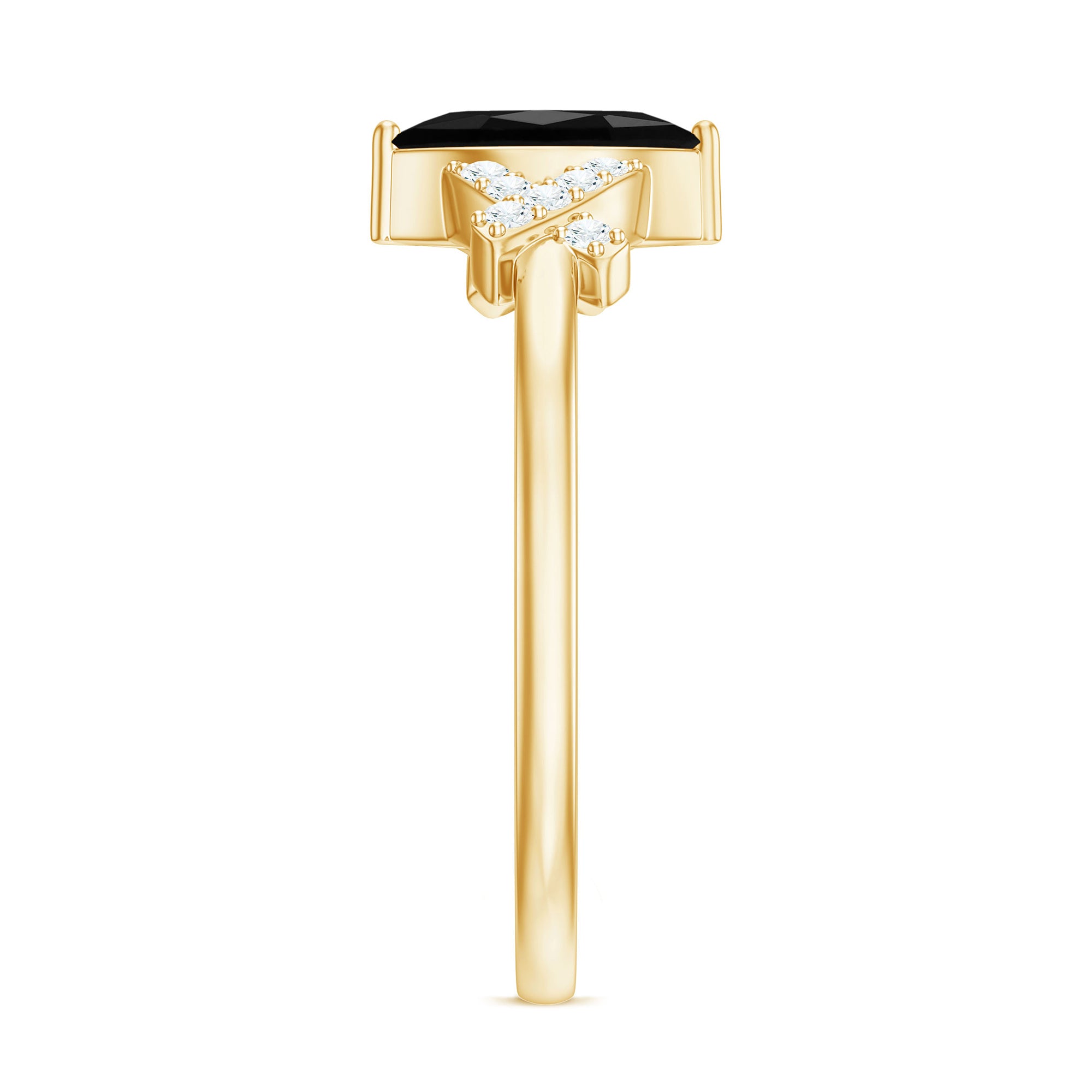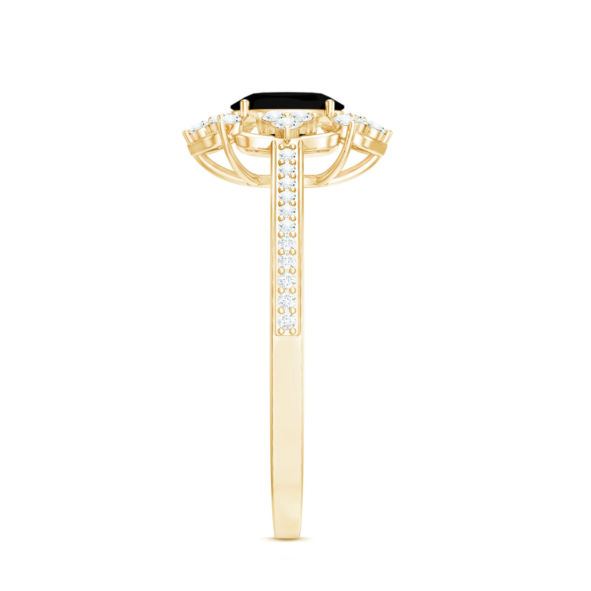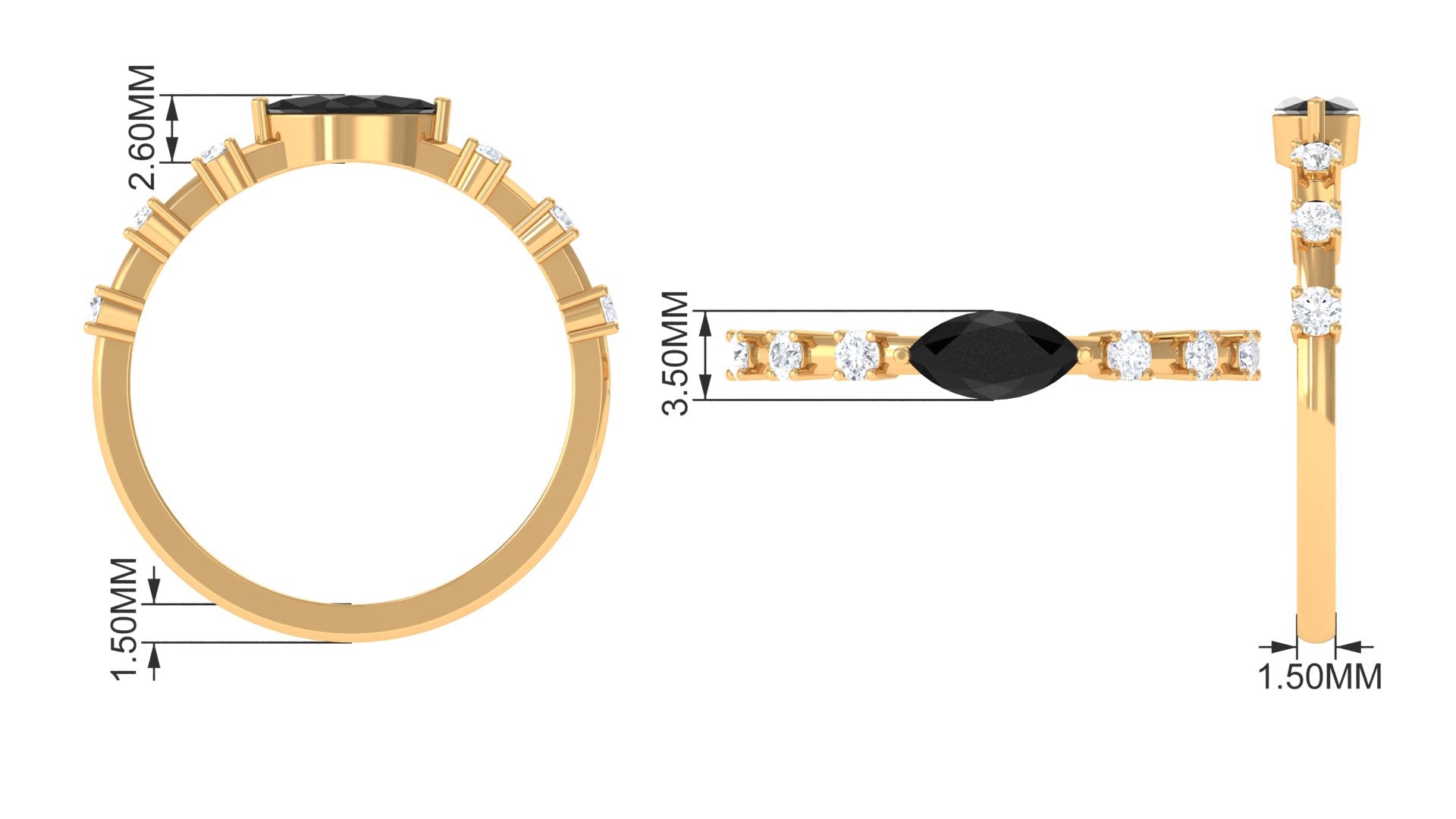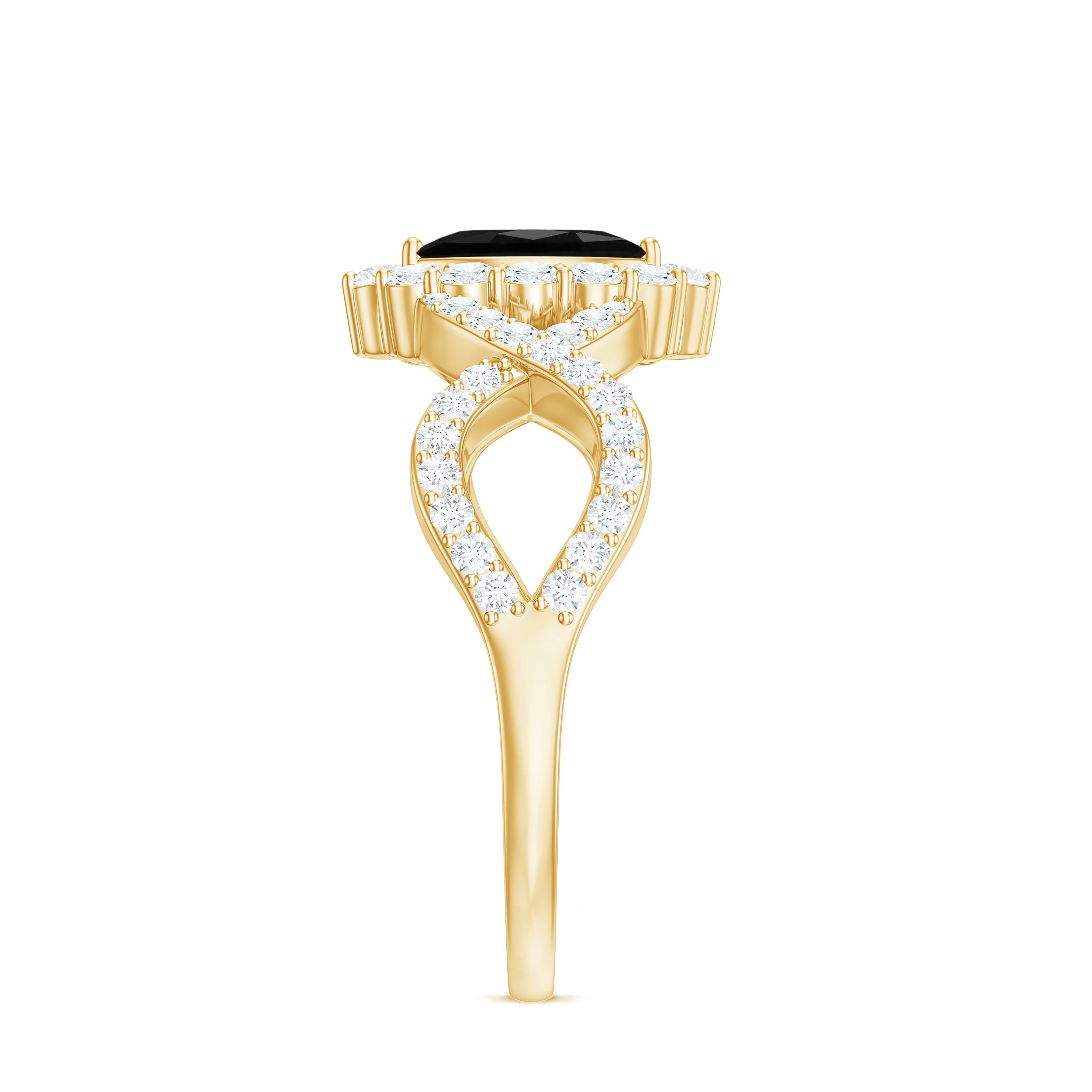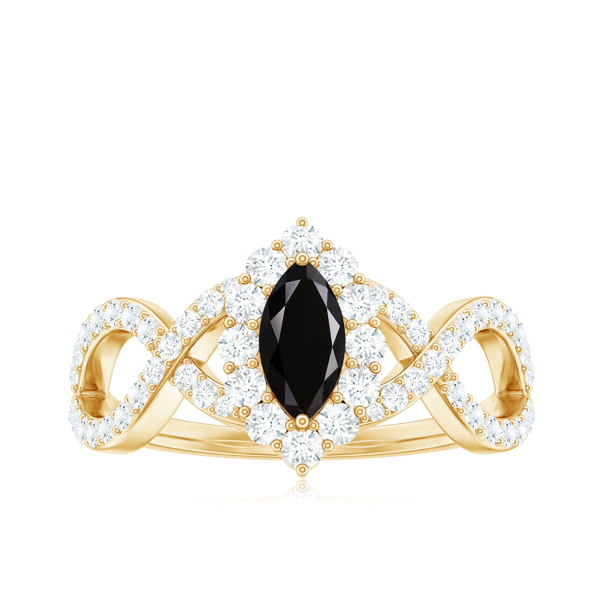 Lending an interesting visual appeal to the Black Spinel Solitaire Ring, a Halo encircles the Black Spinel with a parade of diamond/moissanite. The best part about a Halo is that it rewards more personality as well as an illusion of a larger-looking size to your Black Spinel. So, it is a unique blend of classic and flashy. That makes it another popular choice of the Black Spinel Engagement Ring.