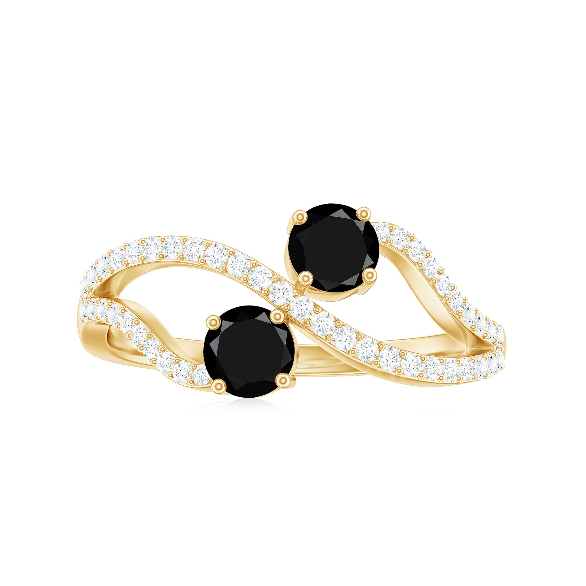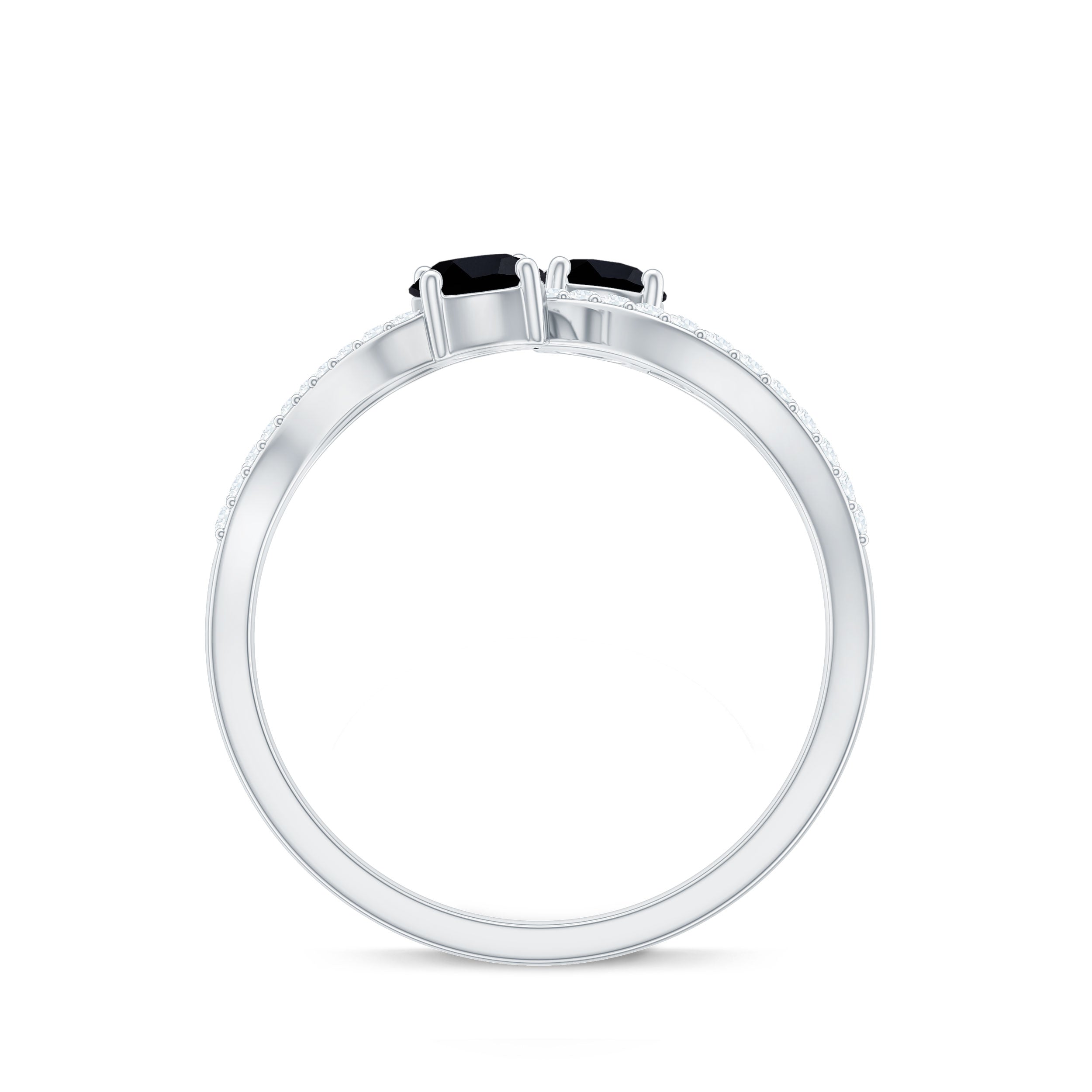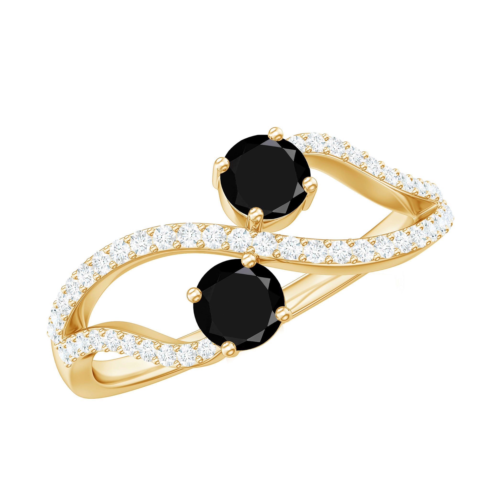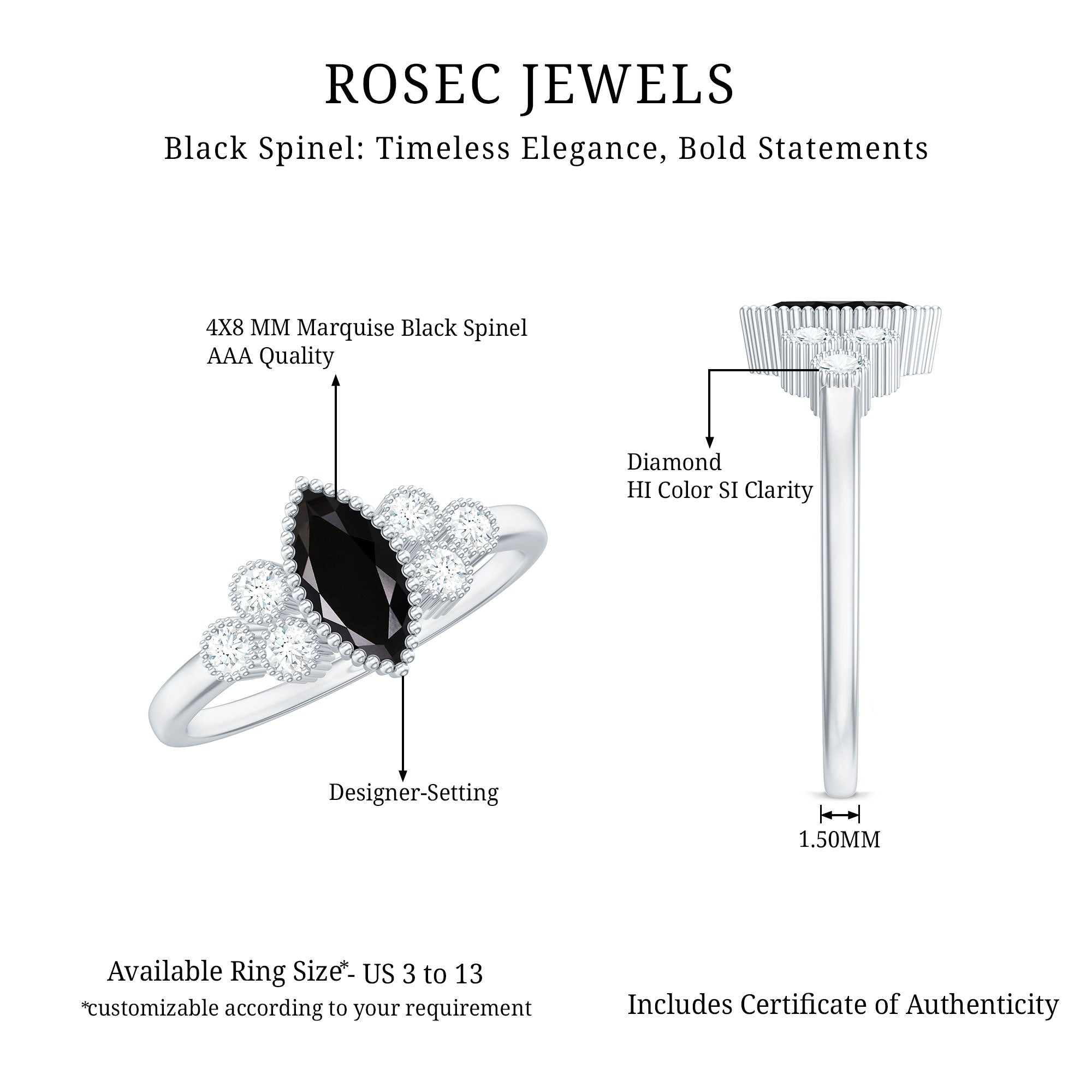 Adorned with the Centerpiece of Black Spinel that single-handedly captures all attention, a Solitaire Ring is one of the most classic choices of rings out there! The size of Black Spinel here is comparatively enormous, i.e., 6 MM or more. A Solitaire-style Black Spinel Engagement Ring is the go-to emblem of love for couples who like to abide by conventions but also fancy the bold pop of black. The Black Spinel Solitaire could range from the understated round shape to fancier Marquise, Pear, and even go beyond to give off a vintage vibe by being fashioned in princess or Cushion, Emerald, or Asscher cut.