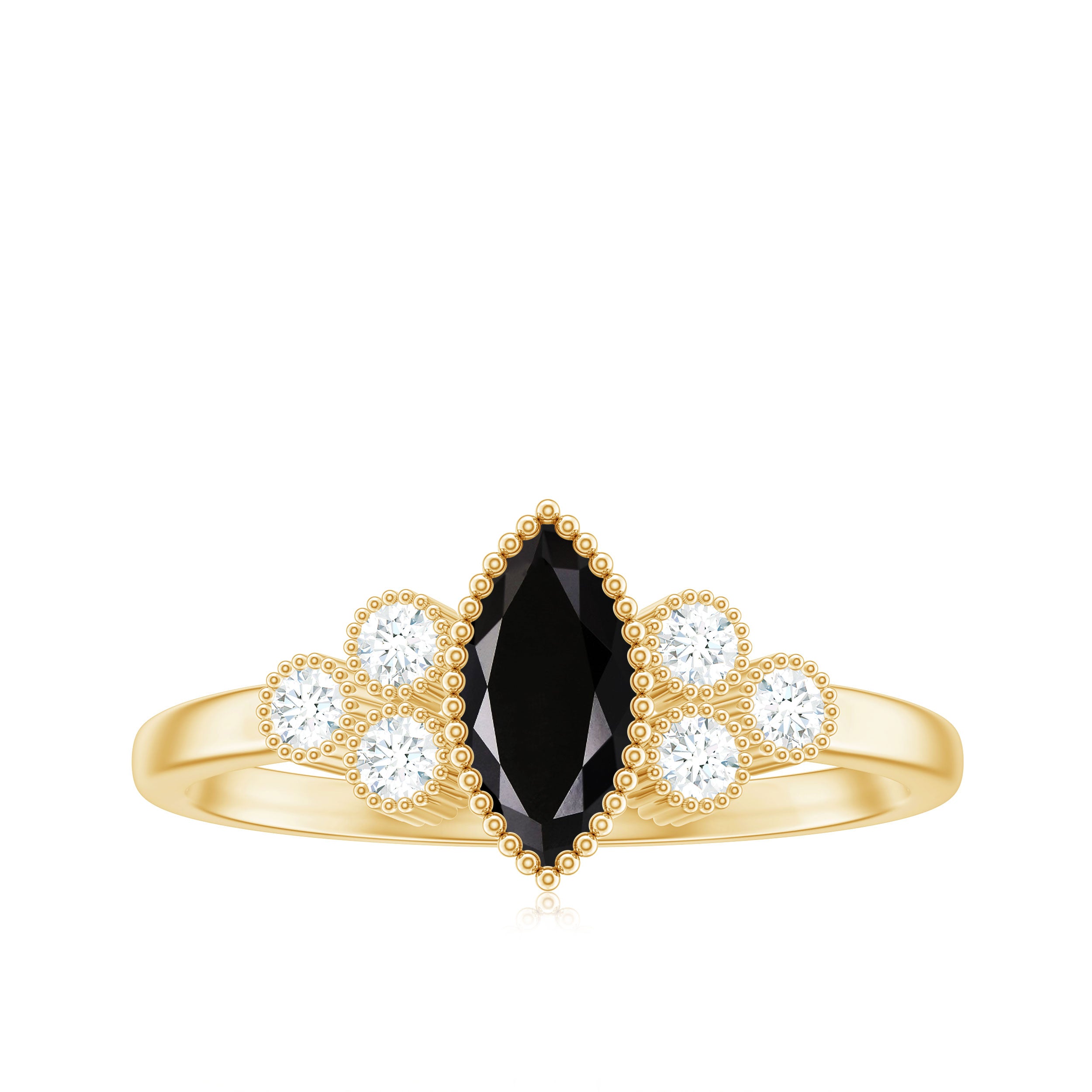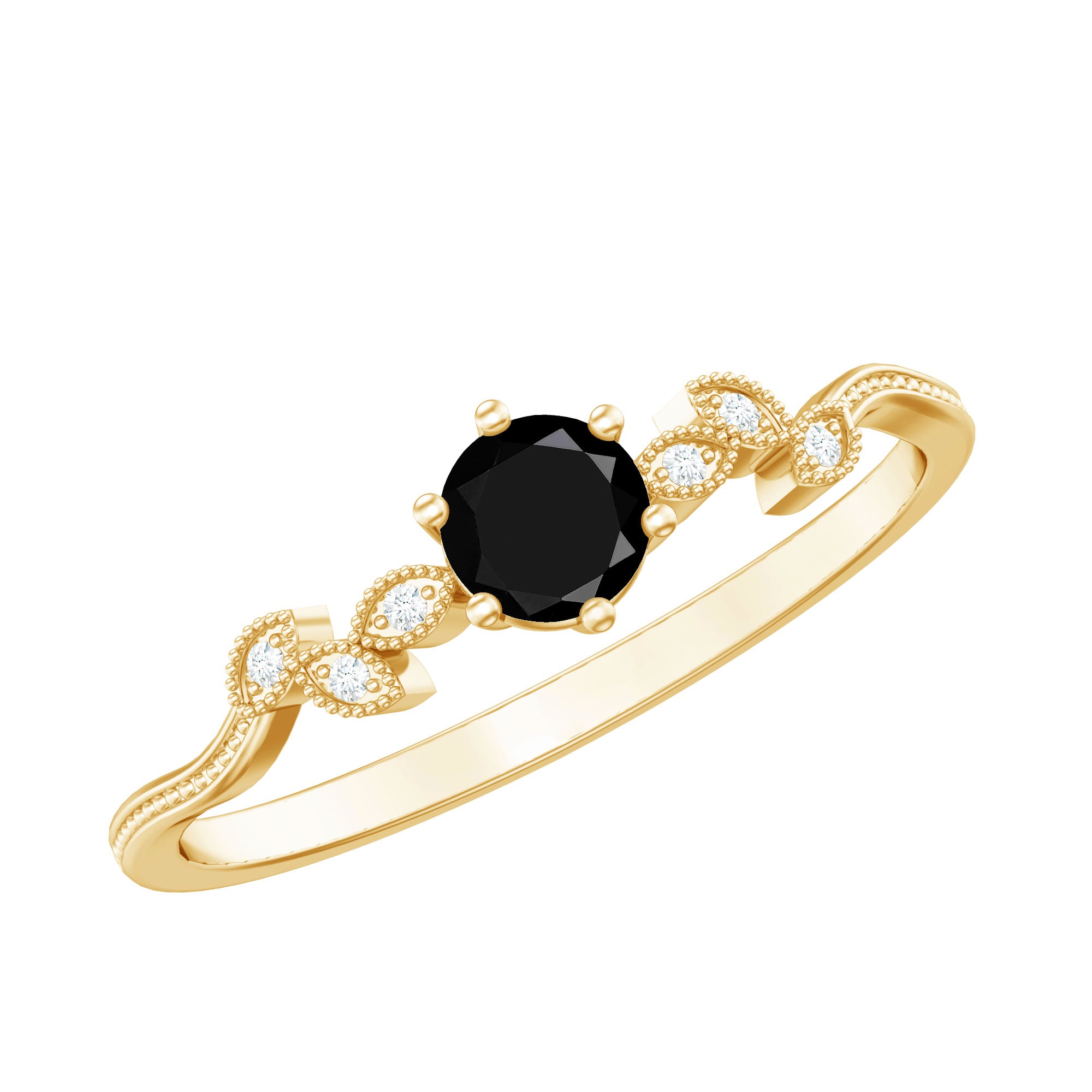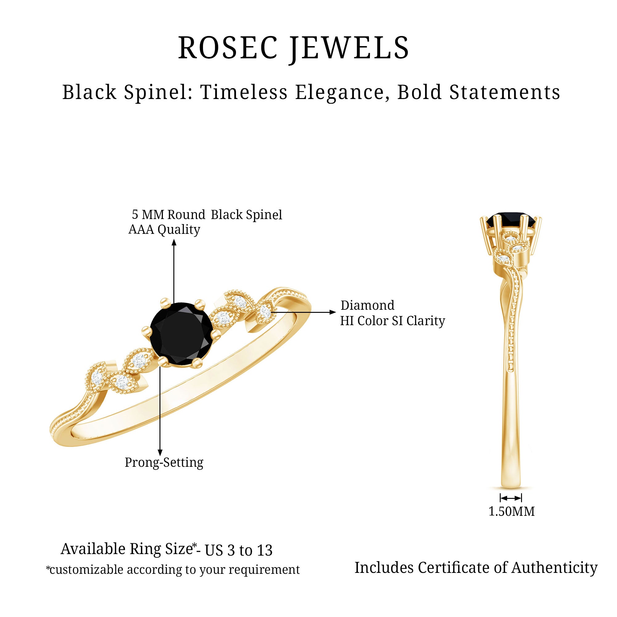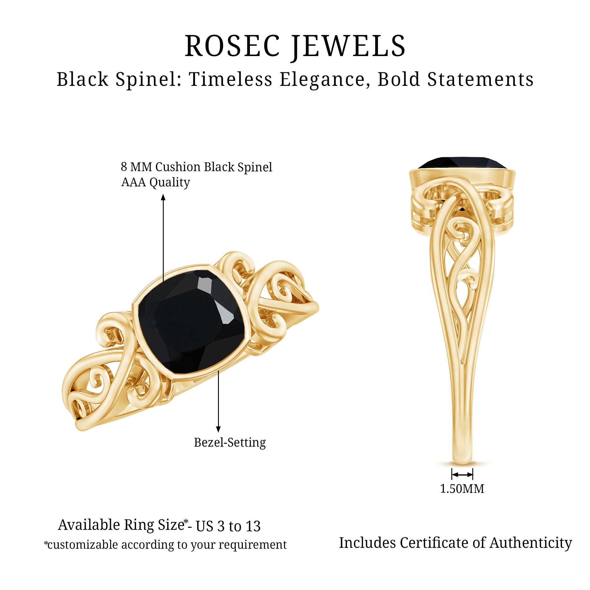 Ornamented with iconic designs from Art Deco, Edwardian, and Victorian Eras, a Vintage-inspired Black Spinel Gold Ring is meant to exude an old-school vibe. It boasts artistic abstract patterns and intricately crafted milgrain, filigree, and other retro engravings. What’s more, it speaks to those who like their ring to carry a historic story.