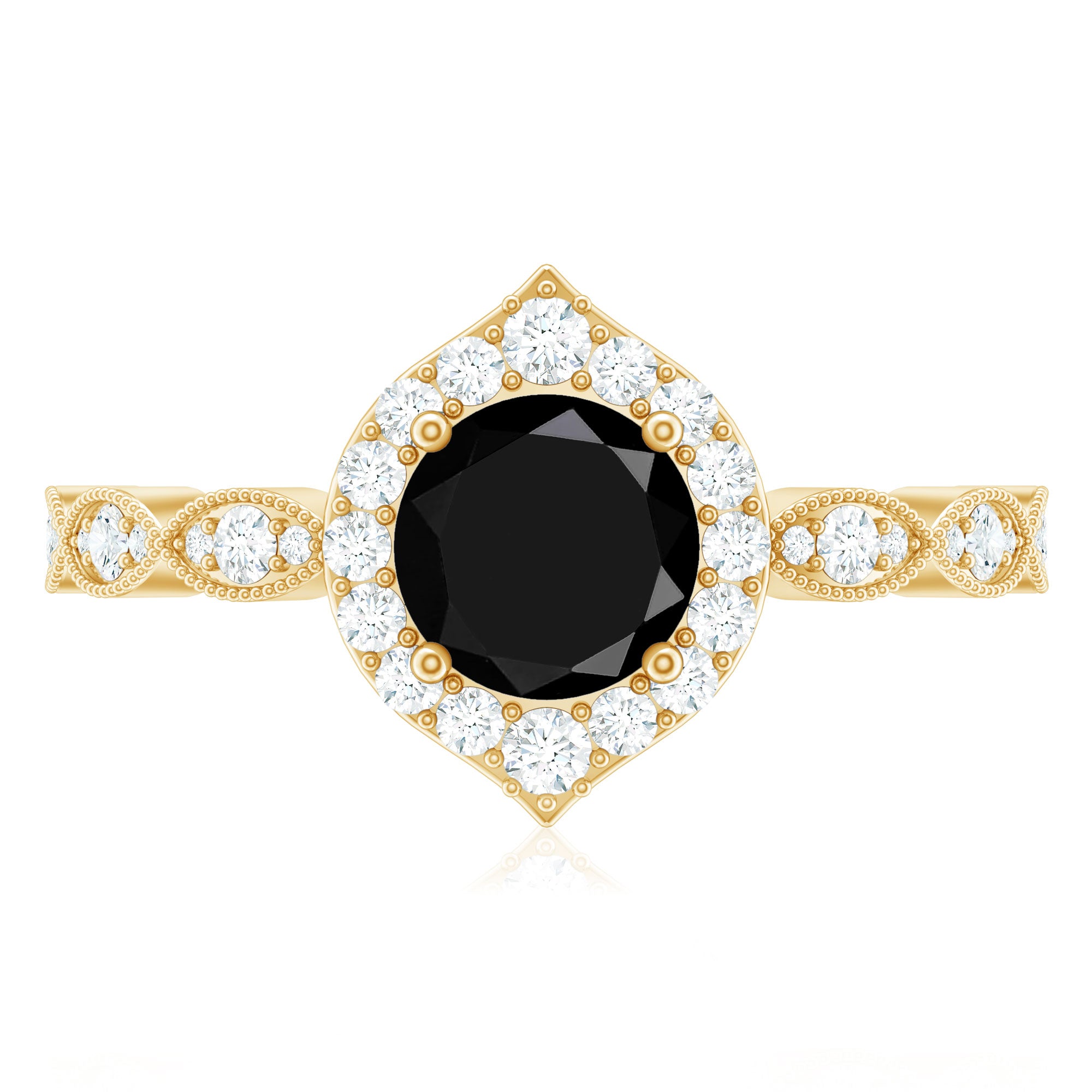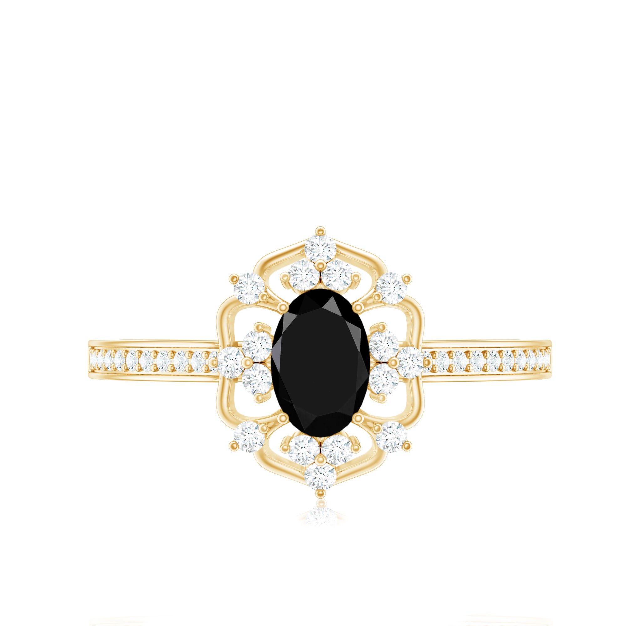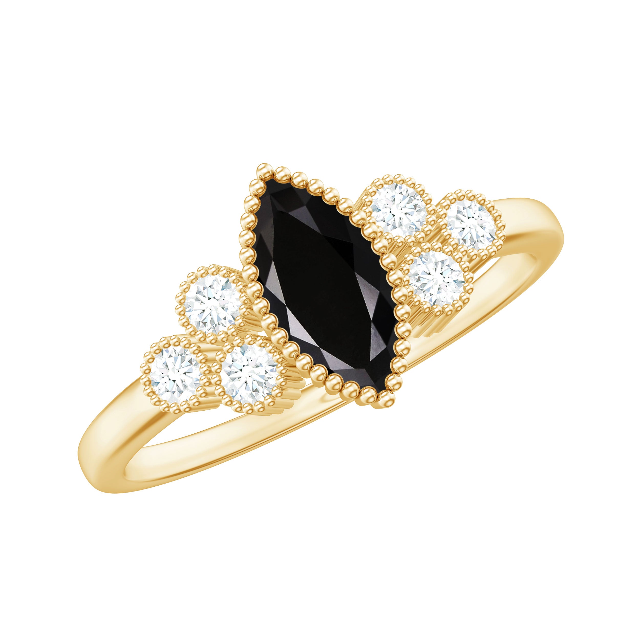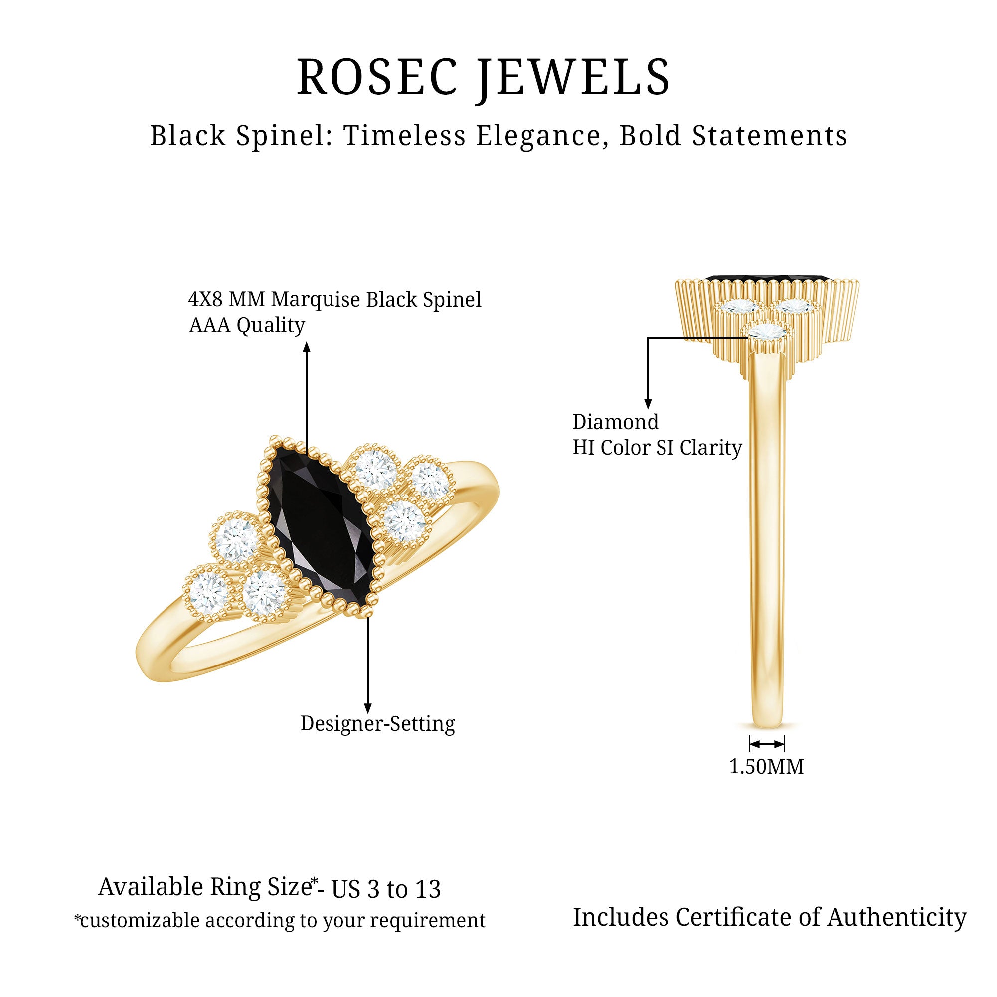 Ornamented with iconic designs from Art Deco, Edwardian, and Victorian Eras, a Vintage-inspired Black Spinel Gold Ring is meant to exude an old-school vibe. It boasts artistic abstract patterns and intricately crafted milgrain, filigree, and other retro engravings. What’s more, it speaks to those who like their ring to carry a historic story.