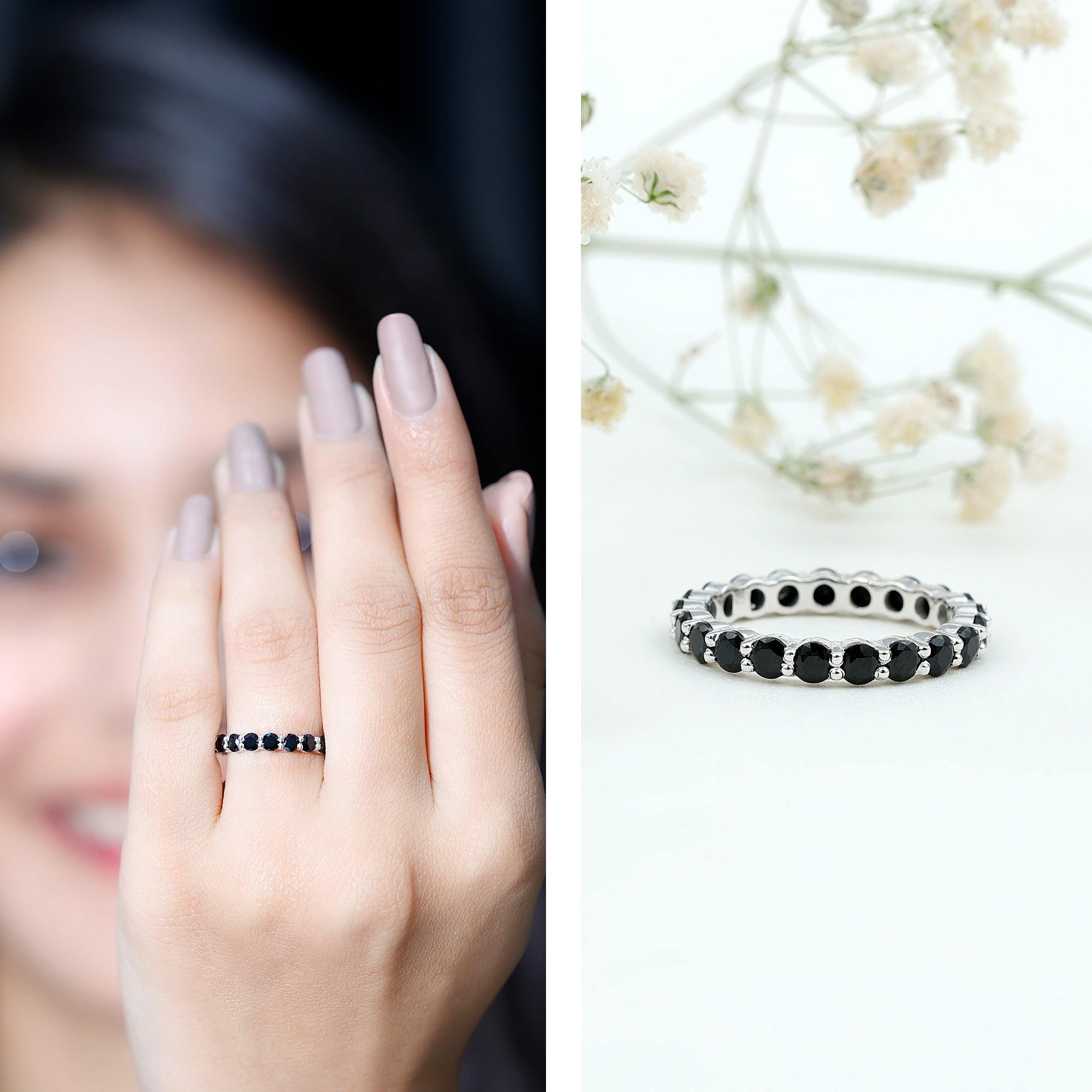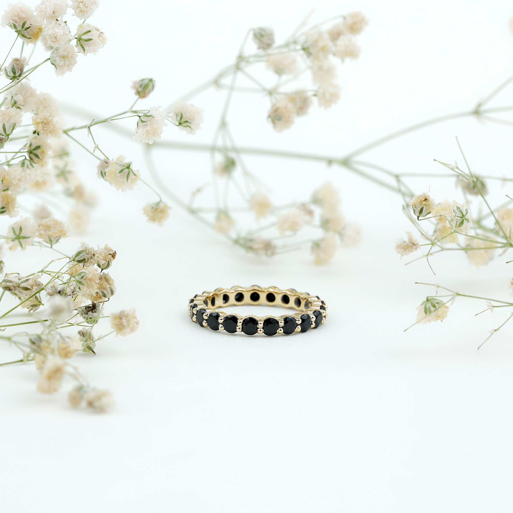A Black Spinel Eternity Ring is encrusted with a row of identically-sized Black Spinel that just like the name suggests, has no start or end. So, if you can’t get enough of the bold black pop of Spinel, this ring could be the one for you. This Black Spinel Ring isn’t all aesthetics but also holds a much deeper meaning. It resonates with the kind of love that is meant to last a lifetime, i.e, eternal (which is also what makes it a highly treasured Black Spinel Wedding Ring).
