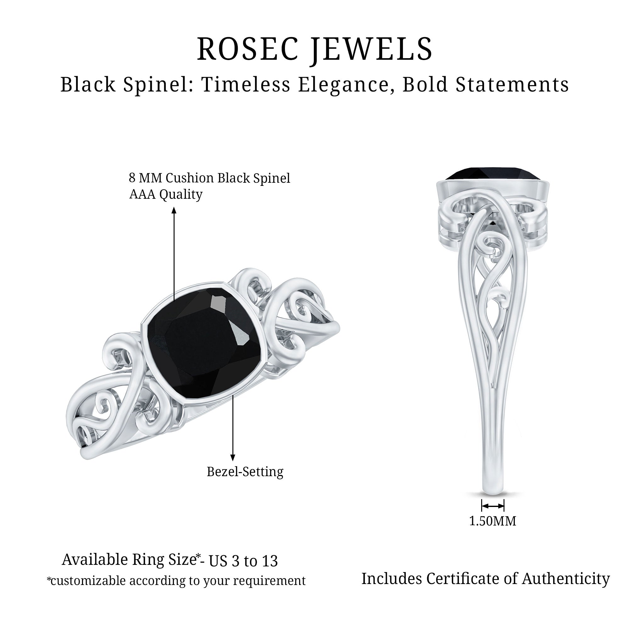 A Black Spinel Promise Ring might insinuate a specific meaning but it isn’t confined to a specific style. It can range from a Simple Solitaire Ring that exudes an understated aesthetic with a size of 4 MM or even less. Or for an exquisite visual appeal, be ornately detailed with nature-inspired designs, flower, and infinity motifs, or sparkling accents of Diamond/Moissanite. Behind that, it reflects upon the promise of eternal commitment (that usually precedes an engagement).