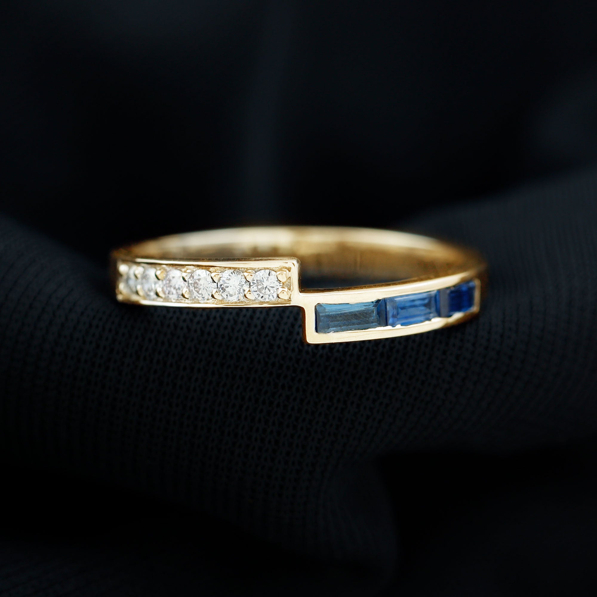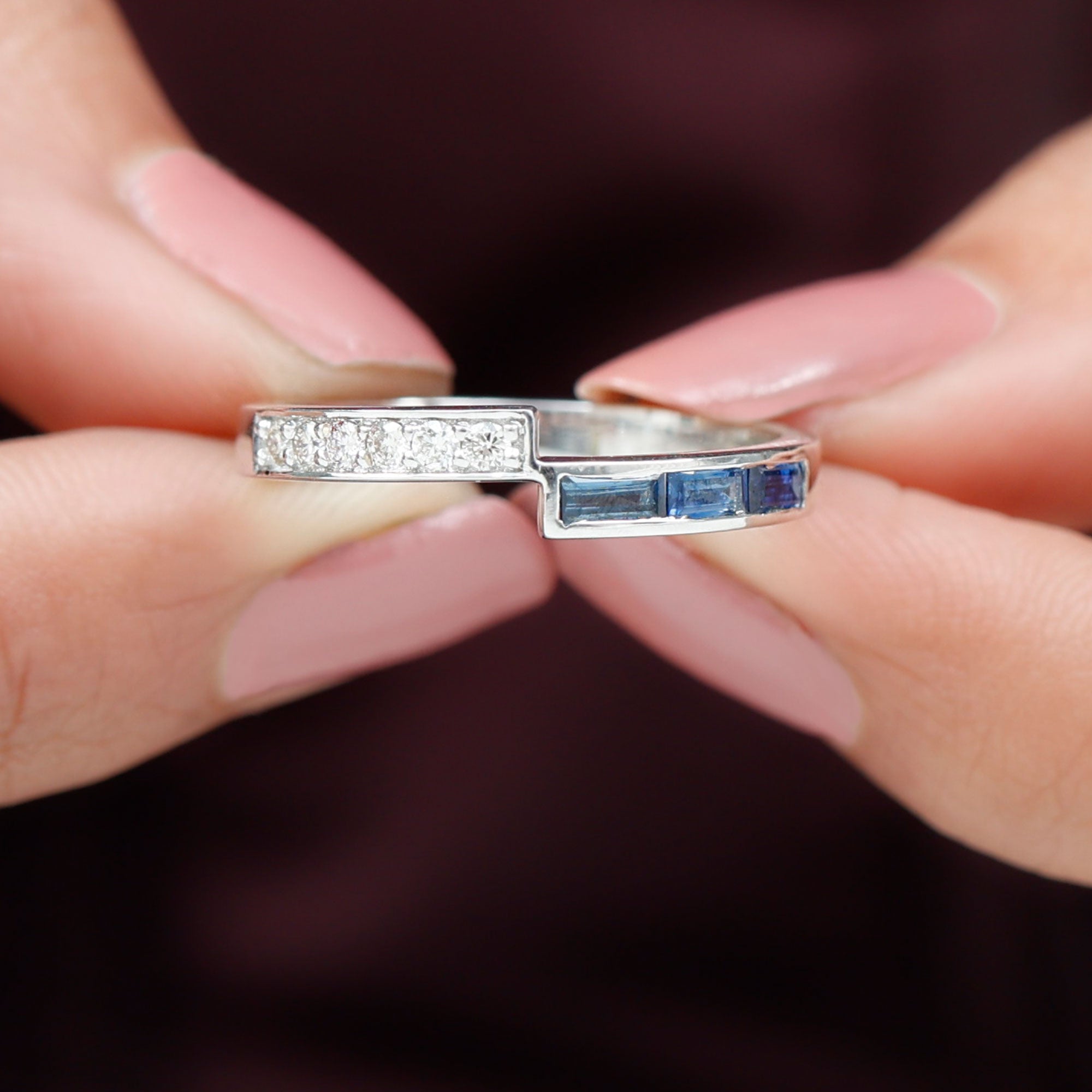 Blue Sapphire Promise Wedding Bands: - Wedding band’s circular shape, beautifully crafted to fit the finger, and also a symbolism of infinity. Its continuous loop has no any beginning or end, serves as a symbol of enduring love between partners. Just as the ring shape knows no bound, its eternal and never-ending. Also Promise rings are referred to as pre-engagement ring, crafted with perfection, our blue sapphire promise wedding bands are the symbol of enduring love and commitment, making them a unique option for grooms. The blue sapphire stones added a luxurious finish to the design, whether adorning as a wedding ring or exchange as a pre-engagement ring. These rings serve as a reminder of cherished moments you shared with your partner.