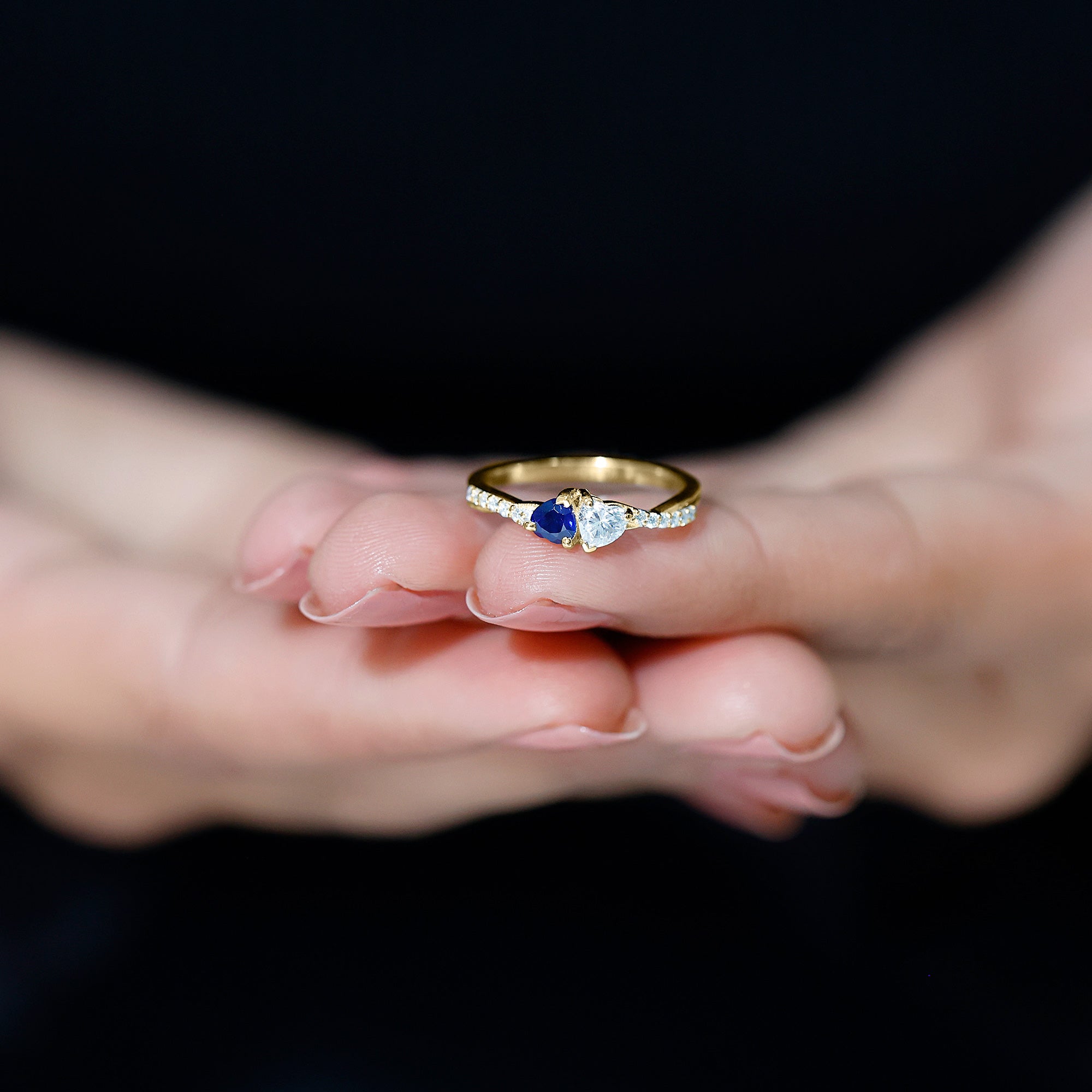 Blue Sapphire Promise Rings: - Available in a range of styles, from classic to contemporary, within this category, rings aren't defined by any specific style or design, mostly you'll find sophisticated solitaire rings showcasing a stunning blue sapphire gemstone. Yet, there are also intricately designed rings adorned with nature-inspired motifs, floral accents, diamonds, or arrangements of three sapphire stones. Furthermore, among all these categories the romantic allure of sapphire heart rings stands out. Symbolically, exchanged between coupled as a token of lifelong commitment, often an ideal ring for pre-engagement, thus it holds a special significance.