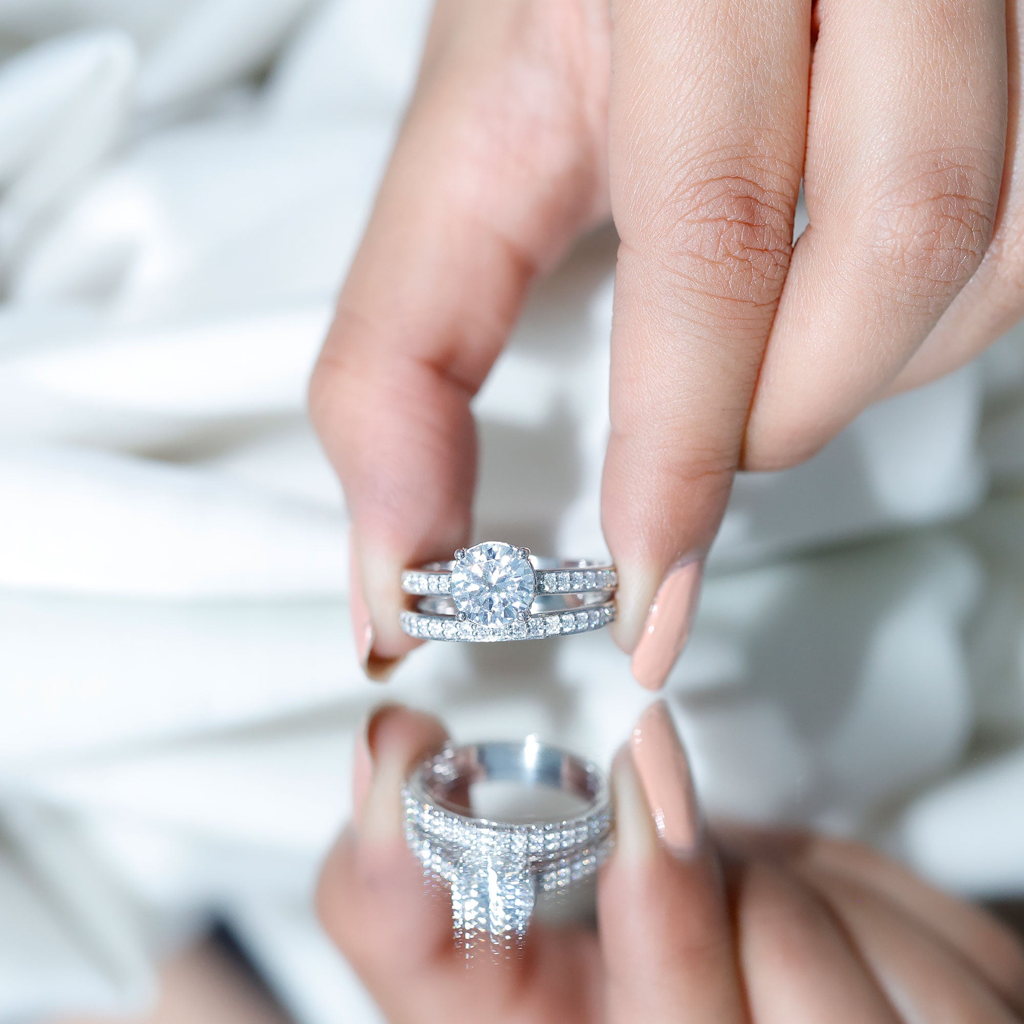Rings are carefully considered when designing engagement wedding ring sets. The wedding band and engagement ring are expertly designed to contrast one another, ensuring a united and harmonious aesthetic in engagement ring sets for women.