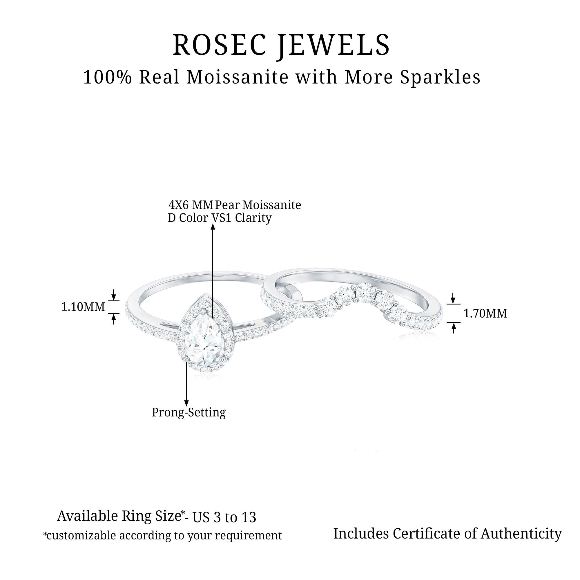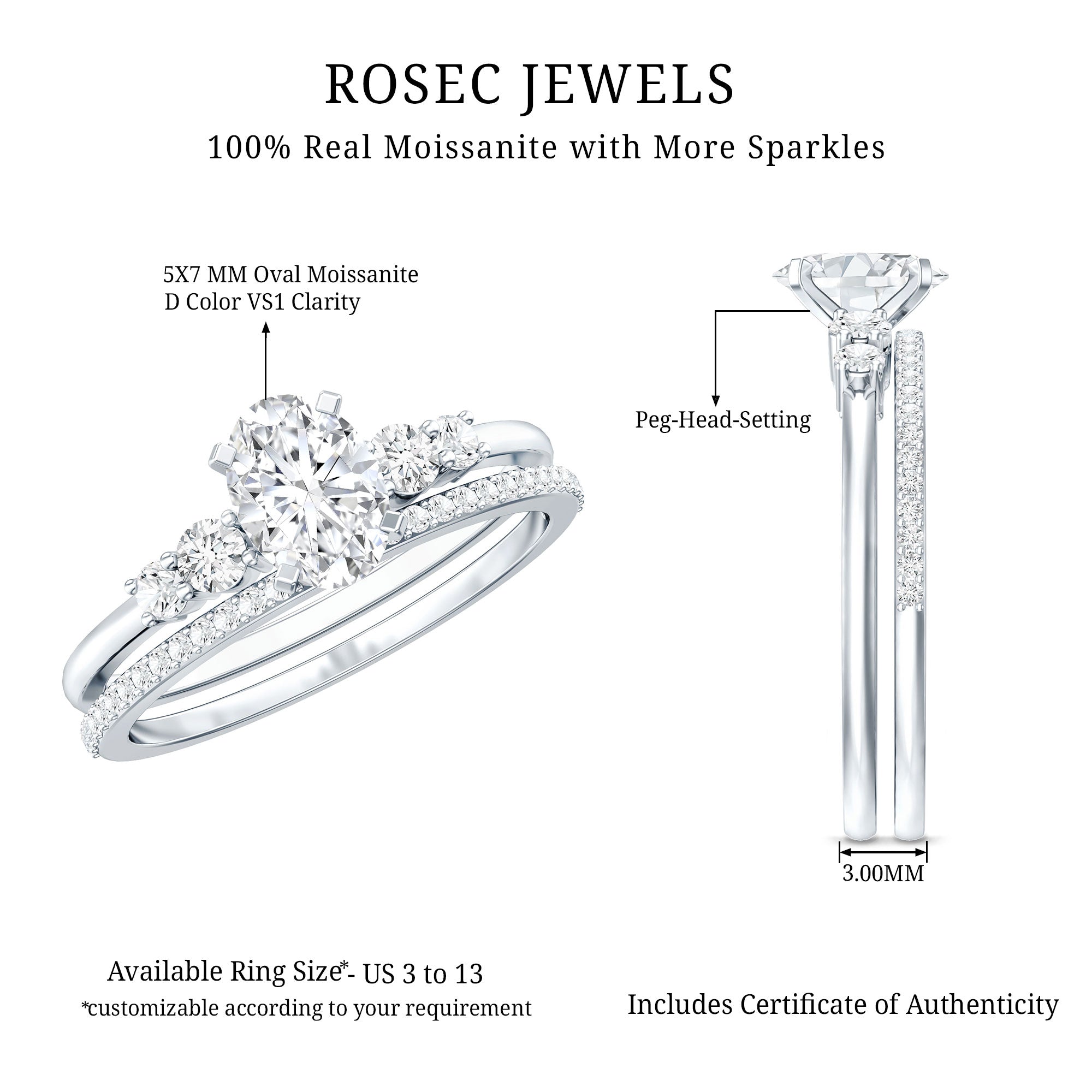 Bridal sets are practical and convenient since they eliminate the need to look for a separate wedding band. Couples can save time and guarantee a unified and complimentary design by buying a pre-matched set.