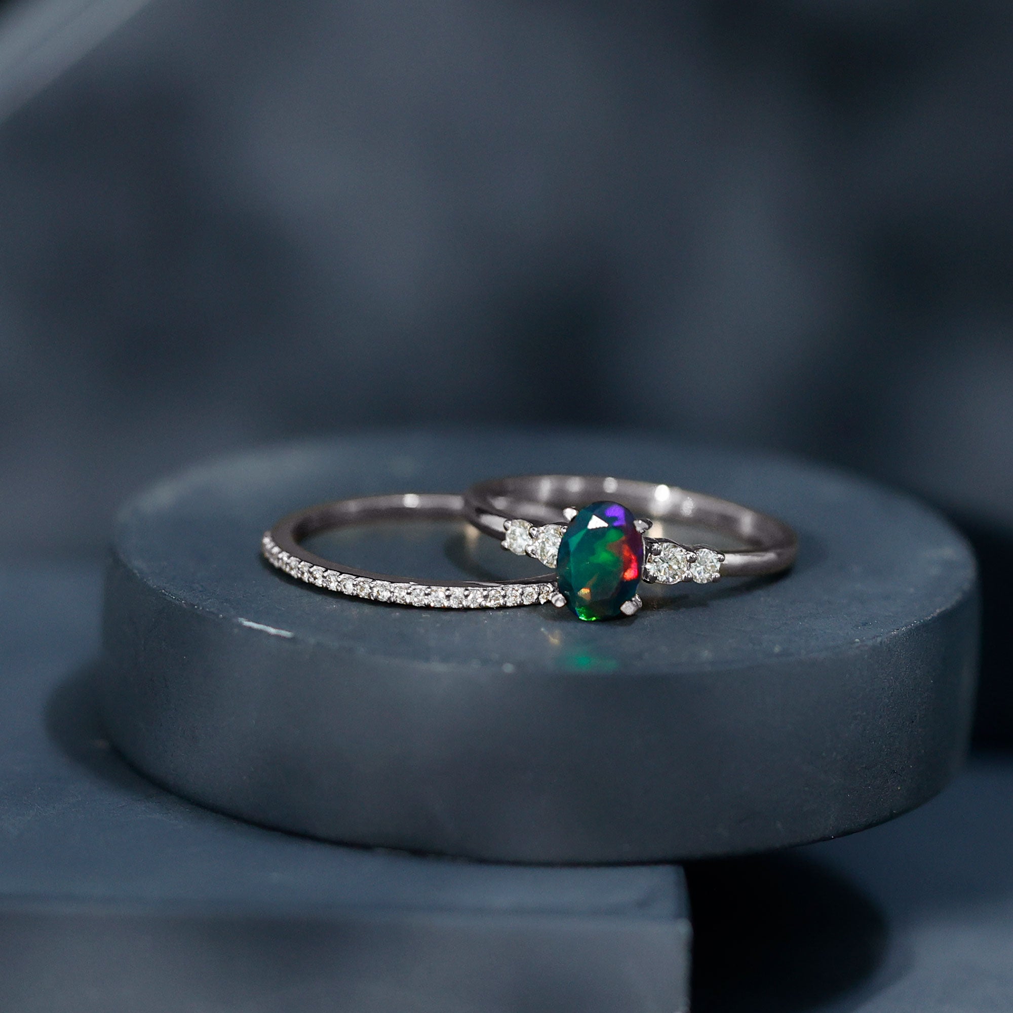 Bridal sets come in various designs, from ornate filigree to contemporary minimalist forms, to fit every couple's preferences and personalities. The identical bands give the finger a seamless appearance, highlighting the unity of the couple's commitment.