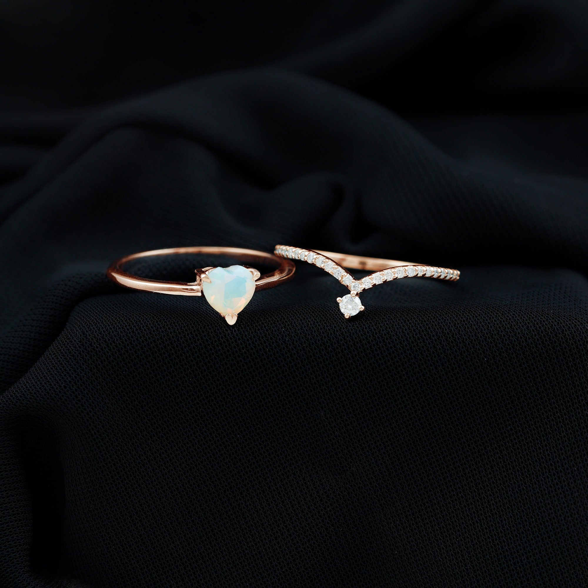 Bridal sets come in various designs, from ornate filigree to contemporary minimalist forms, to fit every couple's preferences and personalities. The identical bands give the finger a seamless appearance, highlighting the unity of the couple's commitment.