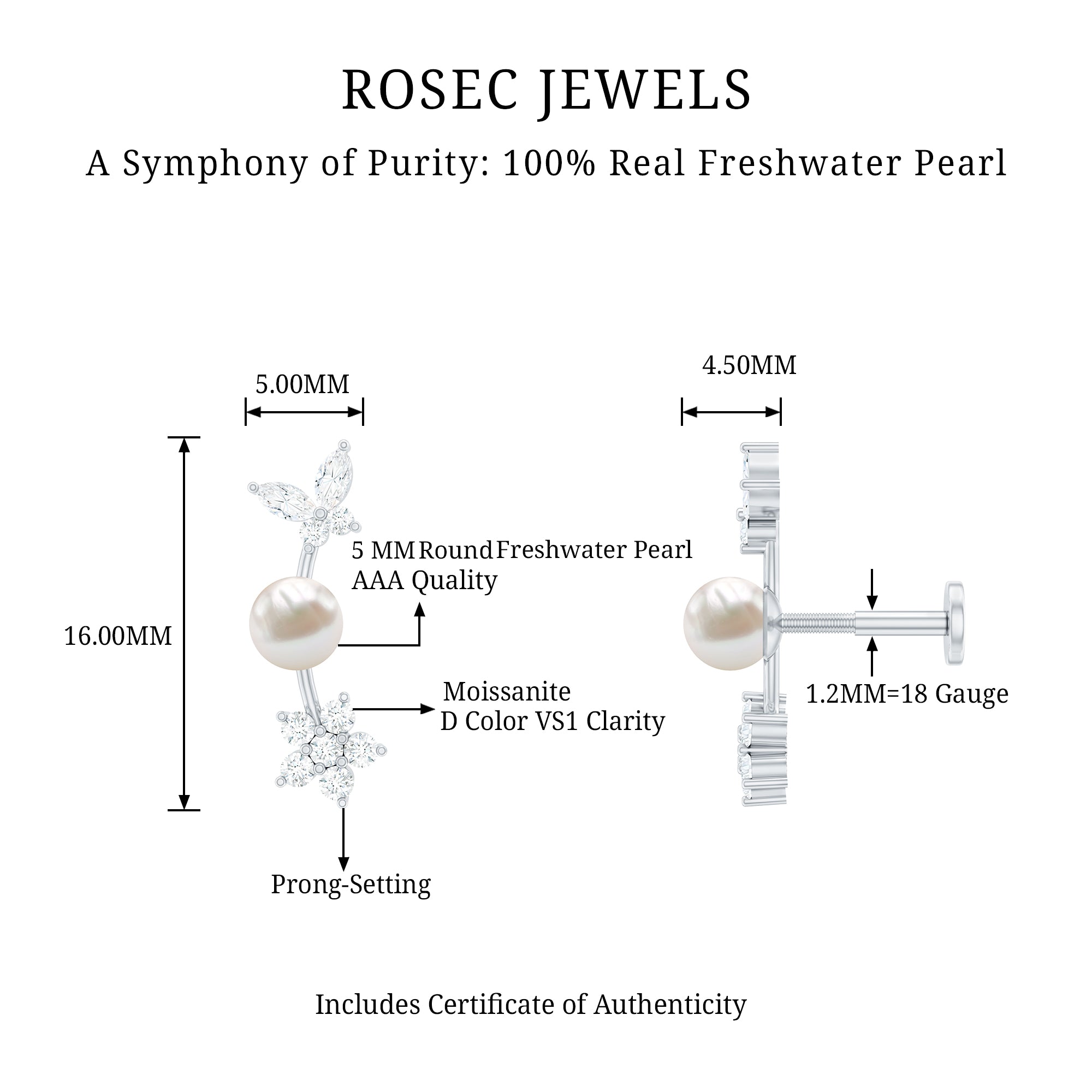 Our cartilage moissanite earrings are nothing less than the best. Moissanites are slightly more brilliant than diamonds, even moissanite is dramatically lower in price than diamonds. You simply don’t need to remove your moissanite piercing jewelry as they rank at 9.25 on the Mohs hardness scale which makes them suitable for everyday wear.