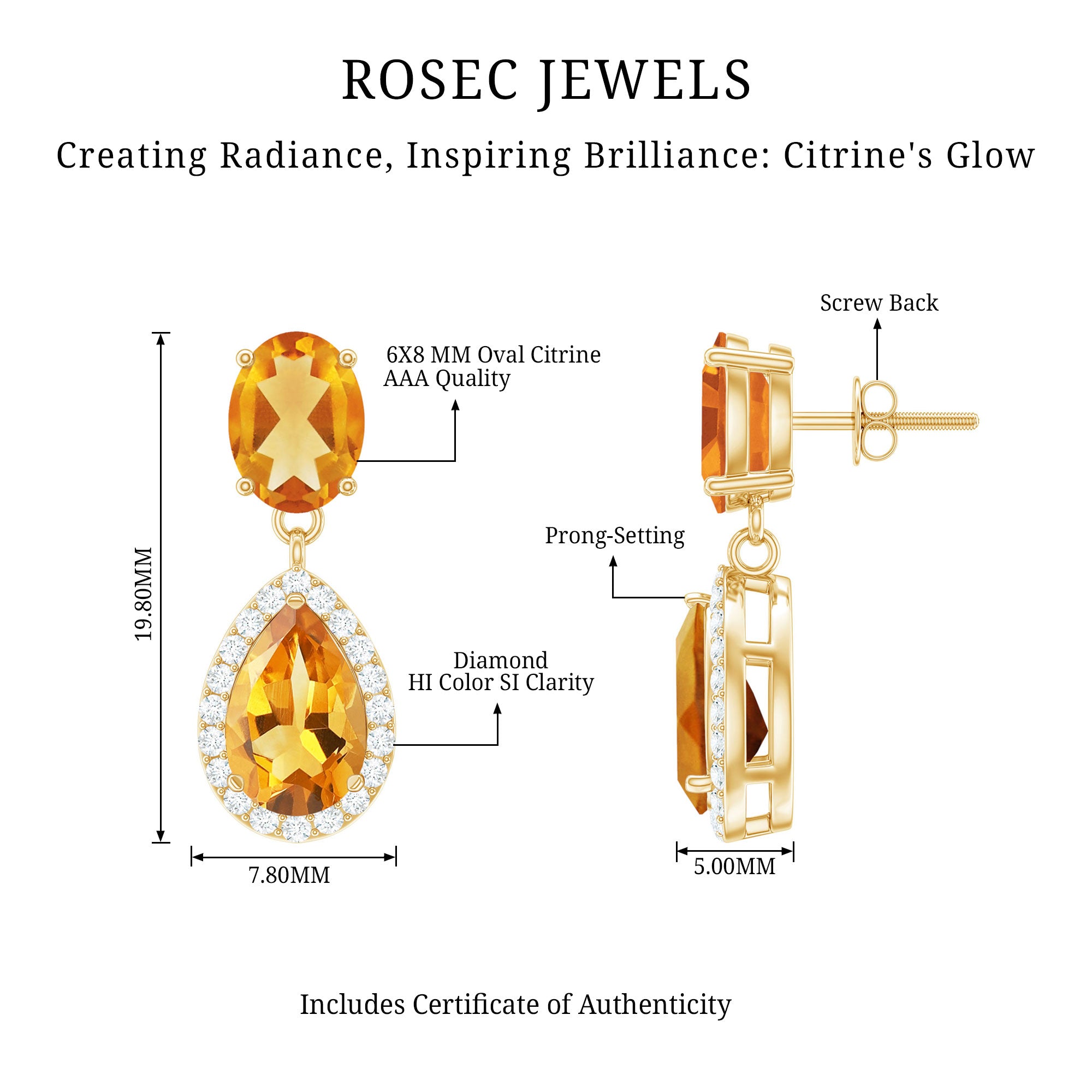 Be it a pair of Classic Solitaire or Vintage Citrine Earrings, you can definitely slip it on every day! That’s because Citrine registers a hardness rating of 7 out of 10 on the Mohs Scale, which makes it a fairly durable choice of gemstone for every day wear. However, to be on the safer side, make sure you’re following the professionally prescribed tips and tricks for its care and maintenance.
