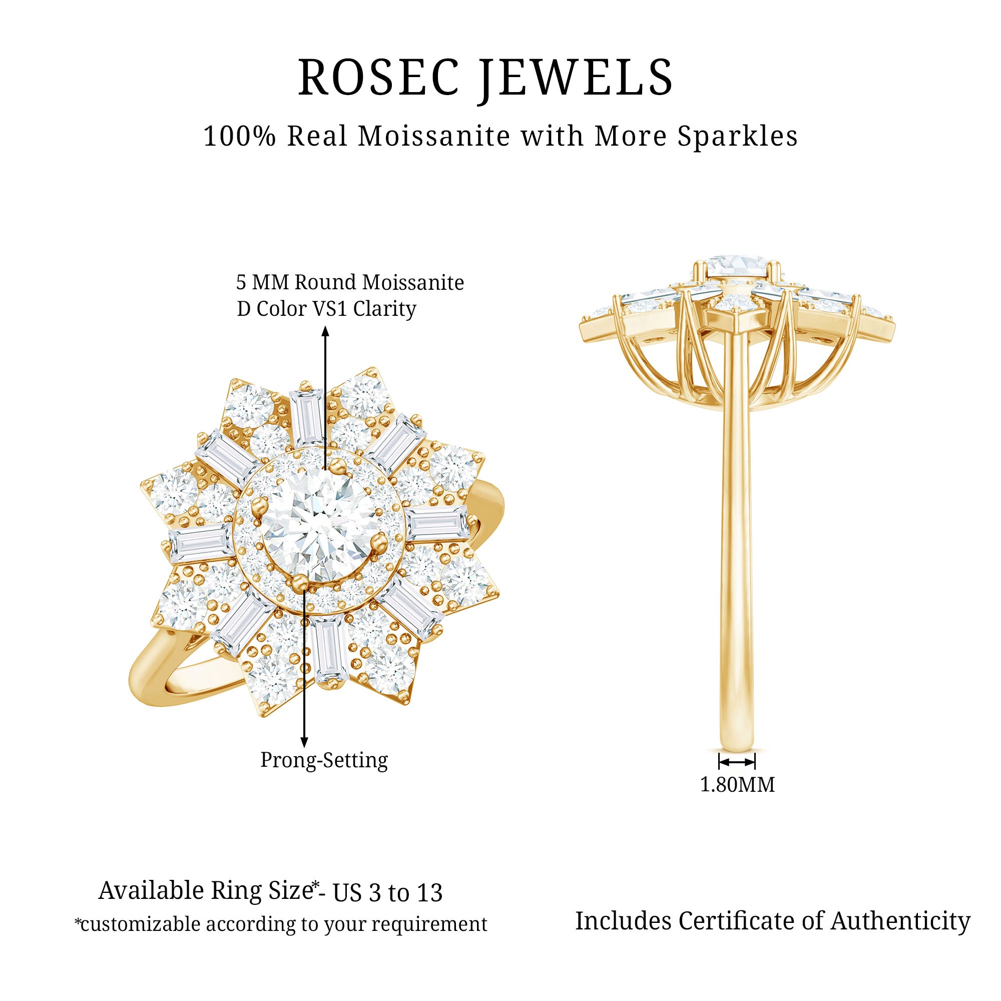 Yellow Gold Metal: - Holds warm and yellowish hues that complement moissanite or diamond and other colored gems. At Rosec Jewels you can buy cocktail rings in 10k, 14k, and 18k precious yellow gold.