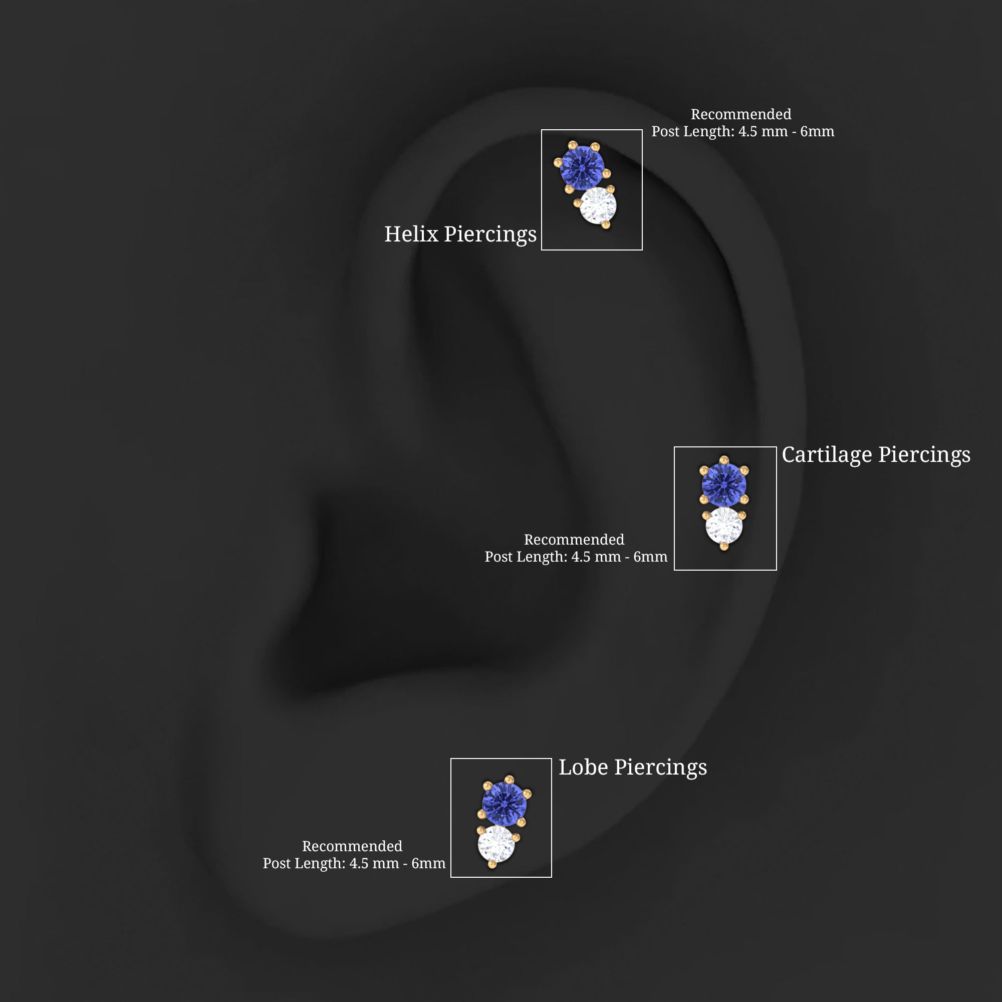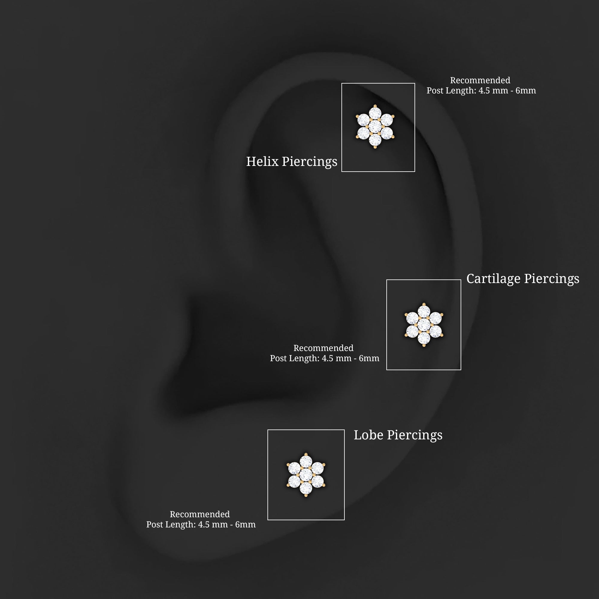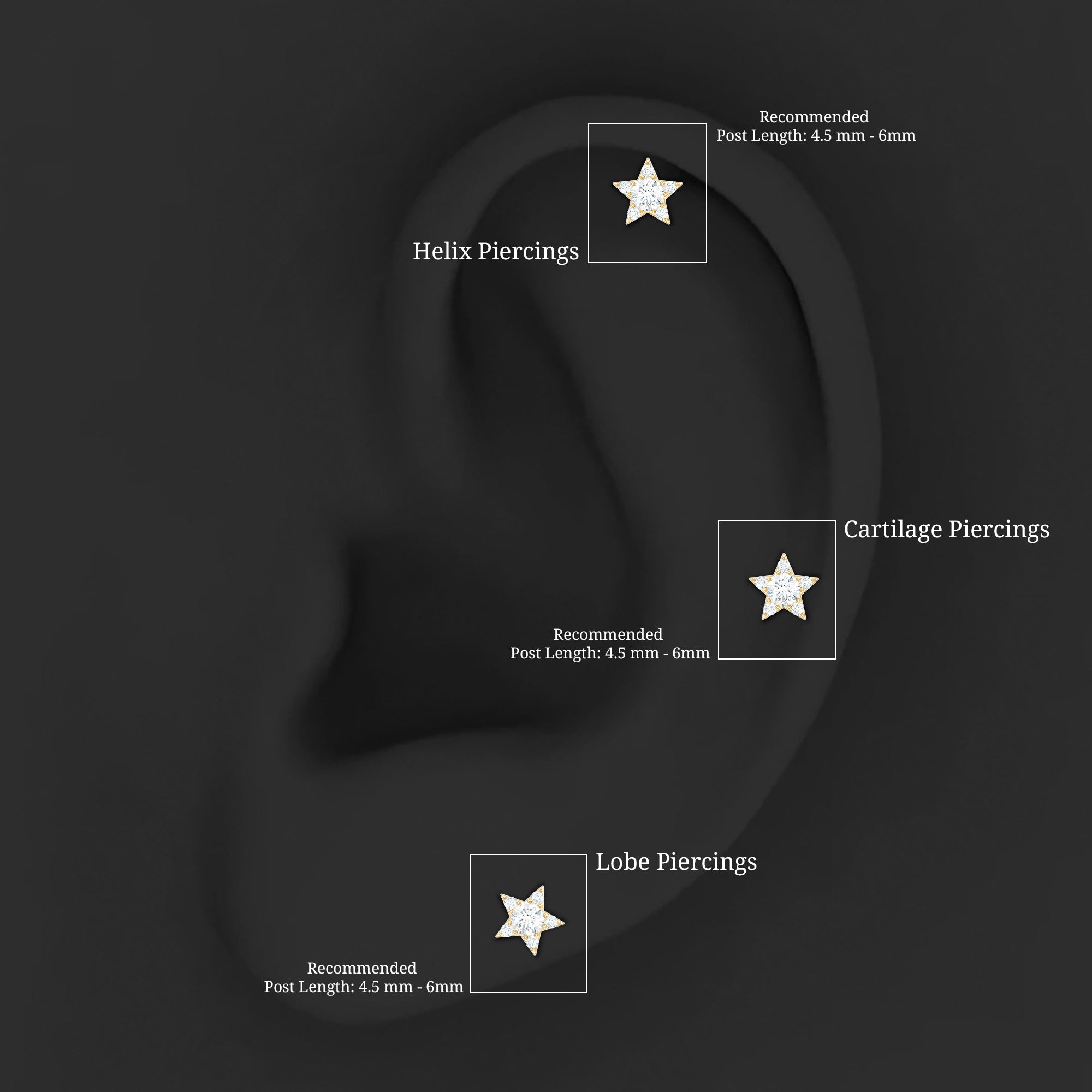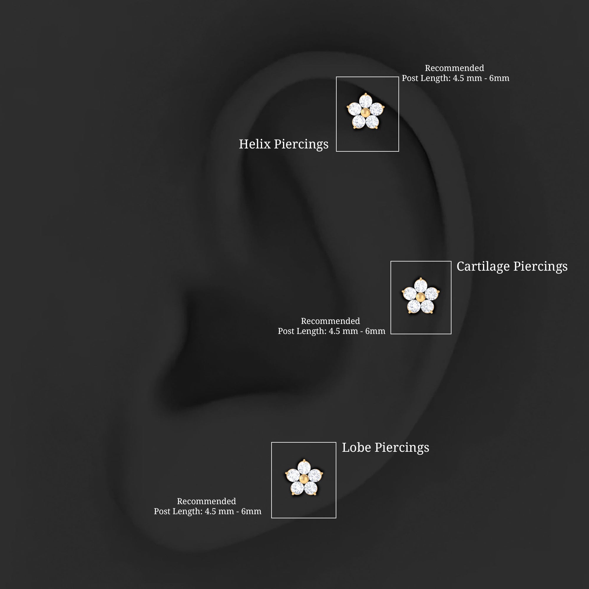 Conch Studs: A conch piercing stud will sit flat against the back of your ear. They are perfect for inner conch piercings. These small and comfortable conch stud earrings can be changed easily.