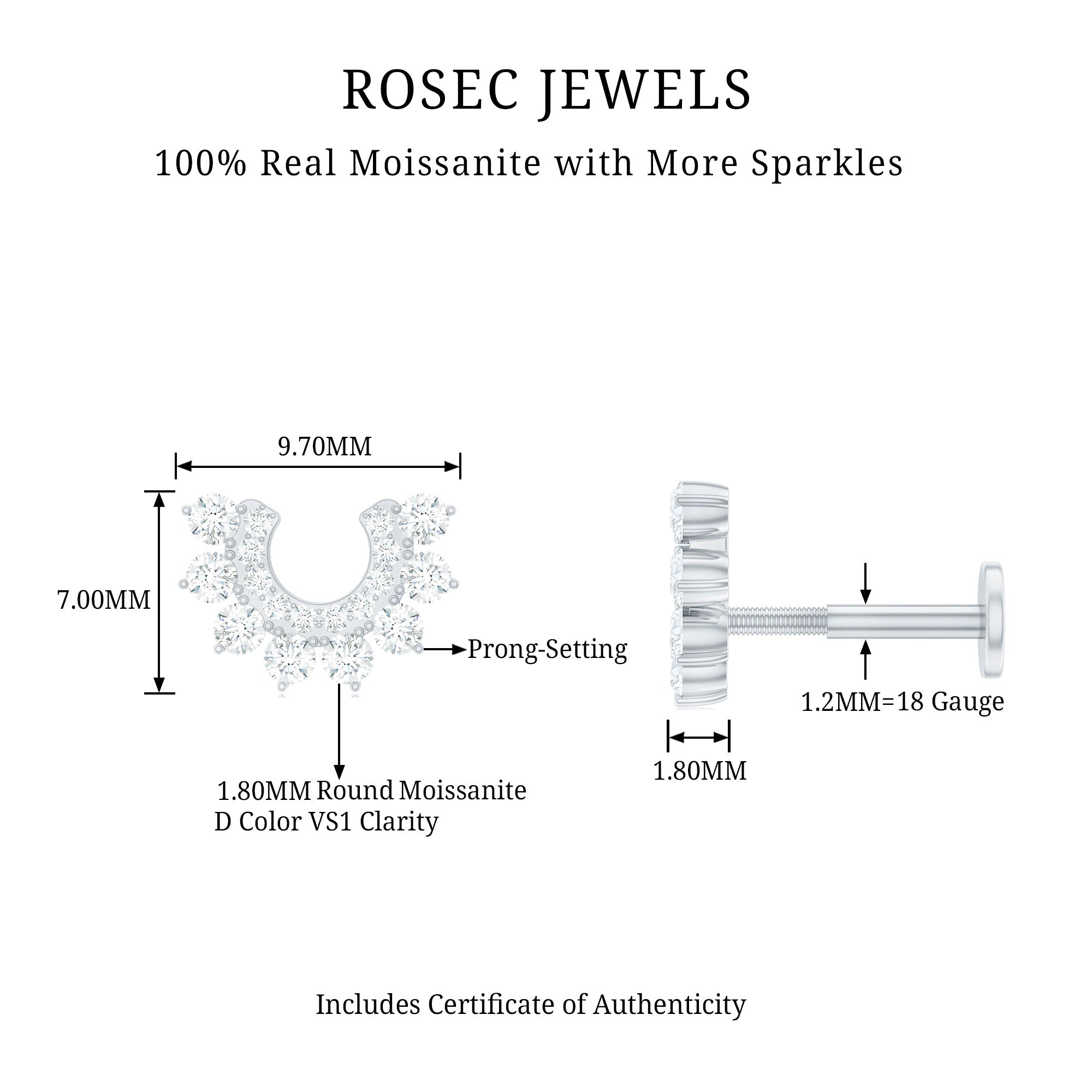 Cartilage Earrings | Helix Earrings | Tragus Earrings | Nose Piercing Jewelry | Diamond Ear Piercing Jewelry | Moissanite Ear Piercing Jewelry | Pearl Ear Piercing Jewelry