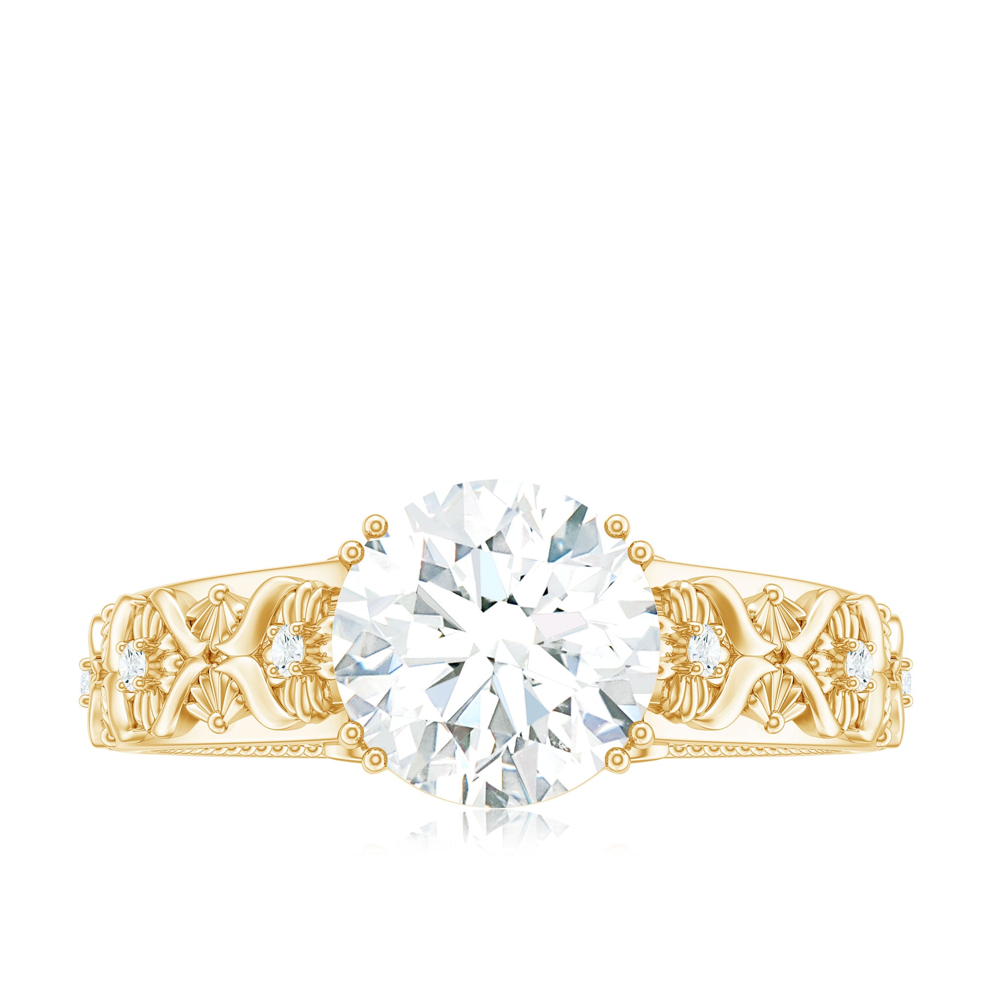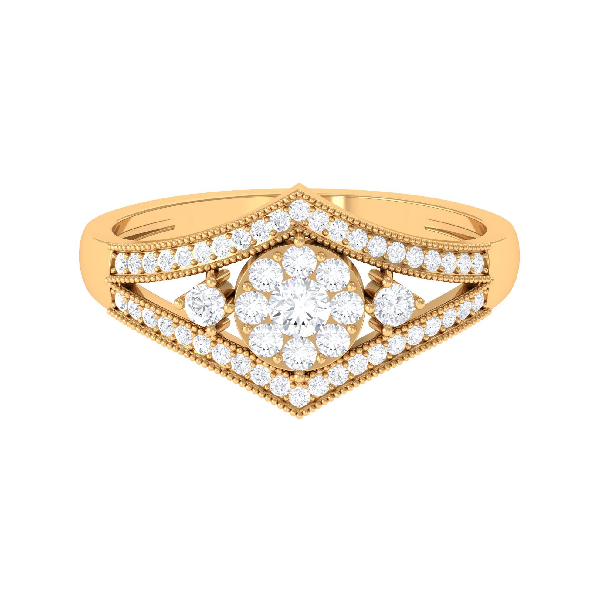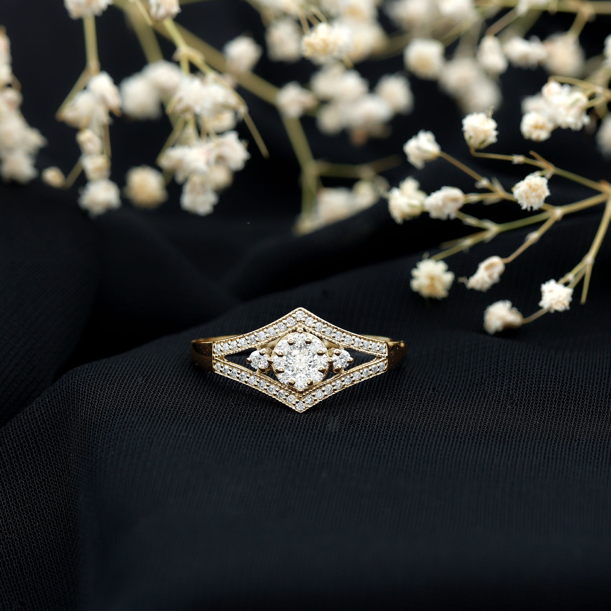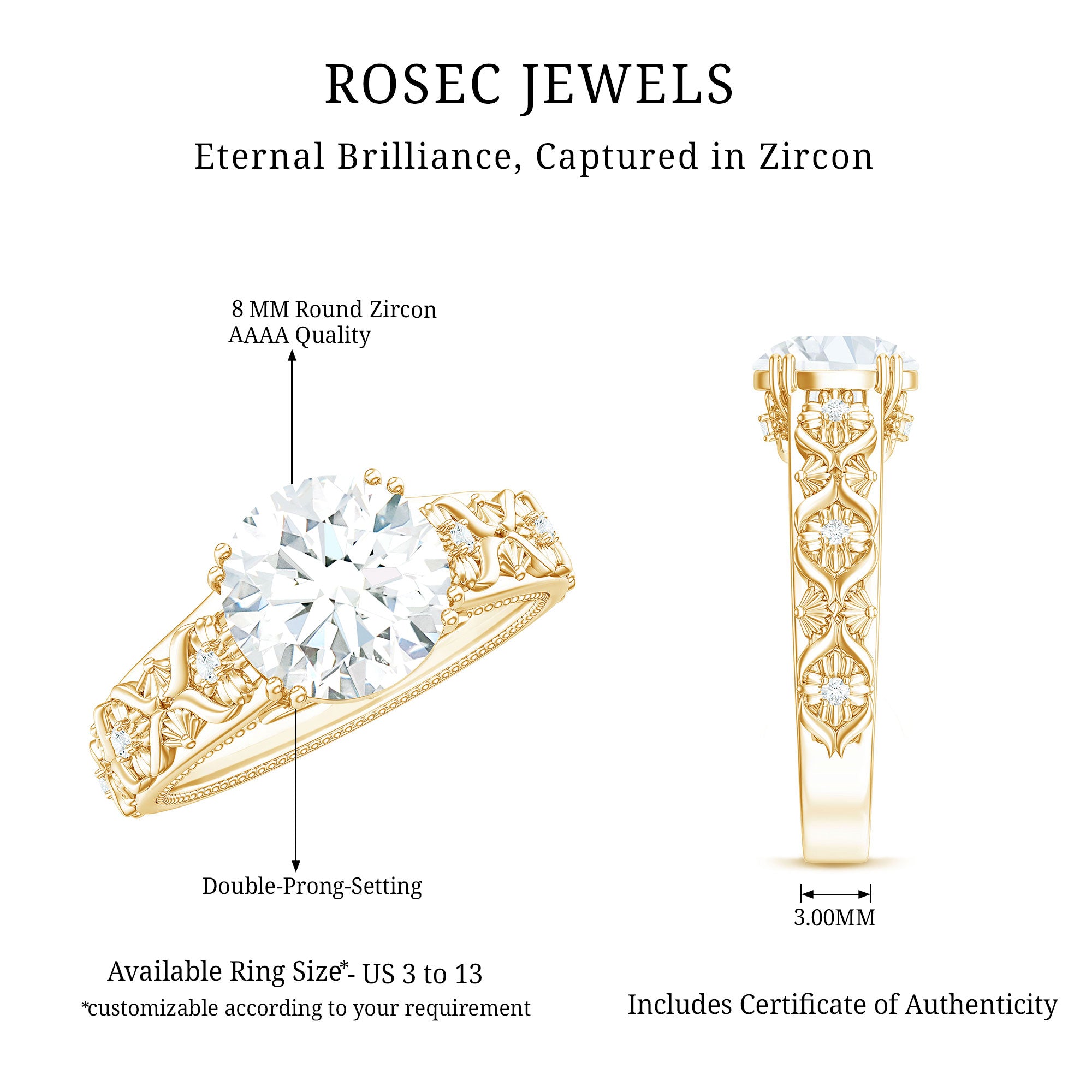 Just like the name suggests, this ring style draws inspiration from the old-world designs of Victorian, Edwardian, and Art Deco Eras that complement the sparkling center stone of CZ steal the limelight. You’re most likely to witness ornately crafted filigree and milgrain detailing, abstract geometrical patterns, retro floral motifs, and antique engravings. So, if you have been on the lookout for Gold Cubic Zirconia Engagement Rings that speak to your old school love, look no further!