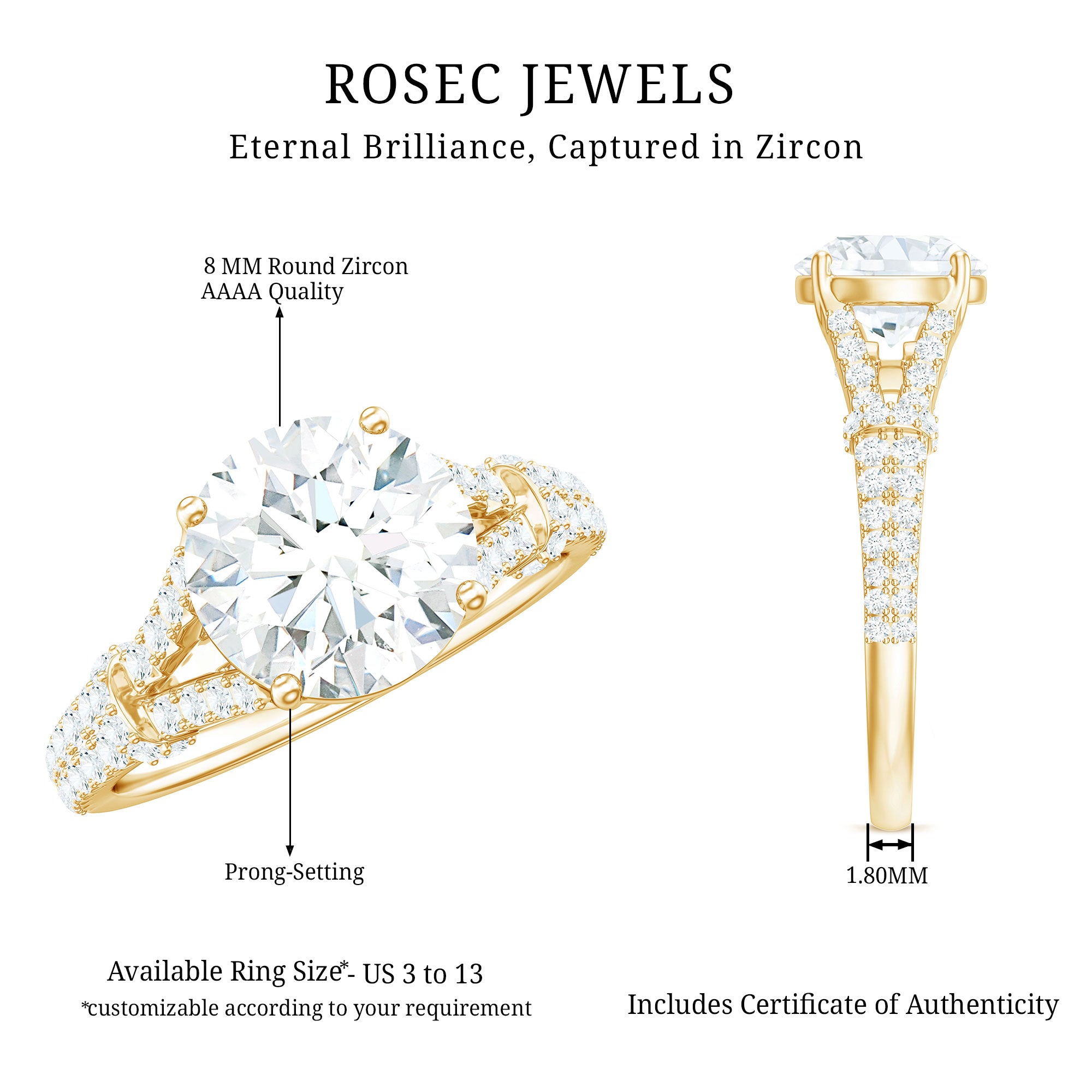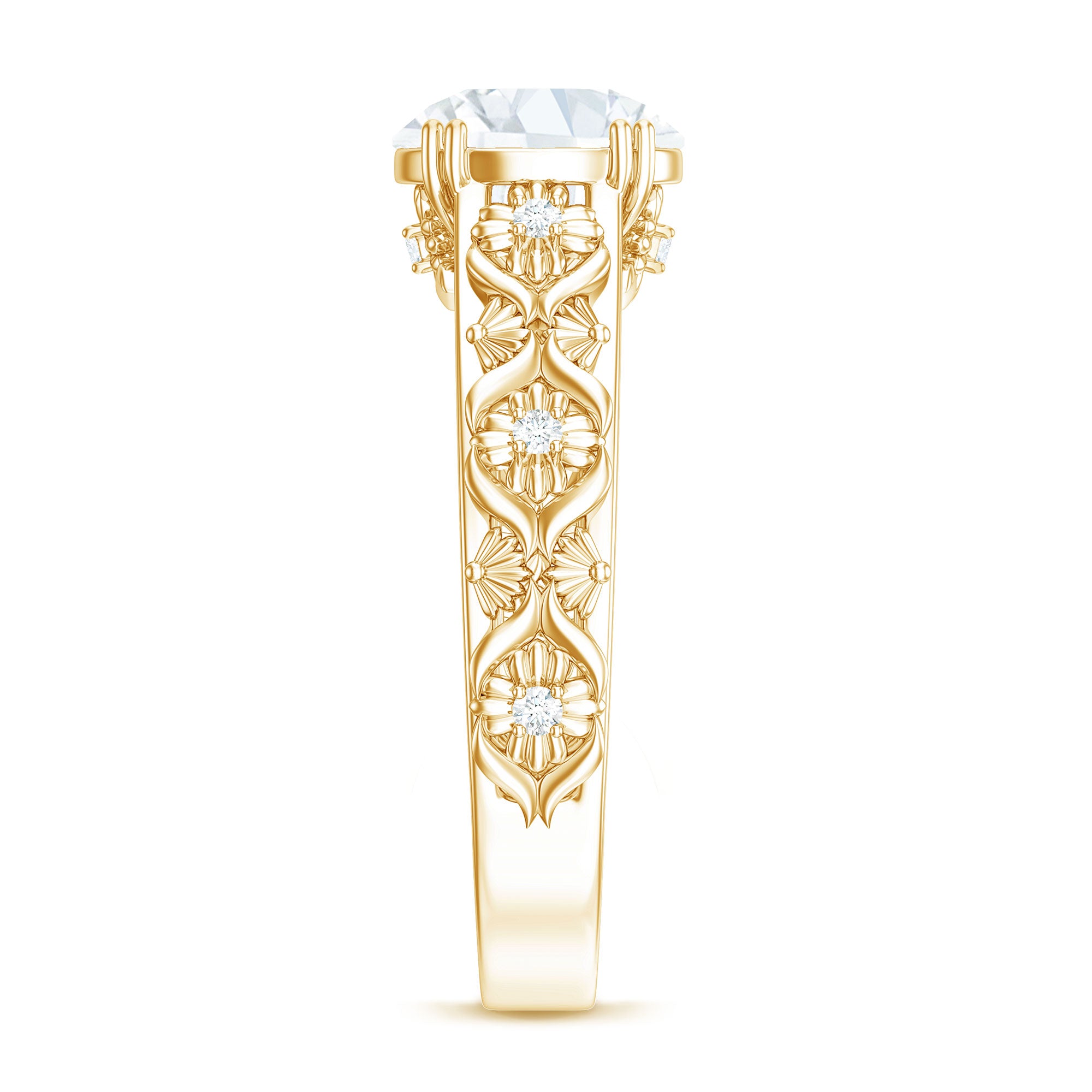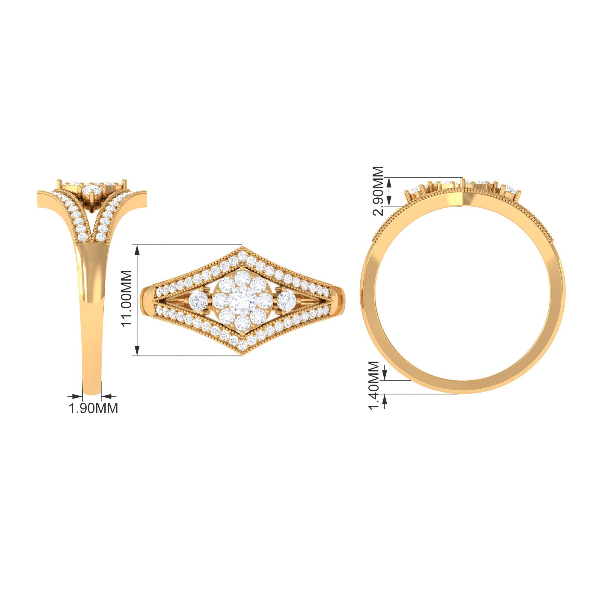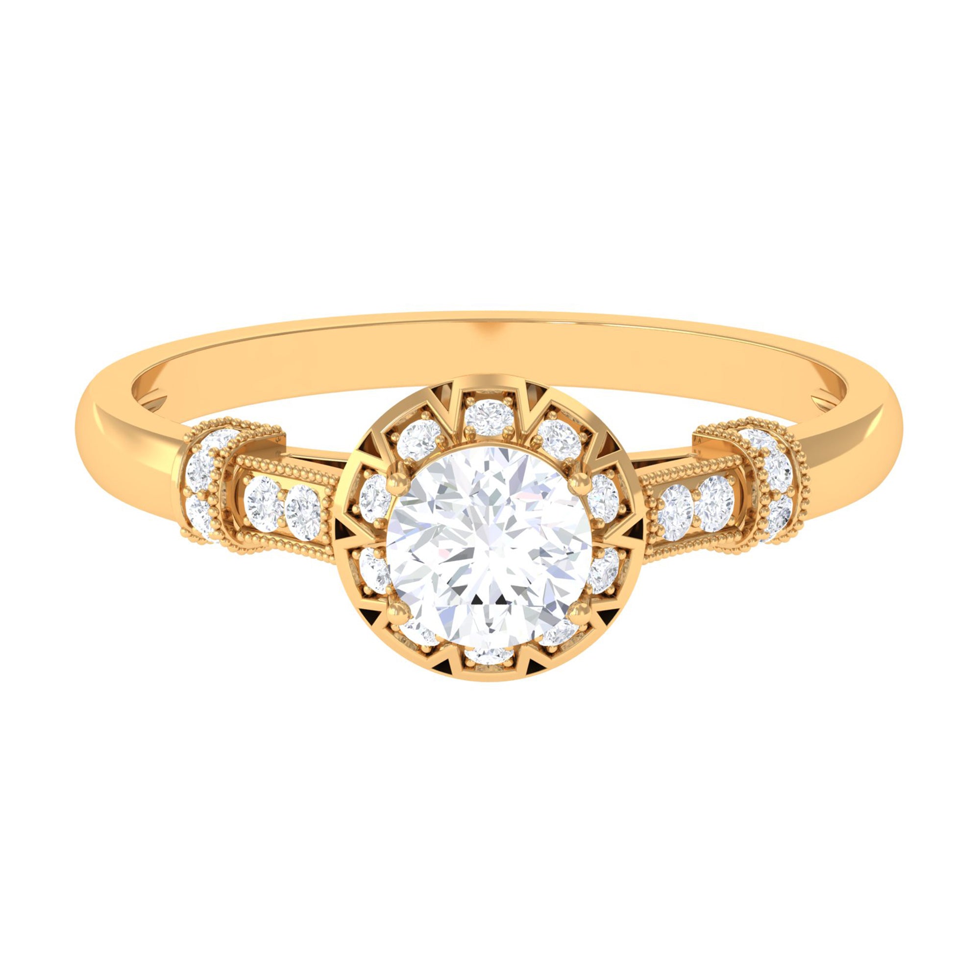 Just like the name suggests, this ring style draws inspiration from the old-world designs of Victorian, Edwardian, and Art Deco Eras that complement the sparkling center stone of CZ steal the limelight. You’re most likely to witness ornately crafted filigree and milgrain detailing, abstract geometrical patterns, retro floral motifs, and antique engravings. So, if you have been on the lookout for Gold Cubic Zirconia Engagement Rings that speak to your old school love, look no further!