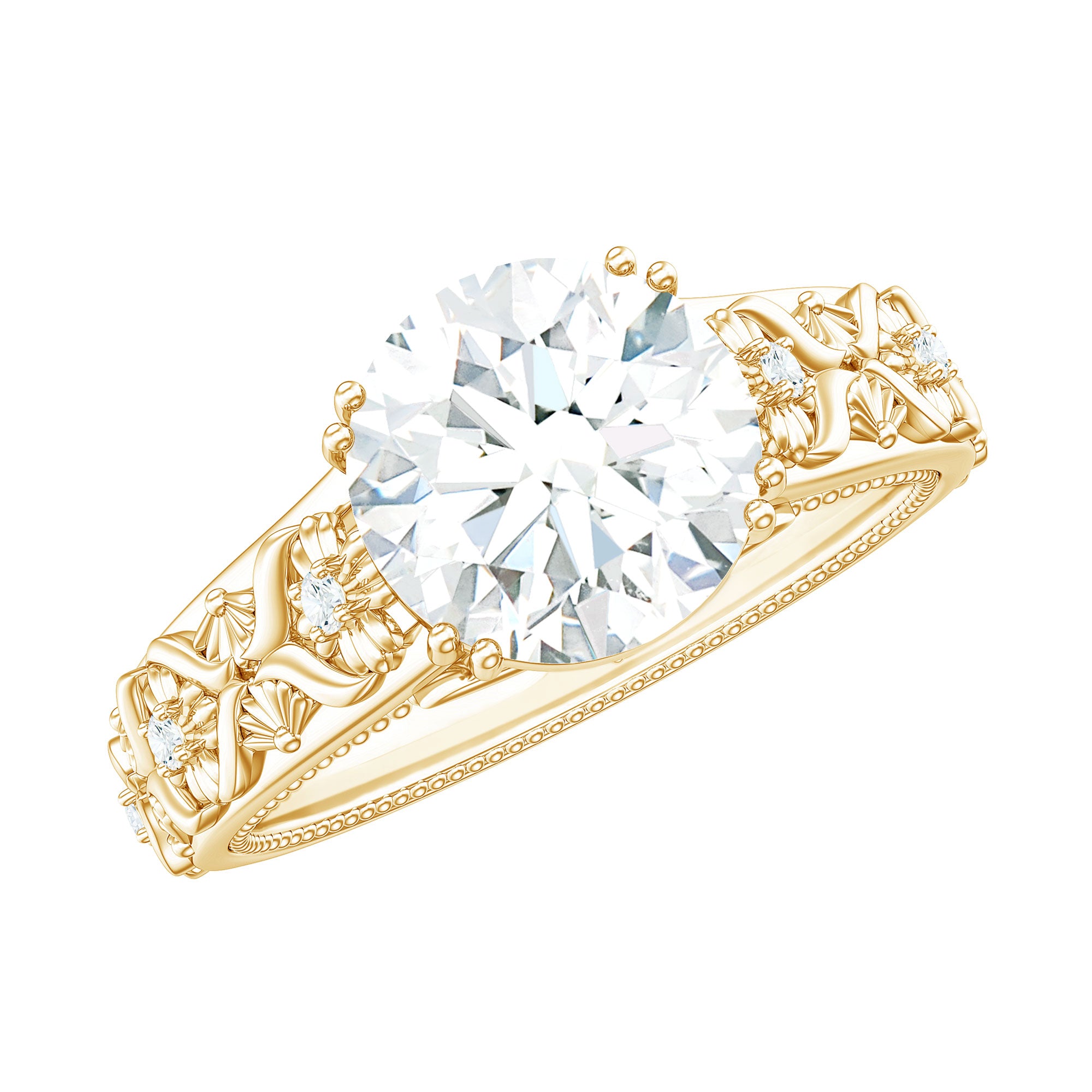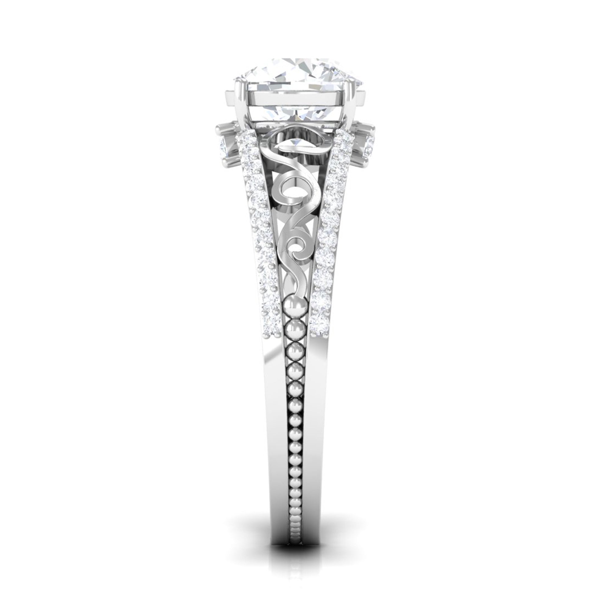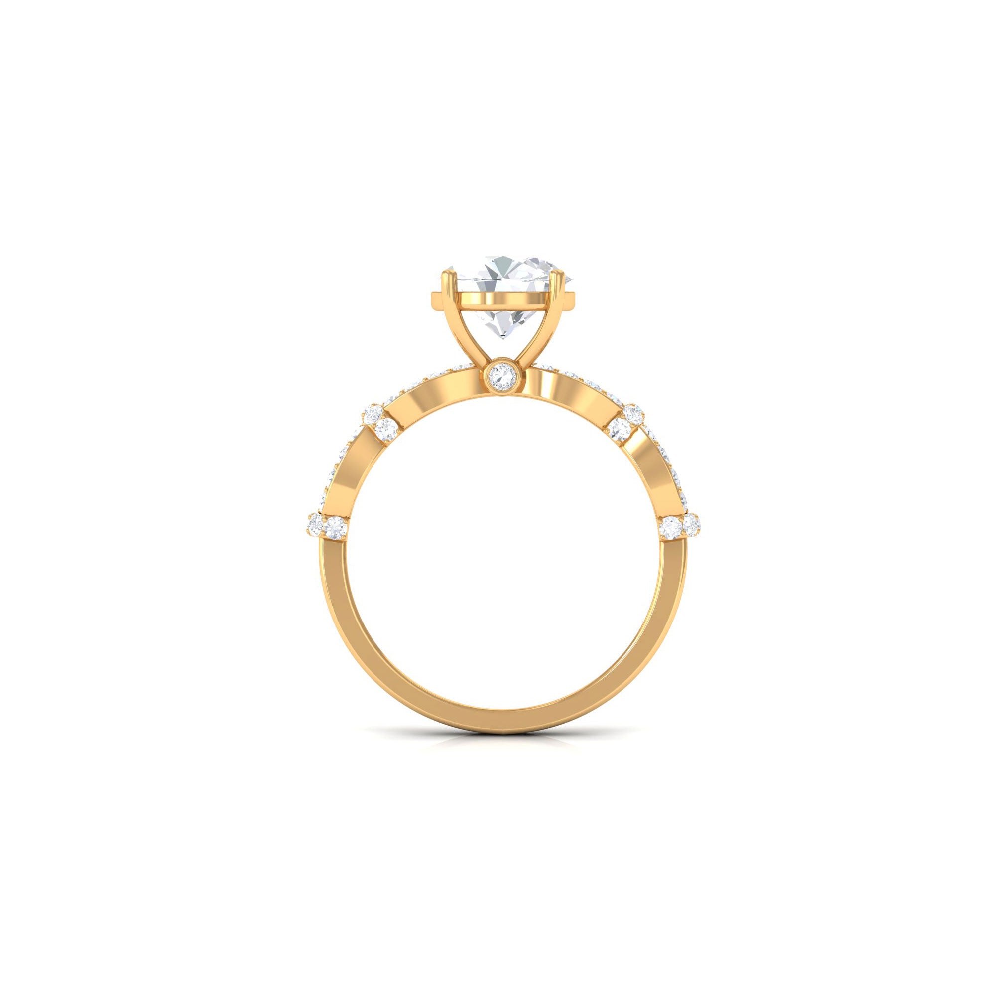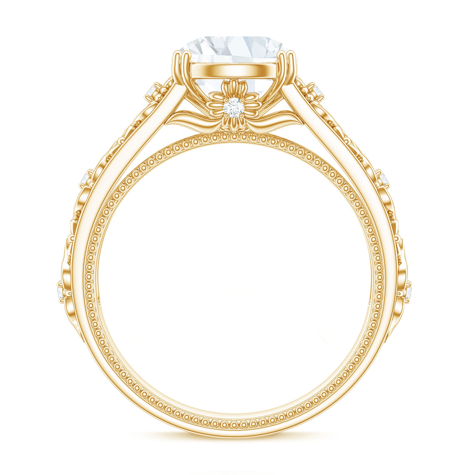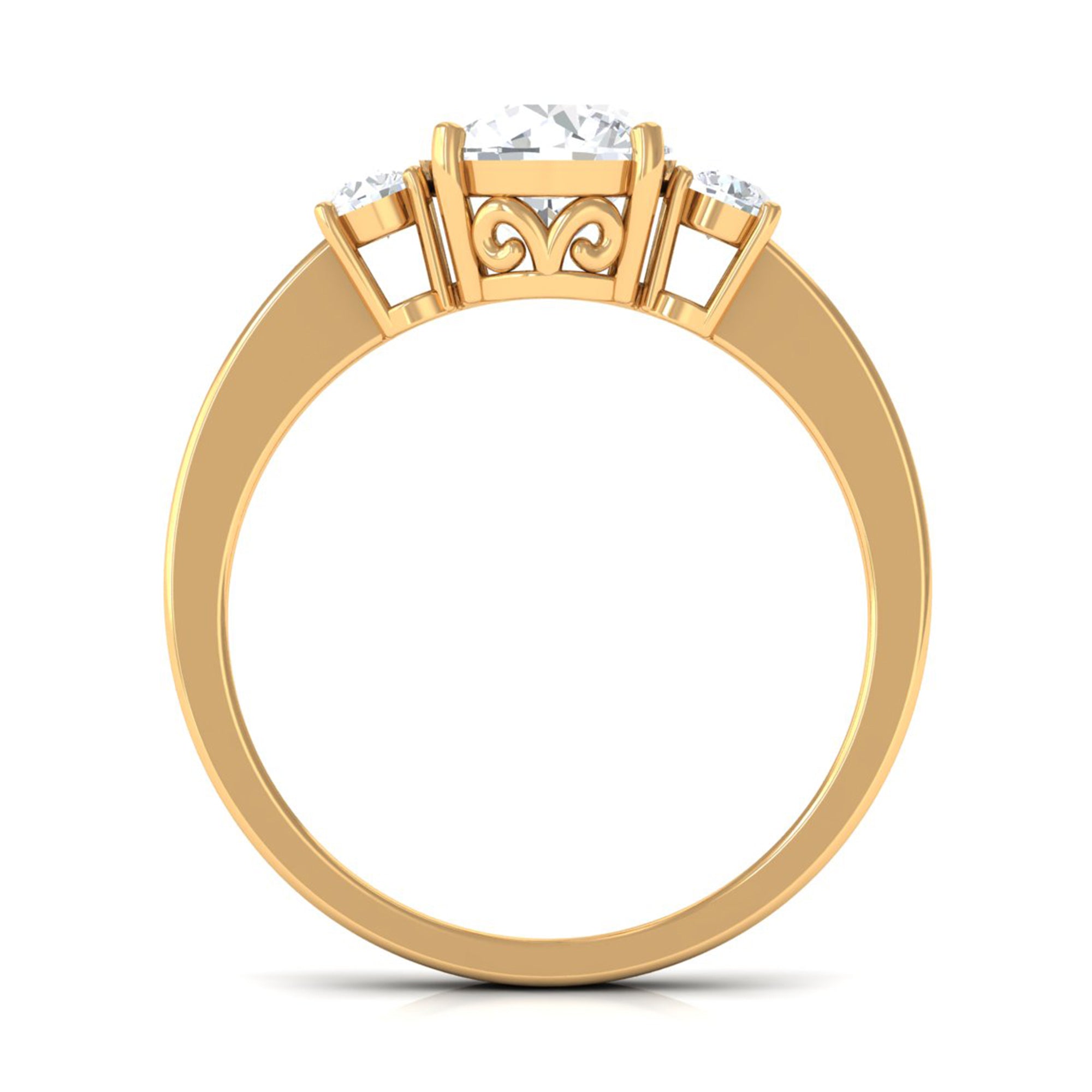 Just like the name suggests, this ring style draws inspiration from the old-world designs of Victorian, Edwardian, and Art Deco Eras that complement the sparkling center stone of CZ steal the limelight. You’re most likely to witness ornately crafted filigree and milgrain detailing, abstract geometrical patterns, retro floral motifs, and antique engravings. So, if you have been on the lookout for Gold Cubic Zirconia Engagement Rings that speak to your old school love, look no further!