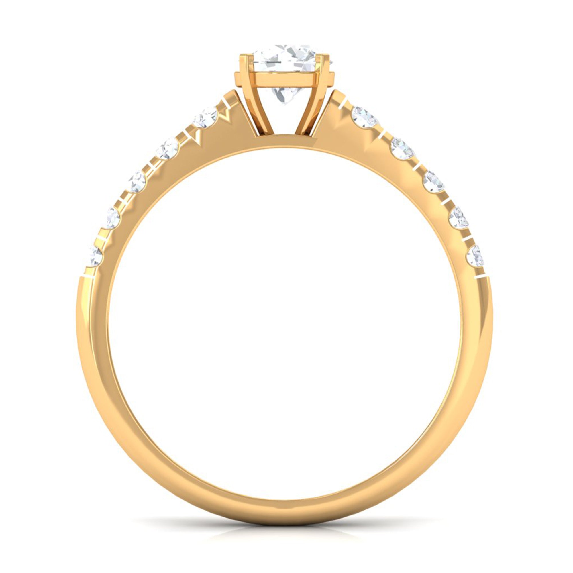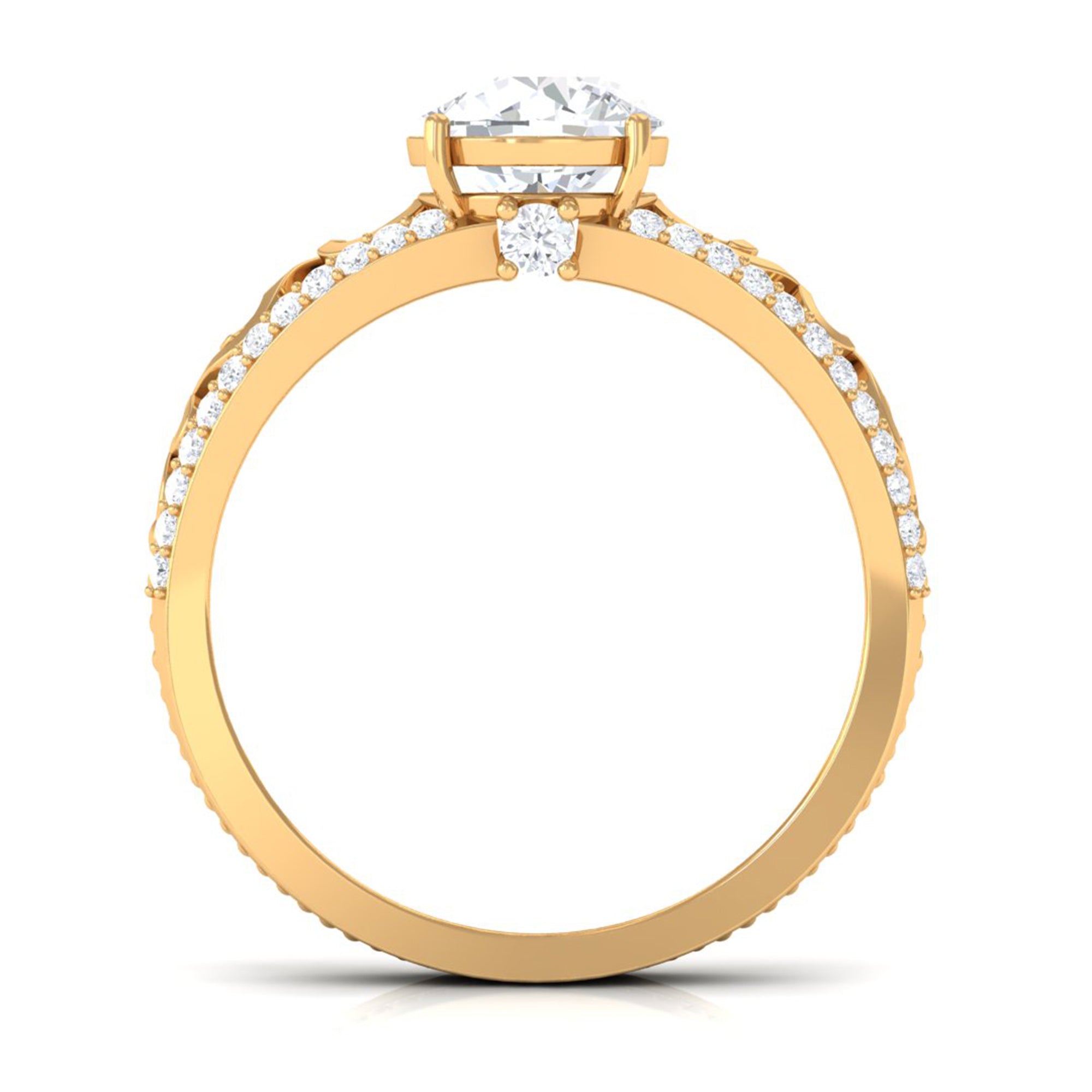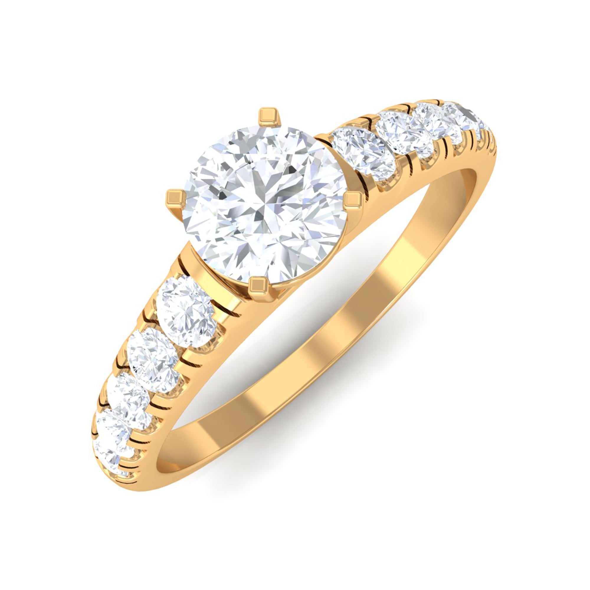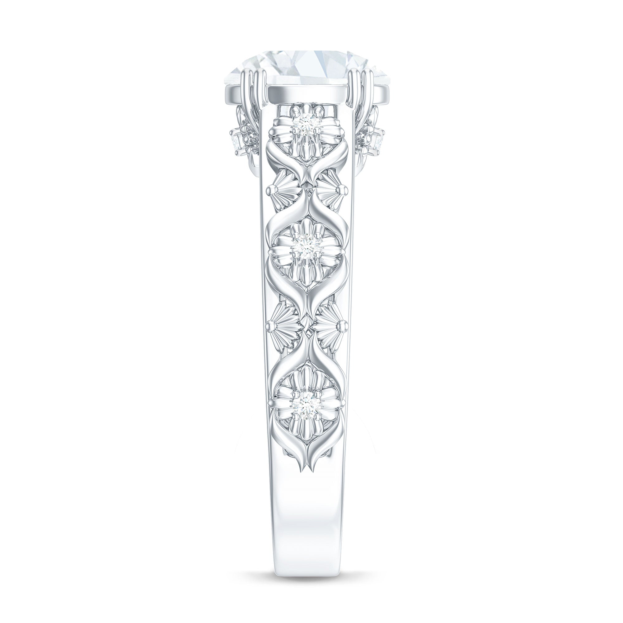 Just like the name suggests, this ring style draws inspiration from the old-world designs of Victorian, Edwardian, and Art Deco Eras that complement the sparkling center stone of CZ steal the limelight. You’re most likely to witness ornately crafted filigree and milgrain detailing, abstract geometrical patterns, retro floral motifs, and antique engravings. So, if you have been on the lookout for Gold Cubic Zirconia Engagement Rings that speak to your old school love, look no further!