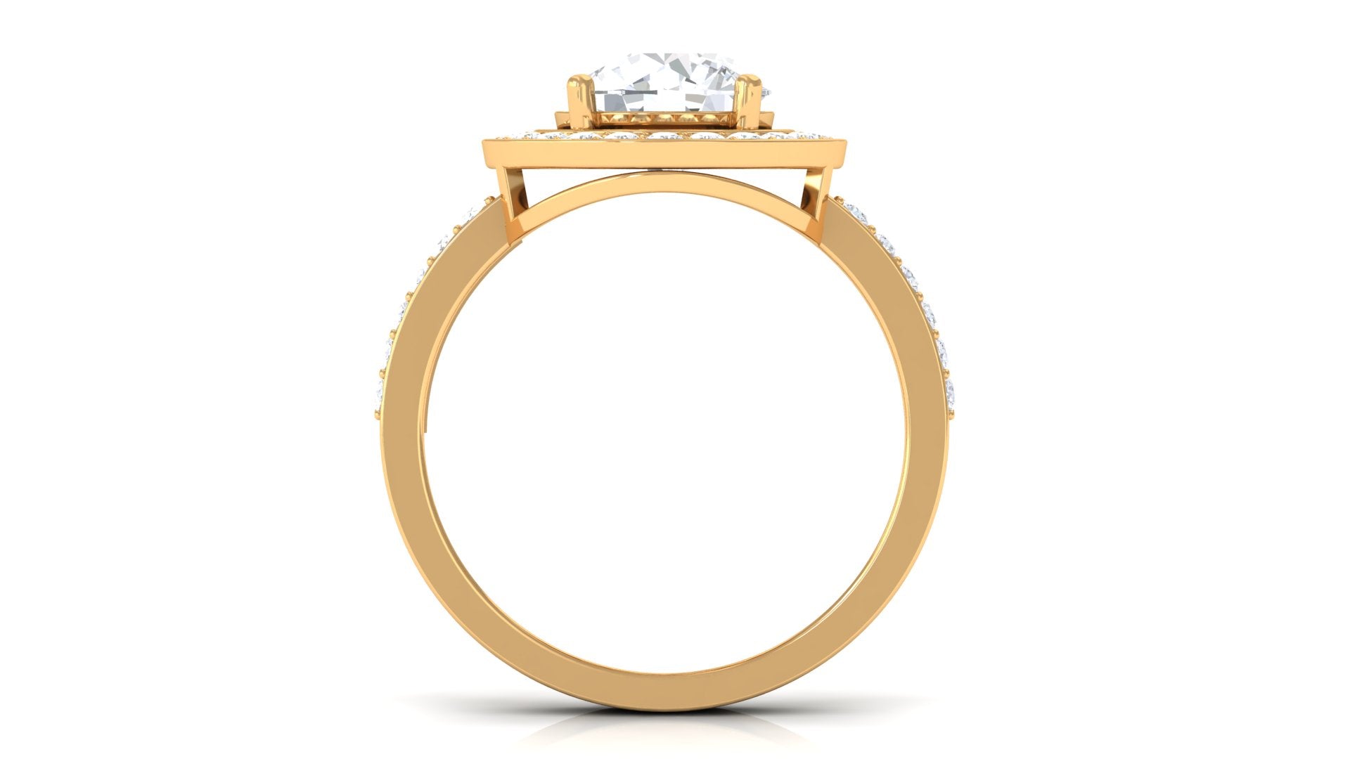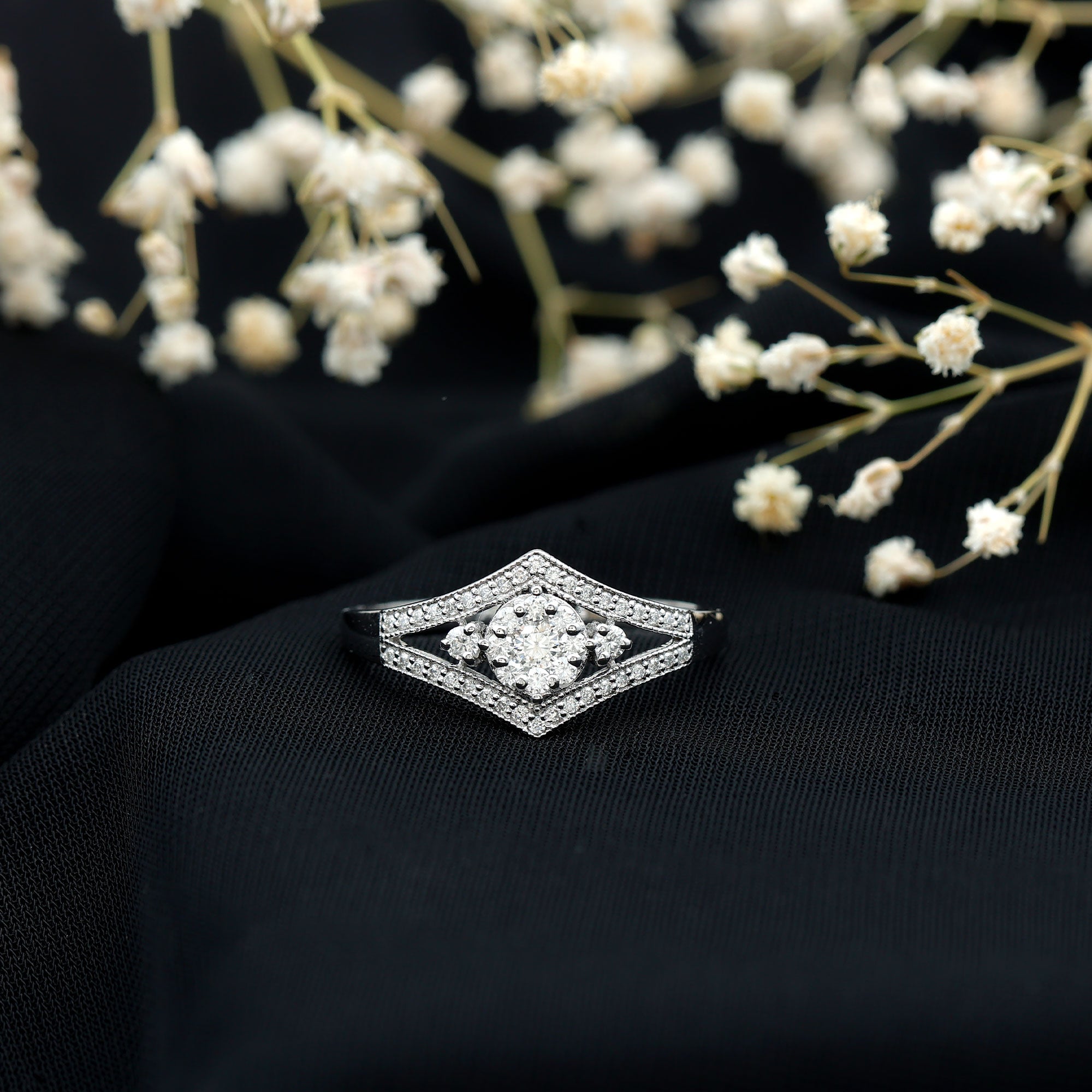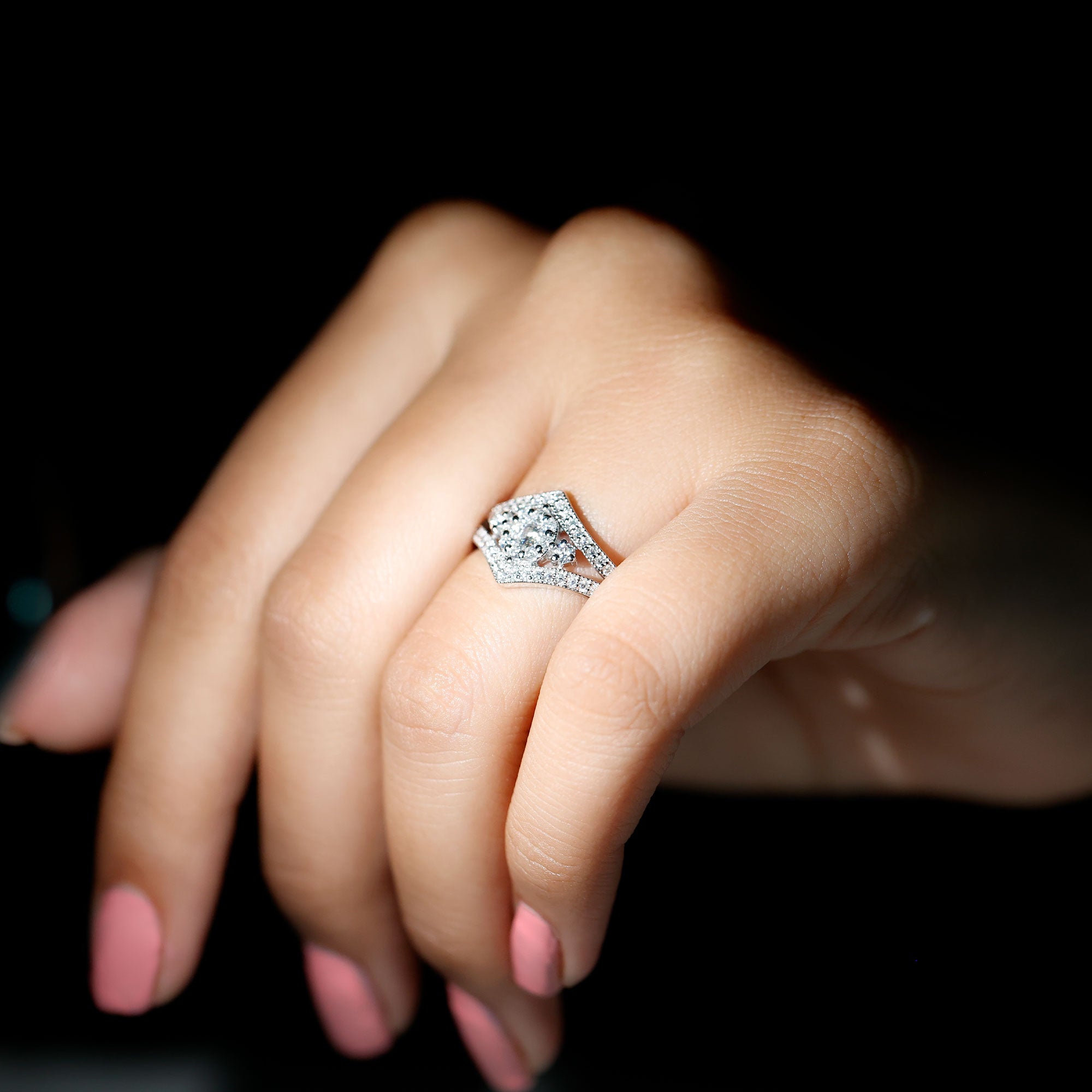 Standing out for its glitz and glam, a Halo encircles the Center Stone with a row of shimmering Cubic Zirconia. As an added advantage, the extra layer of sparkles here deceives the eye by making the center stone appear larger in size. So, if she is all about the bling, a Halo Style Cubic Zirconia Engagement Ring for Women seems like the perfect pick.