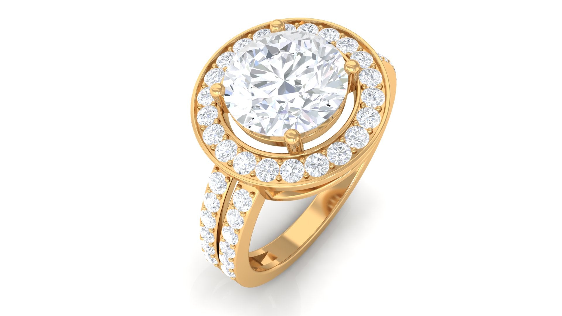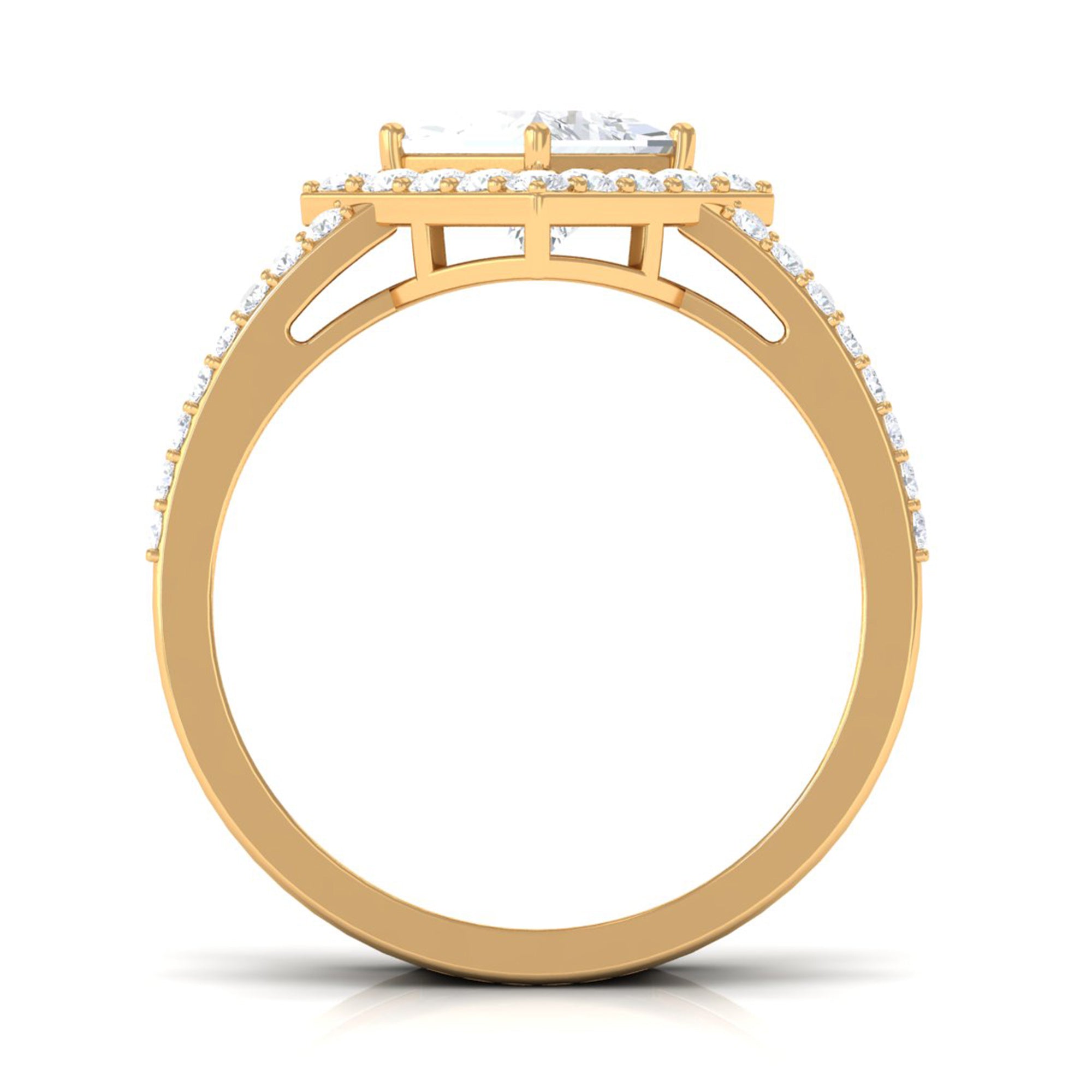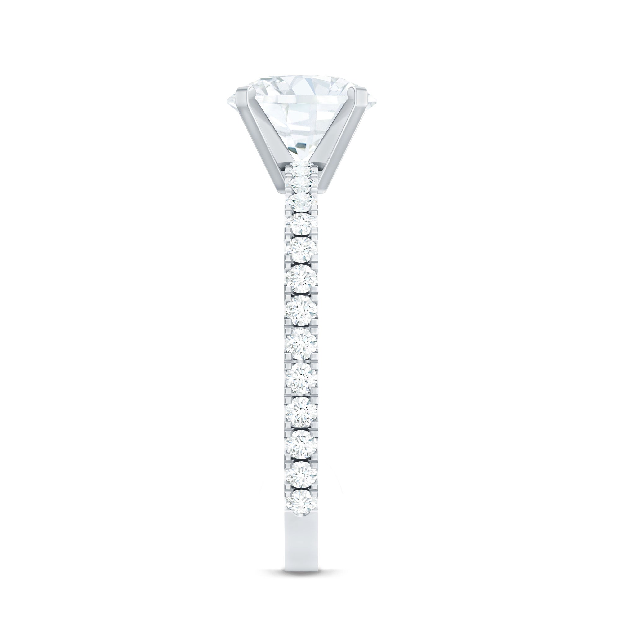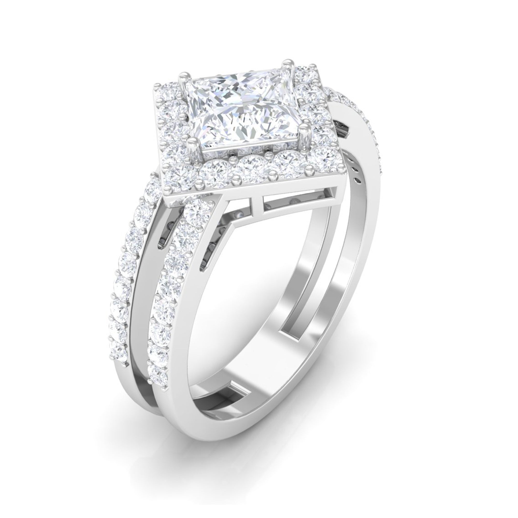 Standing out for its glitz and glam, a Halo encircles the Center Stone with a row of shimmering Cubic Zirconia. As an added advantage, the extra layer of sparkles here deceives the eye by making the center stone appear larger in size. So, if she is all about the bling, a Halo Style Cubic Zirconia Engagement Ring for Women seems like the perfect pick.