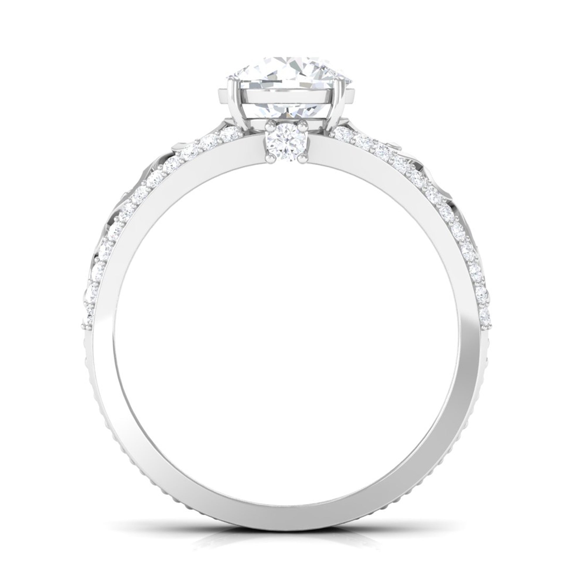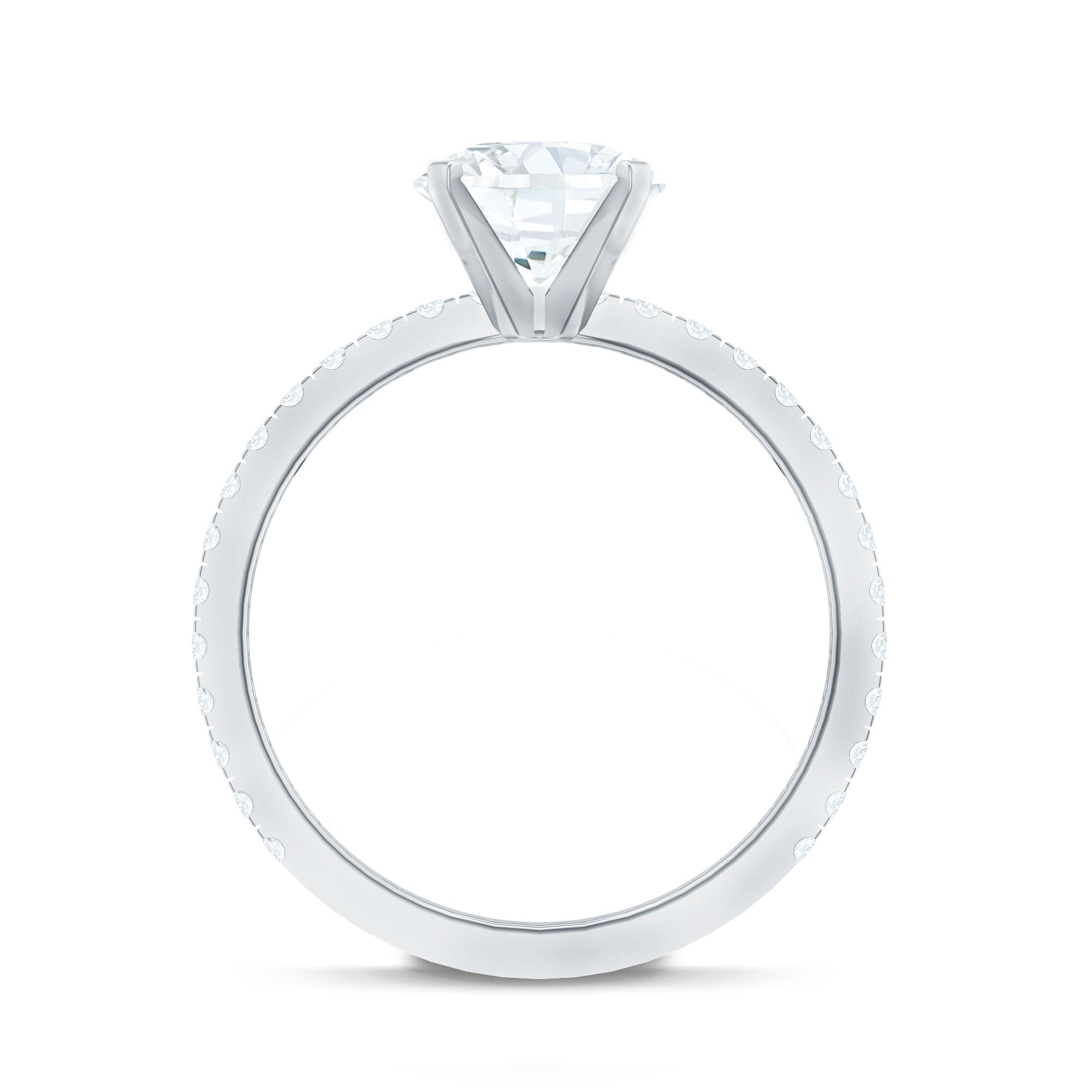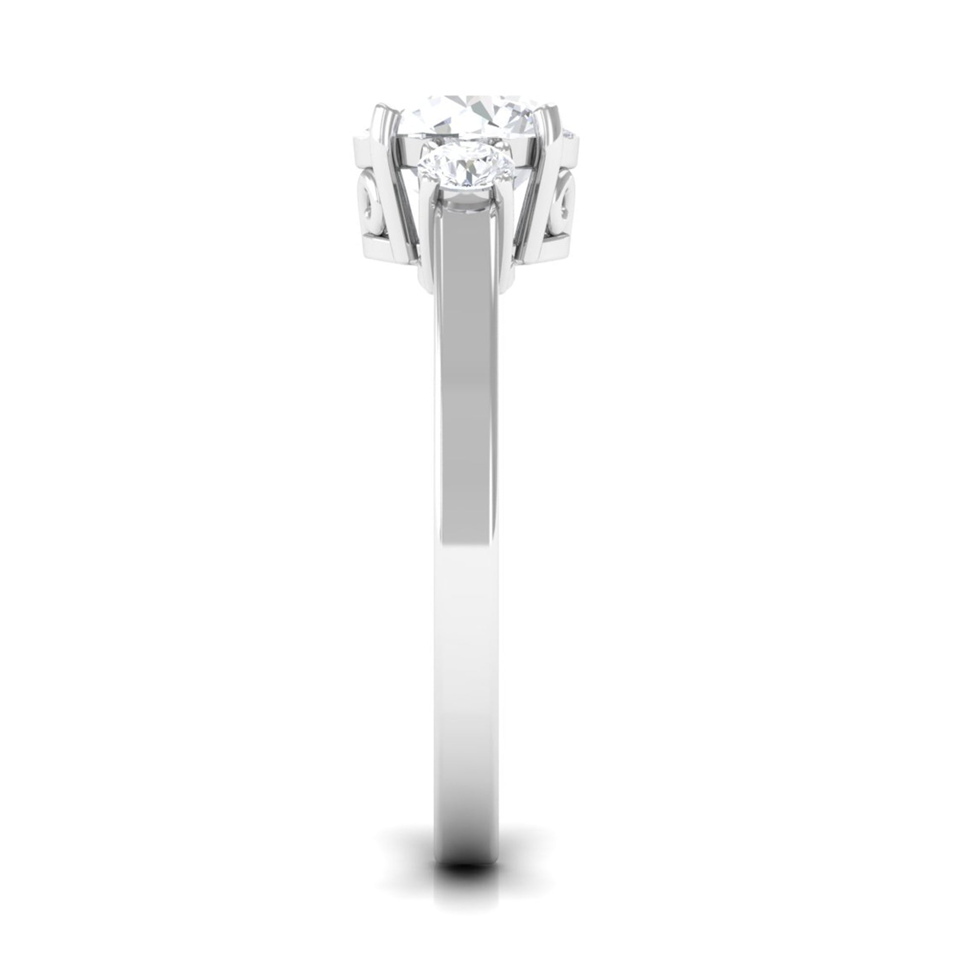 Unconventional and uniquely flashy, this ring style is encased with three stones of Cubic Zirconia arranged uniformly in a row. If you fancy more sparkles in your betrothal ring, a three stone ring is the way forward (since three stones means triple the sparkles). While a Round or Oval Cubic Zirconia Engagement Rings are the most classic options in this ring style, those adorned with Pear, Princess, Cushion, and Emerald Cut are also soaring in popularity. Behind its eye-striking aesthetics, it speaks to each couple uniquely since each of the three stones here sheds light on the couple’s past, present, and future respectively.