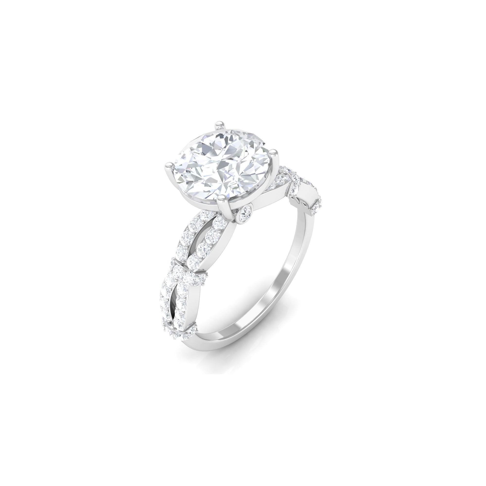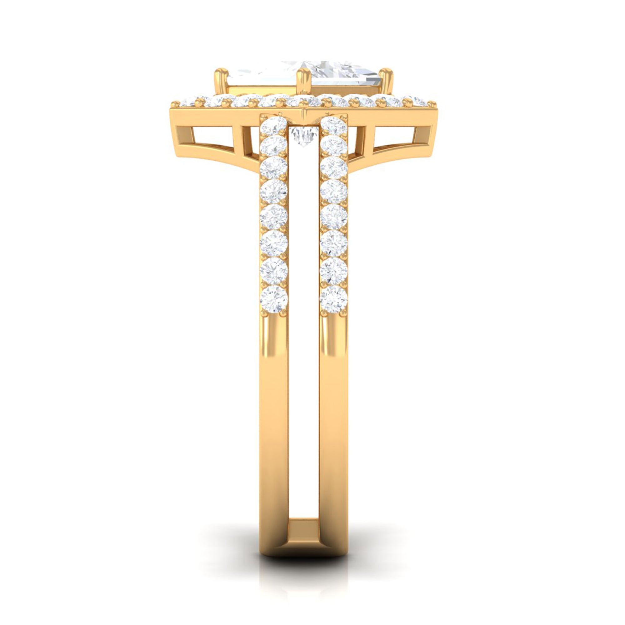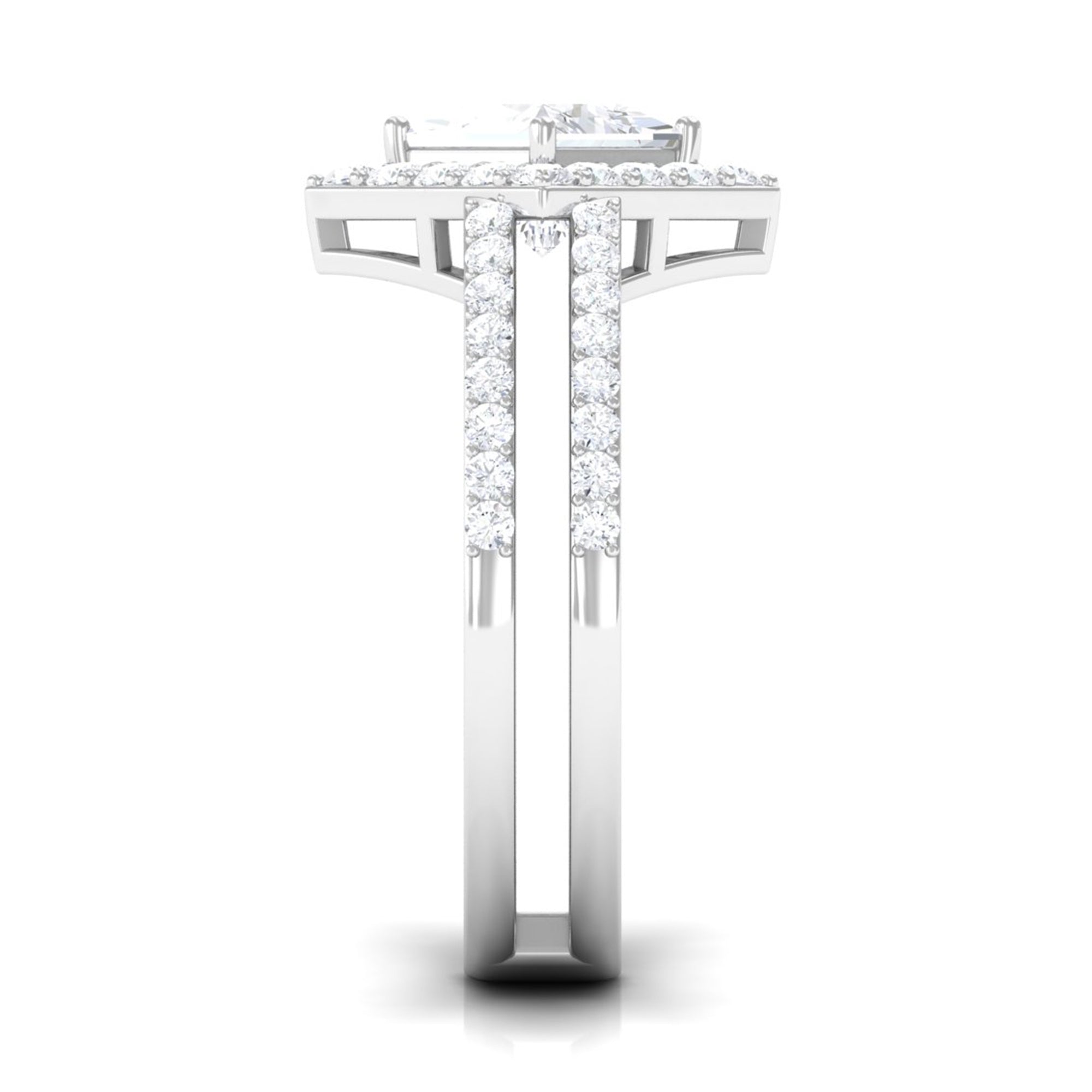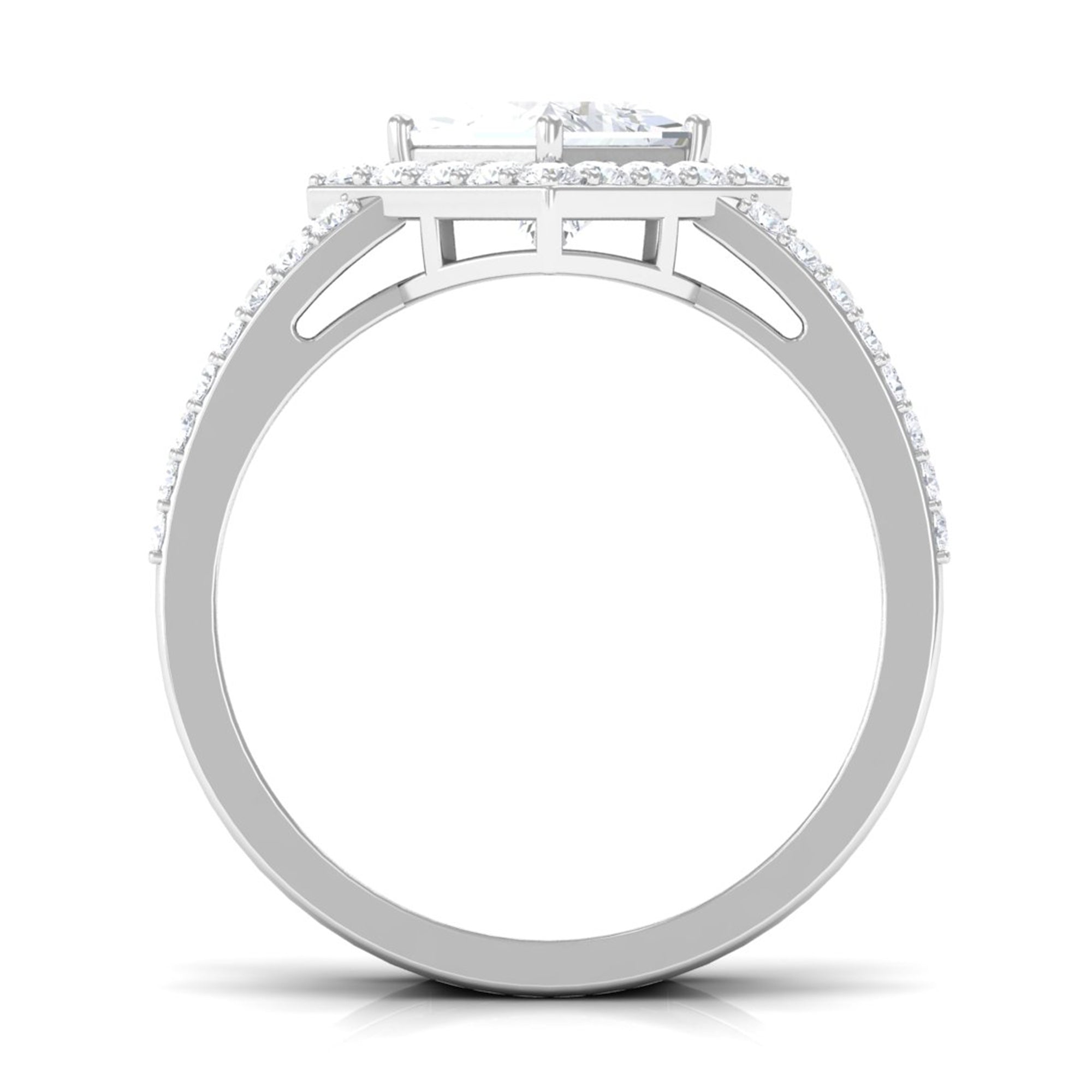 Unconventional and uniquely flashy, this ring style is encased with three stones of Cubic Zirconia arranged uniformly in a row. If you fancy more sparkles in your betrothal ring, a three stone ring is the way forward (since three stones means triple the sparkles). While a Round or Oval Cubic Zirconia Engagement Rings are the most classic options in this ring style, those adorned with Pear, Princess, Cushion, and Emerald Cut are also soaring in popularity. Behind its eye-striking aesthetics, it speaks to each couple uniquely since each of the three stones here sheds light on the couple’s past, present, and future respectively.