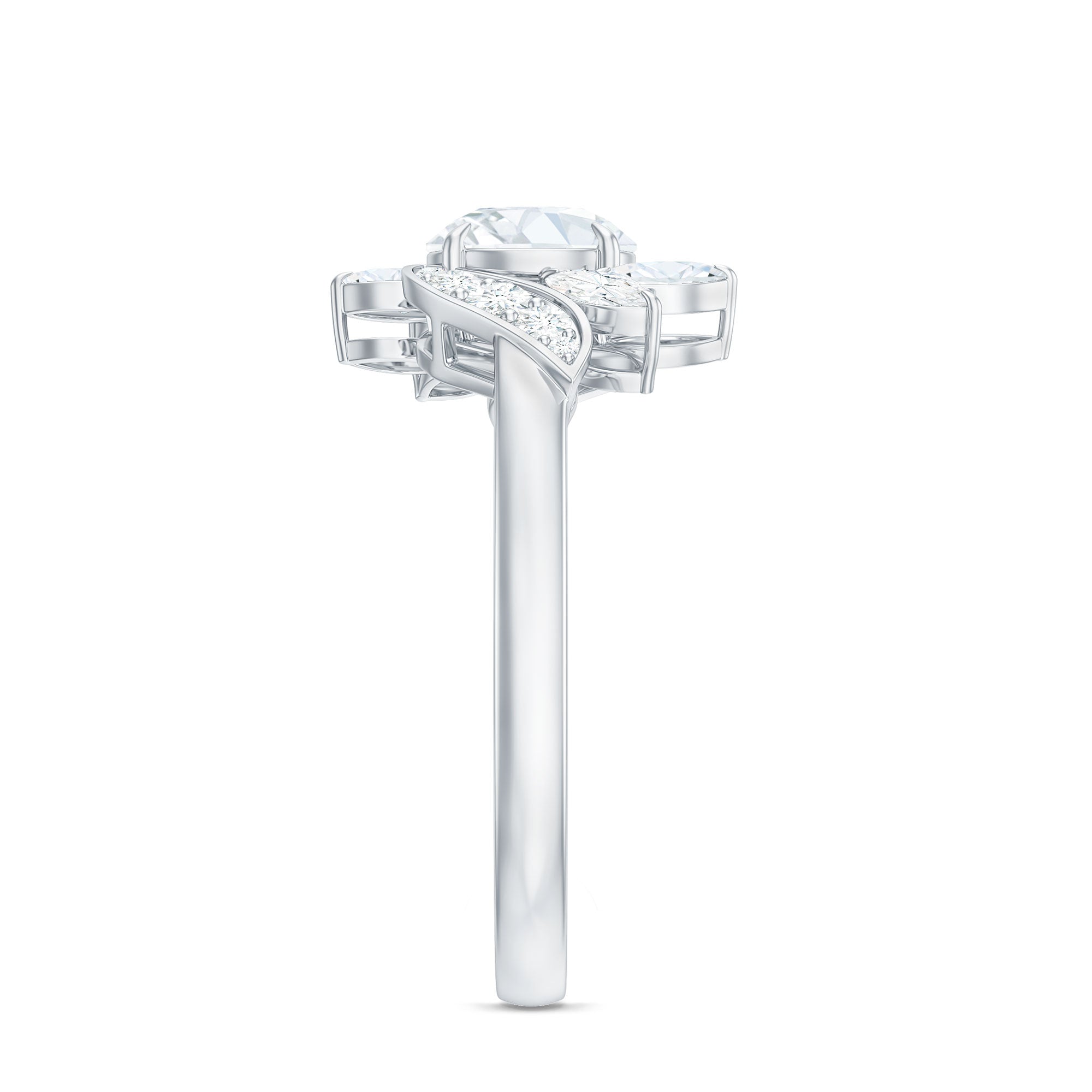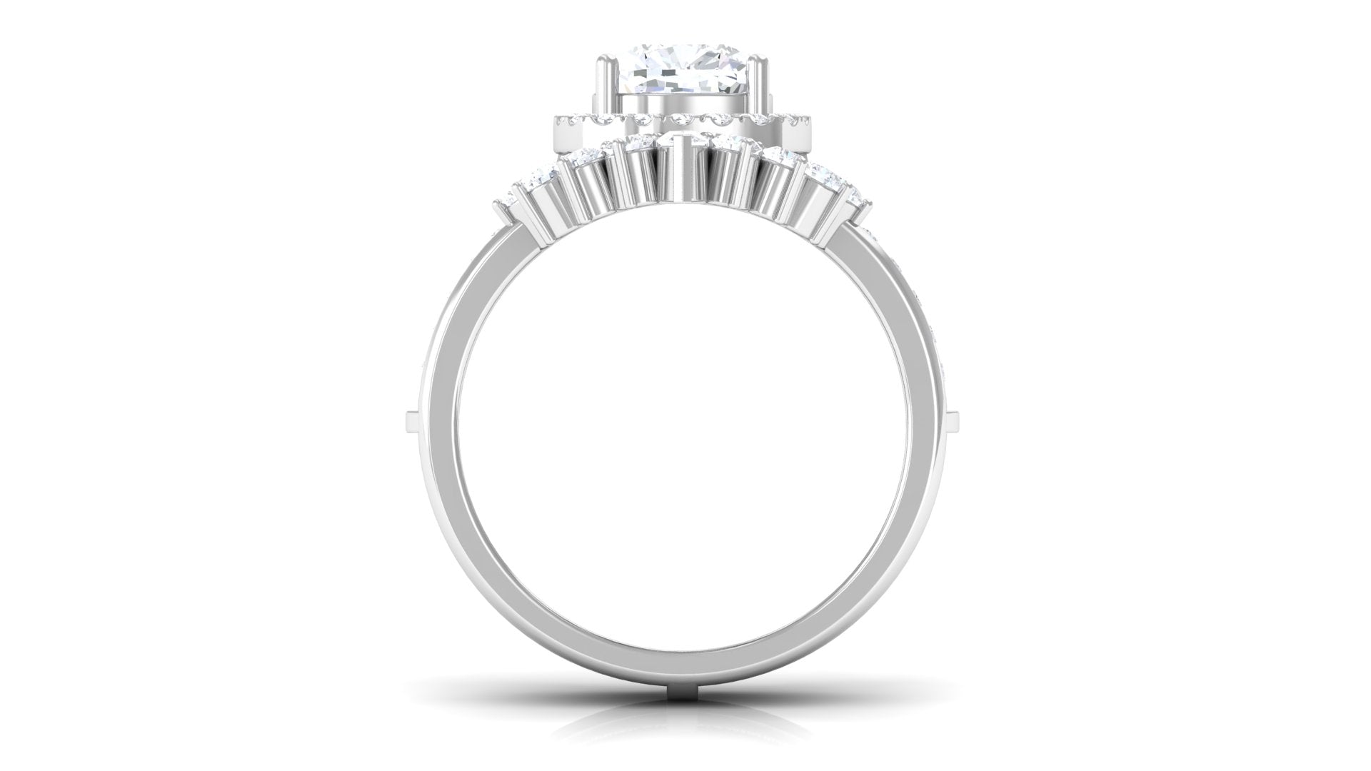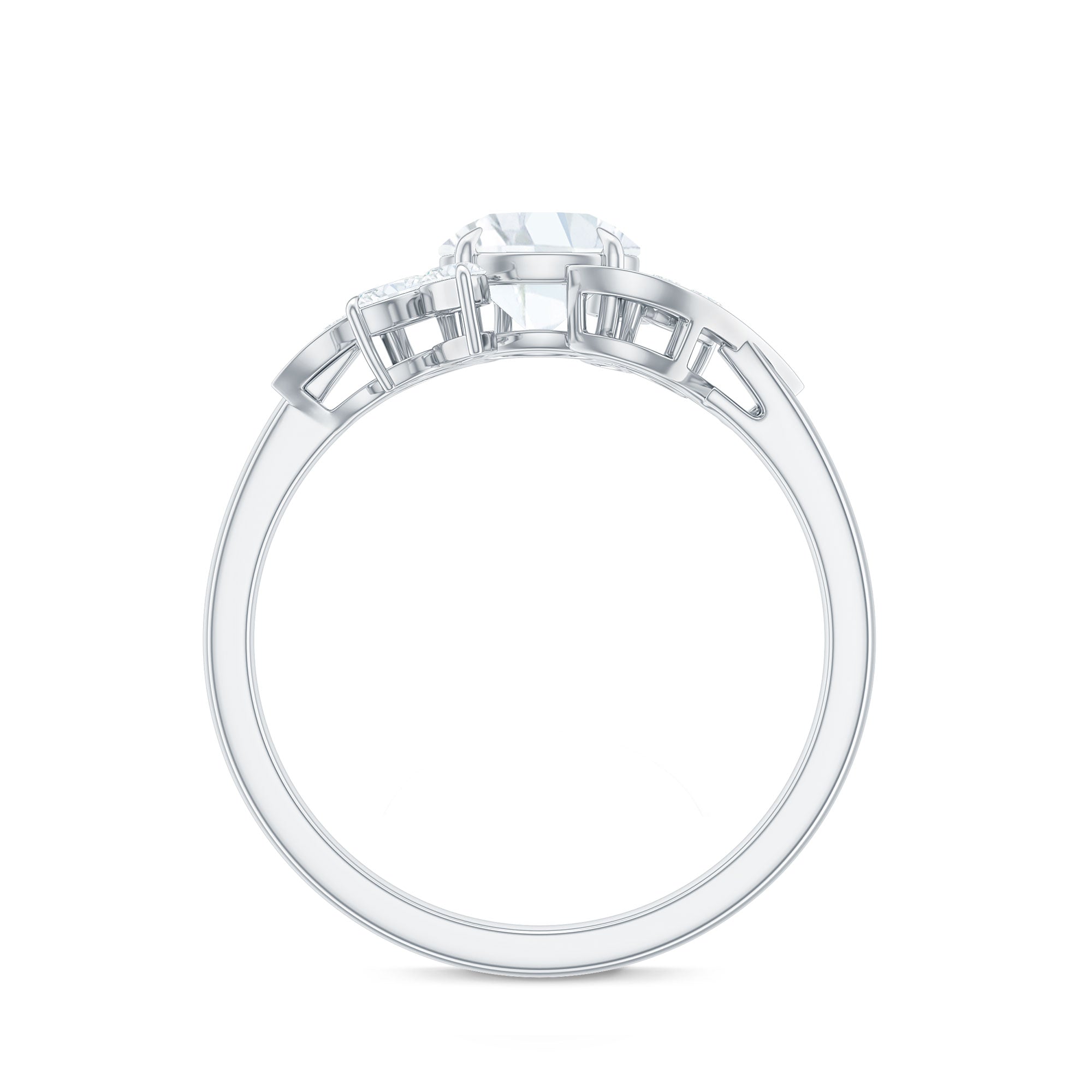 Unconventional and uniquely flashy, this ring style is encased with three stones of Cubic Zirconia arranged uniformly in a row. If you fancy more sparkles in your betrothal ring, a three stone ring is the way forward (since three stones means triple the sparkles). While a Round or Oval Cubic Zirconia Engagement Rings are the most classic options in this ring style, those adorned with Pear, Princess, Cushion, and Emerald Cut are also soaring in popularity. Behind its eye-striking aesthetics, it speaks to each couple uniquely since each of the three stones here sheds light on the couple’s past, present, and future respectively.