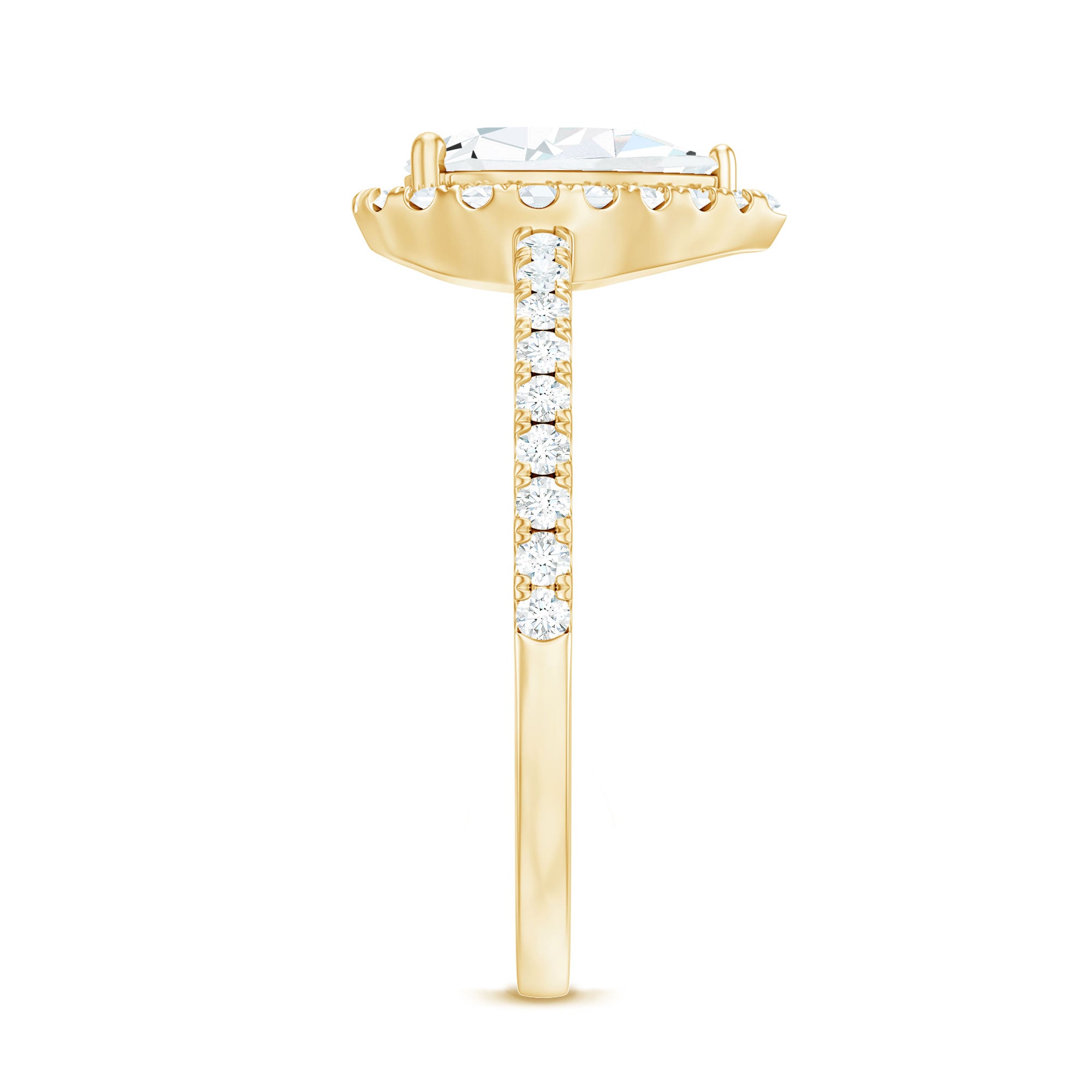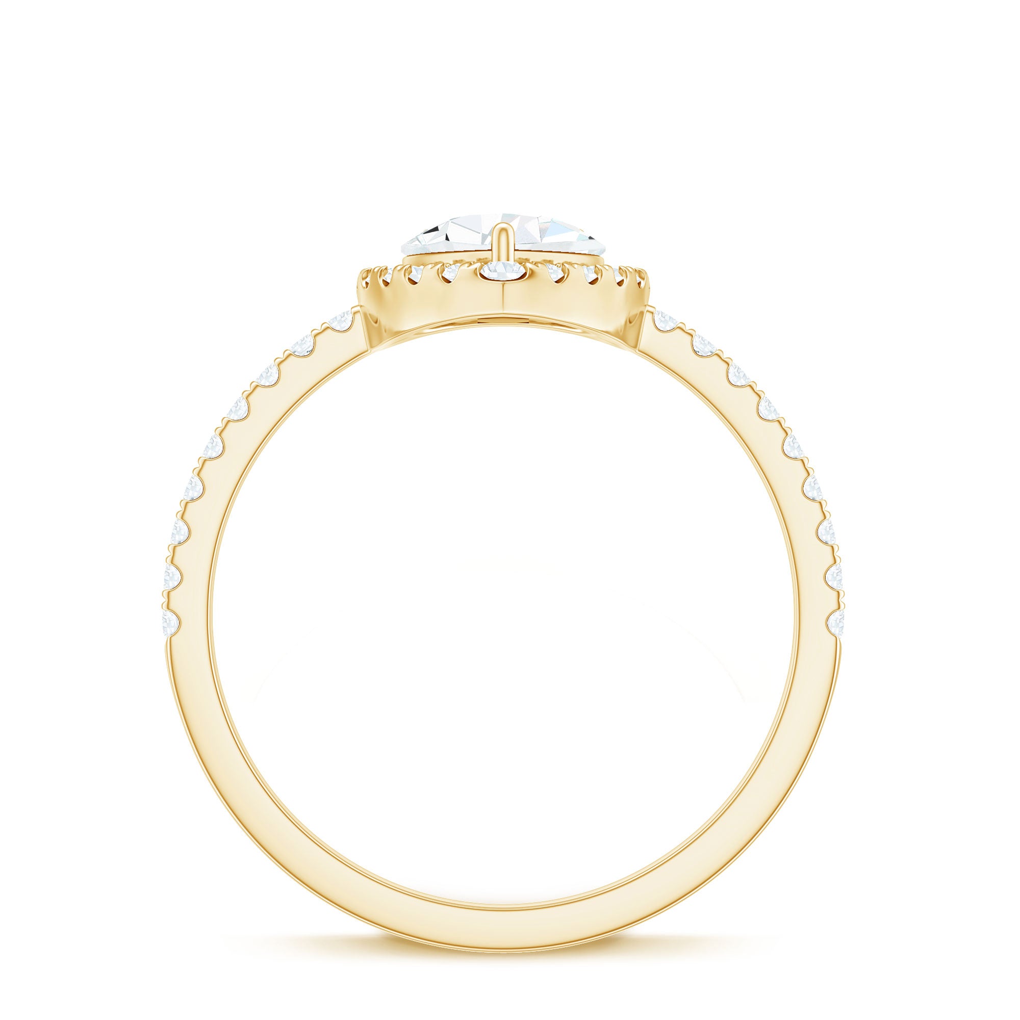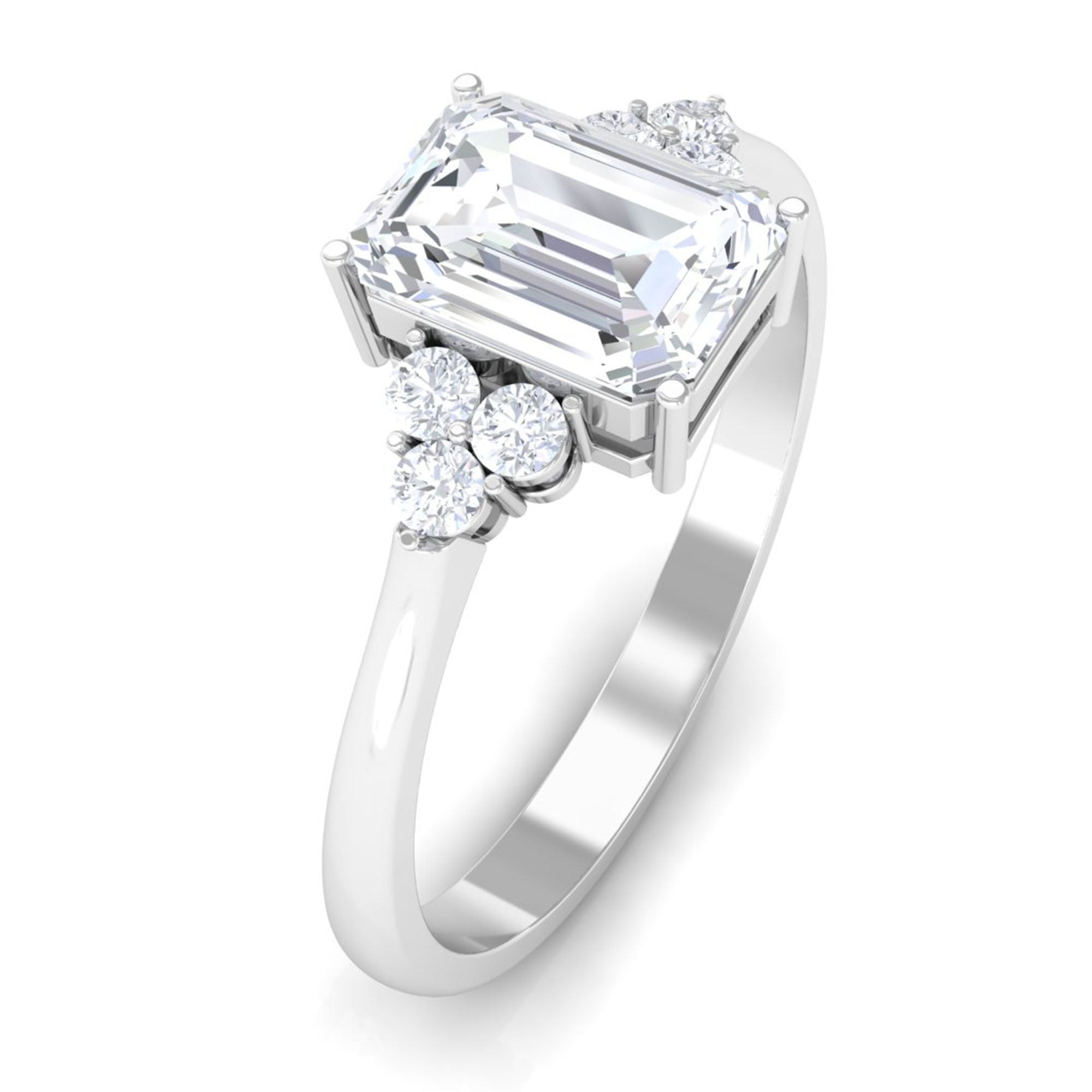 Unconventional and uniquely flashy, this ring style is encased with three stones of Cubic Zirconia arranged uniformly in a row. If you fancy more sparkles in your betrothal ring, a three stone ring is the way forward (since three stones means triple the sparkles). While a Round or Oval Cubic Zirconia Engagement Rings are the most classic options in this ring style, those adorned with Pear, Princess, Cushion, and Emerald Cut are also soaring in popularity. Behind its eye-striking aesthetics, it speaks to each couple uniquely since each of the three stones here sheds light on the couple’s past, present, and future respectively.