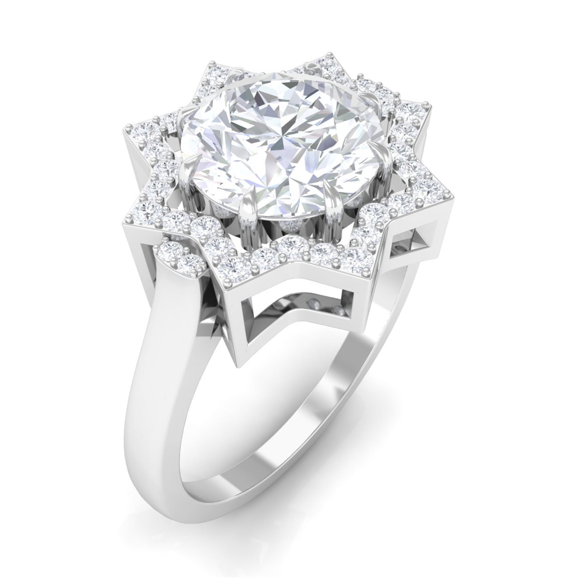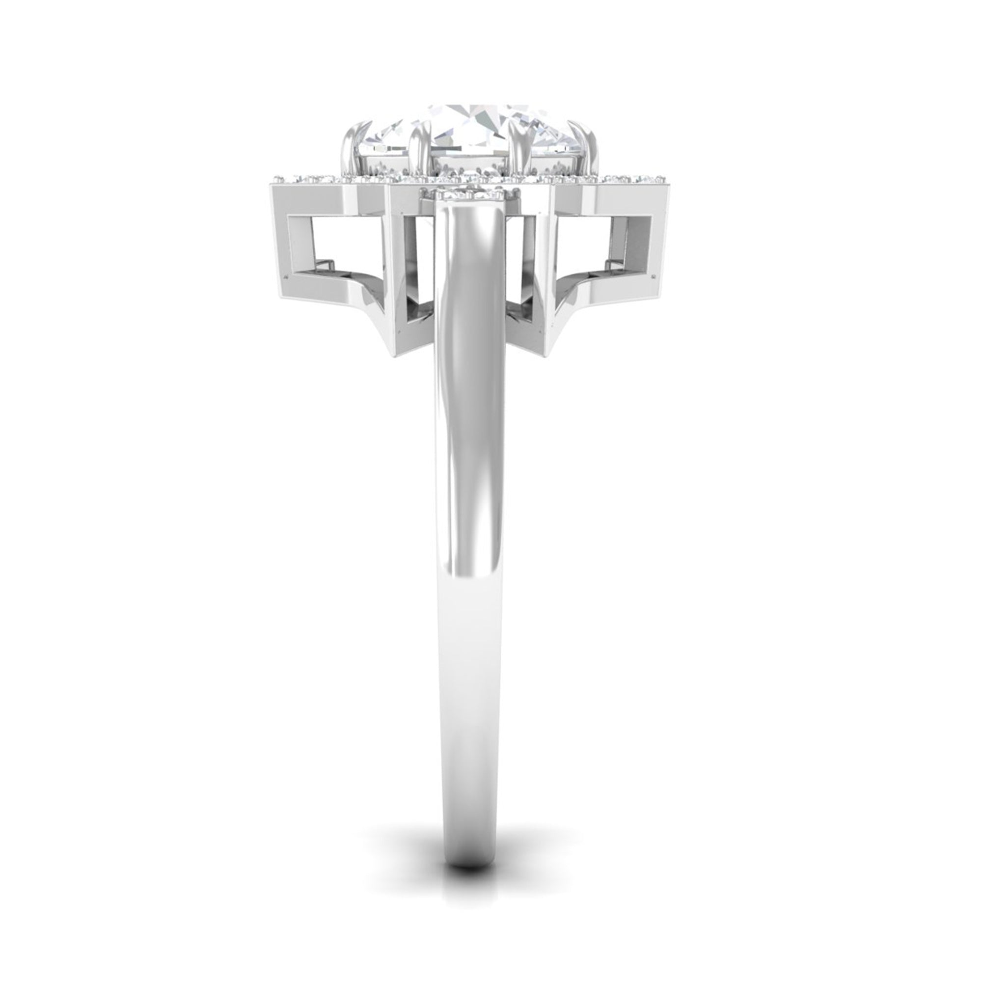 Standing out for its glitz and glam, a Halo encircles the Center Stone with a row of shimmering Cubic Zirconia. As an added advantage, the extra layer of sparkles here deceives the eye by making the center stone appear larger in size. So, if she is all about the bling, a Halo Style Cubic Zirconia Engagement Ring for Women seems like the perfect pick.