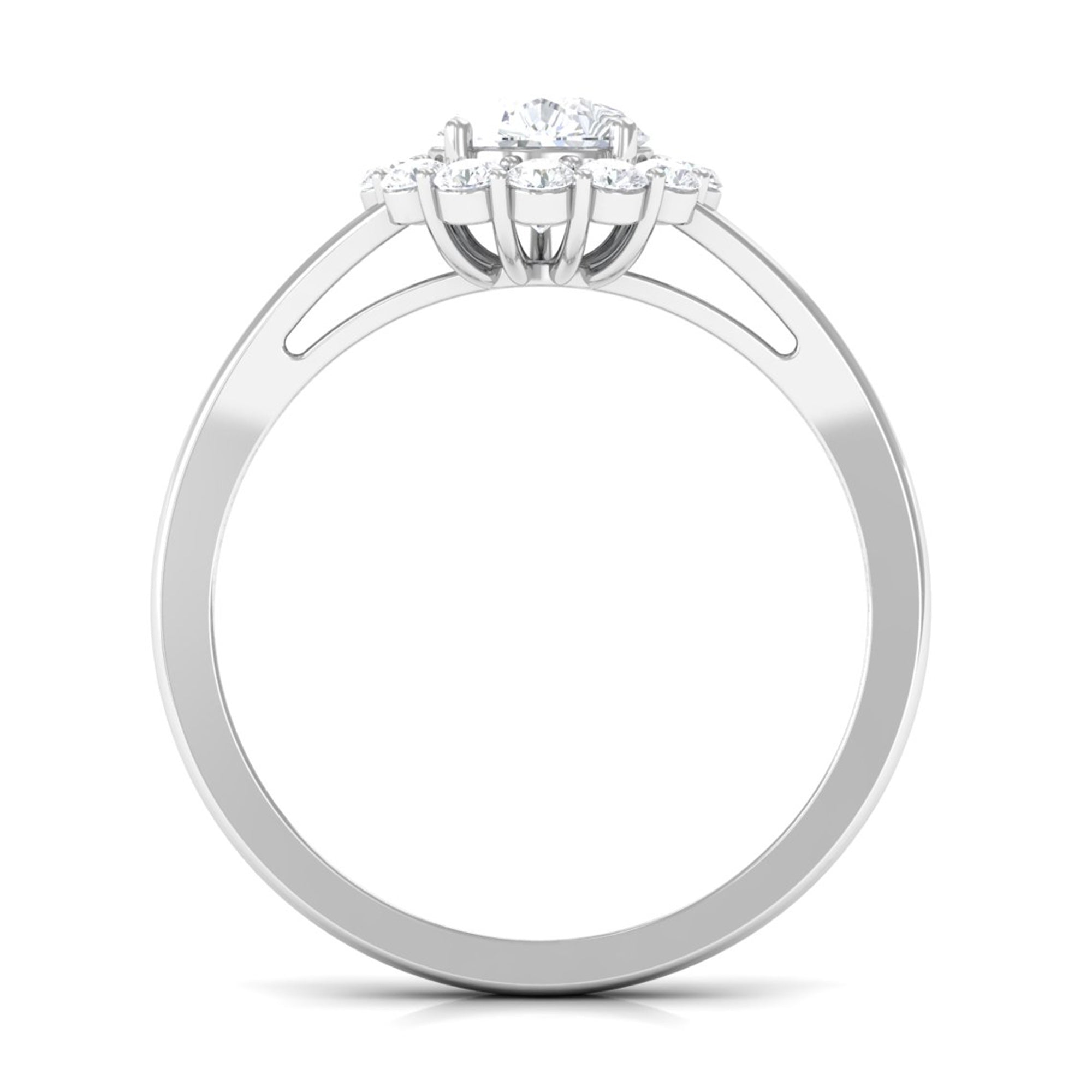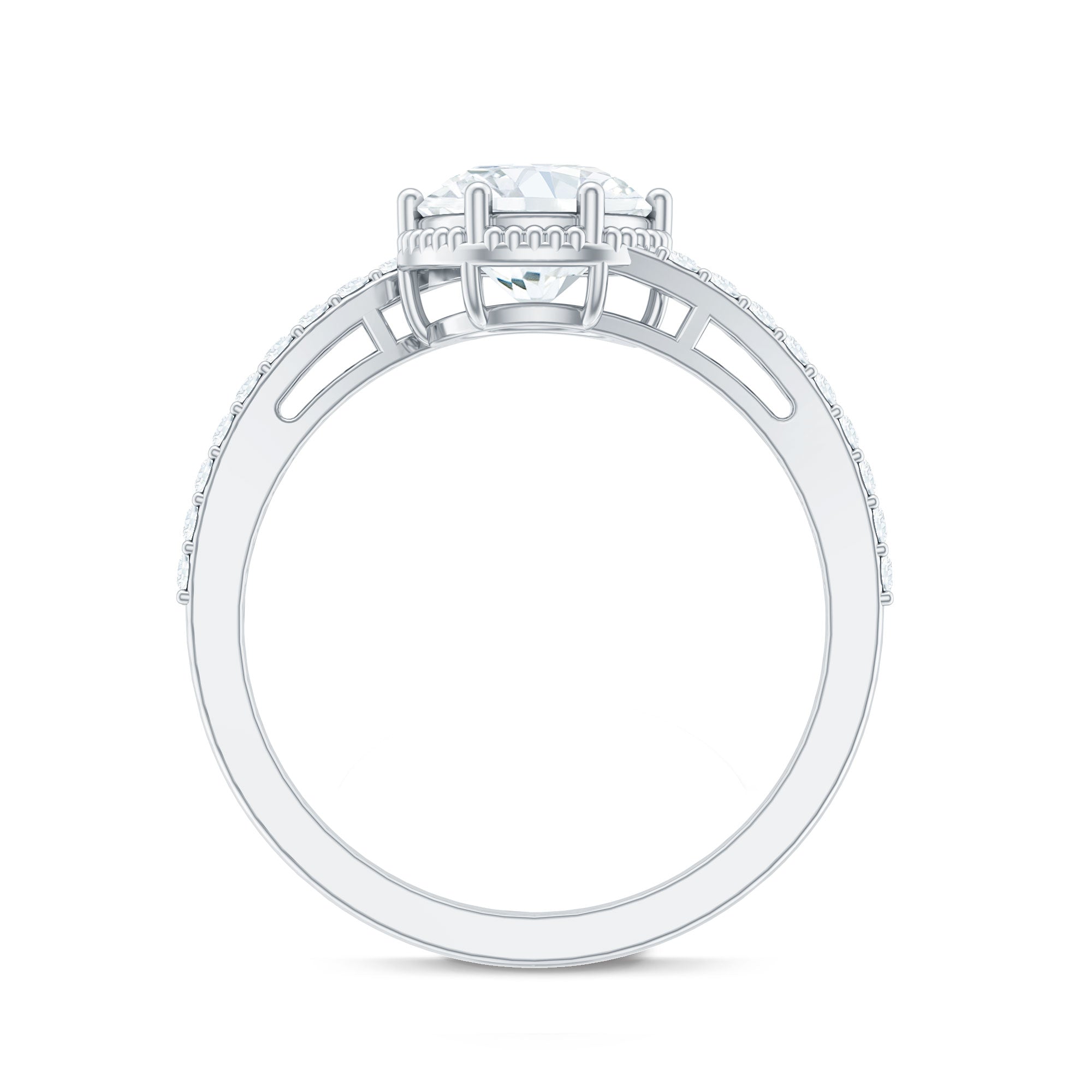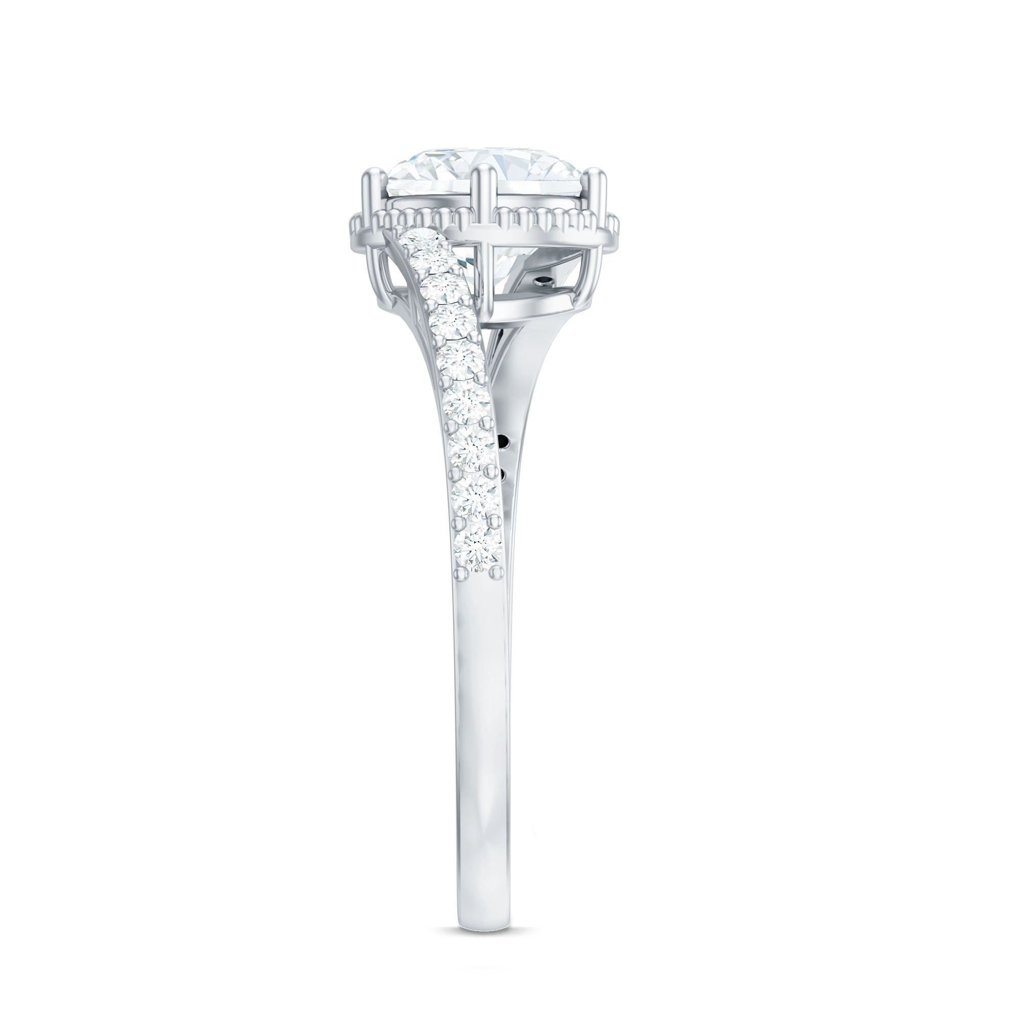 Standing out for its glitz and glam, a Halo encircles the Center Stone with a row of shimmering Cubic Zirconia. As an added advantage, the extra layer of sparkles here deceives the eye by making the center stone appear larger in size. So, if she is all about the bling, a Halo Style Cubic Zirconia Engagement Ring for Women seems like the perfect pick.
