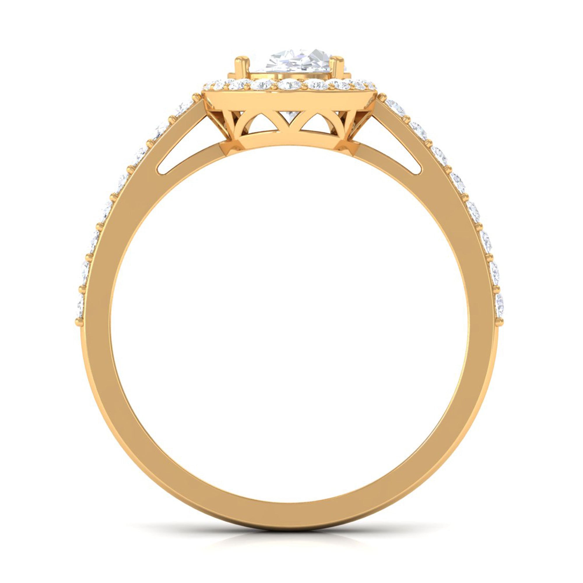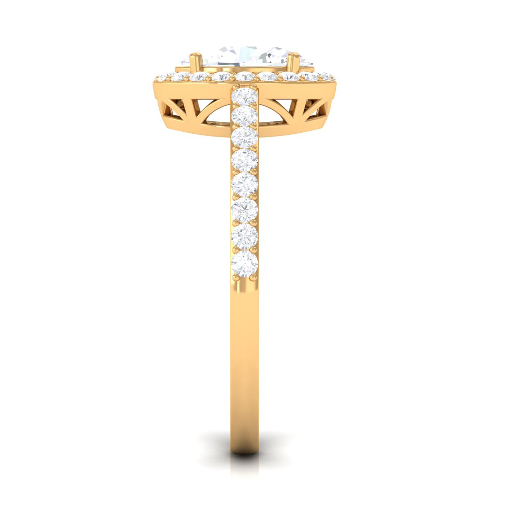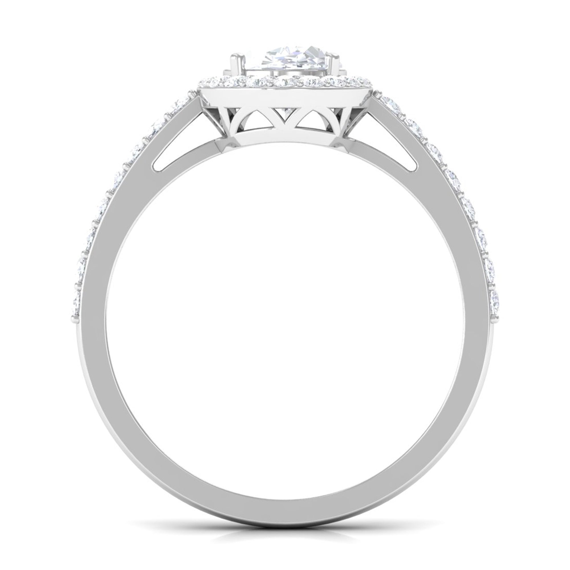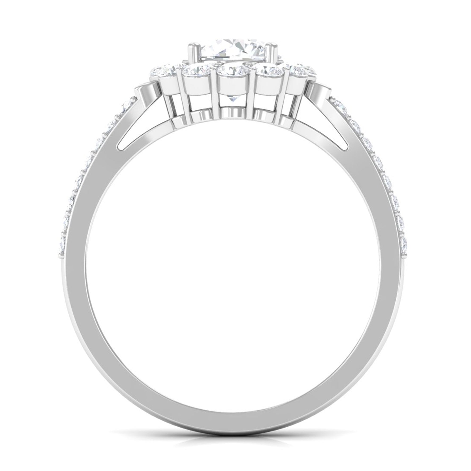 Standing out for its glitz and glam, a Halo encircles the Center Stone with a row of shimmering Cubic Zirconia. As an added advantage, the extra layer of sparkles here deceives the eye by making the center stone appear larger in size. So, if she is all about the bling, a Halo Style Cubic Zirconia Engagement Ring for Women seems like the perfect pick.