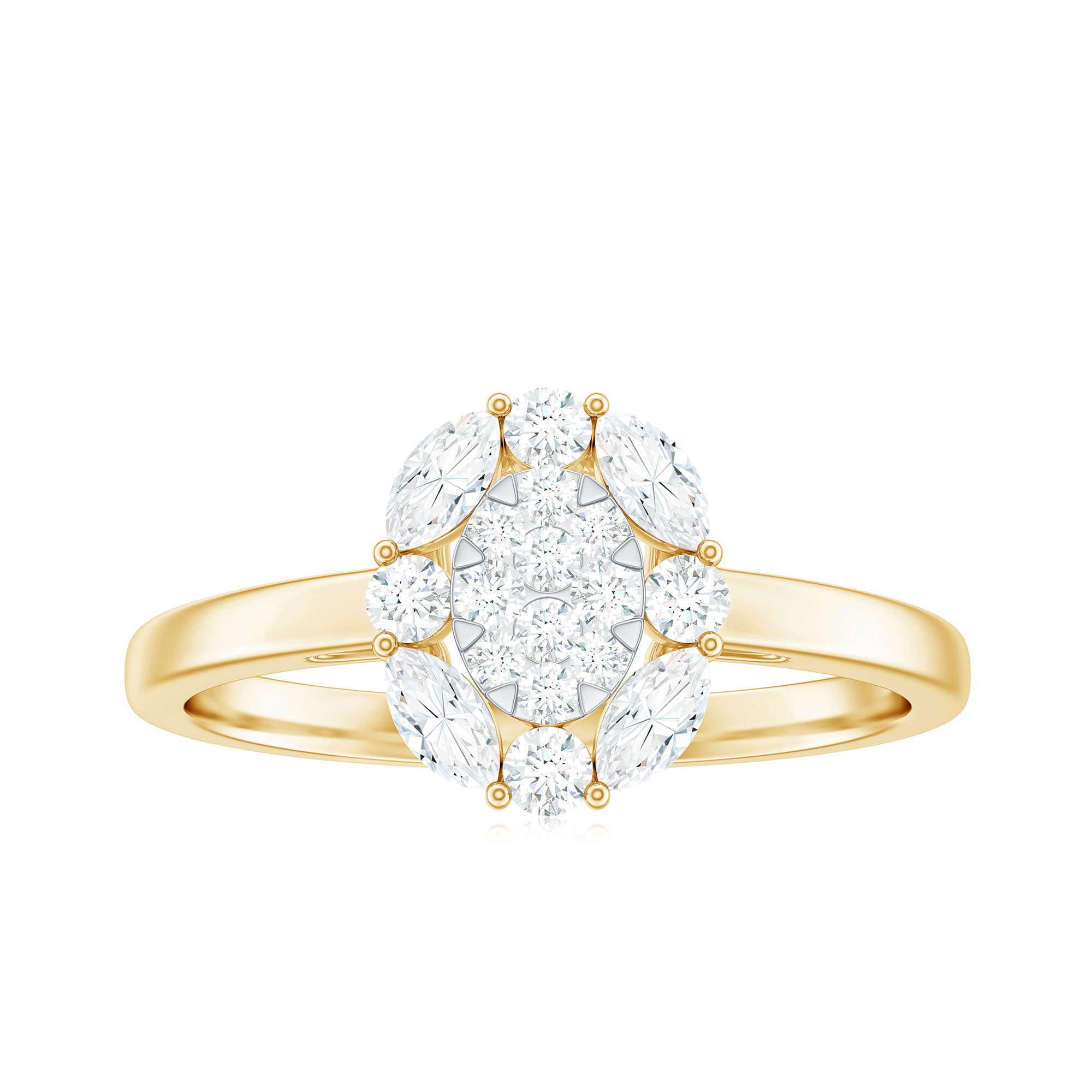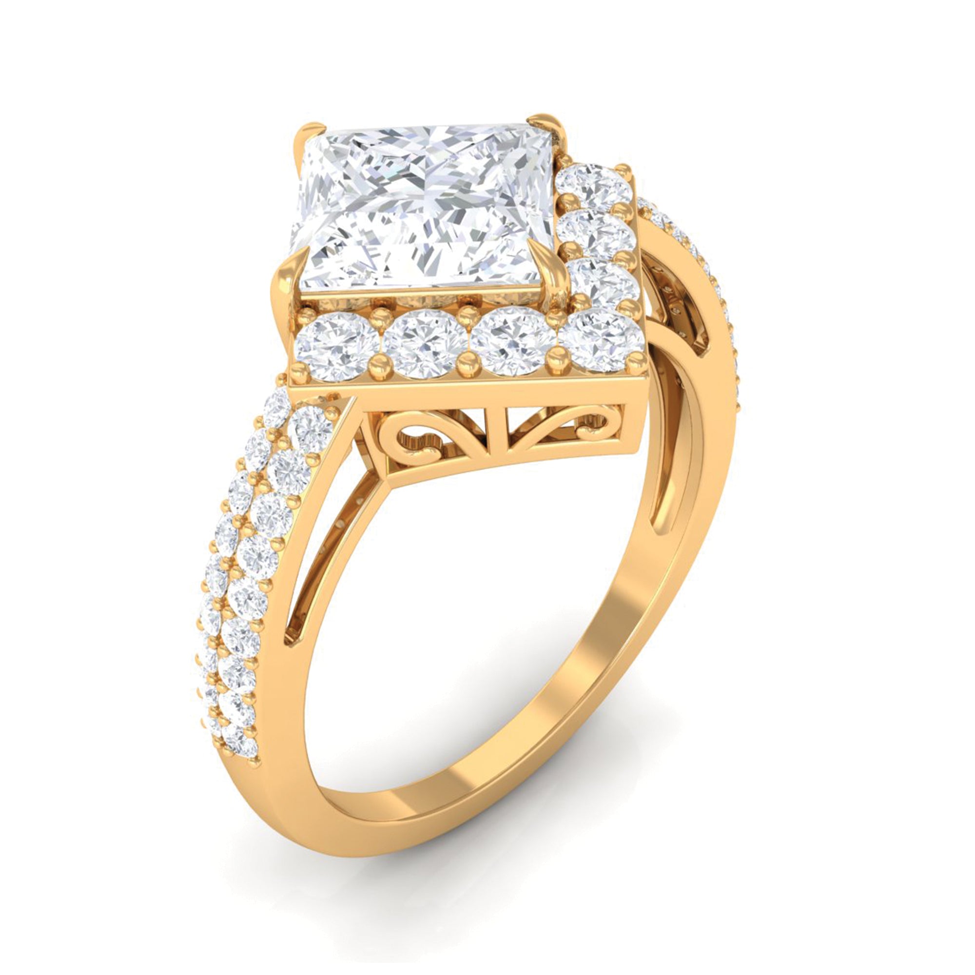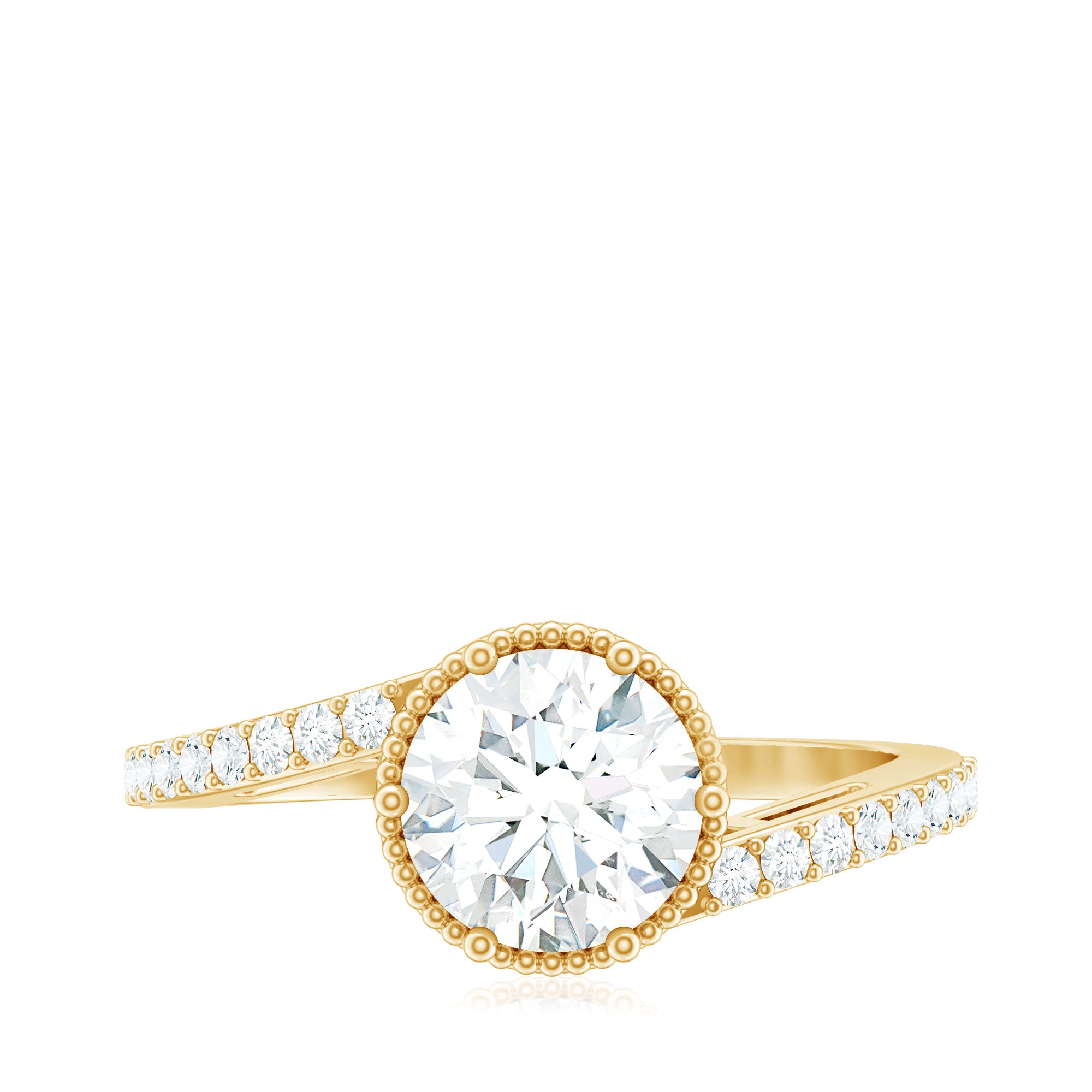 Just like the name suggests, this ring style draws inspiration from the old-world designs of Victorian, Edwardian, and Art Deco Eras that complement the sparkling center stone of CZ steal the limelight. You’re most likely to witness ornately crafted filigree and milgrain detailing, abstract geometrical patterns, retro floral motifs, and antique engravings. So, if you have been on the lookout for Gold Cubic Zirconia Engagement Rings that speak to your old school love, look no further!