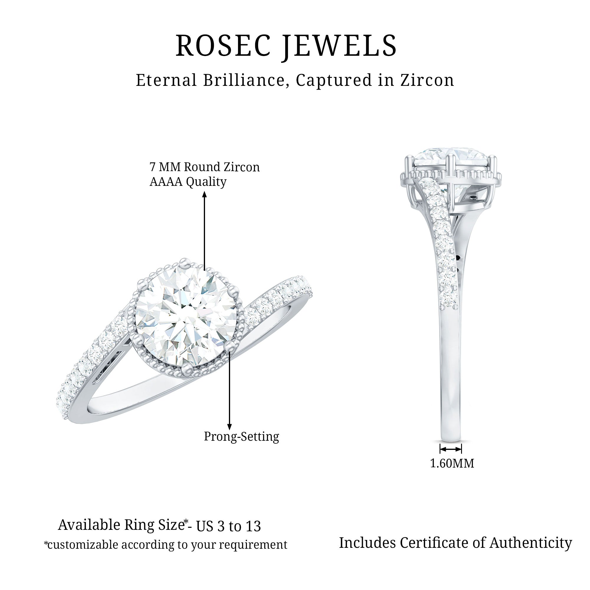 A Solitaire Ring is encased with the Single Centerpiece of Cubic Zirconia that takes all the center stage owing to its enormous size of 6 MM or more. Hailed as a timeless classic, a Solitaire Style Zirconia Engagement Ring is easily the go-to choice for all the conventional couples out there. Not just that, it pleases many aesthetics owing to the many shapes it is fashioned in. While a Round CZ Ring appeals owing to its understated and minimalist look, the one adorned with fanciers cuts like Pear, Marquise, or Princess speak to the trend-savvy bride-to-be(s). On the other hand, Asscher, Emerald, and Cushion Cut CZ Engagement Ring is meant to speak to those who fancy a vintage emblem of love.