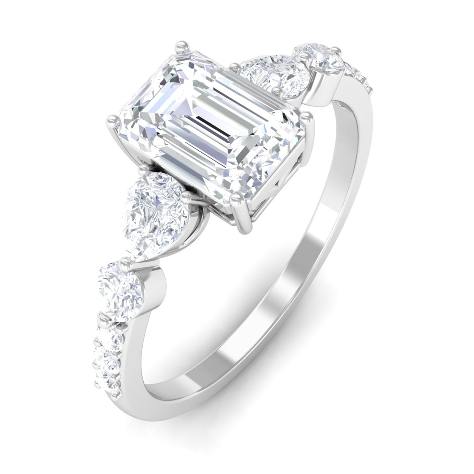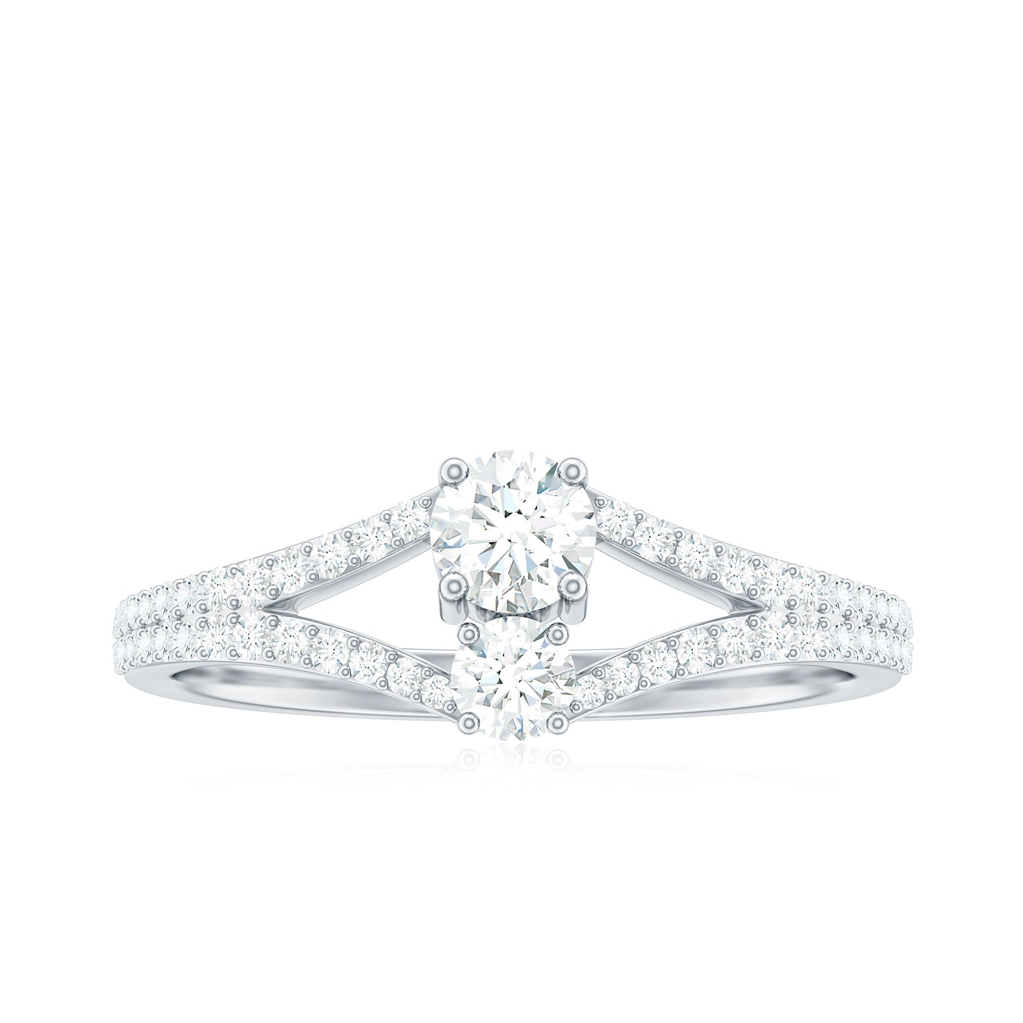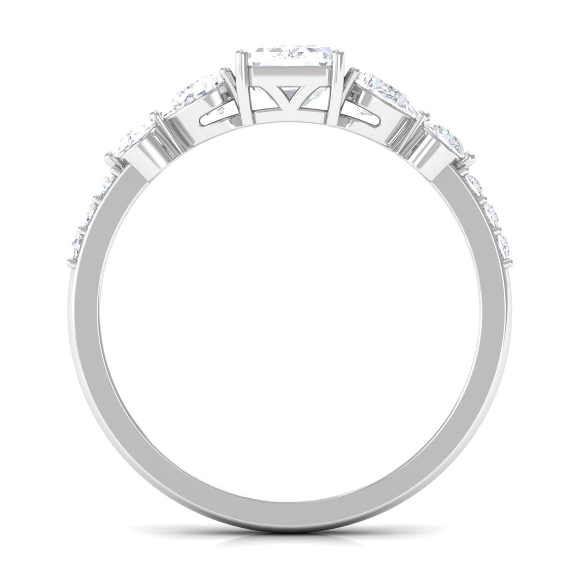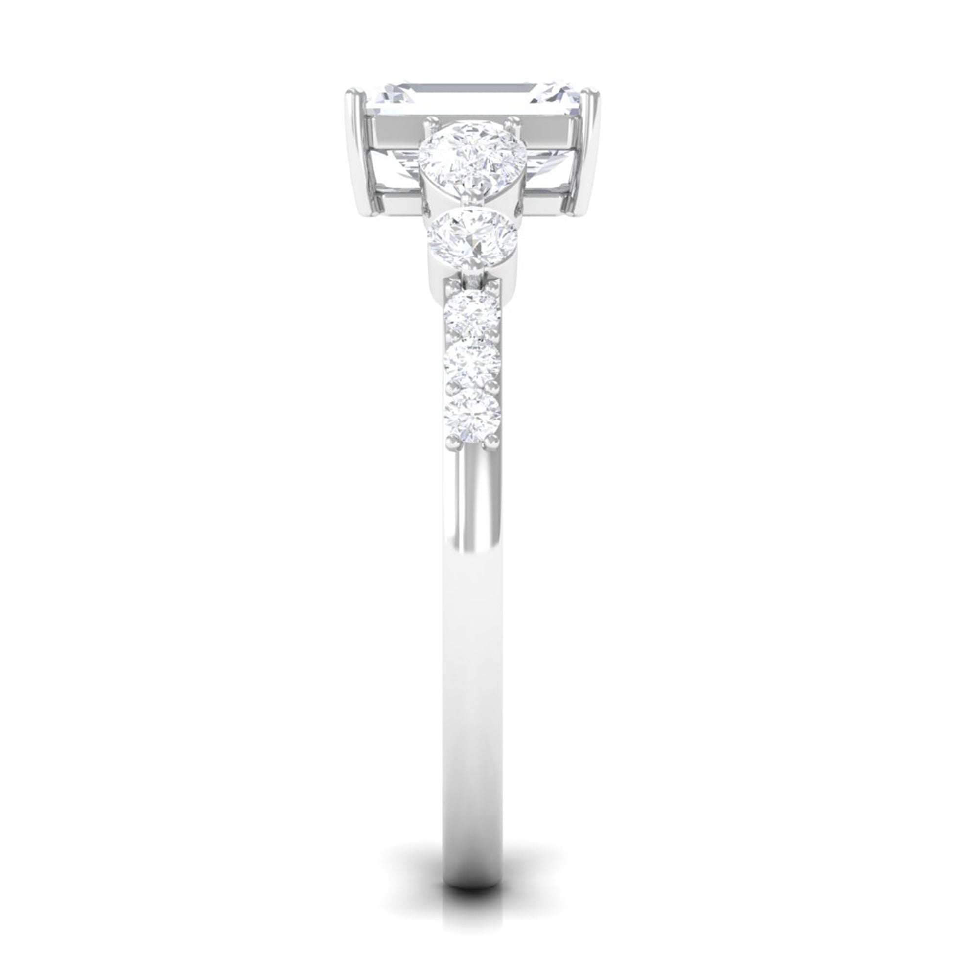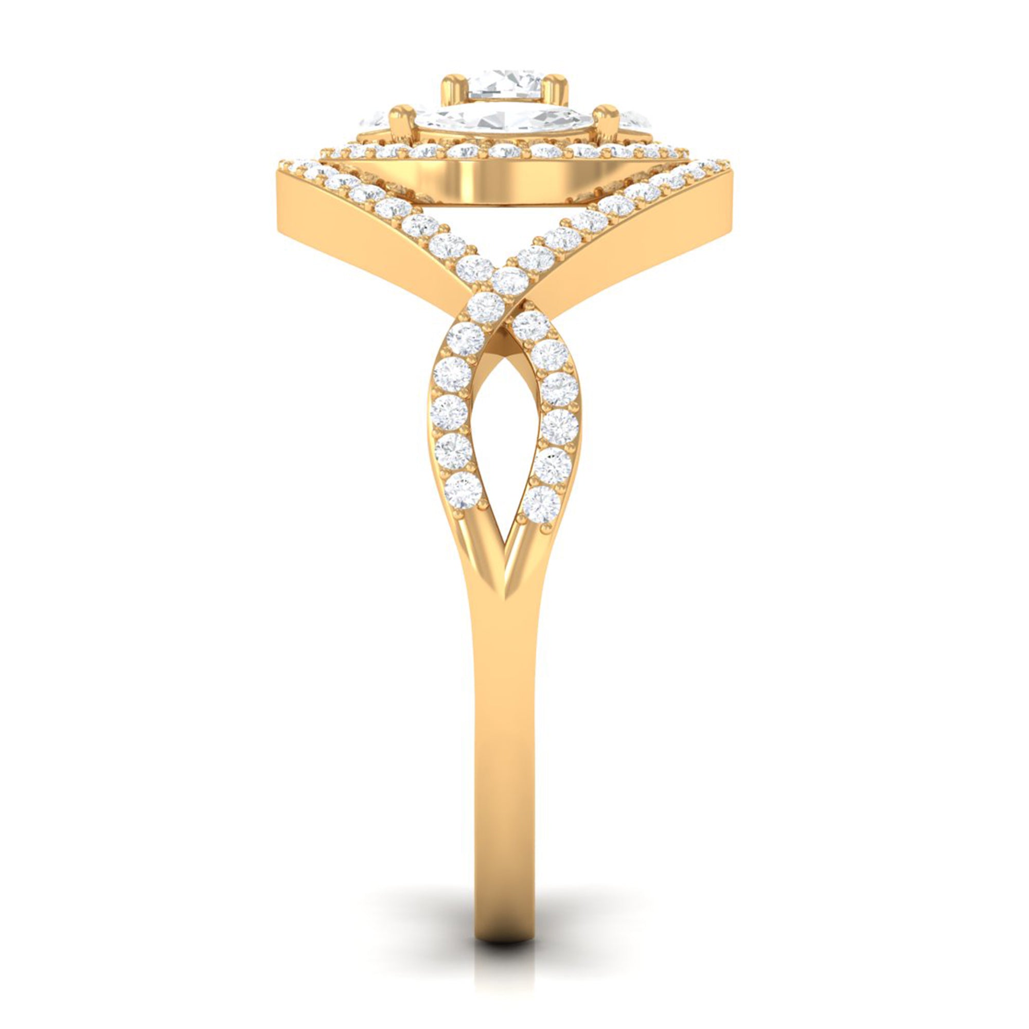 Unconventional and uniquely flashy, this ring style is encased with three stones of Cubic Zirconia arranged uniformly in a row. If you fancy more sparkles in your betrothal ring, a three stone ring is the way forward (since three stones means triple the sparkles). While a Round or Oval Cubic Zirconia Engagement Rings are the most classic options in this ring style, those adorned with Pear, Princess, Cushion, and Emerald Cut are also soaring in popularity. Behind its eye-striking aesthetics, it speaks to each couple uniquely since each of the three stones here sheds light on the couple’s past, present, and future respectively.