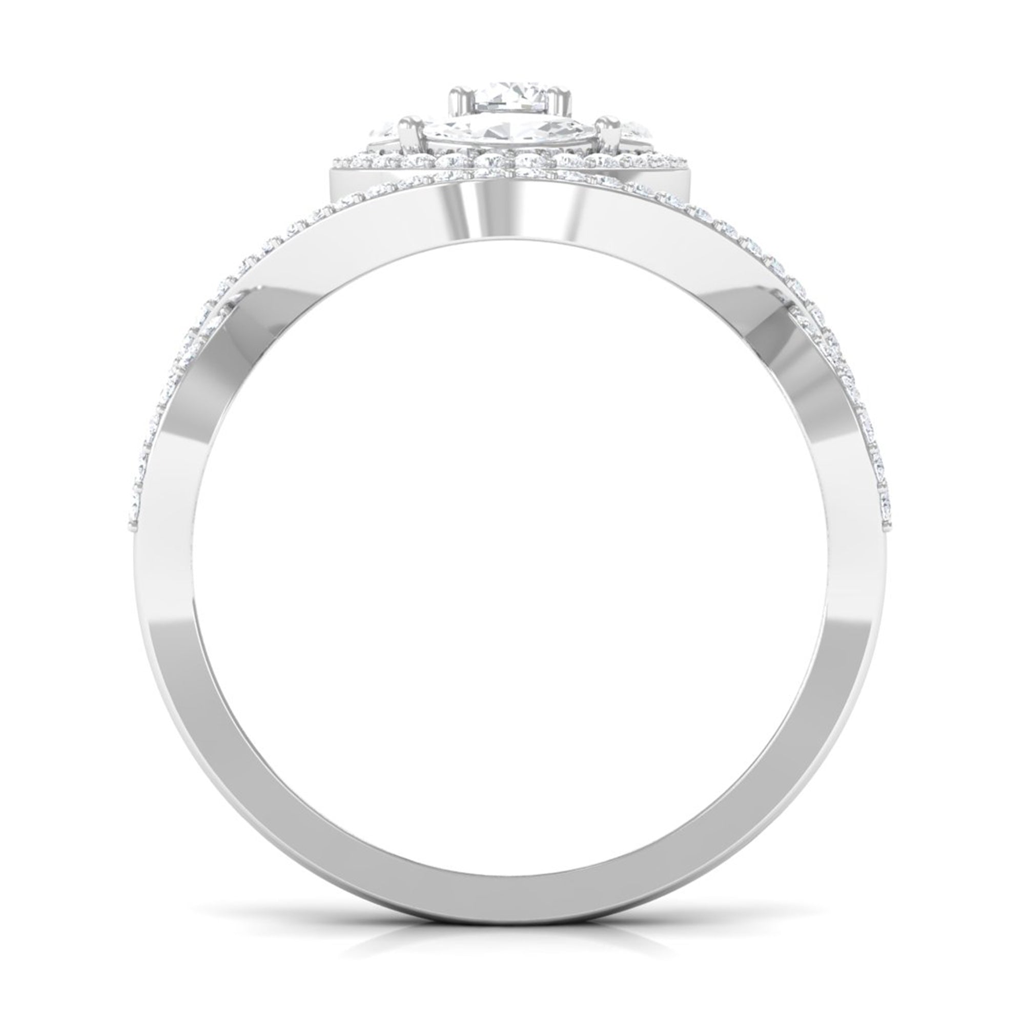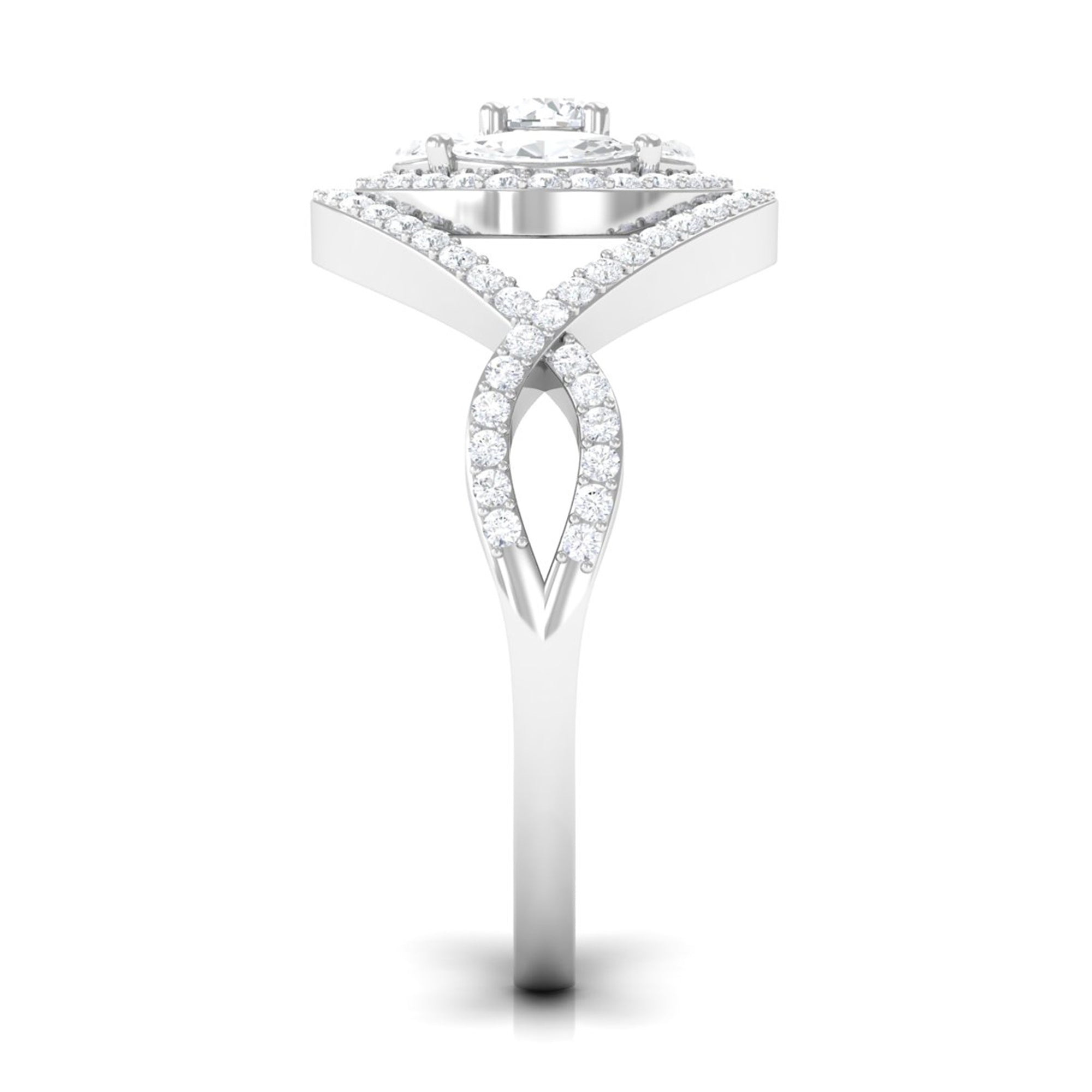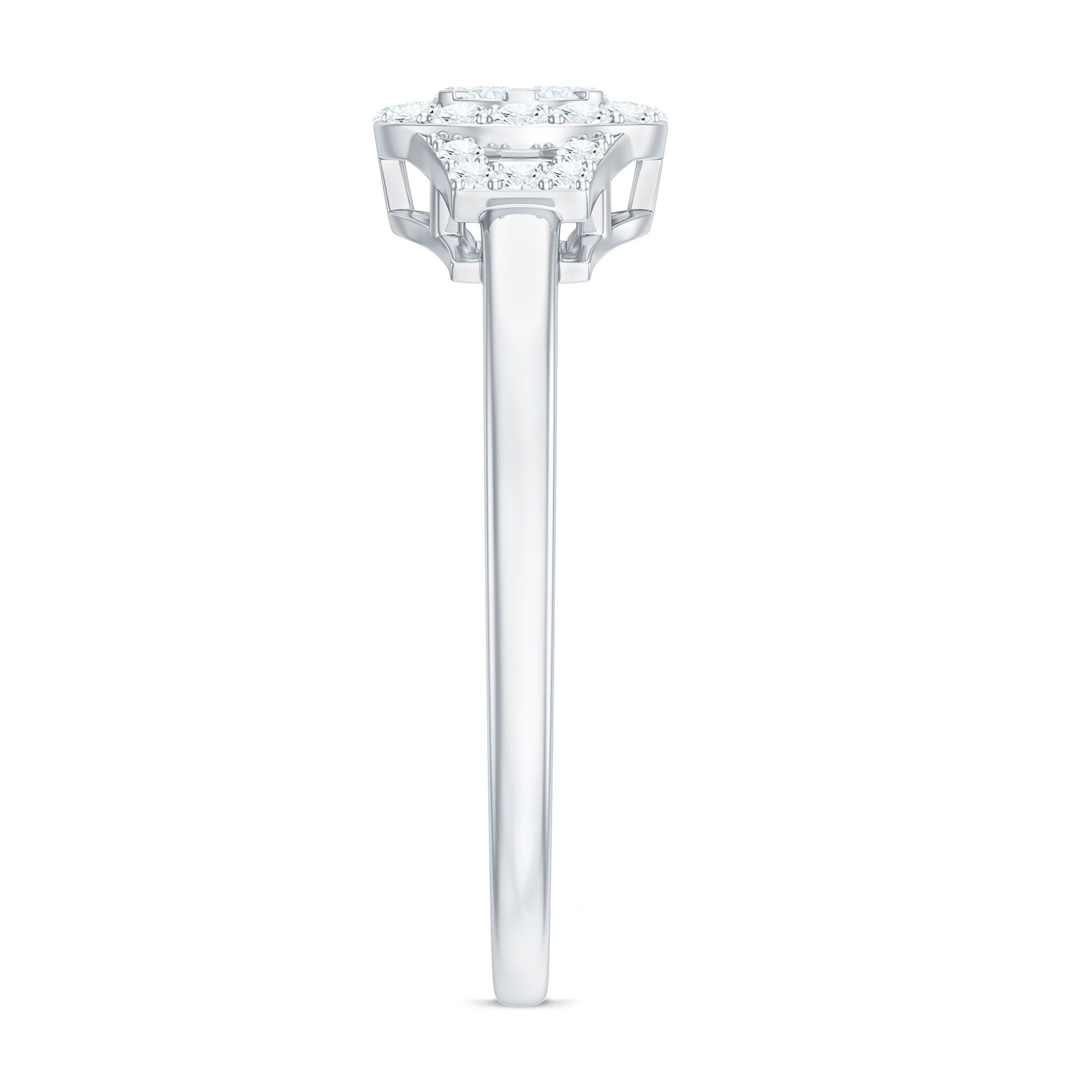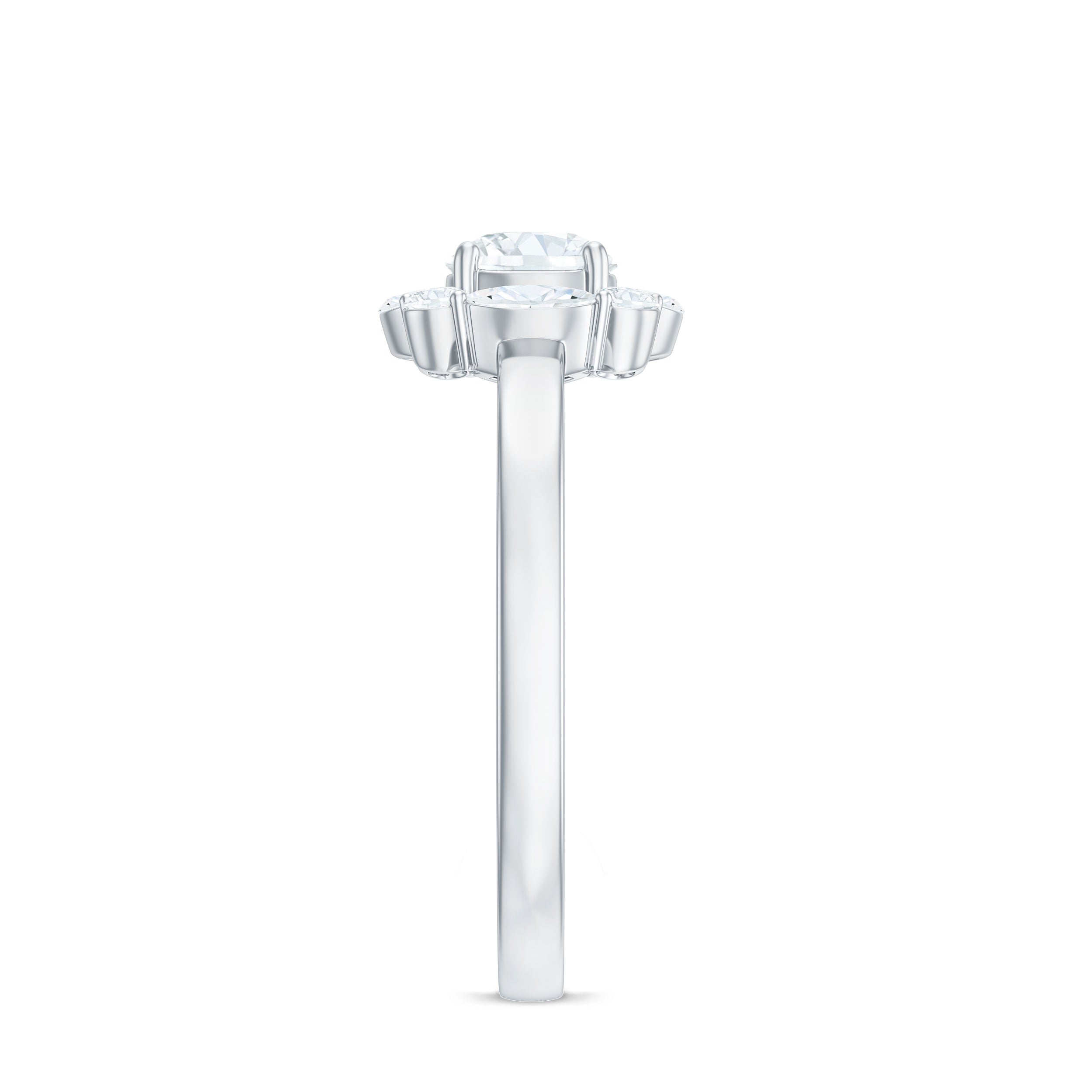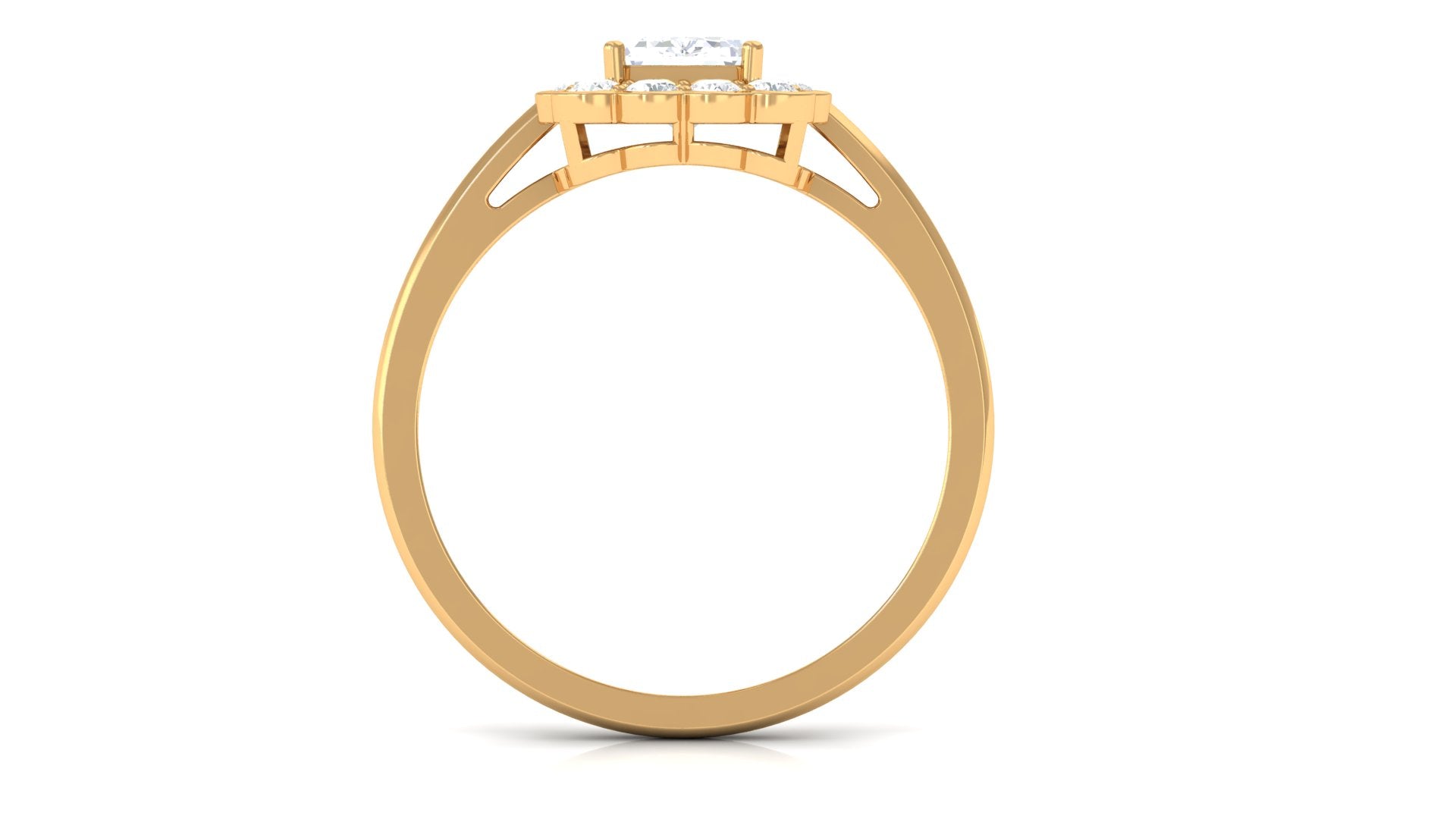 Standing out for its glitz and glam, a Halo encircles the Center Stone with a row of shimmering Cubic Zirconia. As an added advantage, the extra layer of sparkles here deceives the eye by making the center stone appear larger in size. So, if she is all about the bling, a Halo Style Cubic Zirconia Engagement Ring for Women seems like the perfect pick.