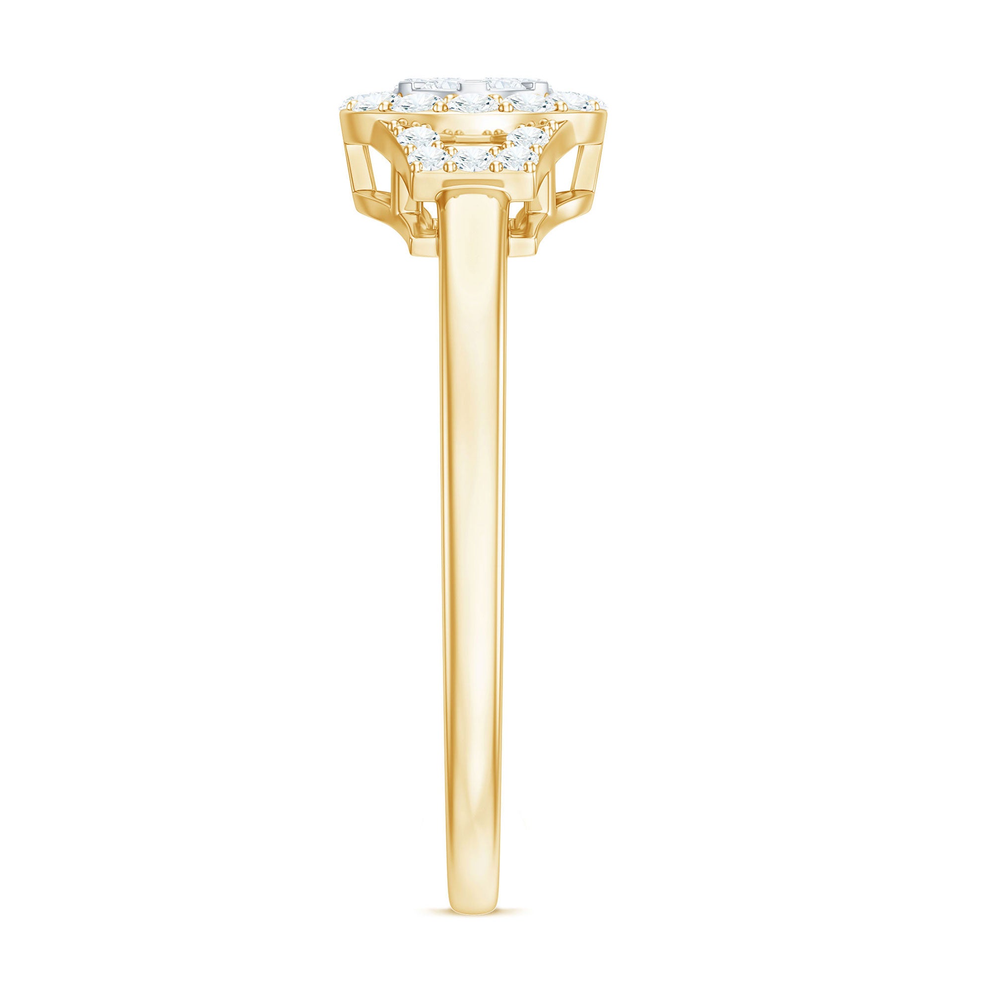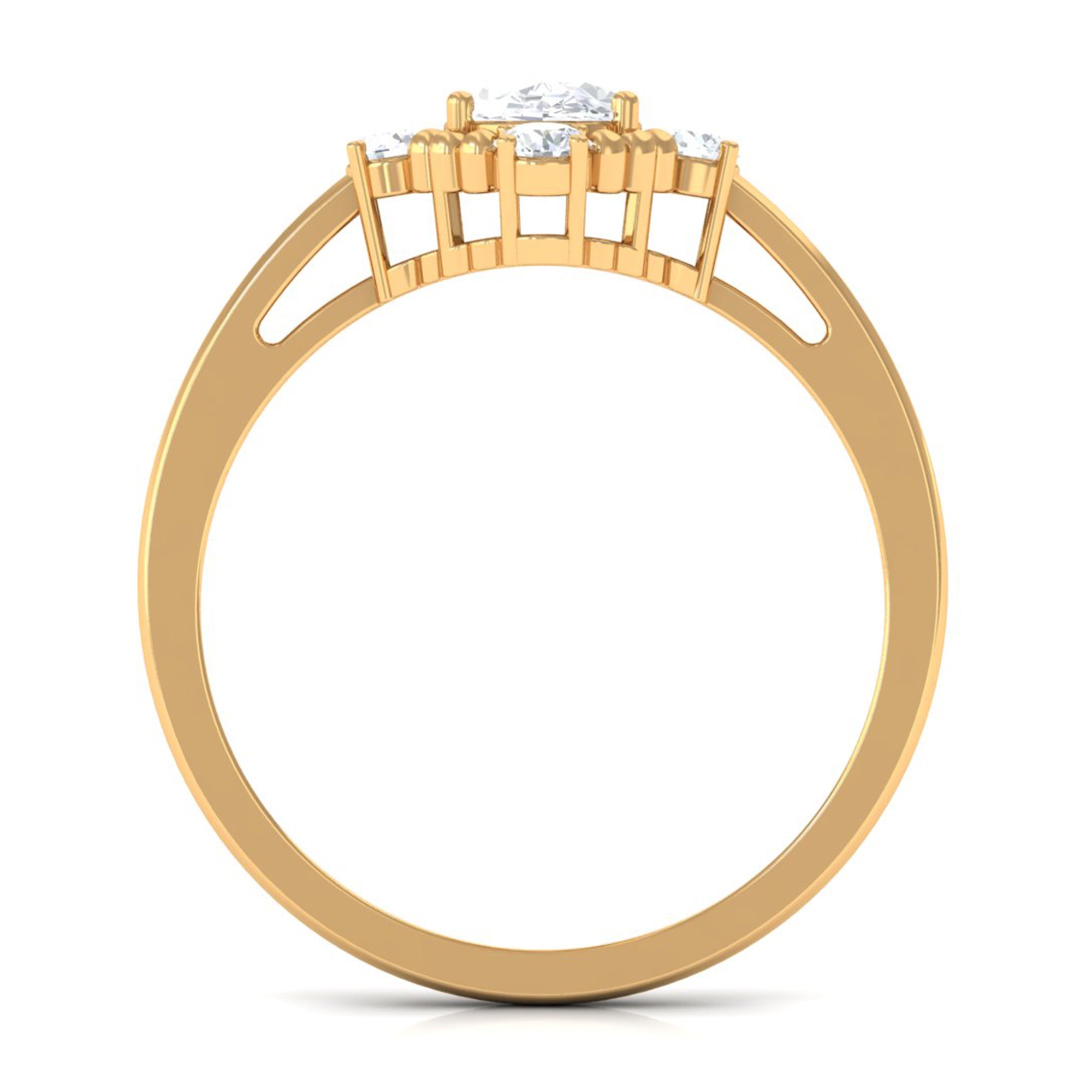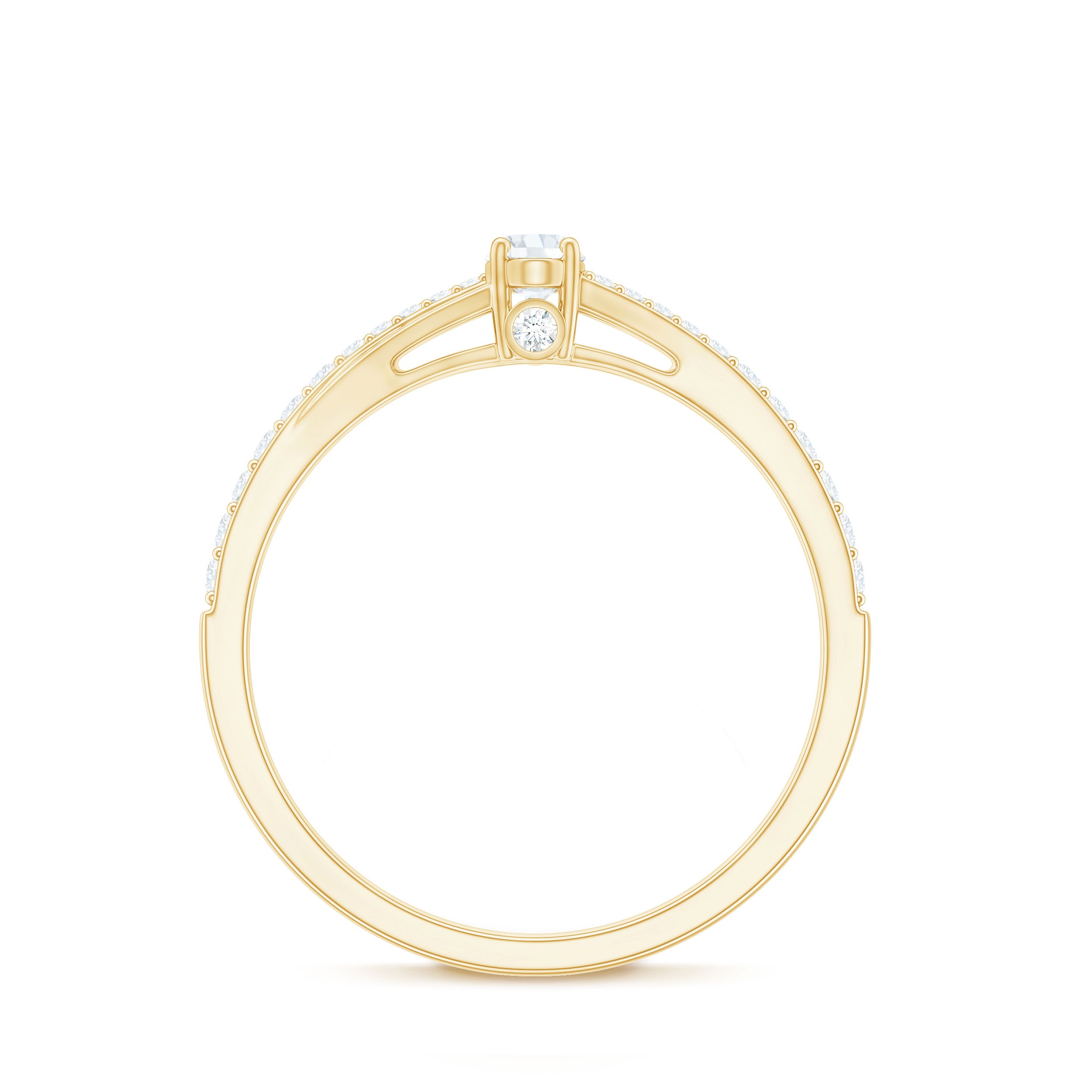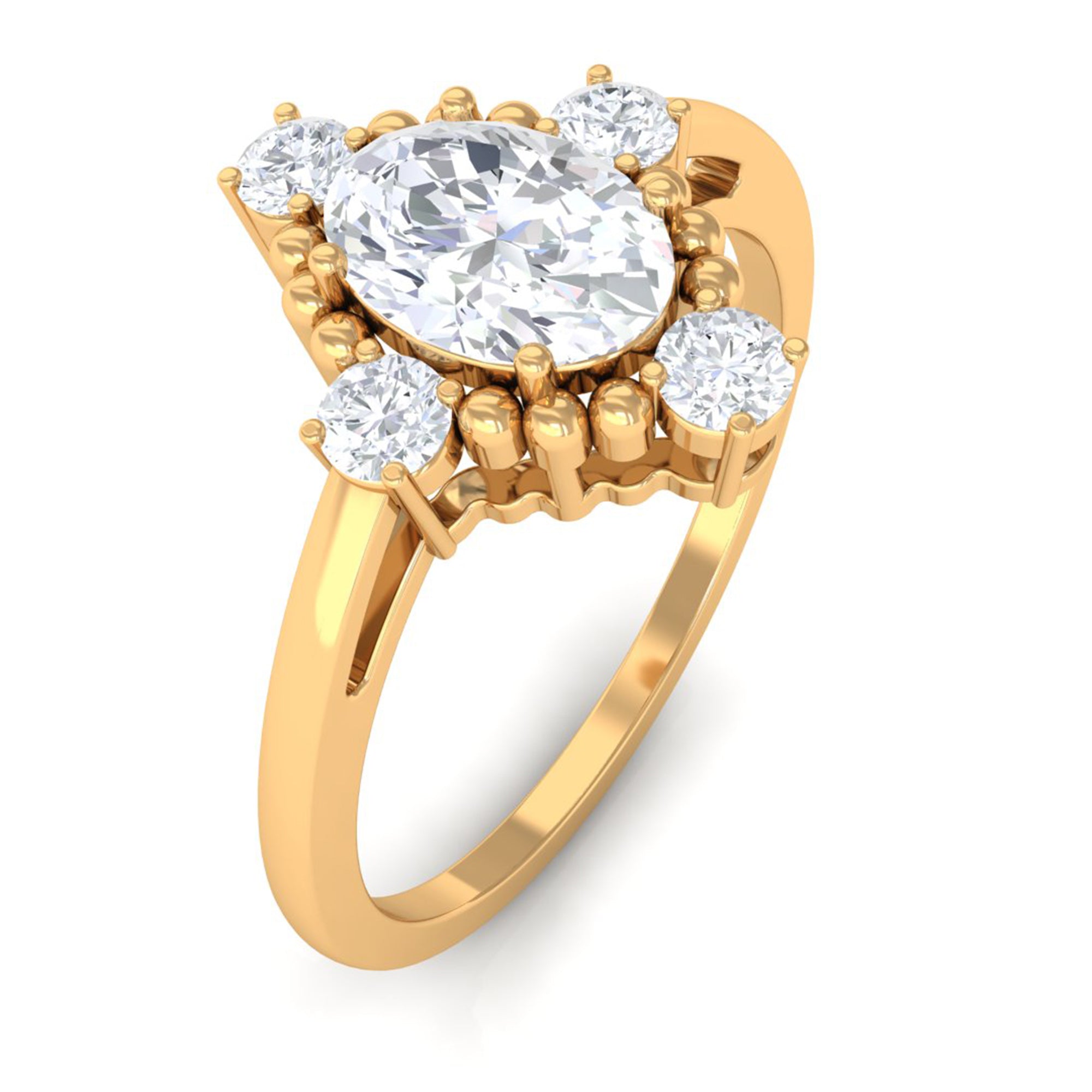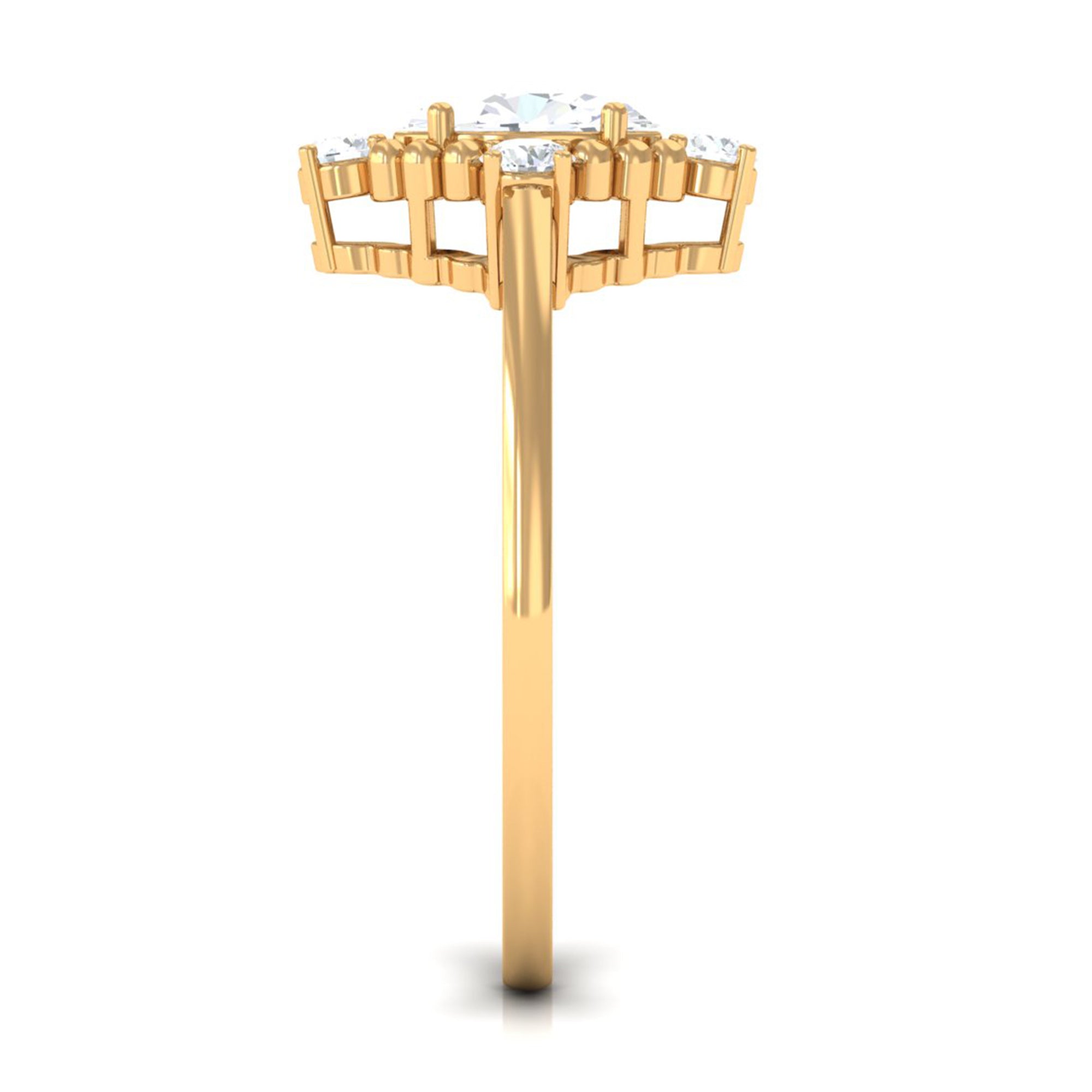 Just like the name suggests, this ring style draws inspiration from the old-world designs of Victorian, Edwardian, and Art Deco Eras that complement the sparkling center stone of CZ steal the limelight. You’re most likely to witness ornately crafted filigree and milgrain detailing, abstract geometrical patterns, retro floral motifs, and antique engravings. So, if you have been on the lookout for Gold Cubic Zirconia Engagement Rings that speak to your old school love, look no further!