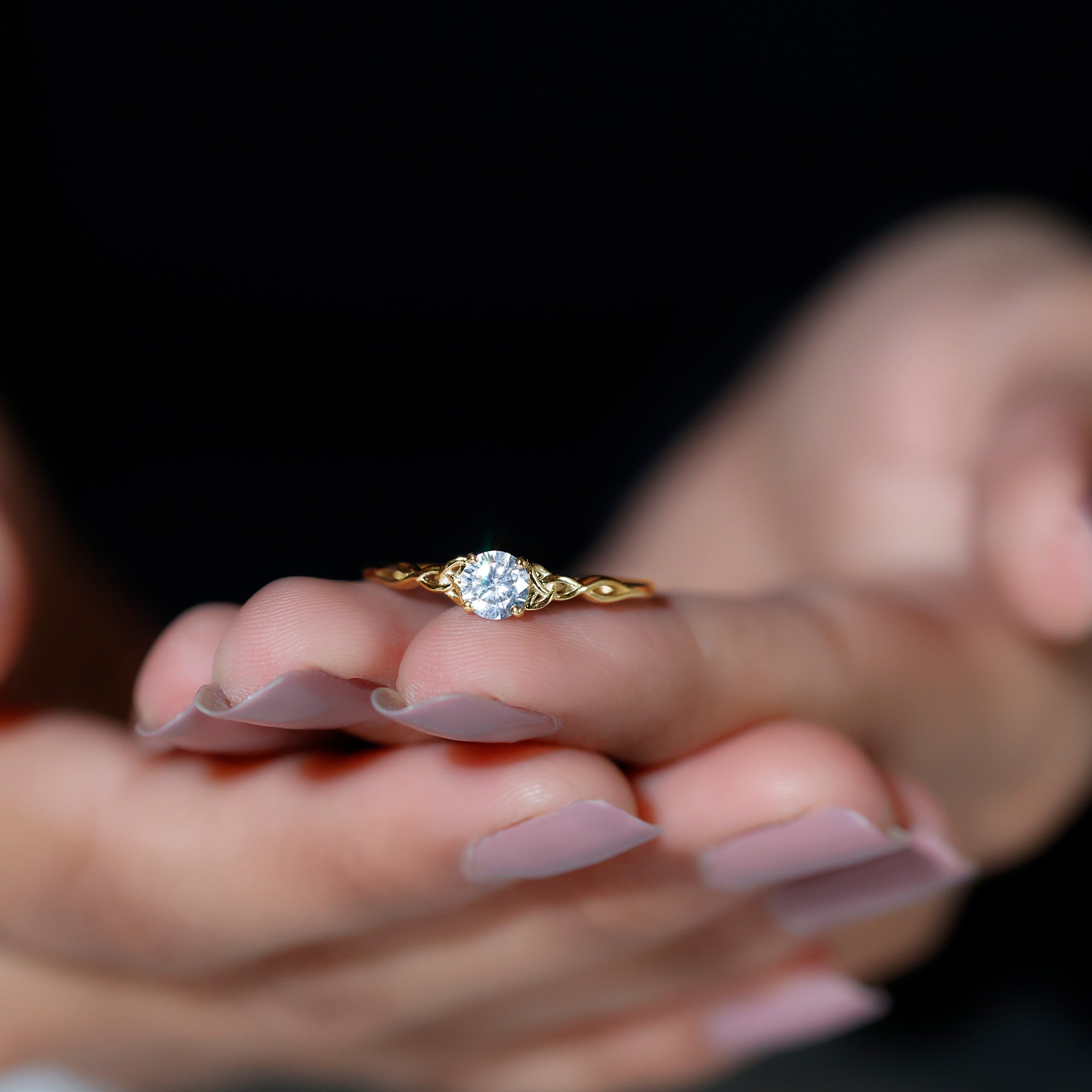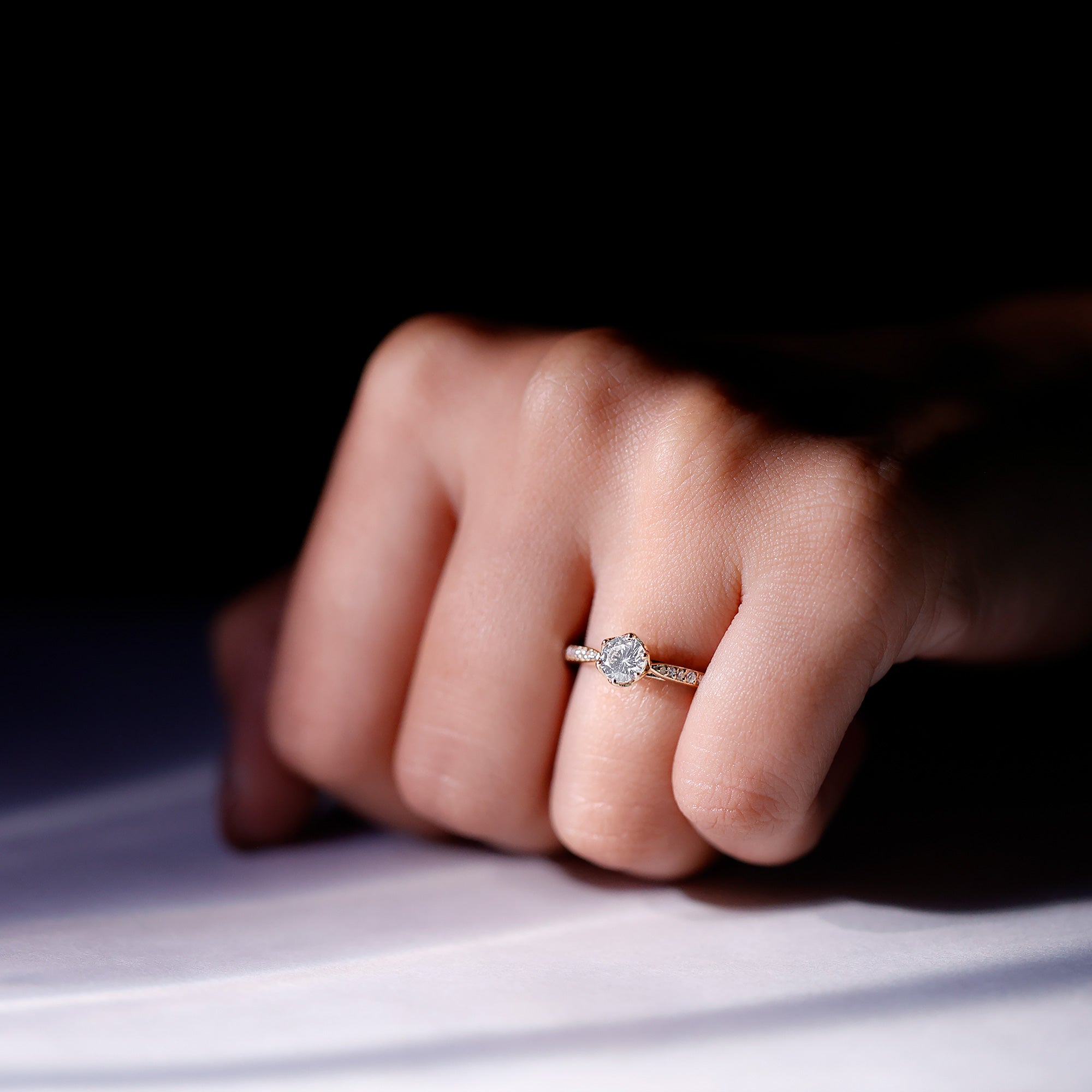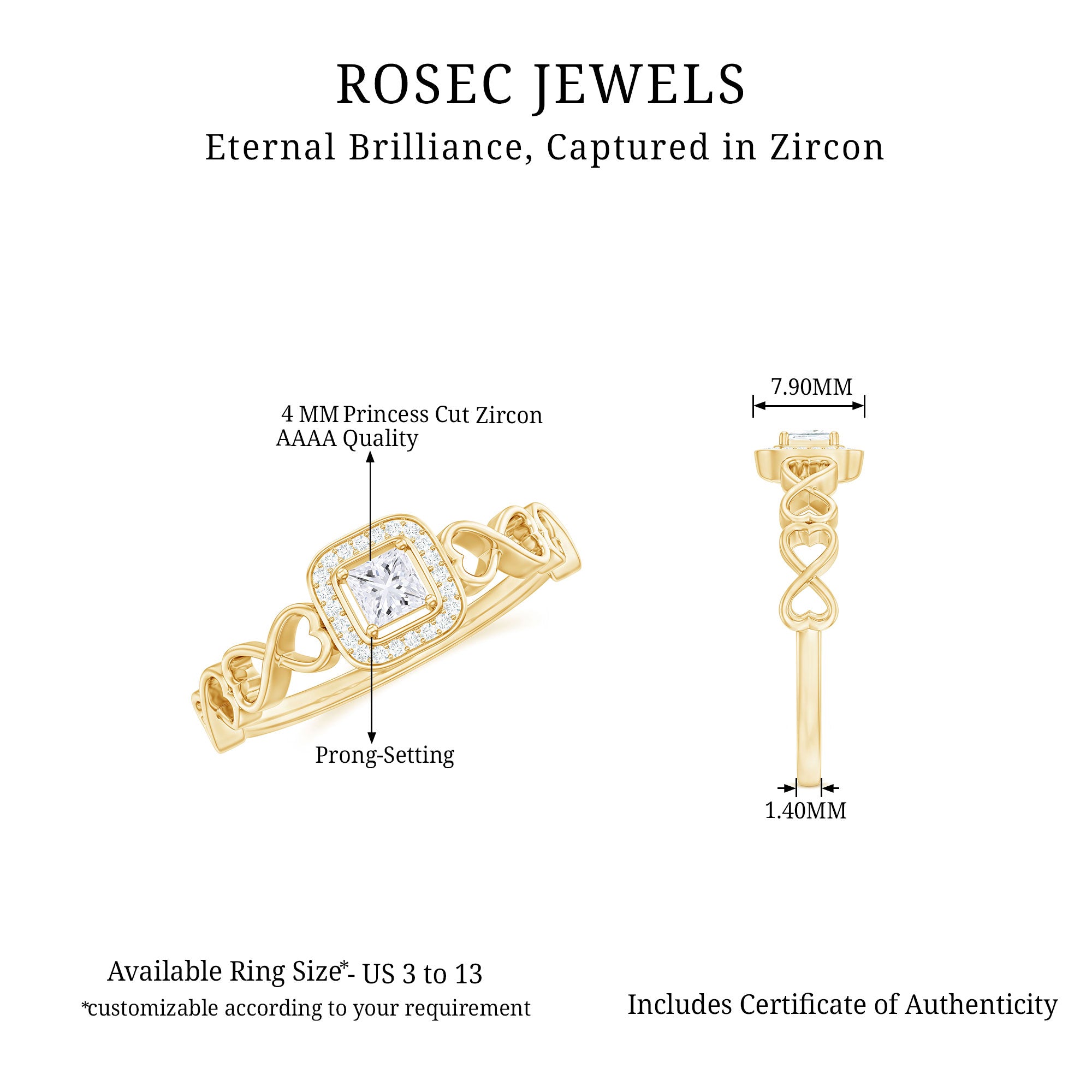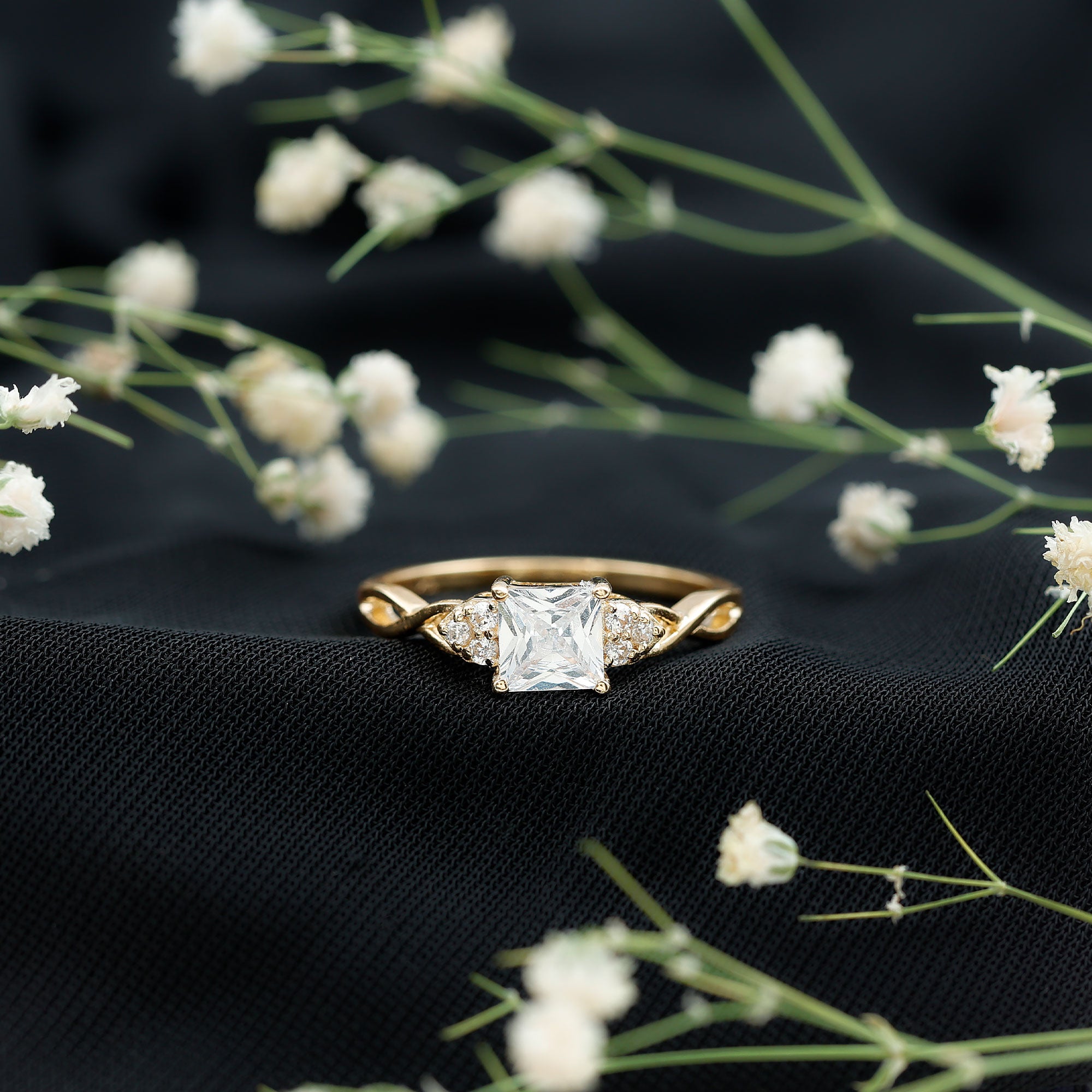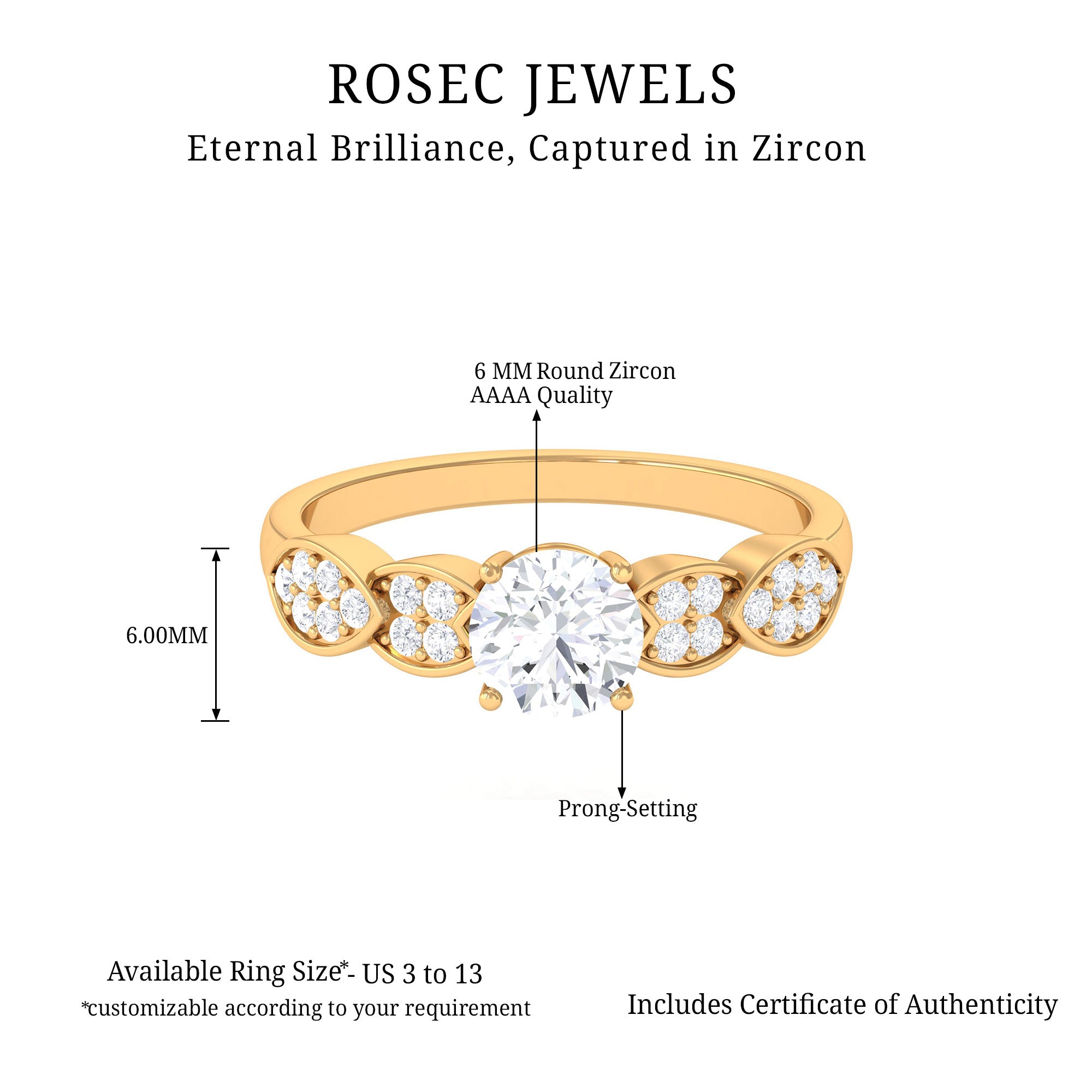 Just like the name suggests, this ring style draws inspiration from the old-world designs of Victorian, Edwardian, and Art Deco Eras that complement the sparkling center stone of CZ steal the limelight. You’re most likely to witness ornately crafted filigree and milgrain detailing, abstract geometrical patterns, retro floral motifs, and antique engravings. So, if you have been on the lookout for Gold Cubic Zirconia Engagement Rings that speak to your old school love, look no further!