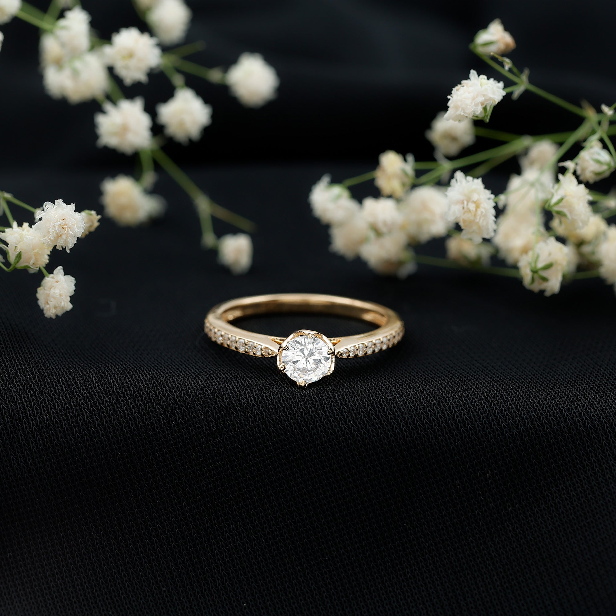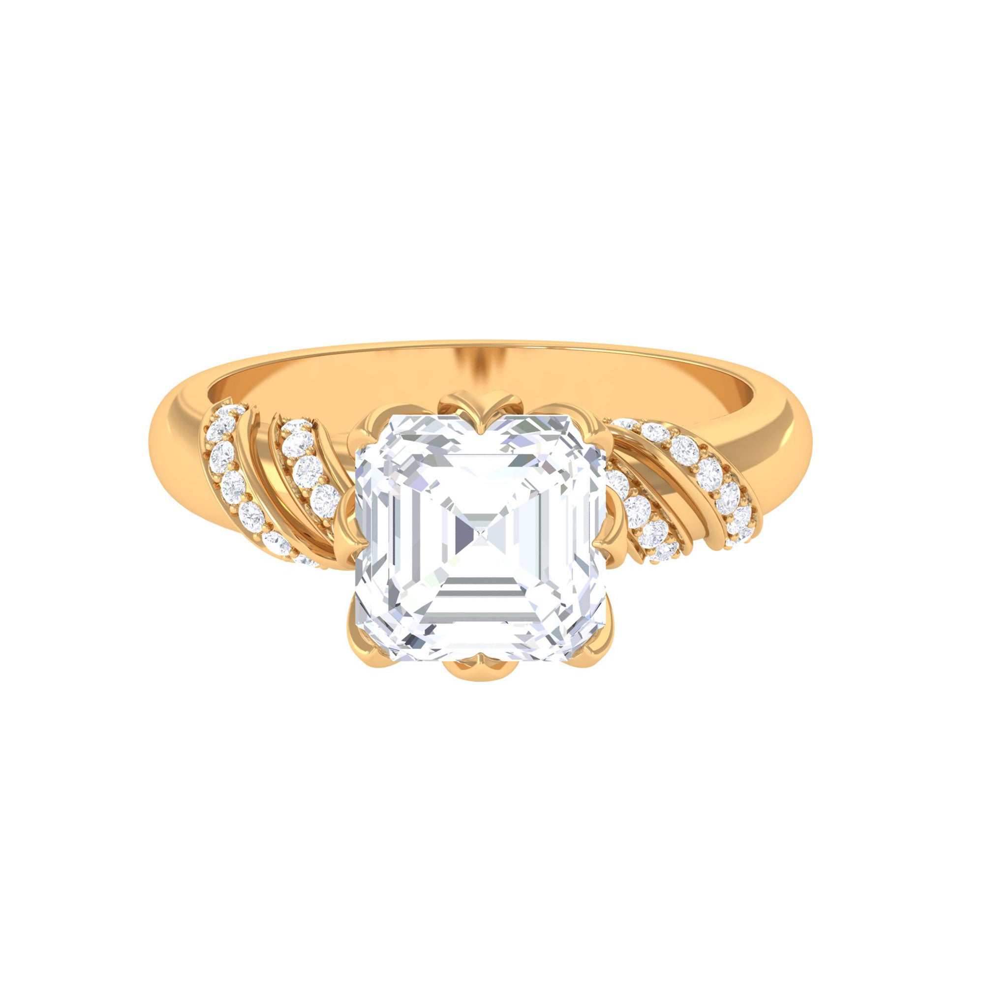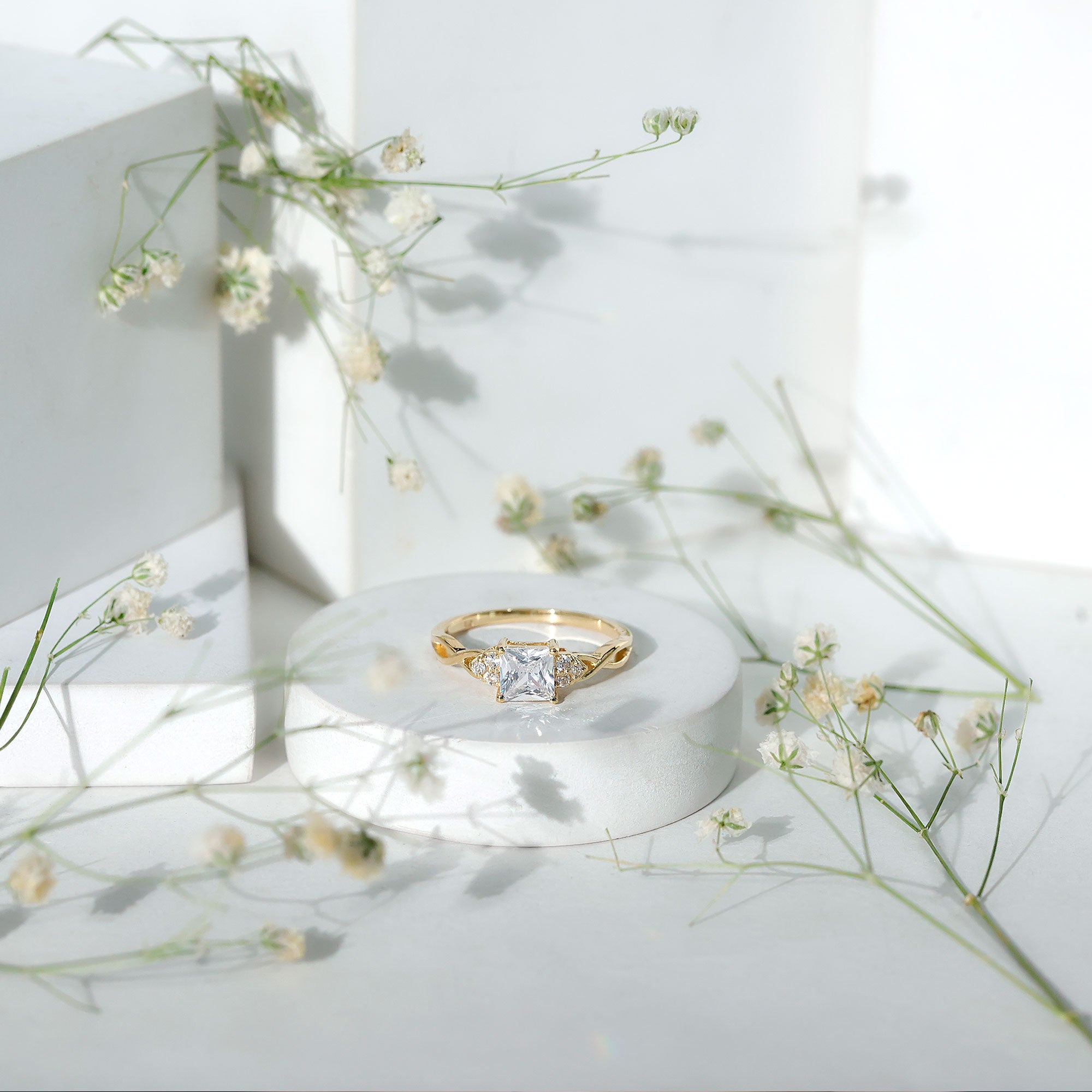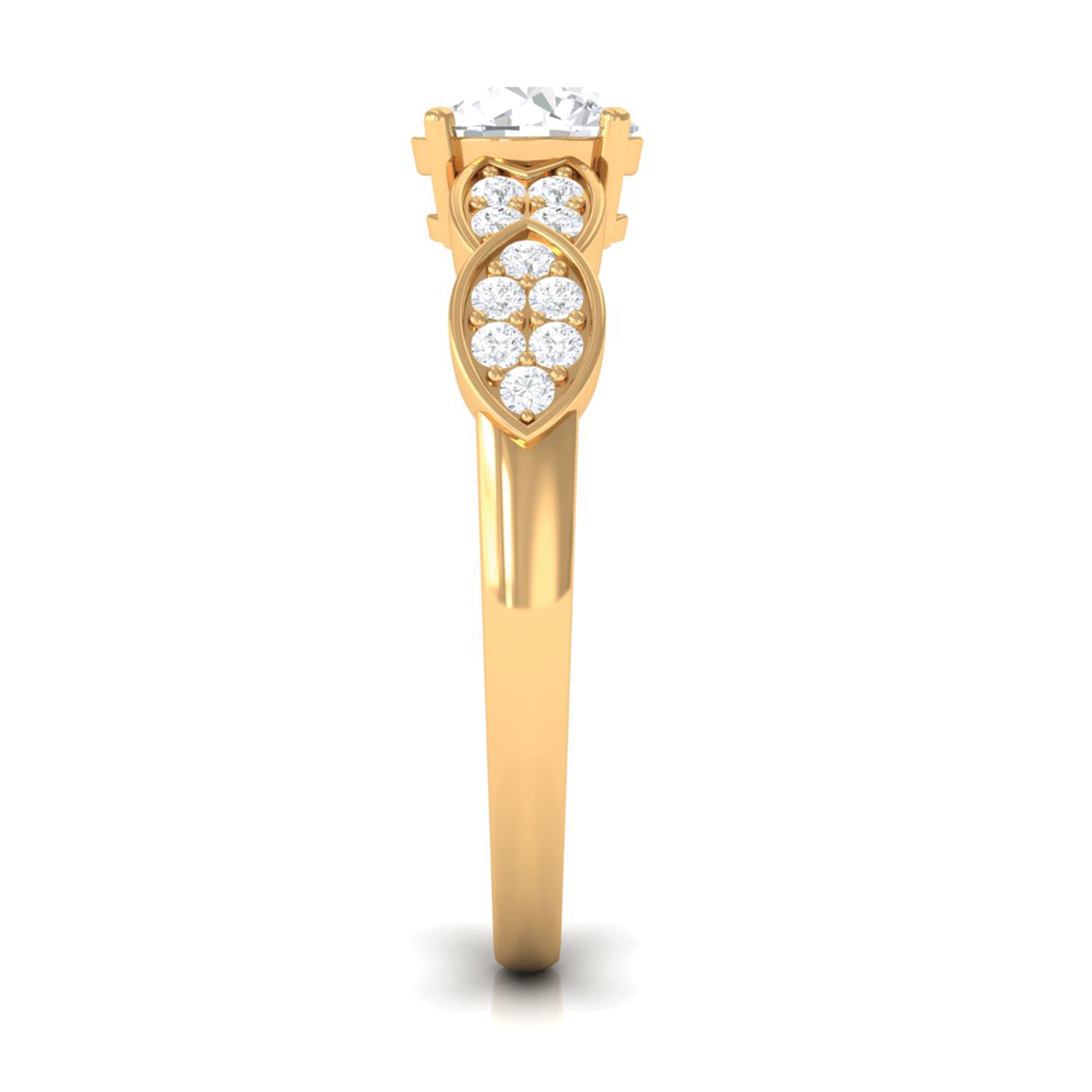 Just like the name suggests, this ring style draws inspiration from the old-world designs of Victorian, Edwardian, and Art Deco Eras that complement the sparkling center stone of CZ steal the limelight. You’re most likely to witness ornately crafted filigree and milgrain detailing, abstract geometrical patterns, retro floral motifs, and antique engravings. So, if you have been on the lookout for Gold Cubic Zirconia Engagement Rings that speak to your old school love, look no further!