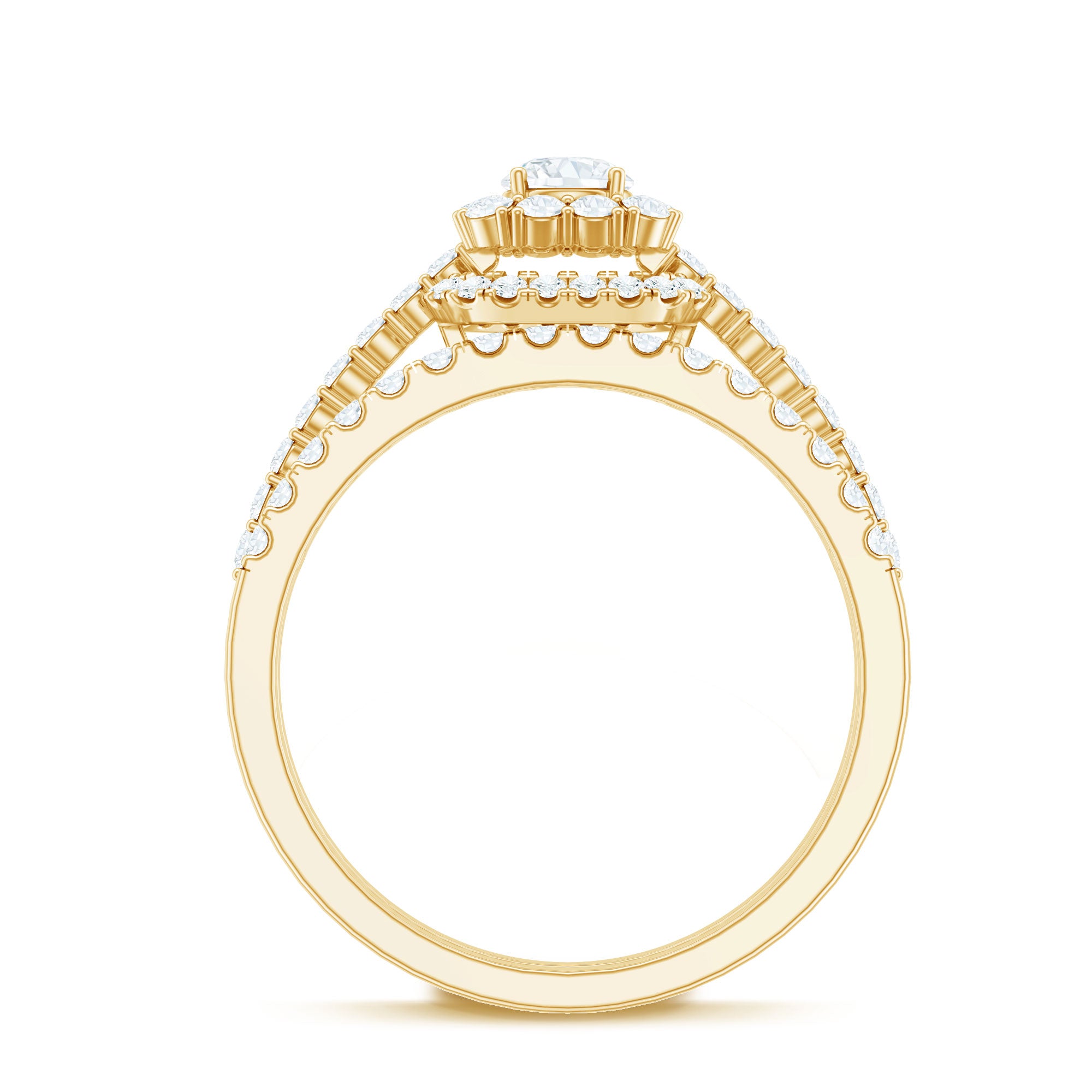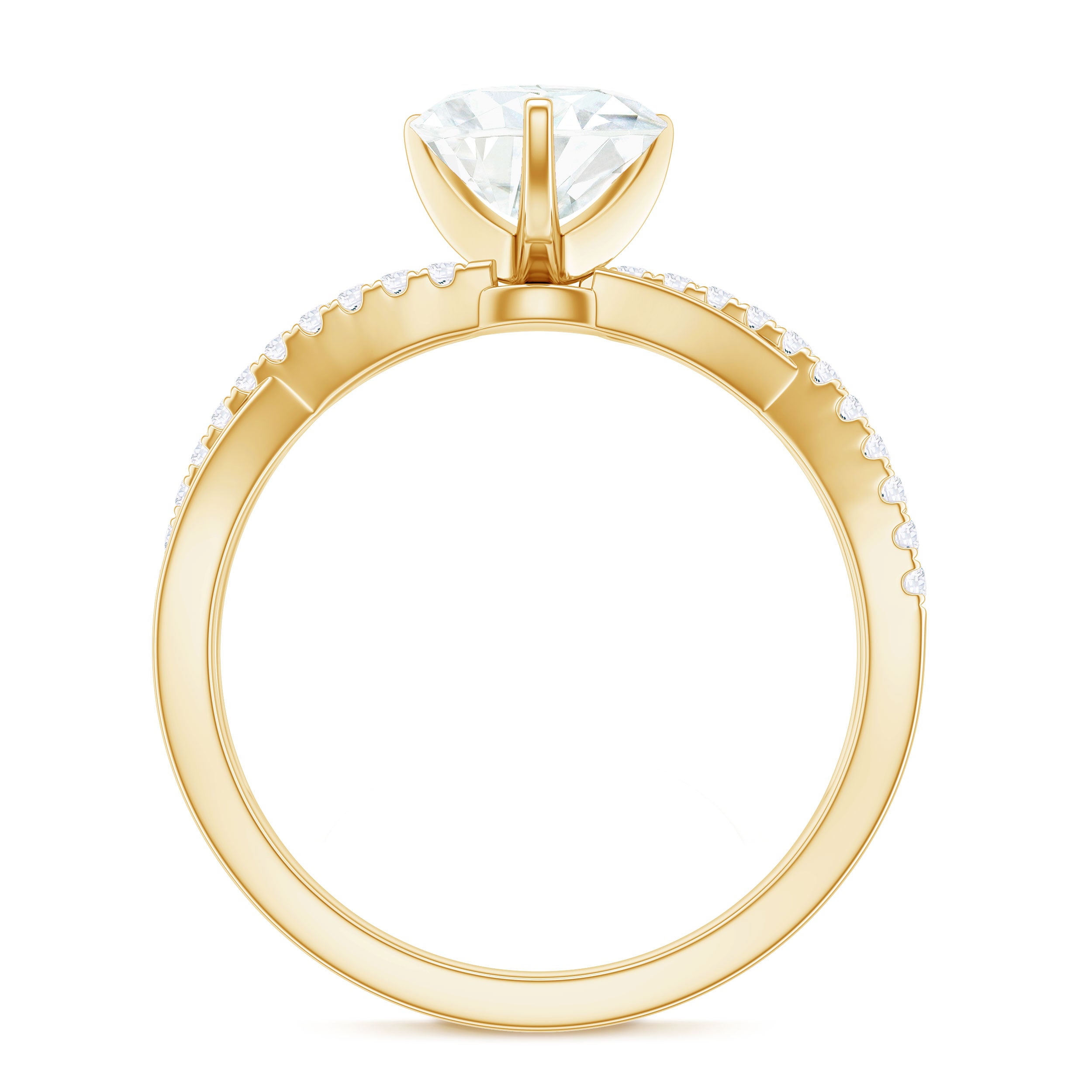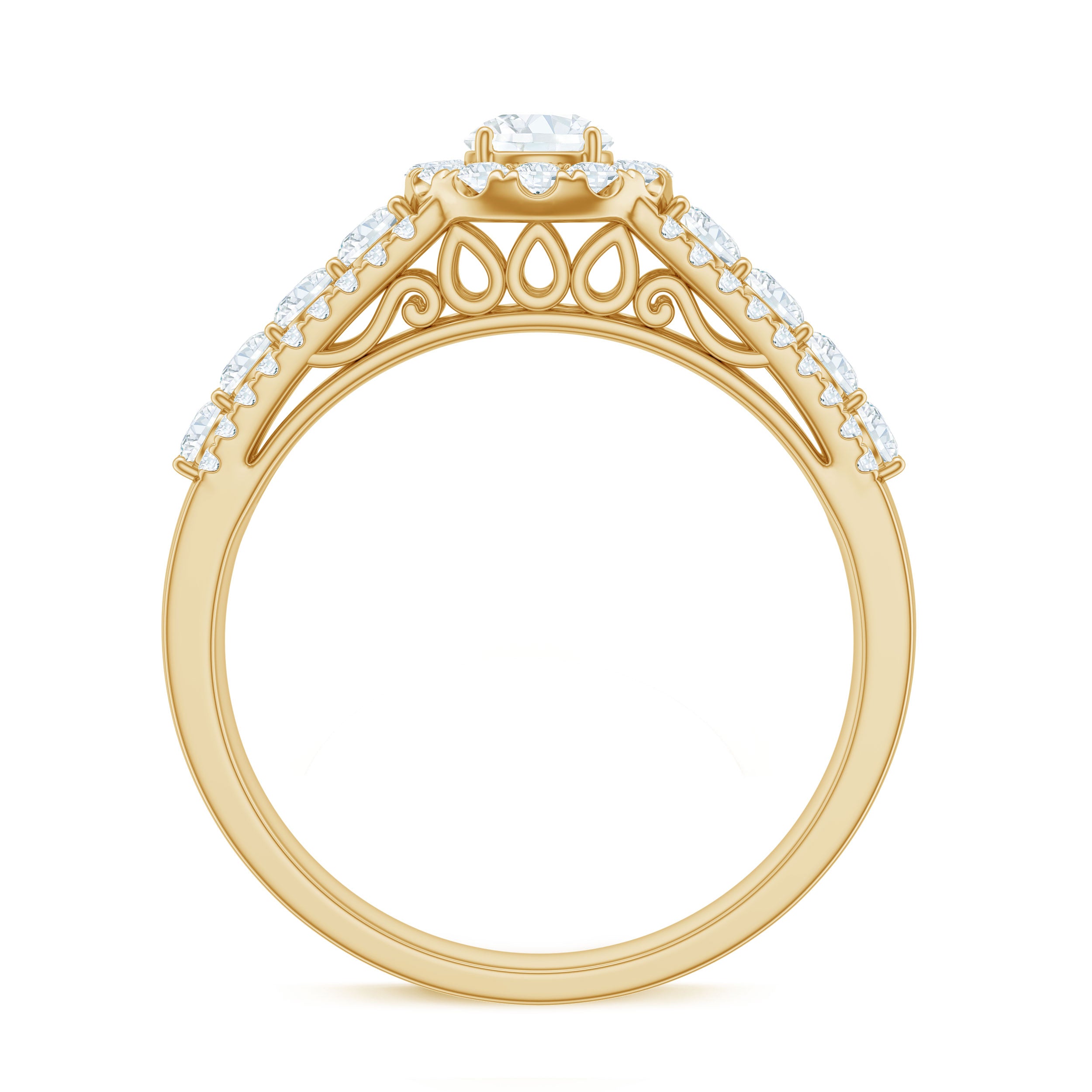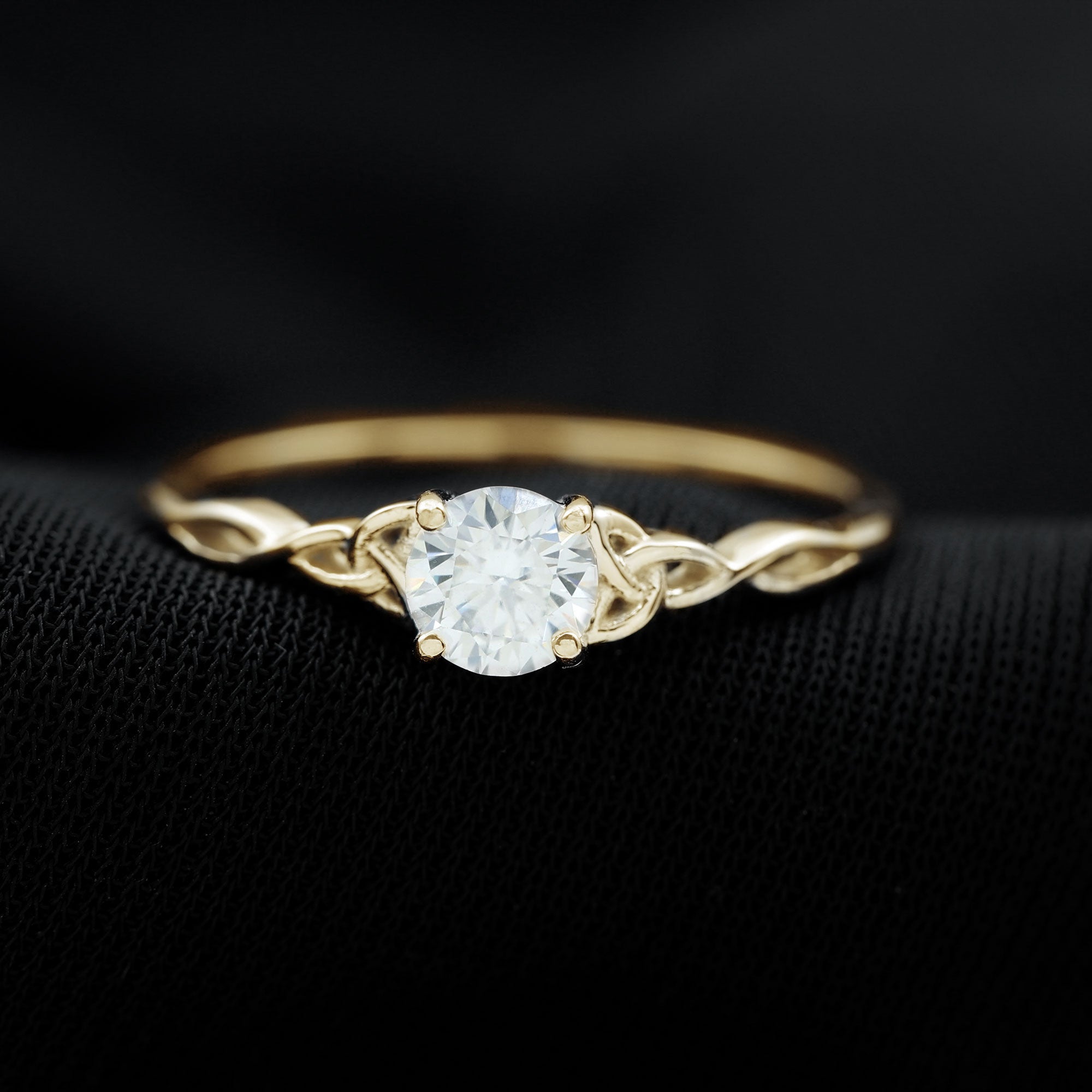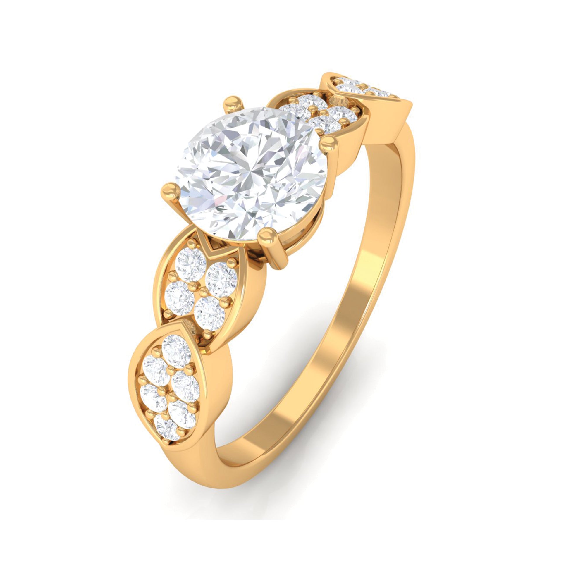 Just like the name suggests, this ring style draws inspiration from the old-world designs of Victorian, Edwardian, and Art Deco Eras that complement the sparkling center stone of CZ steal the limelight. You’re most likely to witness ornately crafted filigree and milgrain detailing, abstract geometrical patterns, retro floral motifs, and antique engravings. So, if you have been on the lookout for Gold Cubic Zirconia Engagement Rings that speak to your old school love, look no further!
