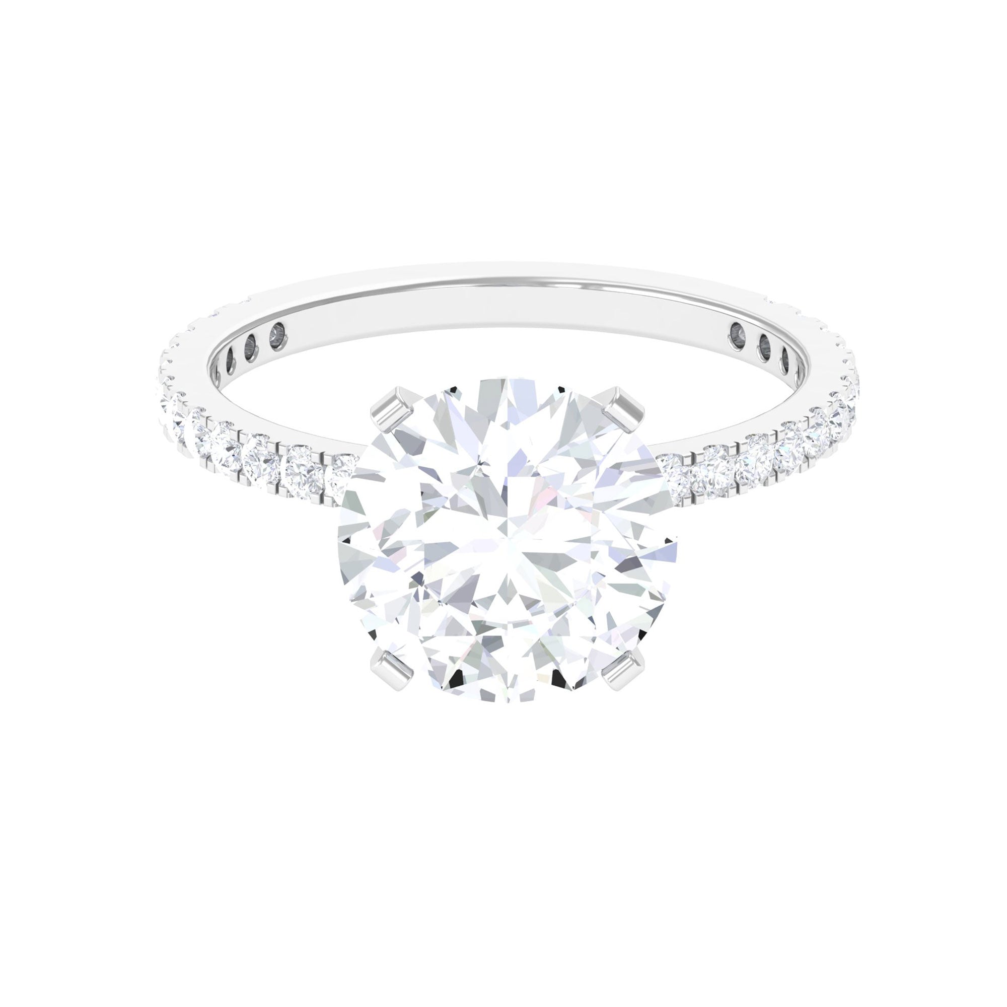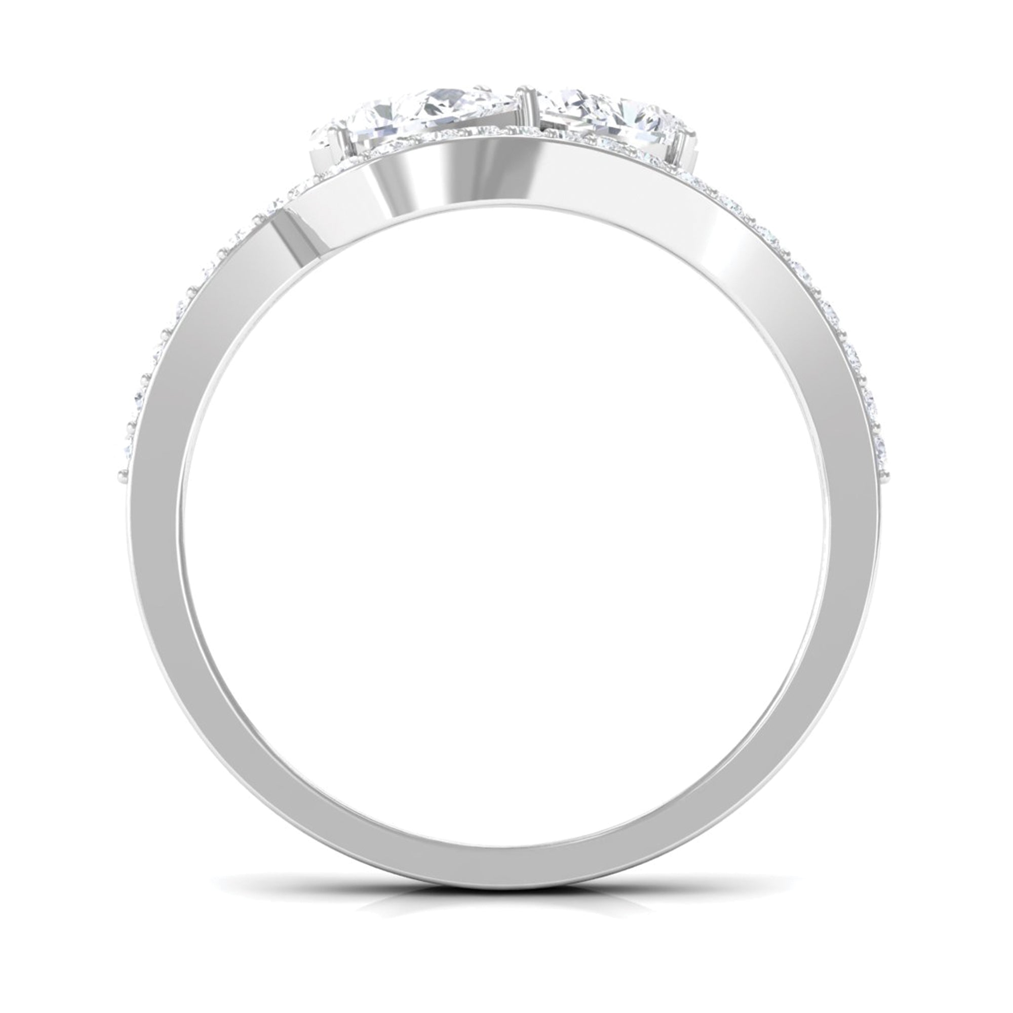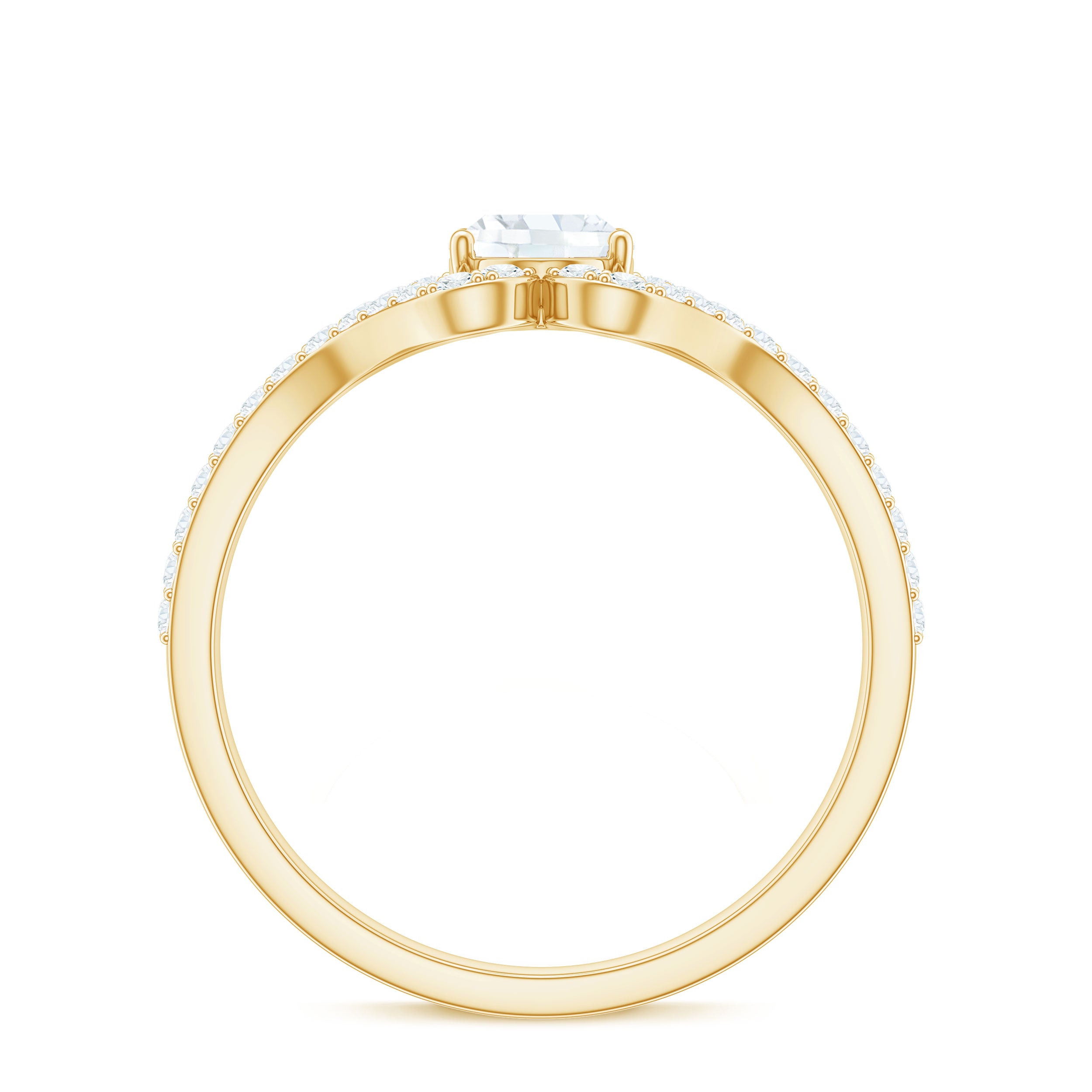 Unconventional and uniquely flashy, this ring style is encased with three stones of Cubic Zirconia arranged uniformly in a row. If you fancy more sparkles in your betrothal ring, a three stone ring is the way forward (since three stones means triple the sparkles). While a Round or Oval Cubic Zirconia Engagement Rings are the most classic options in this ring style, those adorned with Pear, Princess, Cushion, and Emerald Cut are also soaring in popularity. Behind its eye-striking aesthetics, it speaks to each couple uniquely since each of the three stones here sheds light on the couple’s past, present, and future respectively.