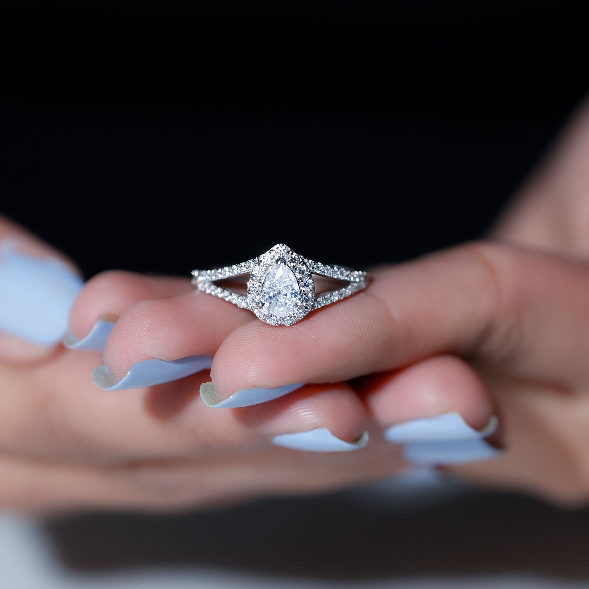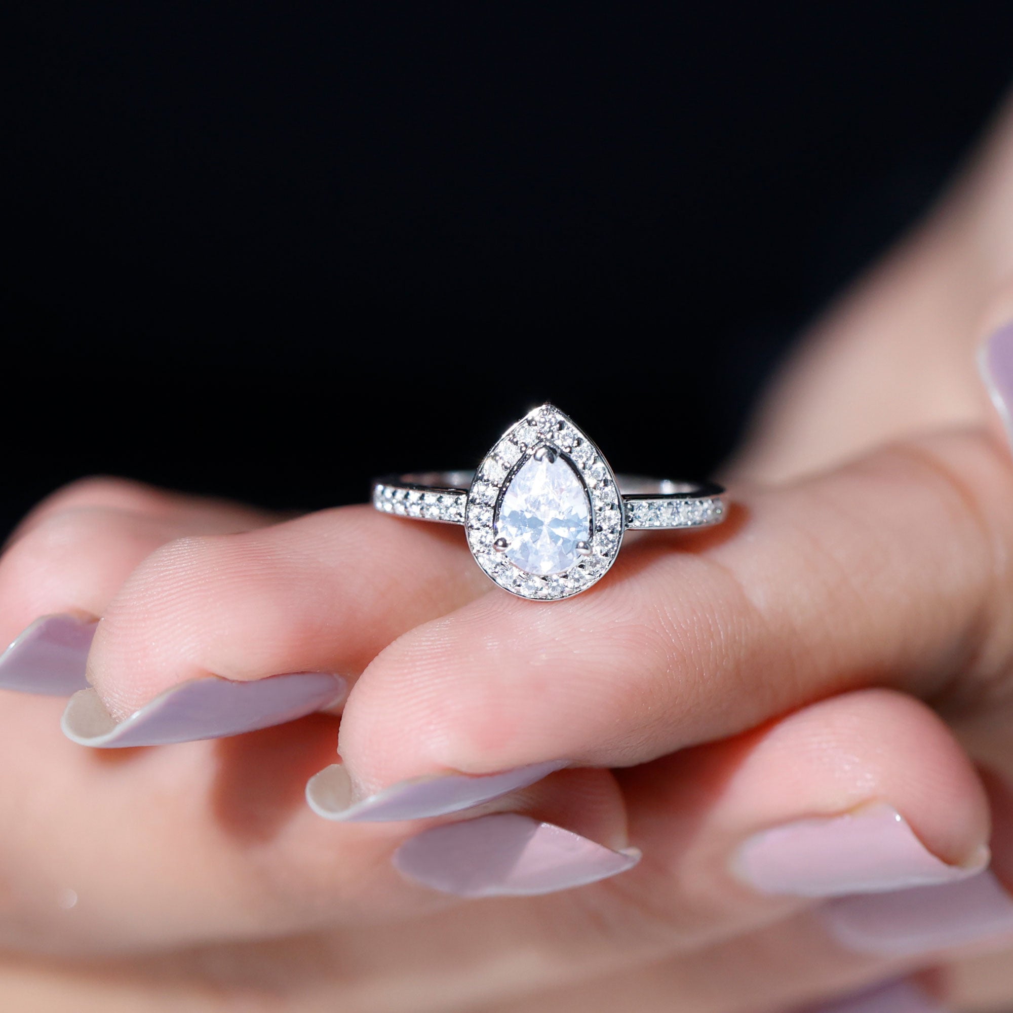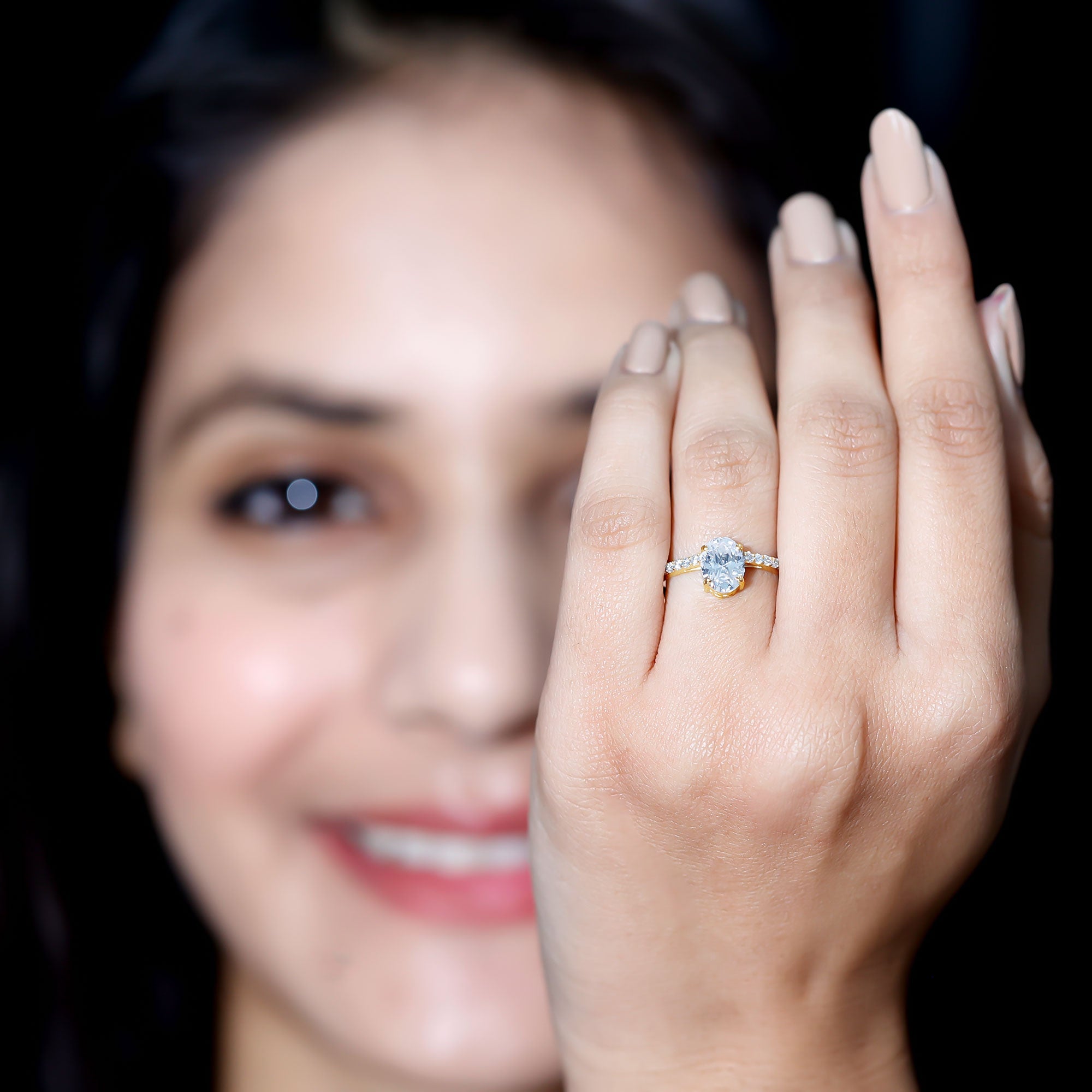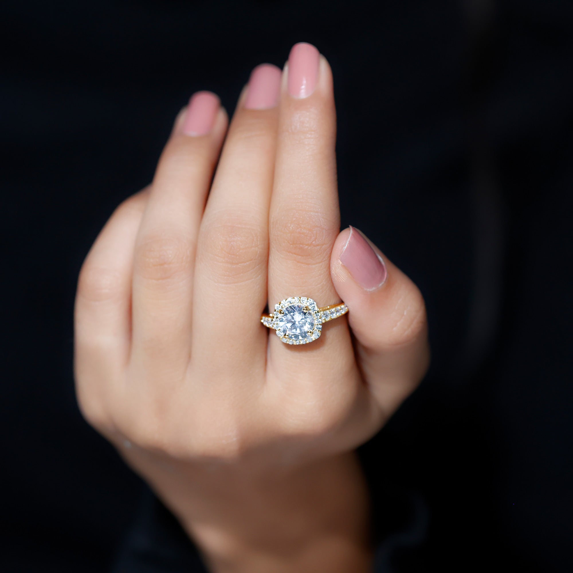 Standing out for its glitz and glam, a Halo encircles the Center Stone with a row of shimmering Cubic Zirconia. As an added advantage, the extra layer of sparkles here deceives the eye by making the center stone appear larger in size. So, if she is all about the bling, a Halo Style Cubic Zirconia Engagement Ring for Women seems like the perfect pick.