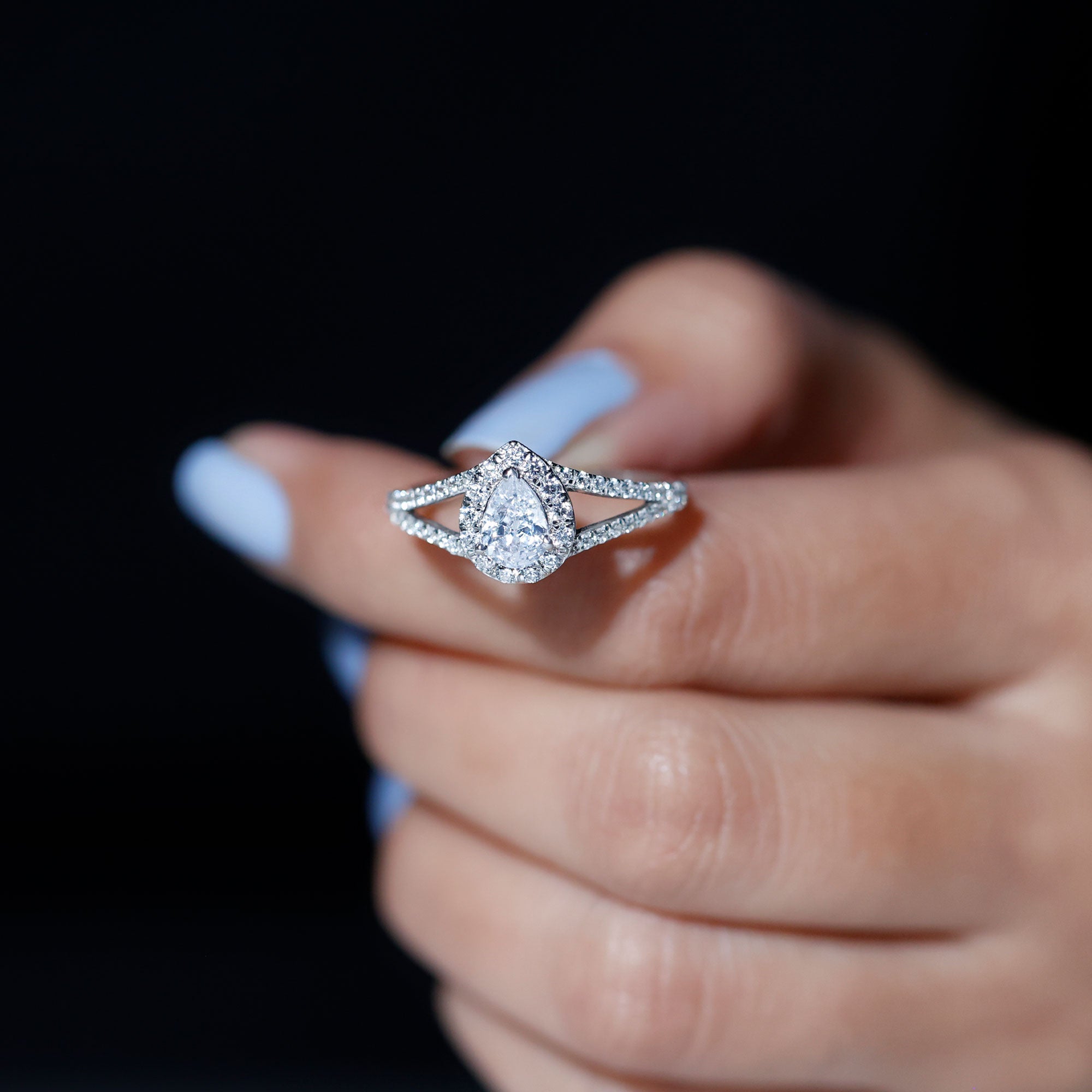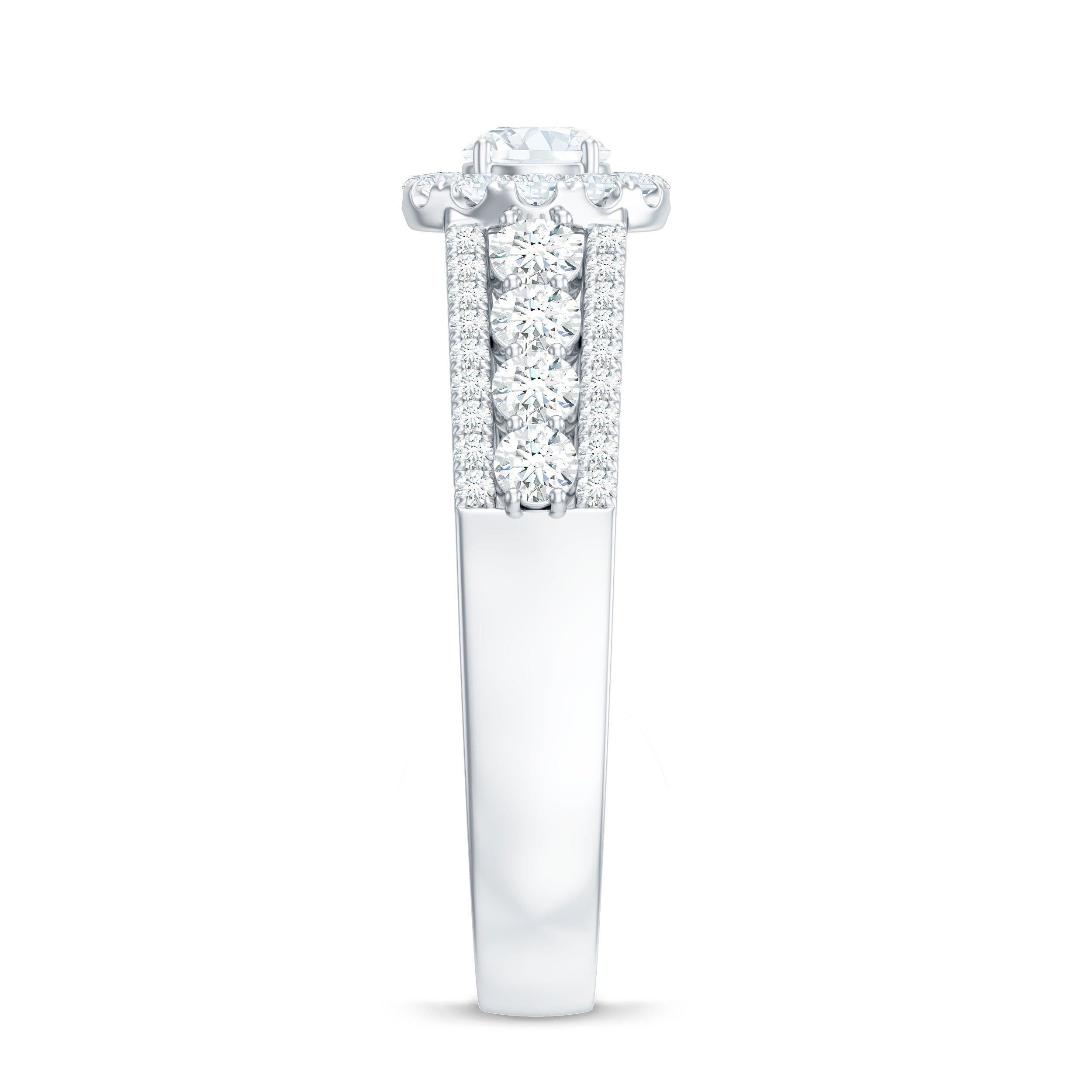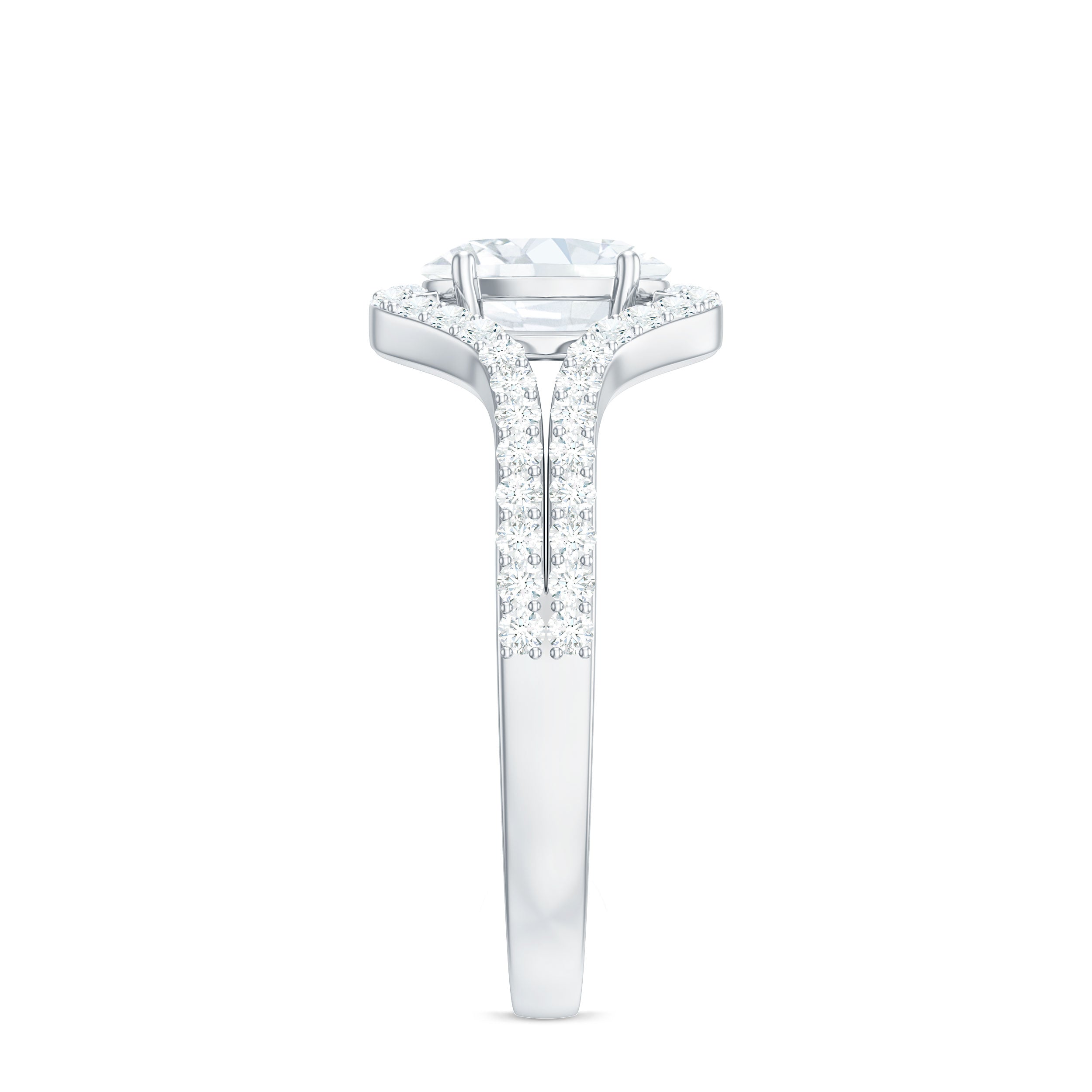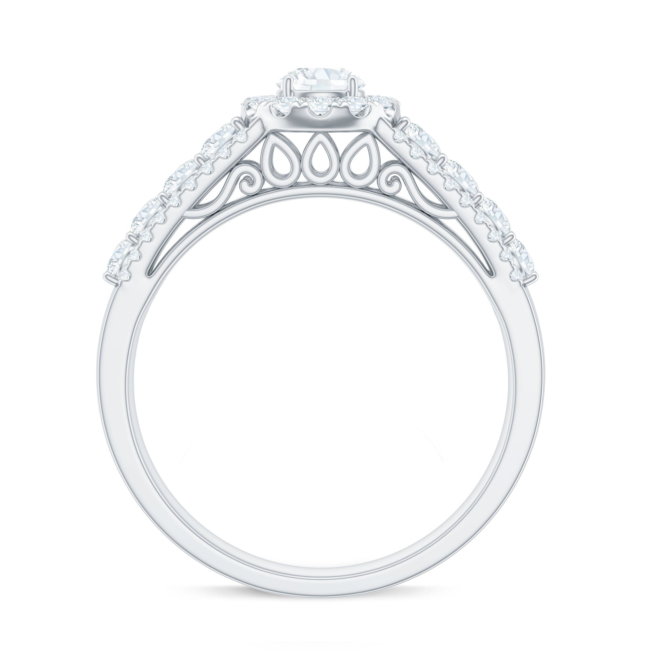 Standing out for its glitz and glam, a Halo encircles the Center Stone with a row of shimmering Cubic Zirconia. As an added advantage, the extra layer of sparkles here deceives the eye by making the center stone appear larger in size. So, if she is all about the bling, a Halo Style Cubic Zirconia Engagement Ring for Women seems like the perfect pick.