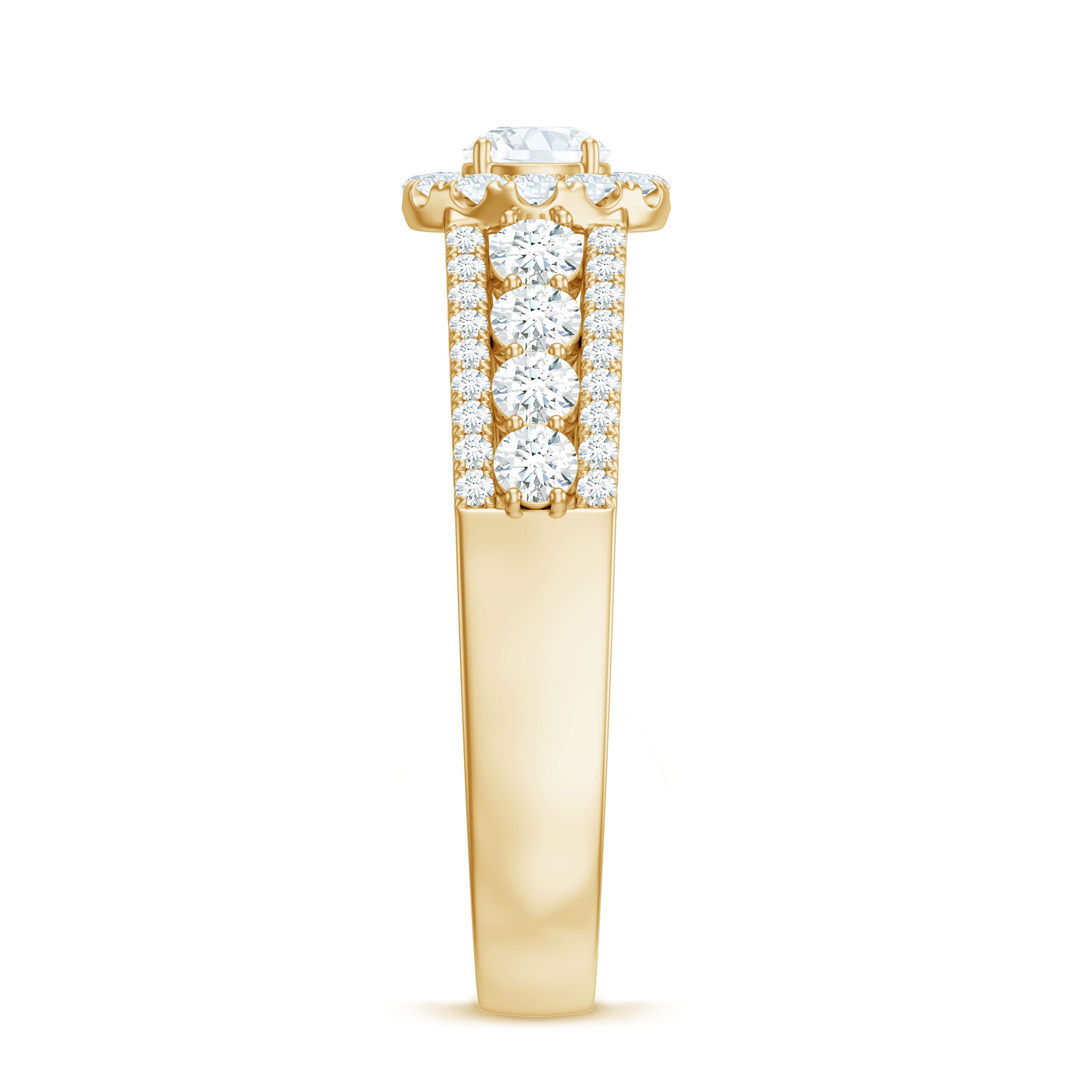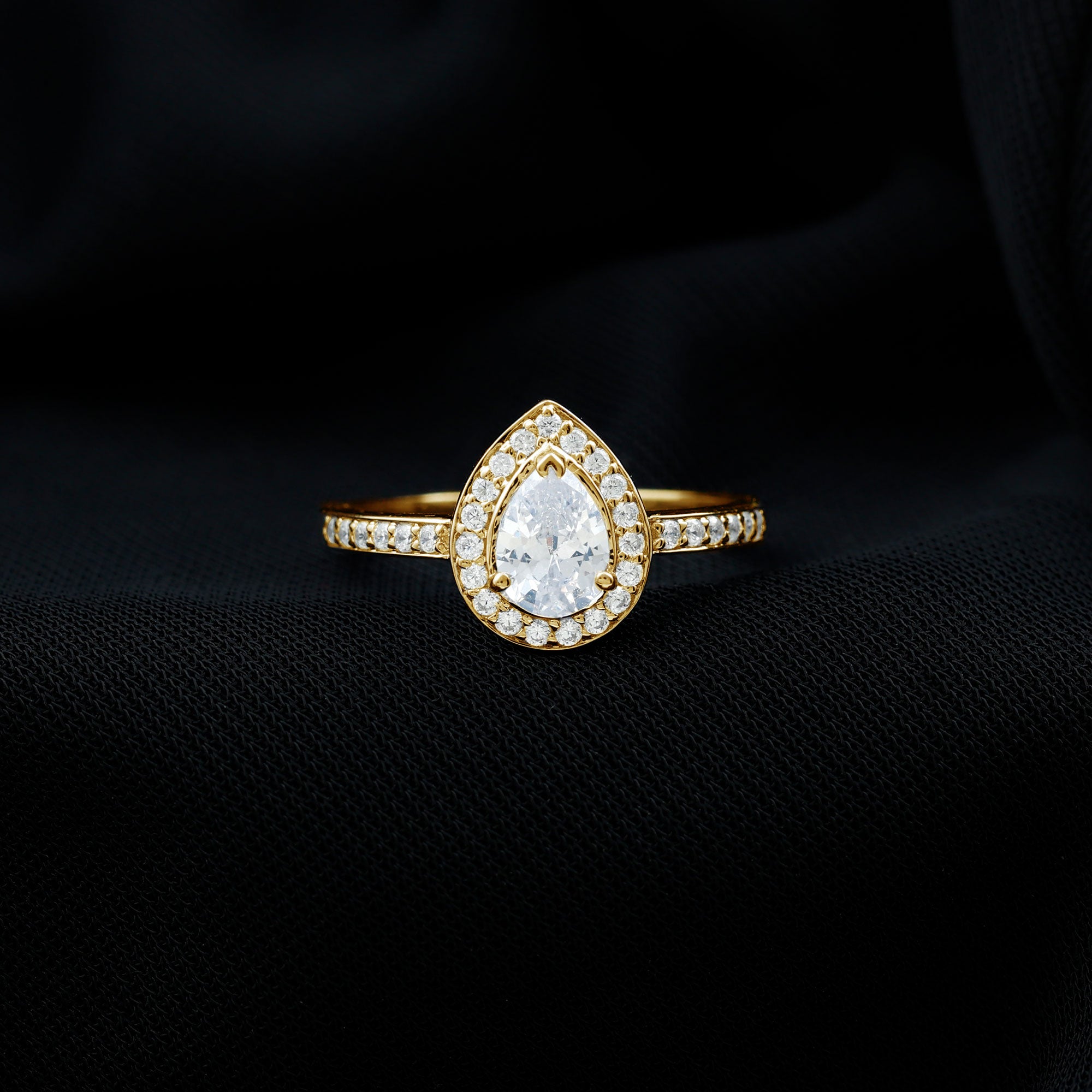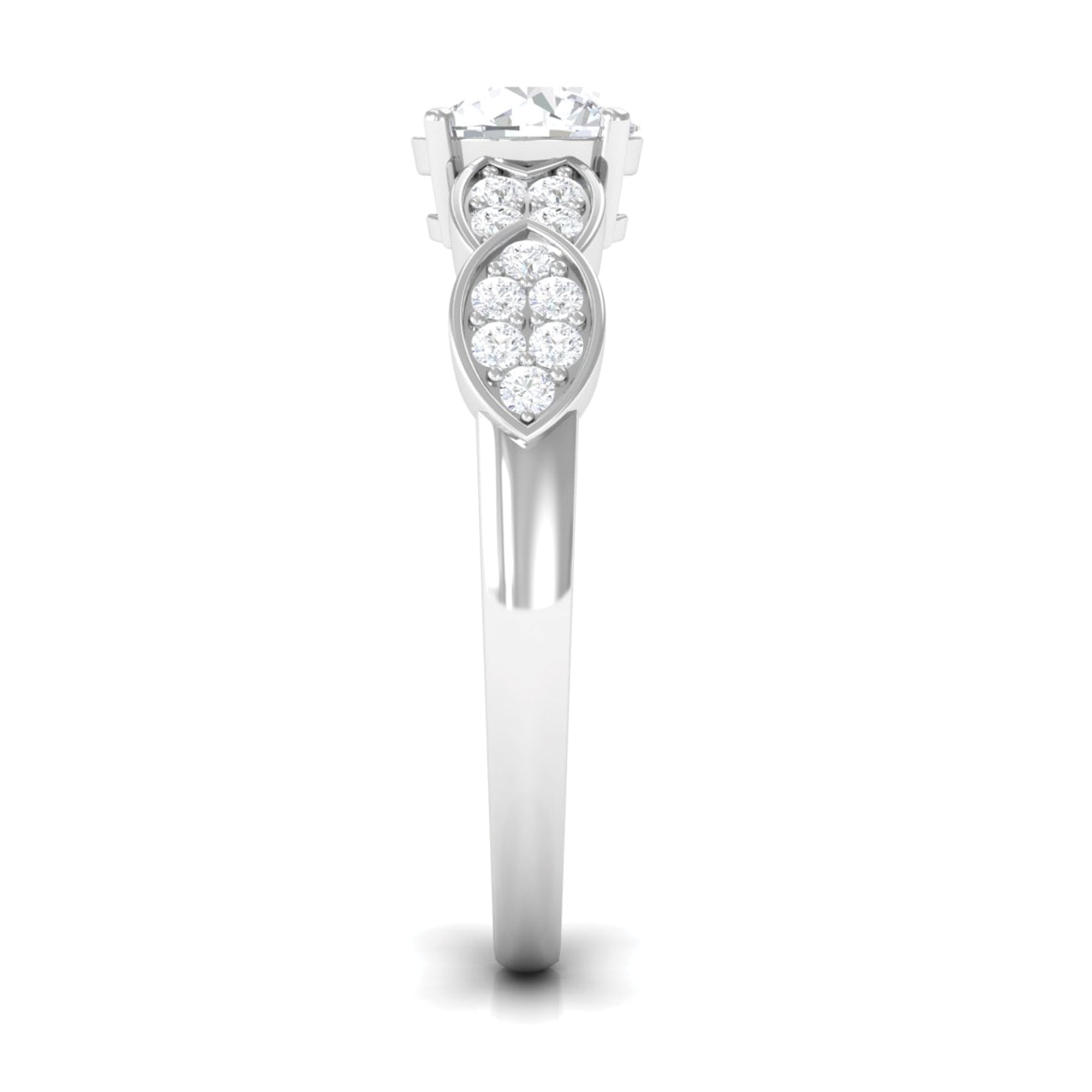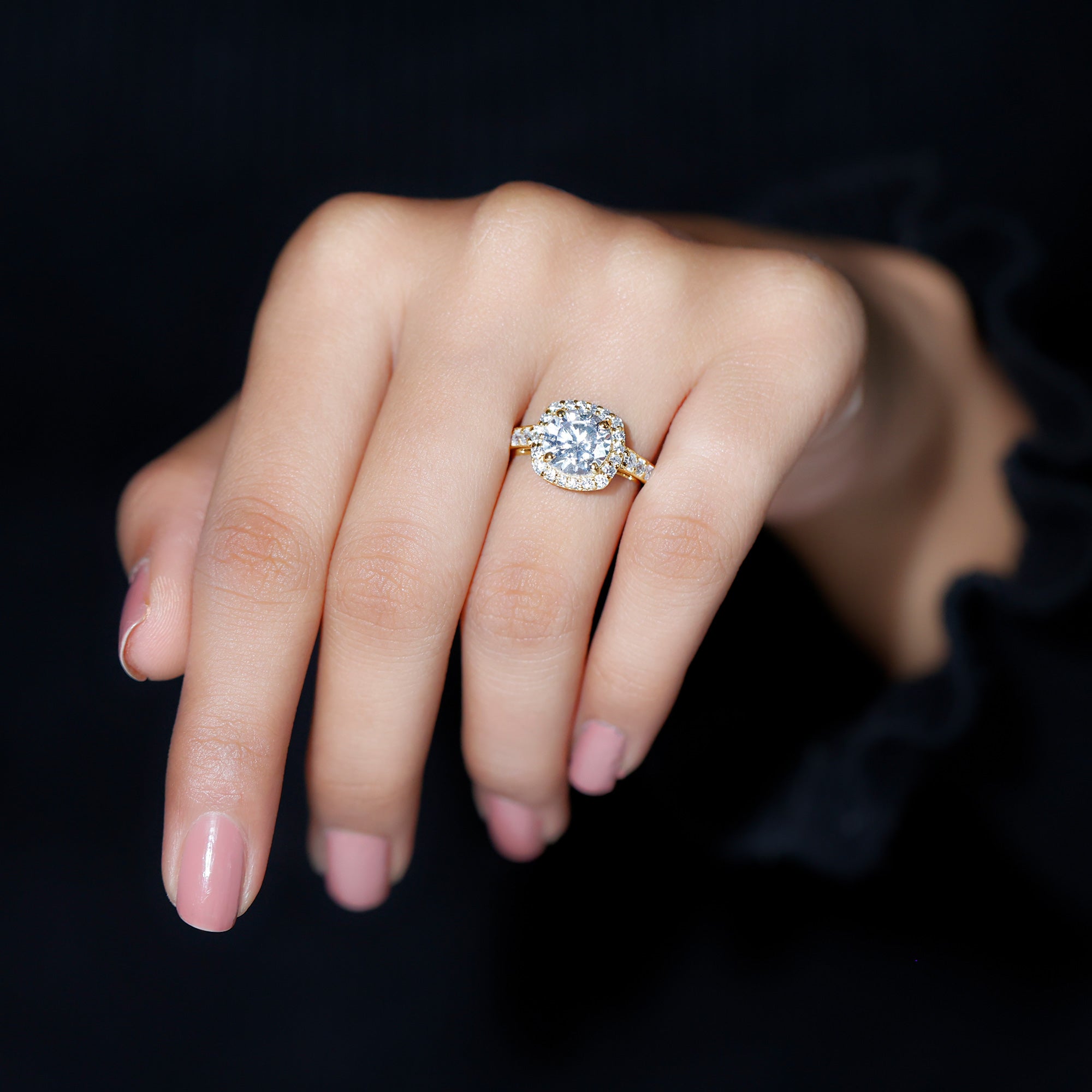 Standing out for its glitz and glam, a Halo encircles the Center Stone with a row of shimmering Cubic Zirconia. As an added advantage, the extra layer of sparkles here deceives the eye by making the center stone appear larger in size. So, if she is all about the bling, a Halo Style Cubic Zirconia Engagement Ring for Women seems like the perfect pick.