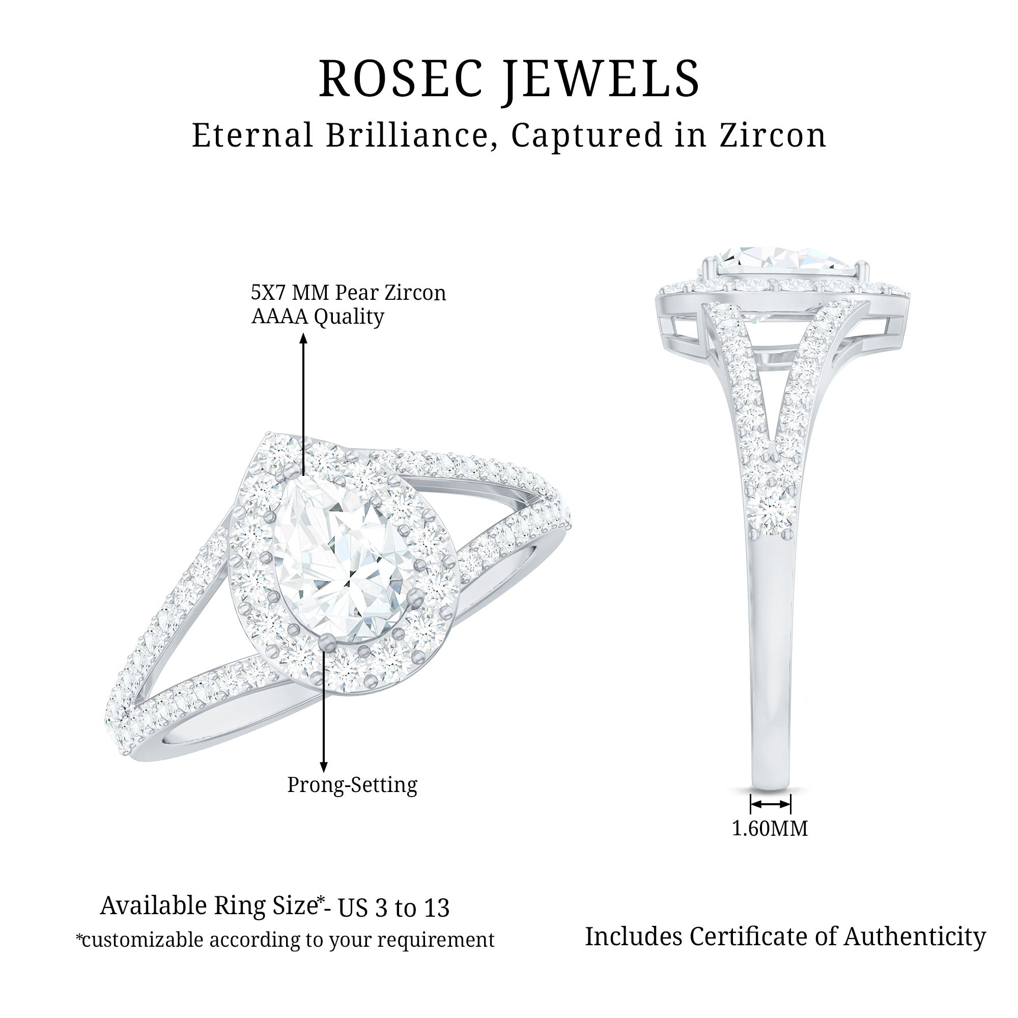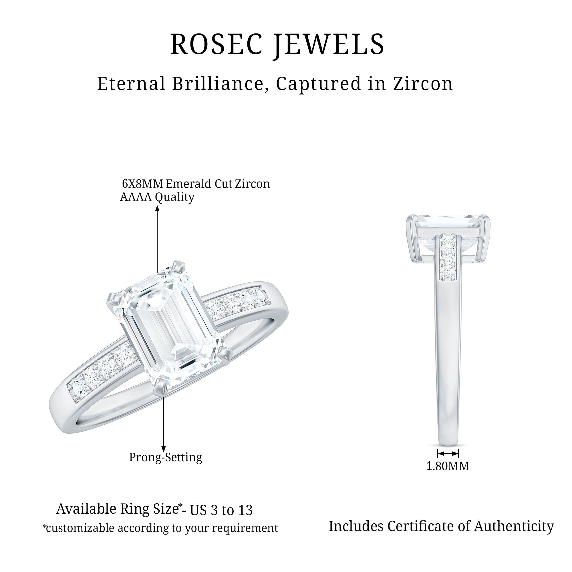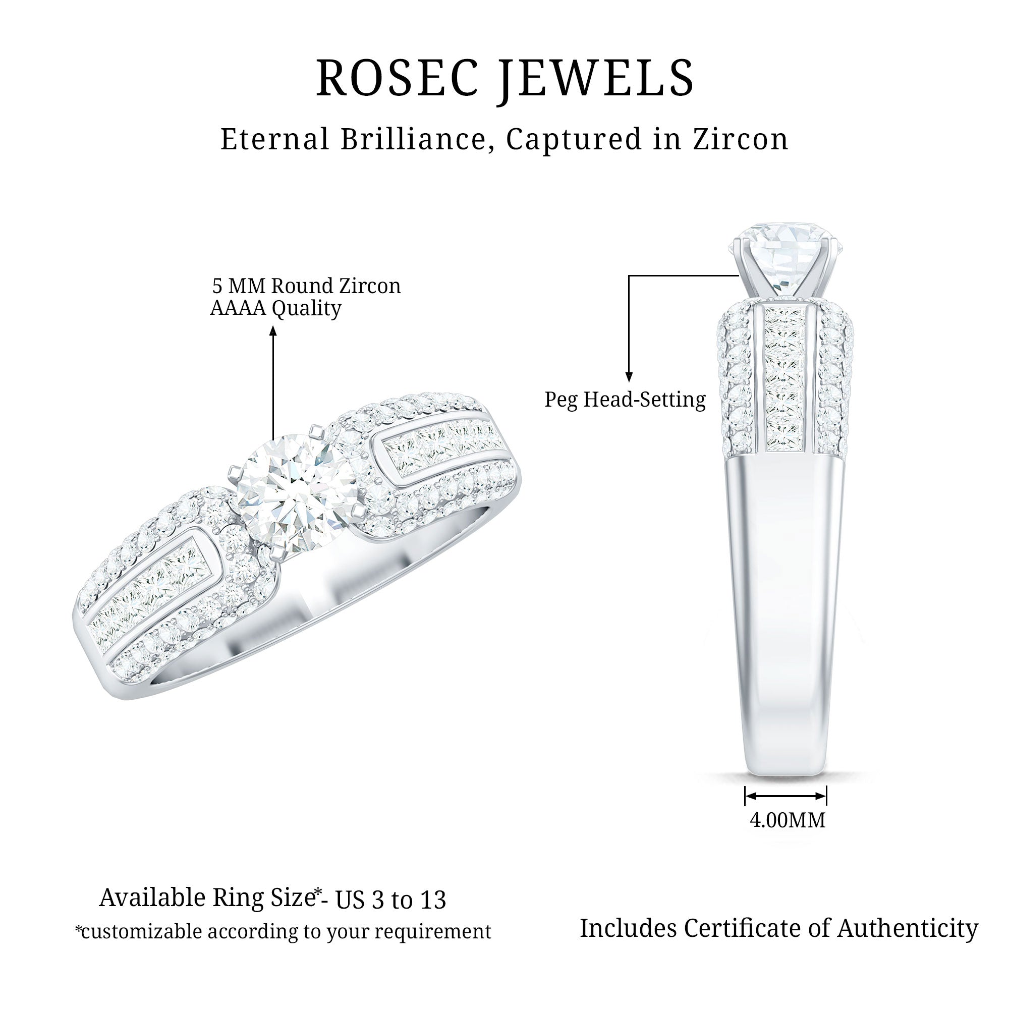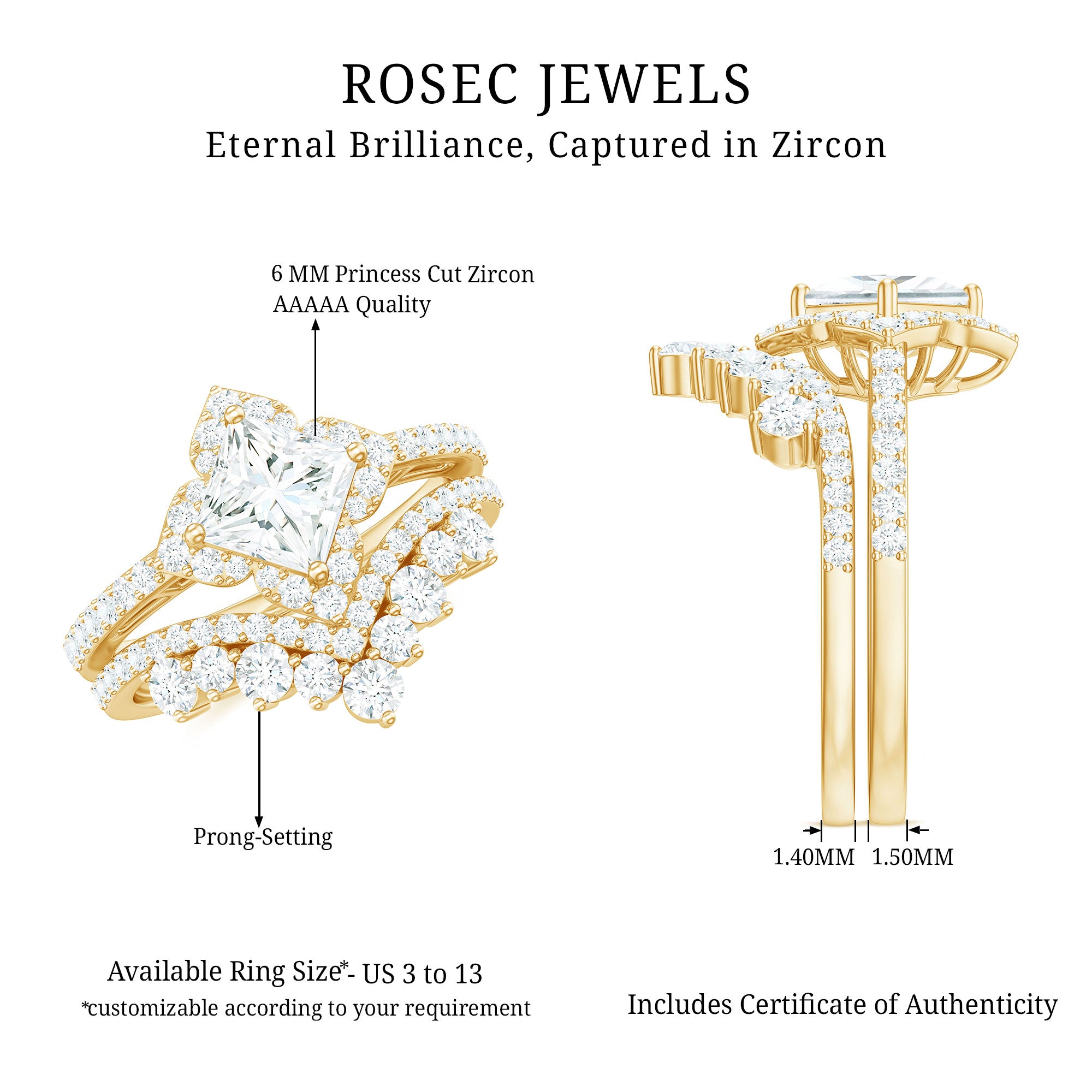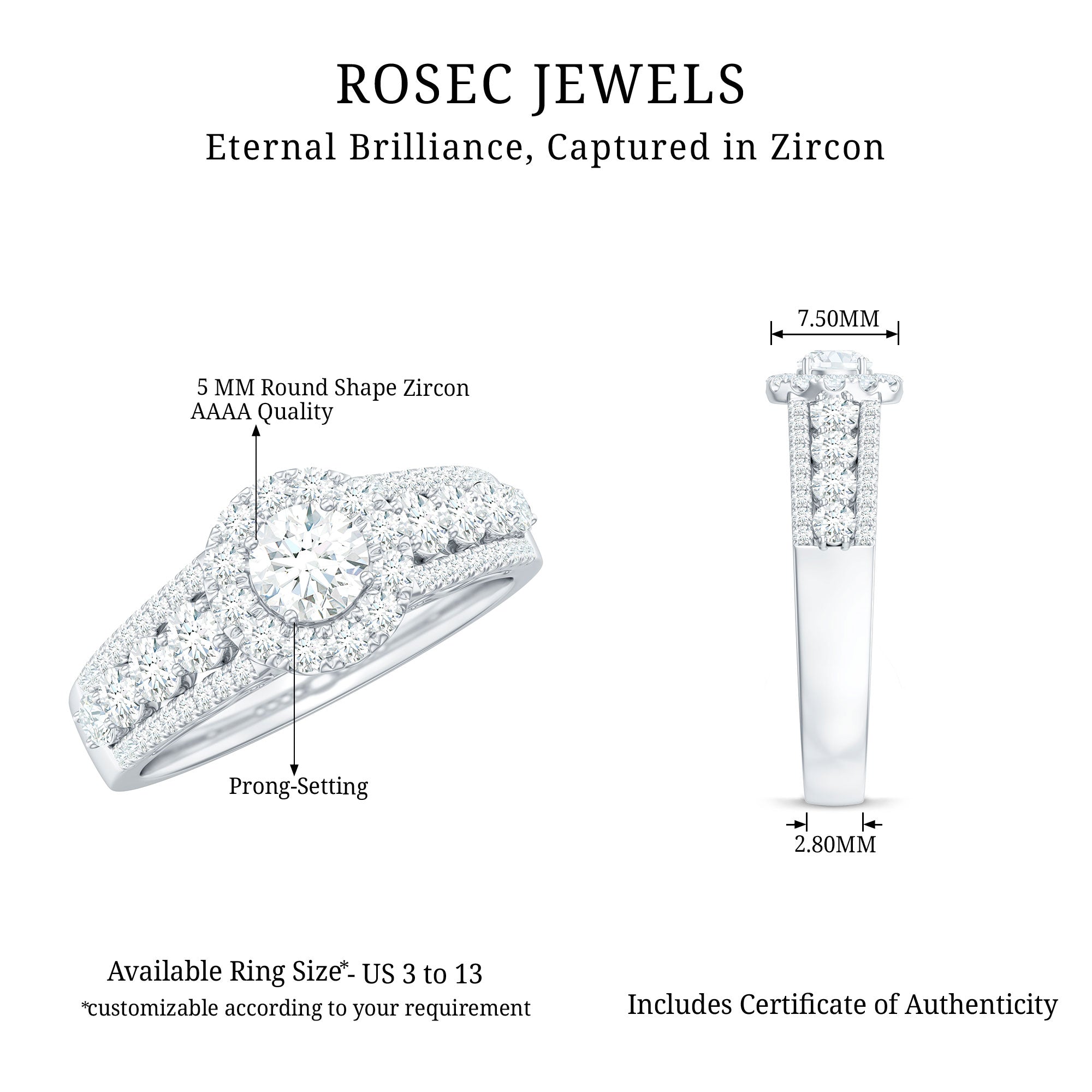 A Solitaire Ring is encased with the Single Centerpiece of Cubic Zirconia that takes all the center stage owing to its enormous size of 6 MM or more. Hailed as a timeless classic, a Solitaire Style Zirconia Engagement Ring is easily the go-to choice for all the conventional couples out there. Not just that, it pleases many aesthetics owing to the many shapes it is fashioned in. While a Round CZ Ring appeals owing to its understated and minimalist look, the one adorned with fanciers cuts like Pear, Marquise, or Princess speak to the trend-savvy bride-to-be(s). On the other hand, Asscher, Emerald, and Cushion Cut CZ Engagement Ring is meant to speak to those who fancy a vintage emblem of love.